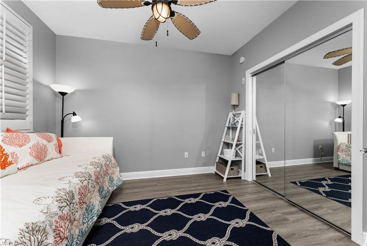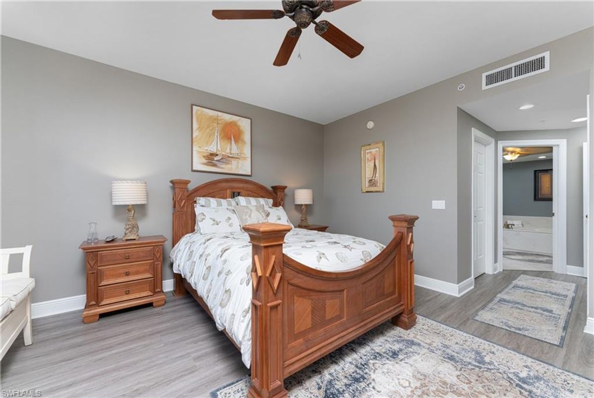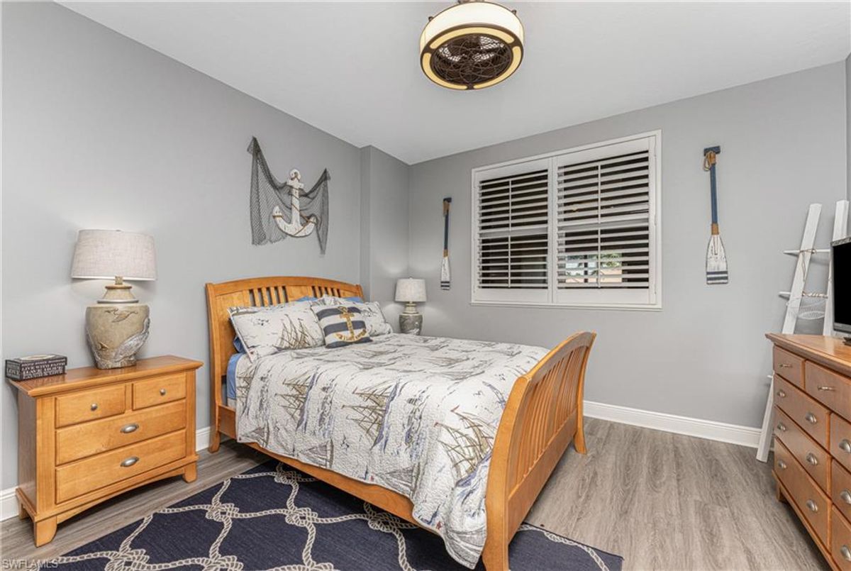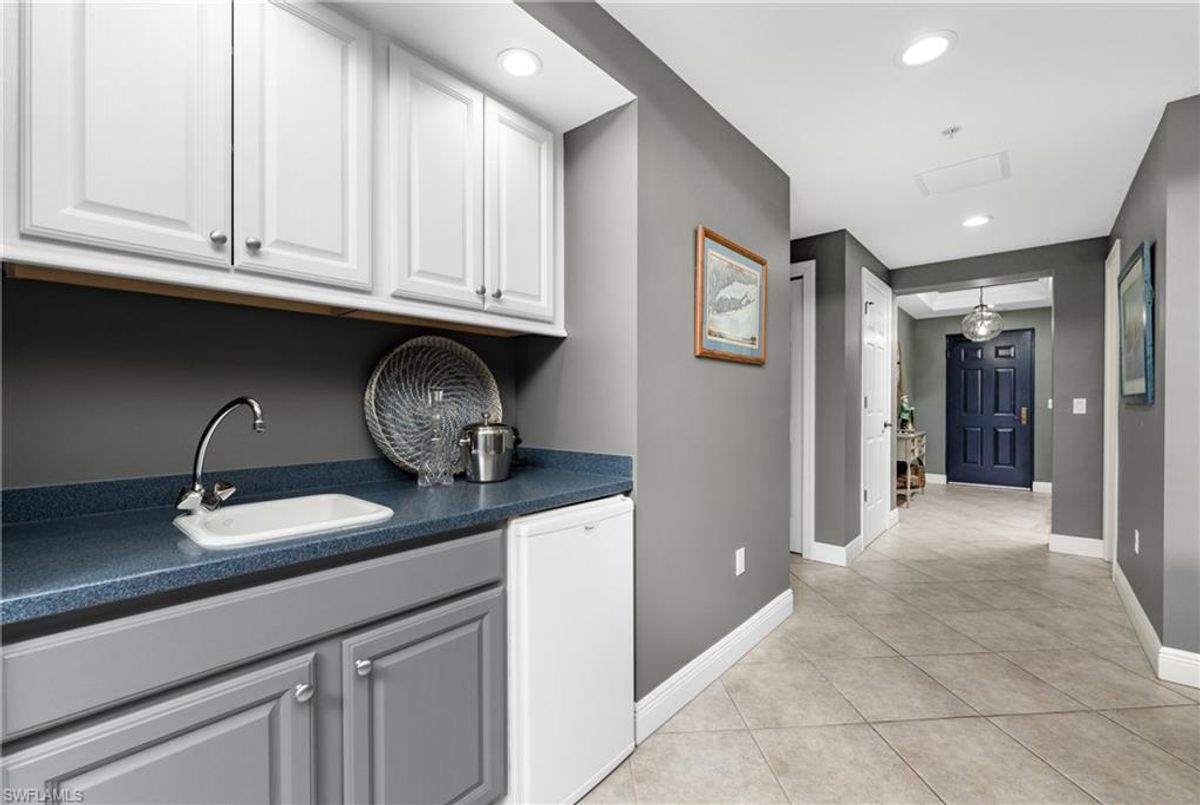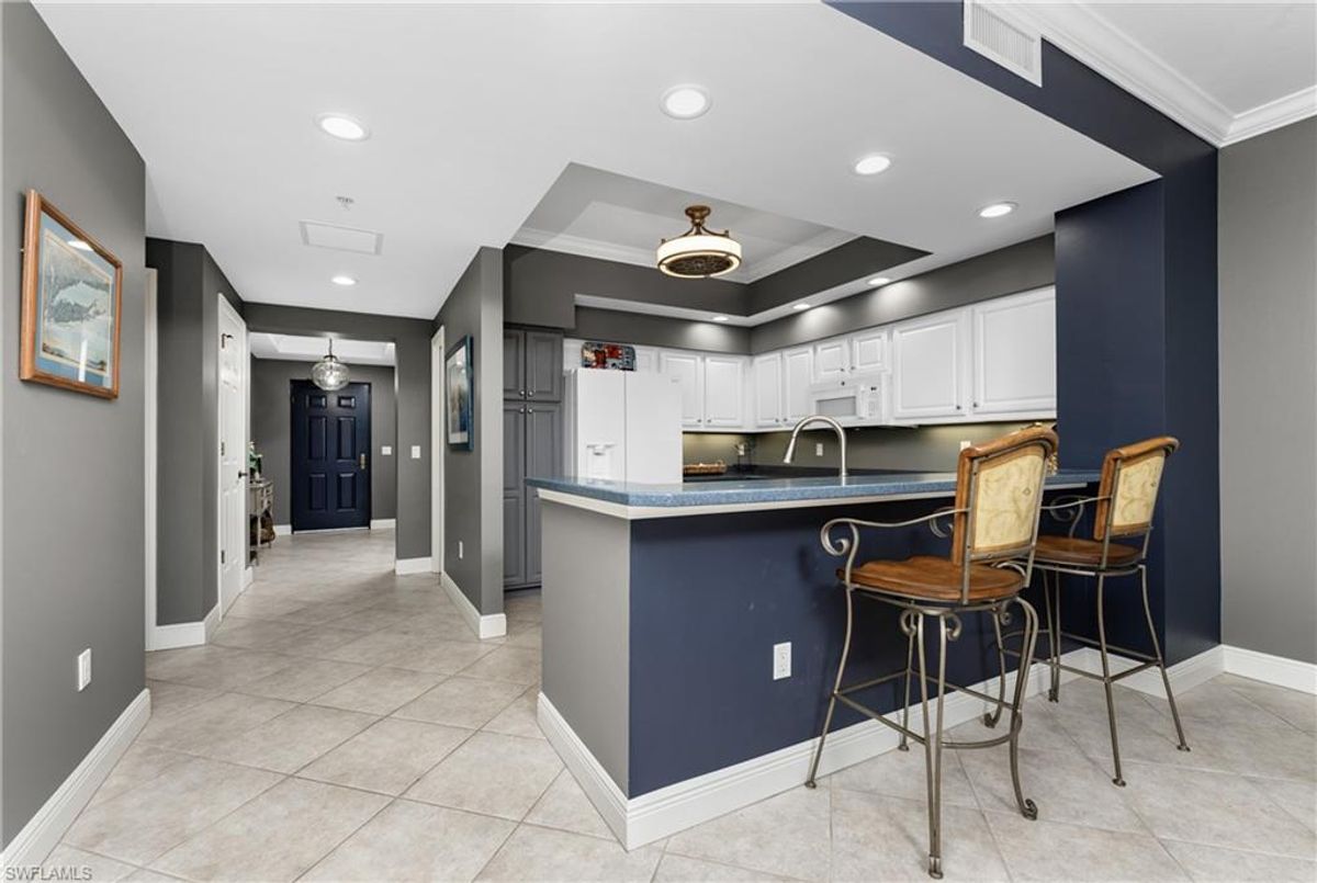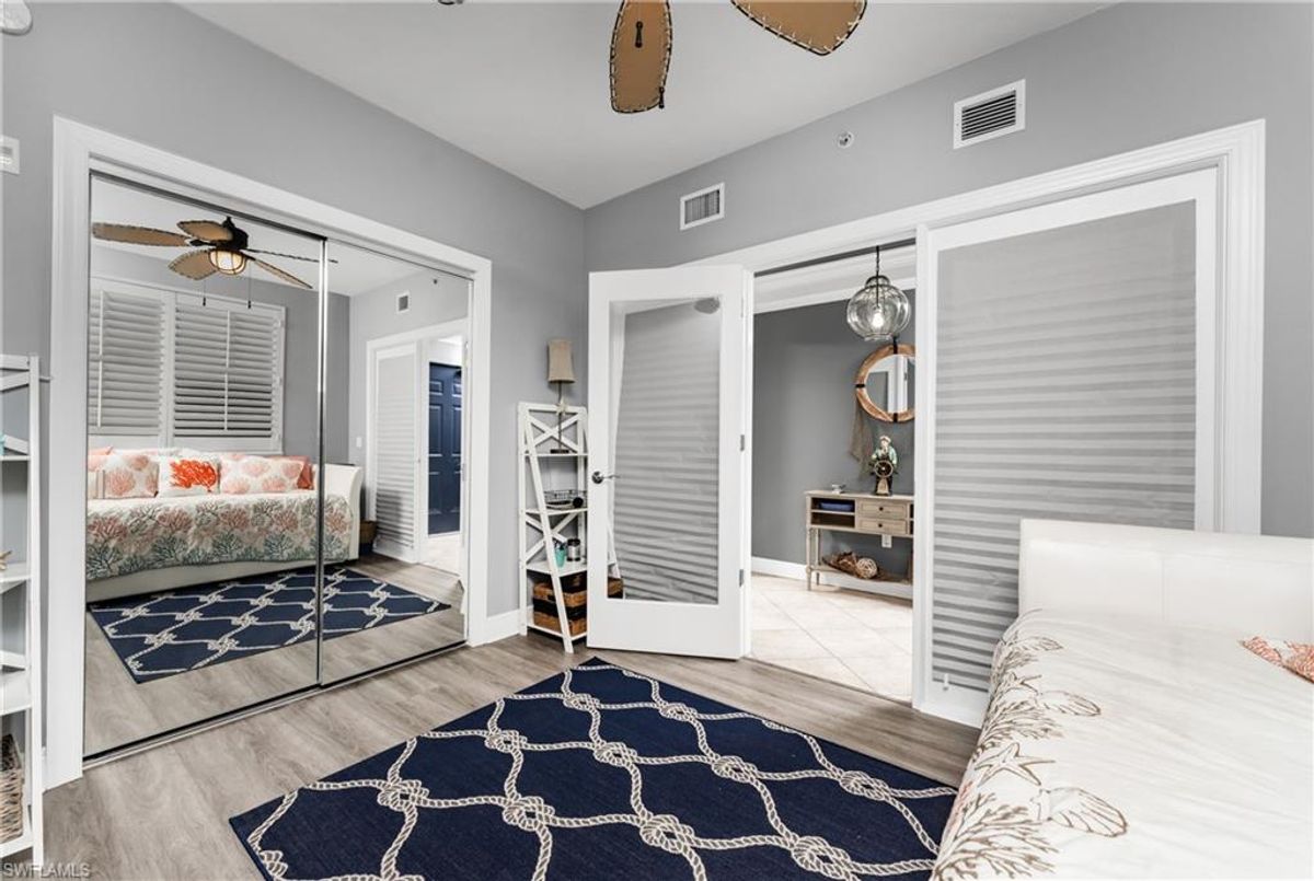 The Epitome of Marina Front Living awaits! This unique condo boasts a location like no other, with a spectacular open-air balcony perched above the marina and overlooks the marina’s main channel entrance. Talk about front row seats to the daily boat parade… the excitement of watching boats sail in and out will never fade. The screened lanai is a wonderful lounging option when you want to get out of the sun. This waterfront oasis is offered turnkey-furnished and welcomes you with tasteful coastal decor that effortlessly captures the essence of seaside living. As you enter the main living space, you’ll notice the diamond-set tile flooring leading you into the main living space, where crown molding finishes off the freshly painted interior. The open kitchen features a wide breakfast bar, two-tone cabinetry, a cooktop stove, and a built-in oven - making it a hub for social gatherings. From this vantage point, you'll witness the ebb and flow of boats, creating a picturesque backdrop that's exclusive to first-floor residences. In addition to the captivating views, this home offers remote-controlled Kevlar storm shutters, plus impact doors and windows, ensuring both safety and peace of mind during stormy weather. New wide luxury vinyl plank flooring was added to the bedrooms, while plantation shutters adorn the guest wing, offering privacy and style. The master bedroom provides sweeping views of the marina through sliding doors and windows, creating a serene retreat. The master bath features dual sinks, a garden bath, and a frameless shower, epitomizing luxury and relaxation. The two guest bedrooms, well-appointed bathroom, and utility room, provide both comfort and convenience for family and friends. From the thoughtful fixtures to the impeccable coastal decor, every detail of this Grande Isle gem invites you to experience the essence of waterfront living. The resort-style amenities are like no other in the community, where residents enjoy access to an Olympic-sized swimming pool and spa, fitness center, theater room, grilling area, steam and sauna rooms, and a grand salon. Come for the lifestyle…stay for life. Room Feature: Linen Closet In Bath (Primary Bedroom).