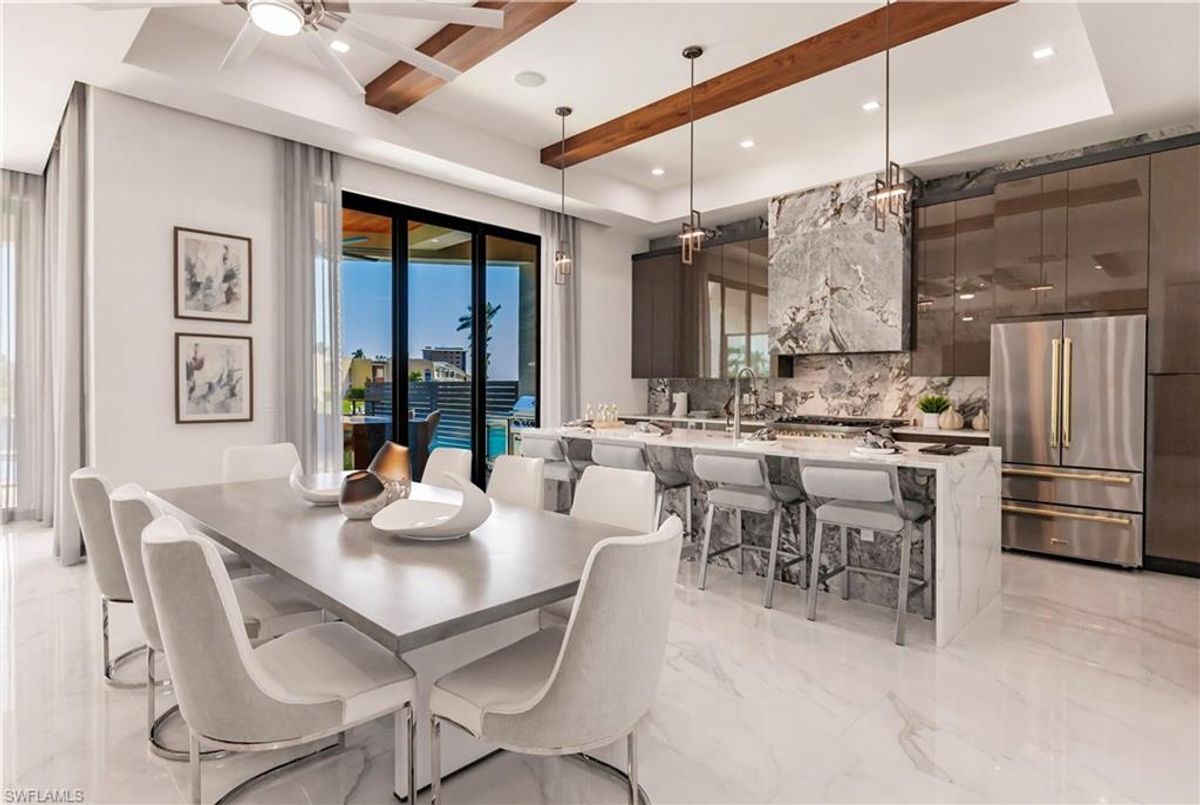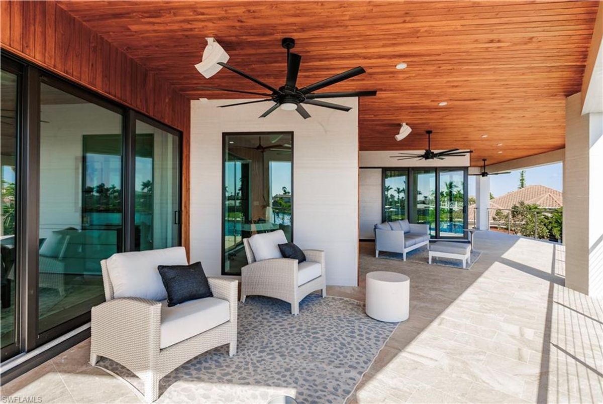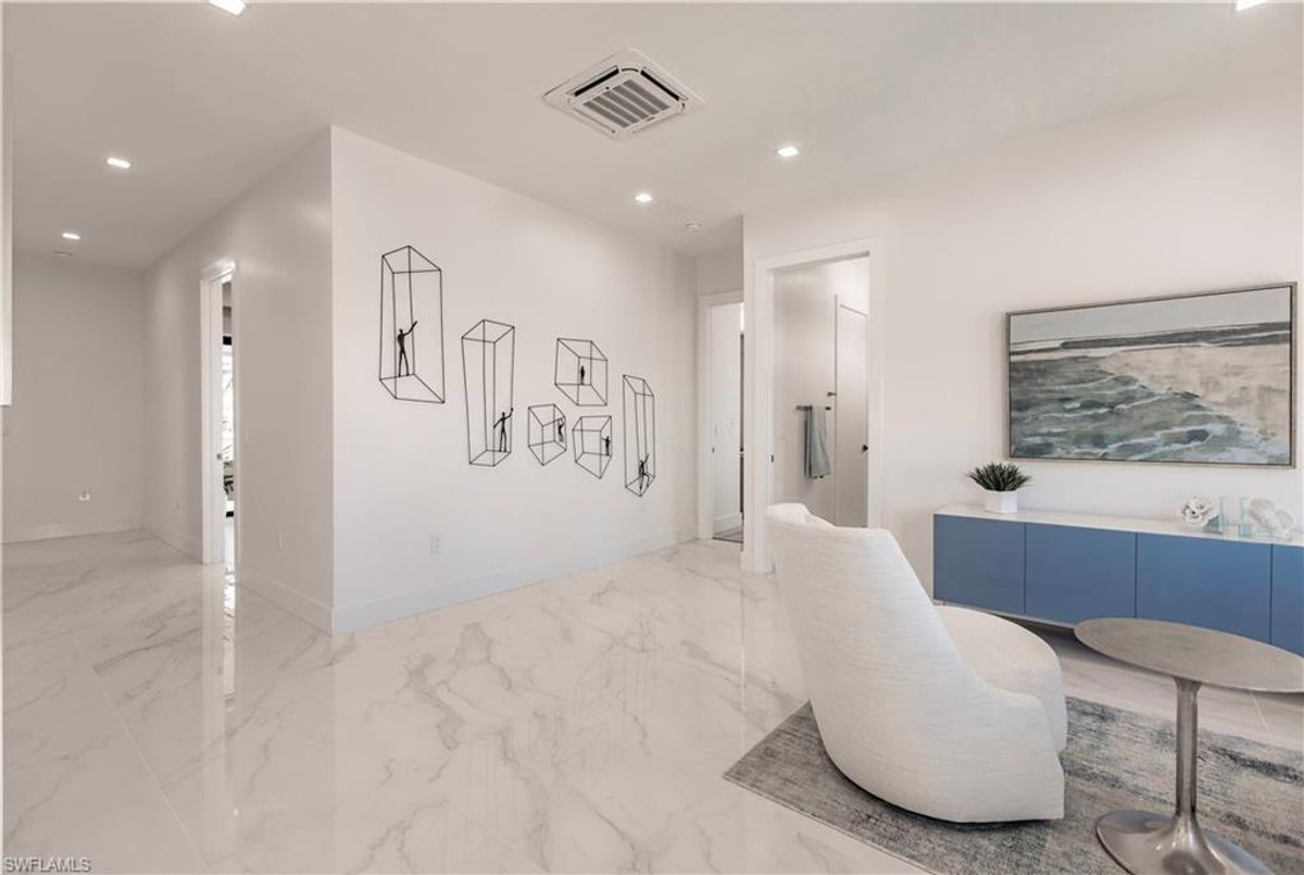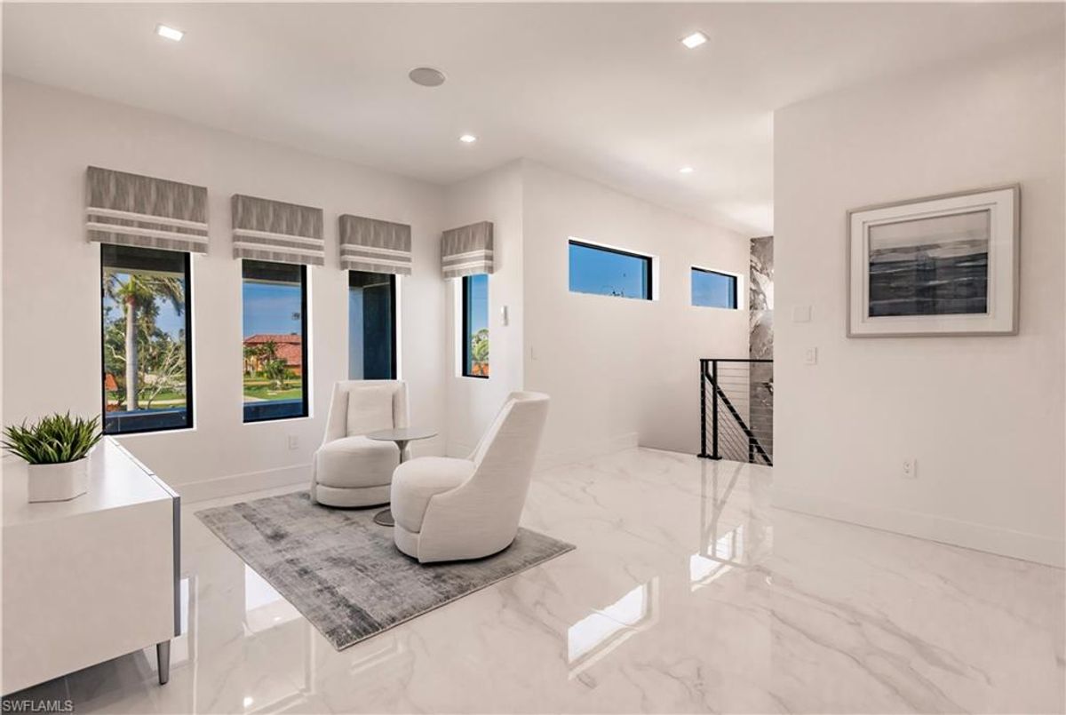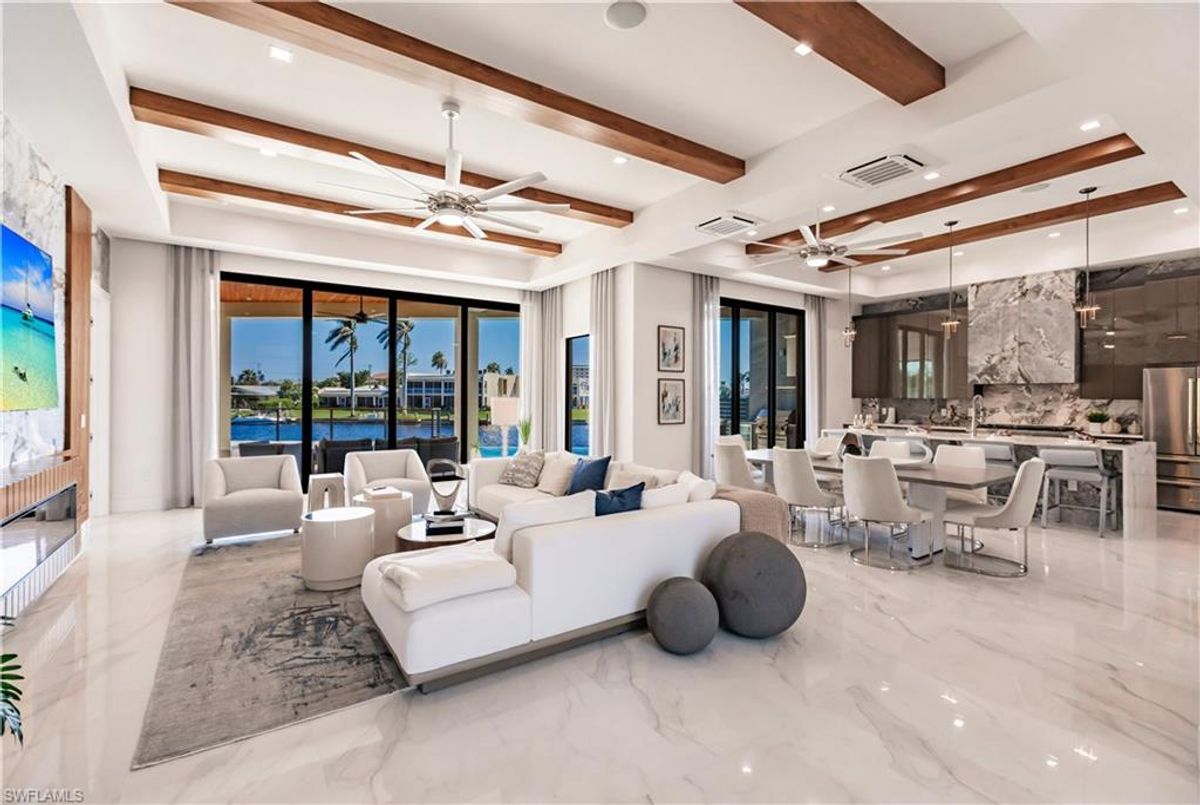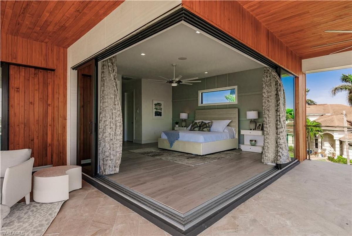 Gulf of America. Miles of canals. Cute burrowing owls. Beautiful parks. No state income tax! And LendingTree just called Cape Coral...Boomtown! What's not to love? Now you can bask in the sunshine in “Captain’s Retreat” ...a Fortress of Elegance!This BRAND NEW, stunning 2- story ultra-modern home was constructed to commercial standards to withstand the worst storms, providing unmatched safety and luxury to you and your loved ones, anytime of the year. For additional safety, it is situated on elevated ground on the 195-foot-wide Orpheus canal, just a few hundred feet from the Caloosahatchee River, protecting your prized vessel from strong waves and high winds. Direct access to Sanibel, Captiva and Useppa Islands and the crystal-clear tropical waters of Gasparilla Sound and the Gulf of America (Mexico). With 90+ feet of seawall, a deep canal and no bridges, it can accommodate a vessel of almost any size. As for the home, no expense was spared in construction and finish. For example, this high-end custom home builder used over a half million dollars of structural concrete over the required Florida code! There is a buried a 500-gallon LP tank to supply the gas stove and outdoor kitchen, and if needed, the Generac WHOLE HOUSE GENERATOR. For windstorm protection, only the highest quality wind/impact windows, sliders and doors were chosen. For finish, there are too many details to list, but as an example, the floating staircase is constructed from 5.5” Brazilian Cumaru wood. Even the furnishings are top quality by Clive Daniel Home Designs. This stunning home has 3900 square feet under A/C and 7700 square feet in total, with 4 bedrooms, 5.5 bathrooms and a Butler’s Pantry with wine cooler, 2nd dishwasher, ice-maker and prep station. On the first floor, there is a private office/den. What is especially unique is two master bedrooms, one on each floor, both with floor with interlocking pocket sliding doors to take advantage of the stunning water views. On the ground floor is a large patio with sitting area, custom pool with infinity edge, (visually) spilling into the canal, spa, sun shelf and sunbathing deck. There is also a full pool bathroom, complete outdoor kitchen and a firepit overlooking the canal. Imagine not just the enjoyment of living here, but also entertaining family, friends and business colleagues. This property screams “MASSIVE SUCCESS!” Brand new, Ultra-modern, stunning views, built like a fortress with gorgeous, quality furnishings. Come see what the easy Florida lifestyle is about, living in this VERY special “Captain’s Retreat”! (See aerial via Virtual Tour link)