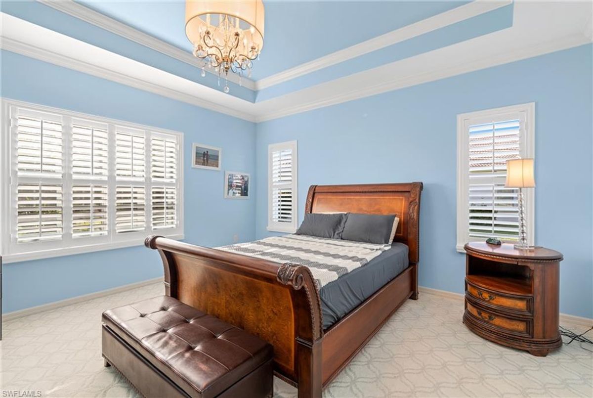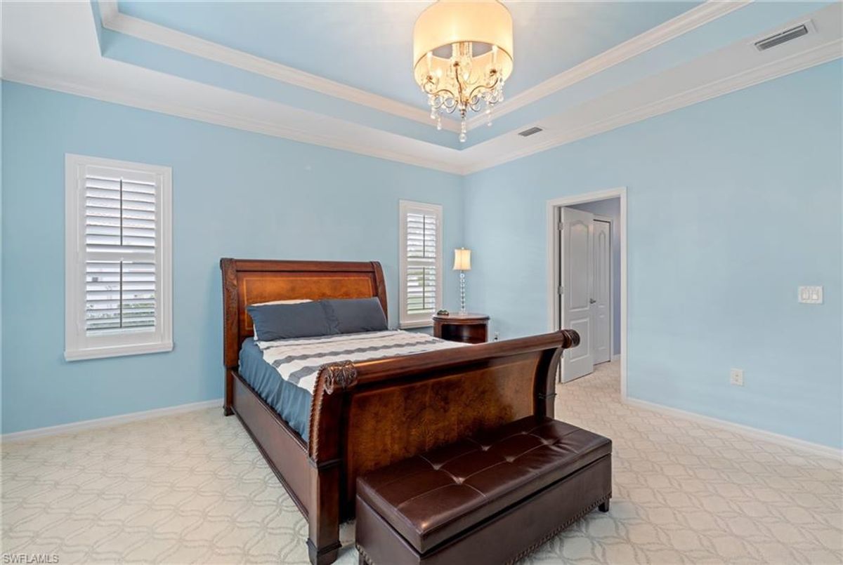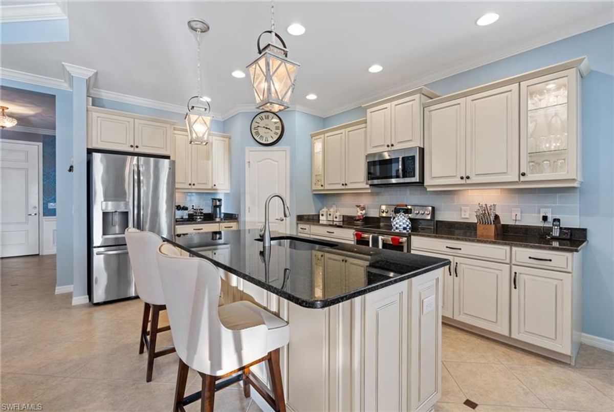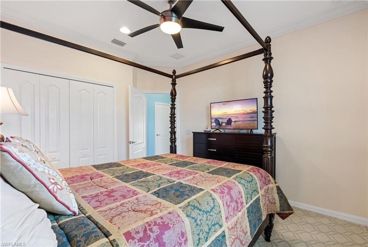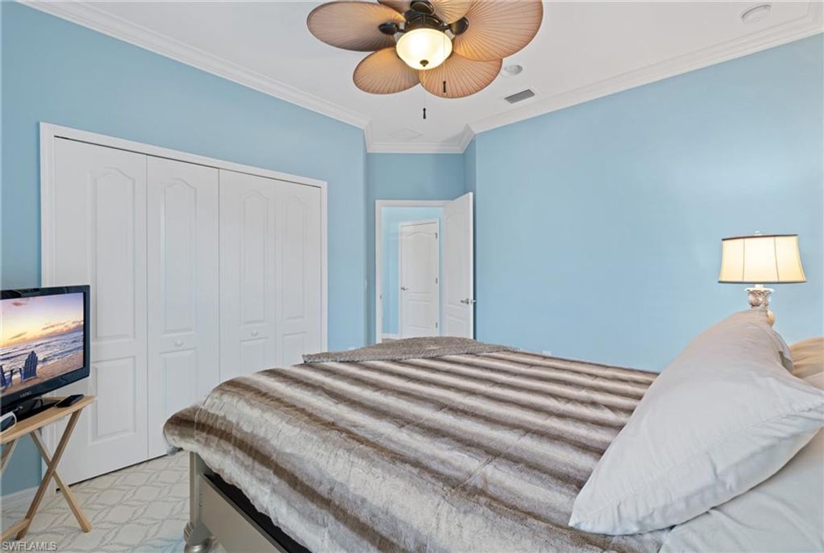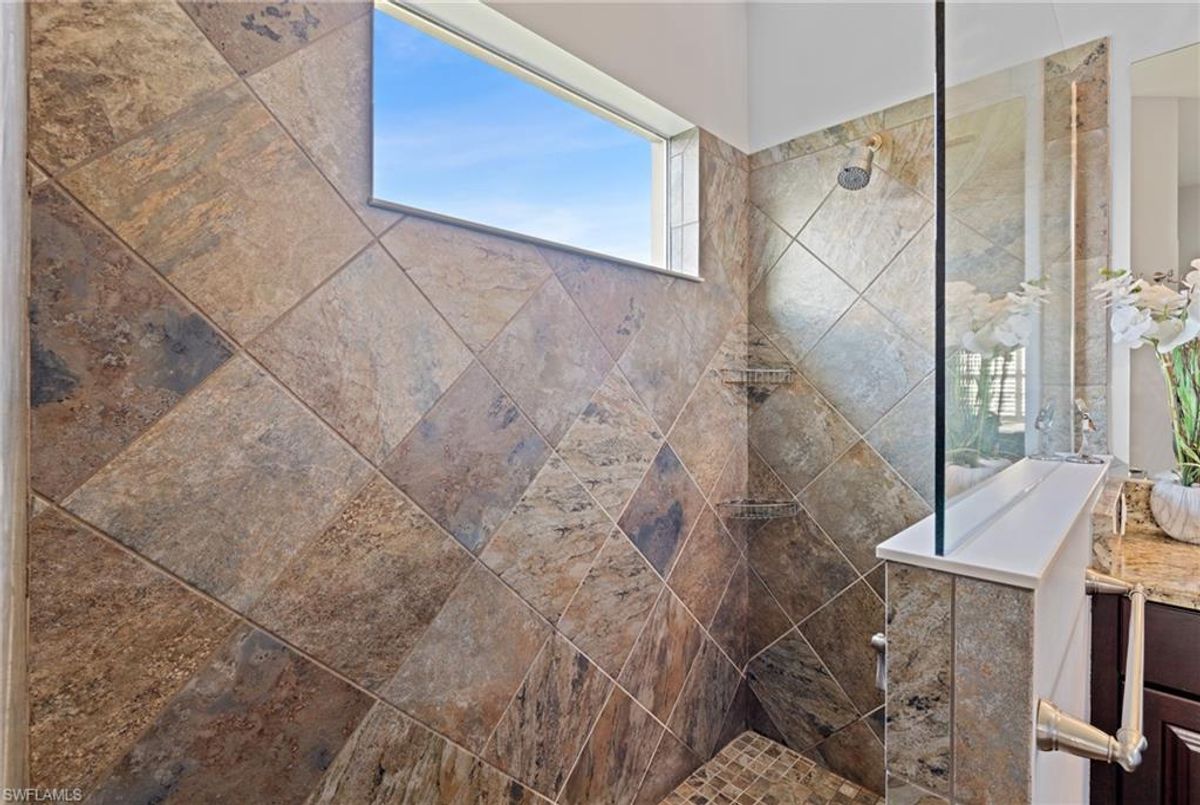 Reflection Lakes of Naples is where you will find this exquisite single family home. Picturesque lake views from your lanai where you can enjoy sunset views. Offering three spacious bedrooms and a den/study or formal dining area and two full baths with a lake view on the best, most spacious lot in the neighborhood Take in the captivating sunset views on your screened in lanai which also includes a remote electric Sunsetter awning. Dip in your private, heated pool oasis creating a tranquil atmosphere. The exterior with a tiled roof and manual storm shutters offers peace of mind. Crown molding and plantation shutters adorn this open concept home setting off the charm of the Venetian painted ceiling. The kitchen which is the heart of the home has upgraded pull out cabinetry, stainless steel appliances, granite counters, walk-in pantry and center island. The formal dining area provides a picturesque setting for family and friend gatherings and a touch of elegance with wood trim or can be utilized as flex space for an office or den. The clubhouse offers amenities such as fitness center, pool, social room and a calendar filled with social events. With low HOA fees, paradise living awaits!!