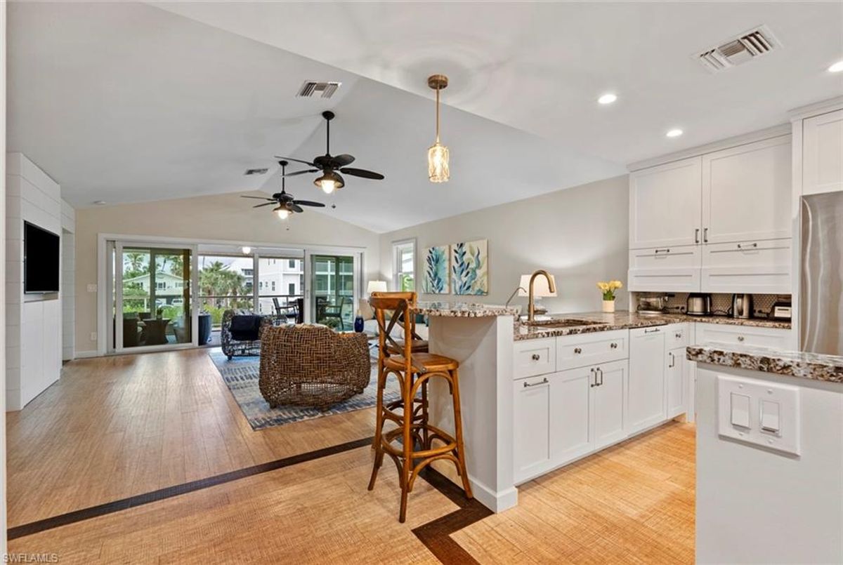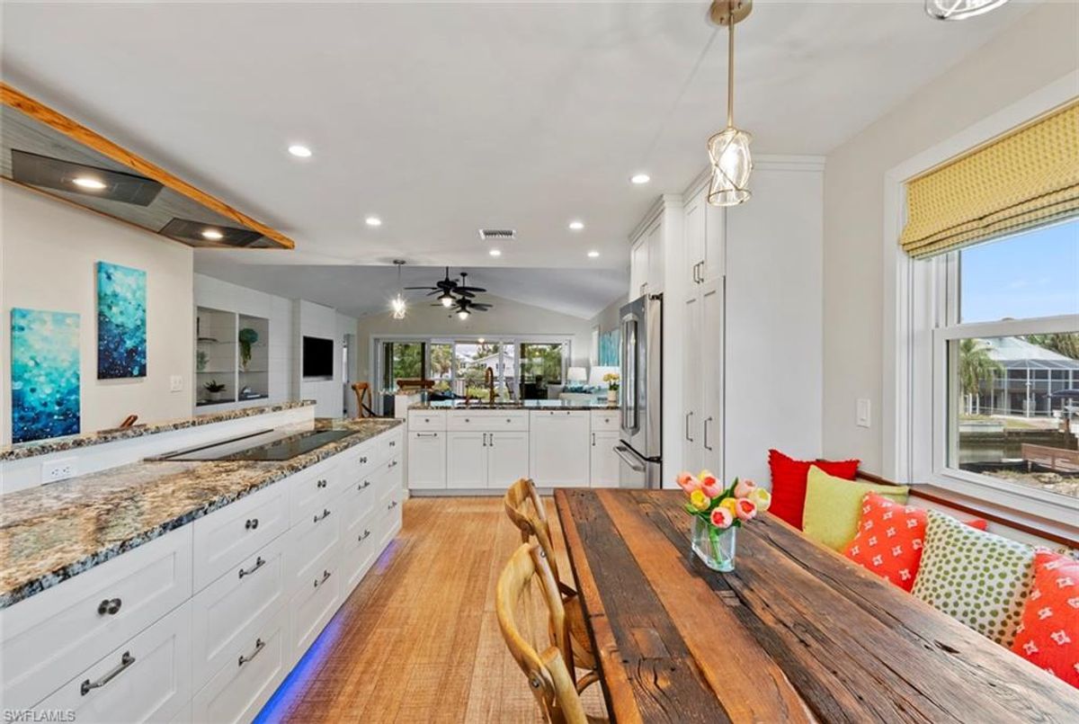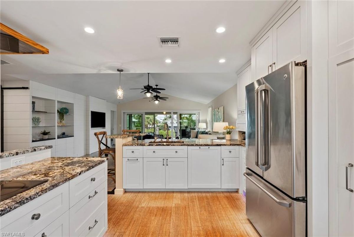 WHAT ARE YOU WAITING FOR?  Priced over $75k below certified appraised value.  High-End Gulf Access Gem in Naples – Coastal Living at Its Finest! Calling all fishing and boating enthusiasts! This custom-renovated, move-in-ready coastal retreat offers the perfect blend of luxury and functionality, with 3 bedrooms, 2 full baths, with addition flex room, storage room and garage on ground floor. Transferrable Flood Insurance of only $1,400 per year! This home is located in a prime location in a highly sought-after A-rated school district. Step inside to discover the timeless elegance of bamboo and travertine tile floors, soaring vaulted ceilings, and abundant natural light that highlights the stunning canal views. The open-concept design is thoughtfully crafted, perfect for both relaxing and entertaining. Completely renovated kitchen, a chef's dream featuring stainless steel appliances, induction cooktop with Viking downdraft vent, three pull-out pantries for ultimate organization, and built-in stained walnut bench seating with hidden storage. The luxurious primary suite is a true sanctuary, offering custom-designed walk-in closet cabinetry with walnut plywood, spa-like bath with Taj Mahal granite vanities, a soaking tub, and a large glass-enclosed shower. Step outside and embrace the Florida lifestyle on your back screened deck, complete with shimmering canal views, a soothing hot tub, and lush, tropical landscaping. A private dock and boat lift make Gulf access effortless, allowing you to explore the waterways at your leisure. Additional features include impact-resistant doors and windows for peace of mind, on-demand water heaters, durable metal roof, beautifully manicured landscaping and more! Ideally located, this home places you within minutes of Naples' best dining, shopping, and entertainment. Whether you’re enjoying a day on the water or relaxing in your coastal oasis, this property offers the ultimate Naples experience. Don’t miss your chance to own this stunning Gulf-access home—schedule your private tour today!