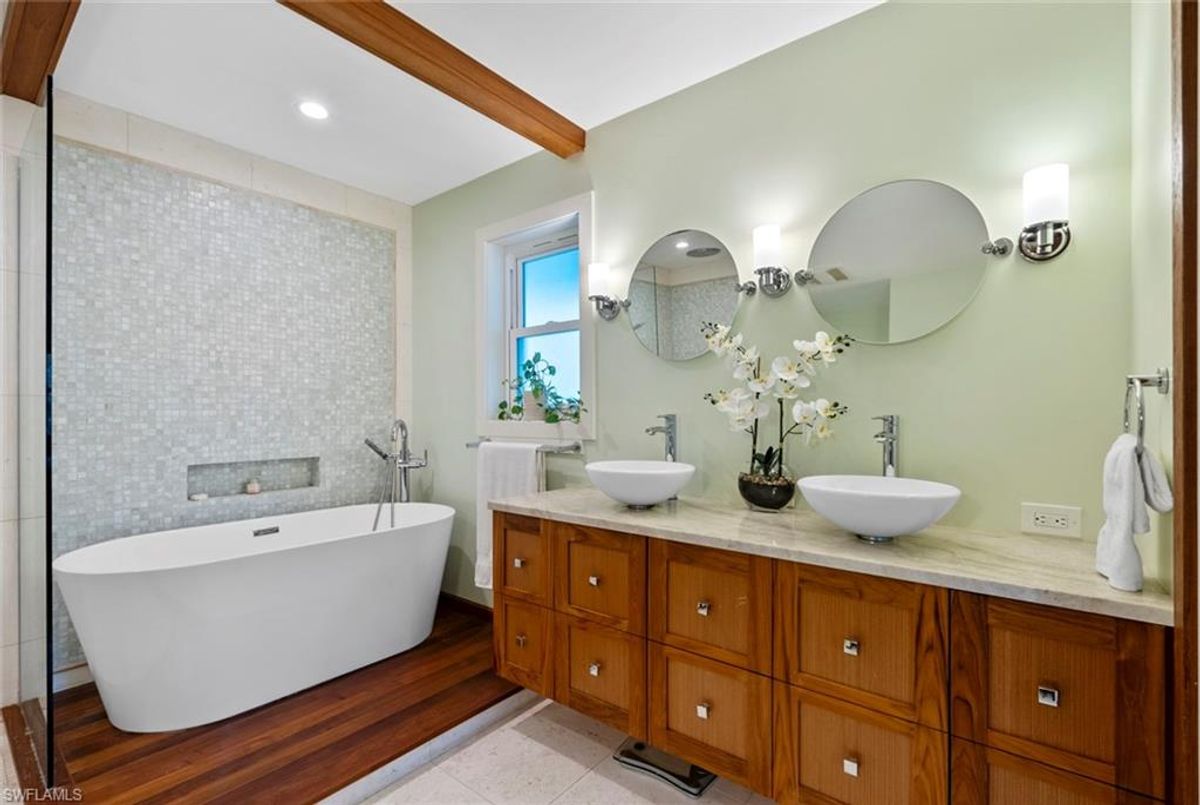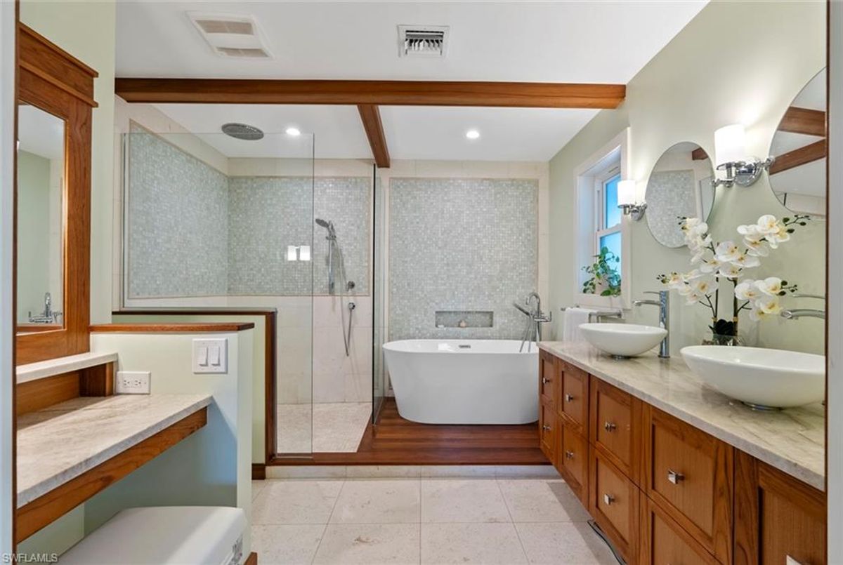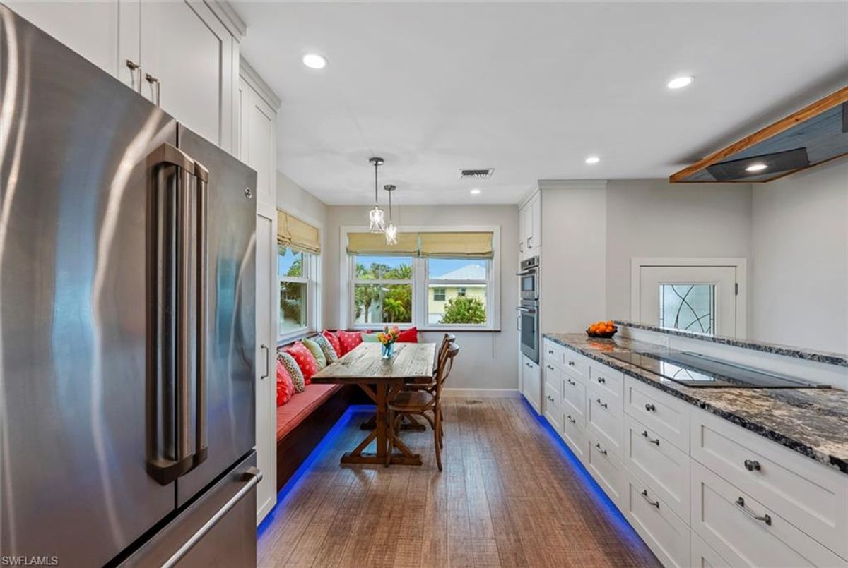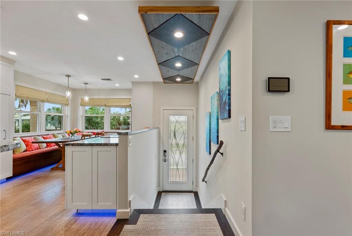WHAT ARE YOU WAITING FOR?  Priced over $75k below certified appraised value.  High-End Gulf Access Gem in Naples – Coastal Living at Its Finest! Calling all fishing and boating enthusiasts! This custom-renovated, move-in-ready coastal retreat offers the perfect blend of luxury and functionality, with 3 bedrooms, 2 full baths, with addition flex room, storage room and garage on ground floor. Transferrable Flood Insurance of only $1,400 per year! This home is located in a prime location in a highly sought-after A-rated school district. Step inside to discover the timeless elegance of bamboo and travertine tile floors, soaring vaulted ceilings, and abundant natural light that highlights the stunning canal views. The open-concept design is thoughtfully crafted, perfect for both relaxing and entertaining. Completely renovated kitchen, a chef's dream featuring stainless steel appliances, induction cooktop with Viking downdraft vent, three pull-out pantries for ultimate organization, and built-in stained walnut bench seating with hidden storage. The luxurious primary suite is a true sanctuary, offering custom-designed walk-in closet cabinetry with walnut plywood, spa-like bath with Taj Mahal granite vanities, a soaking tub, and a large glass-enclosed shower. Step outside and embrace the Florida lifestyle on your back screened deck, complete with shimmering canal views, a soothing hot tub, and lush, tropical landscaping. A private dock and boat lift make Gulf access effortless, allowing you to explore the waterways at your leisure. Additional features include impact-resistant doors and windows for peace of mind, on-demand water heaters, durable metal roof, beautifully manicured landscaping and more! Ideally located, this home places you within minutes of Naples' best dining, shopping, and entertainment. Whether you’re enjoying a day on the water or relaxing in your coastal oasis, this property offers the ultimate Naples experience. Don’t miss your chance to own this stunning Gulf-access home—schedule your private tour today!
