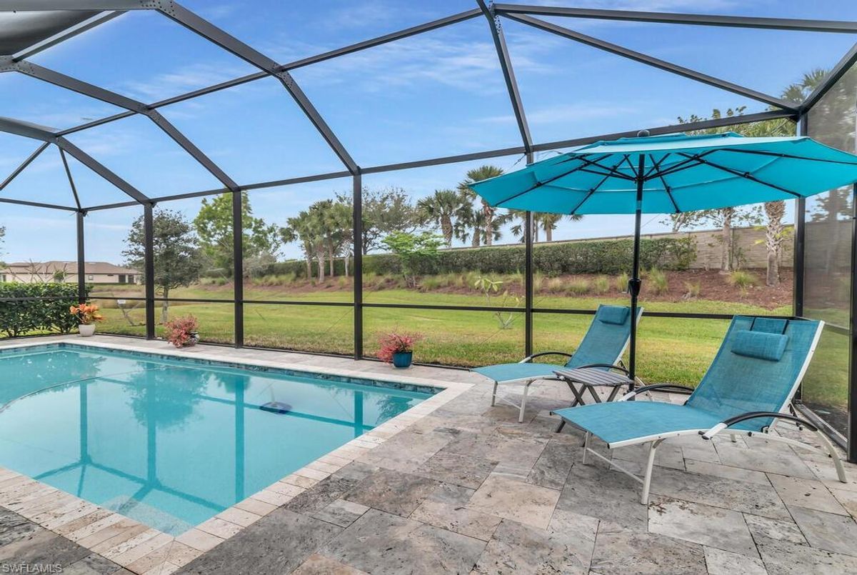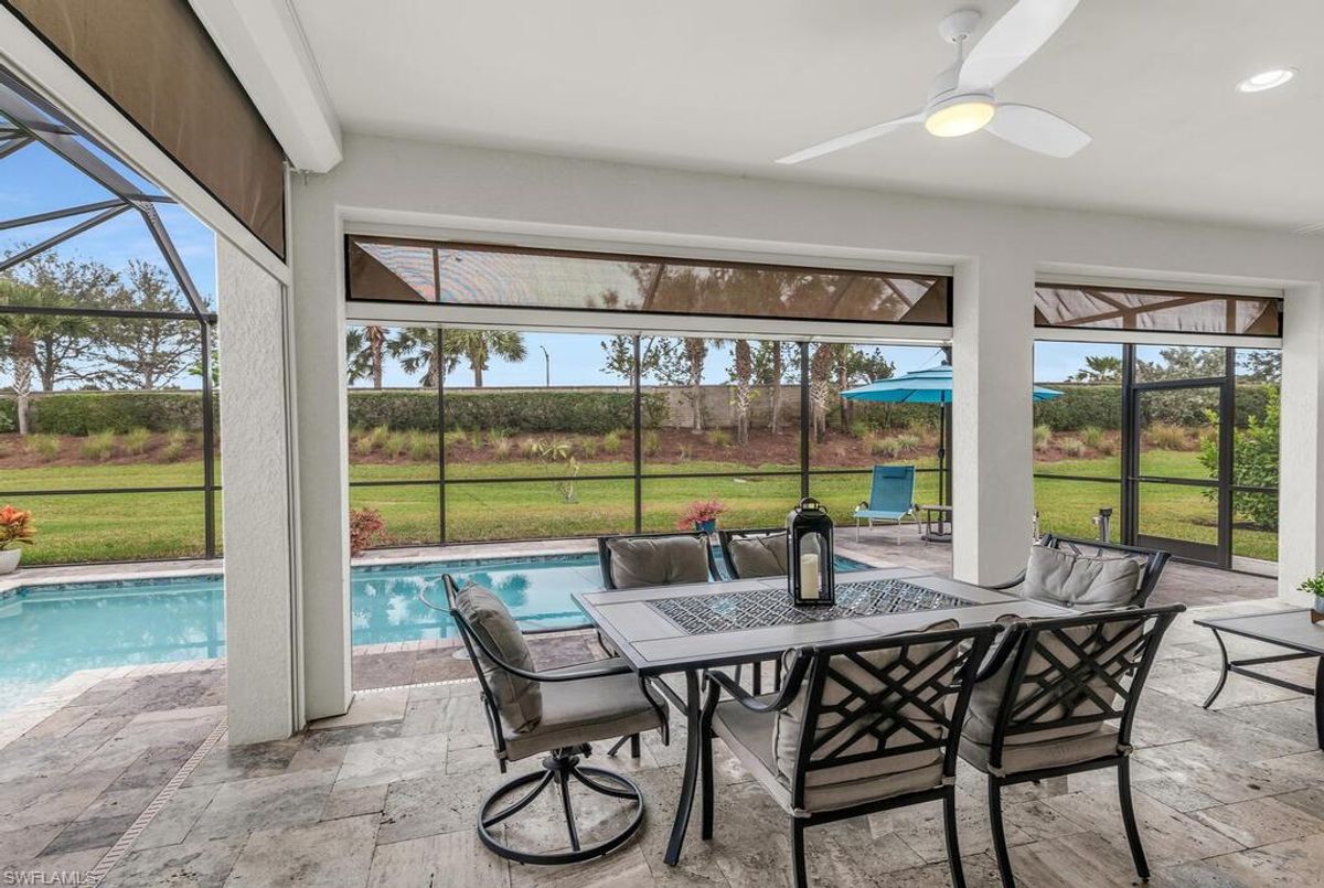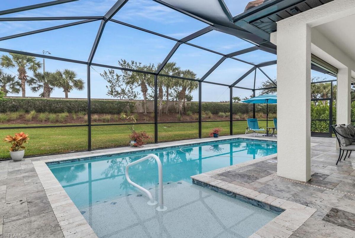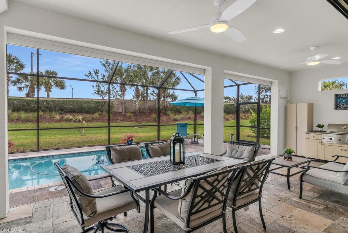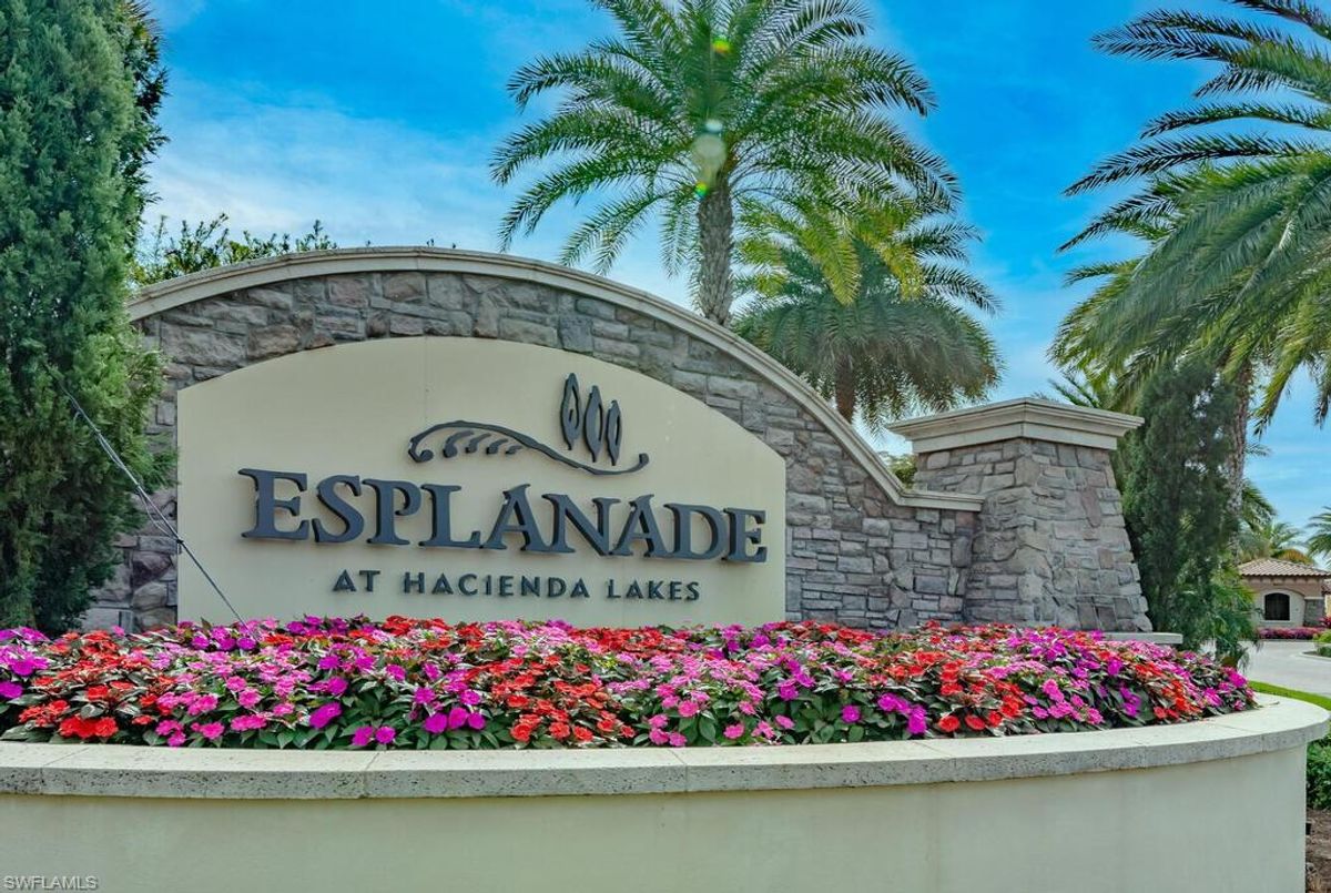 NEW DREAM PRICE  to welcome you home to this stunning Farnese model 2 BR + Den that has plenty of room for a 3rd Bedroom! This FURNISHED pool home, with WHOLE HOUSE 22KW GENERAC GENERATOR is nestled on a larger, premium corner lot cul-de sac setting, in the popular Esplanade of Hacienda Lakes ~a NATURAL GAS community. This home really lives much LARGER with 2 versatile rooms for your choice of formal Dining, Den / Office, Music room, or easily convert to a 3rd BEDROOM.  Step inside and be greeted by 10ft high ceilings, tile flooring and the spacious open-concept flow between Living room, Kitchen & Dining area that seamlessly blends indoor and outdoor living. Triple sliding doors open to the large screened in Lanai, protected by STORM SMART motorized shades, a custom gas grill summer kitchen and heated saltwater pool to enjoy outdoor living! Total privacy is offered between 2 large Bedrooms with FULL Bath ensuites, a Guest Powder Room and 2 additional large versatile rooms to meet your needs. The Chef's gourmet kitchen offers White 42" wood Shaker style cabinets, a 10ft quartz island, large walk in Pantry, gas range W/ convection & air fry cooking and instant hot water! The large Laundry Room includes a utility sink w/ washer & dryer. Esplanade residents enjoy their beautiful 6,500 sq ft Clubhouse with full catering kitchen, Social & Card room, Billiards, 24/7 full Fitness Gym, Resistance pool & Lap pool, Hot tub, Pickleball, Tennis & Bocce Courts, Play Park & Dog Parks. All this is located at the crossroads of Naples & Marco Island with pristine beaches and famous Naples 5th Ave. Our SOCIAL EVENTS ARE AMAZING! Come be my neighbor and love living here too! *NO FLOOD INSURANCE NEEDED AND VERY LOW HOA FEES*  Be sure to Watch the Tour!