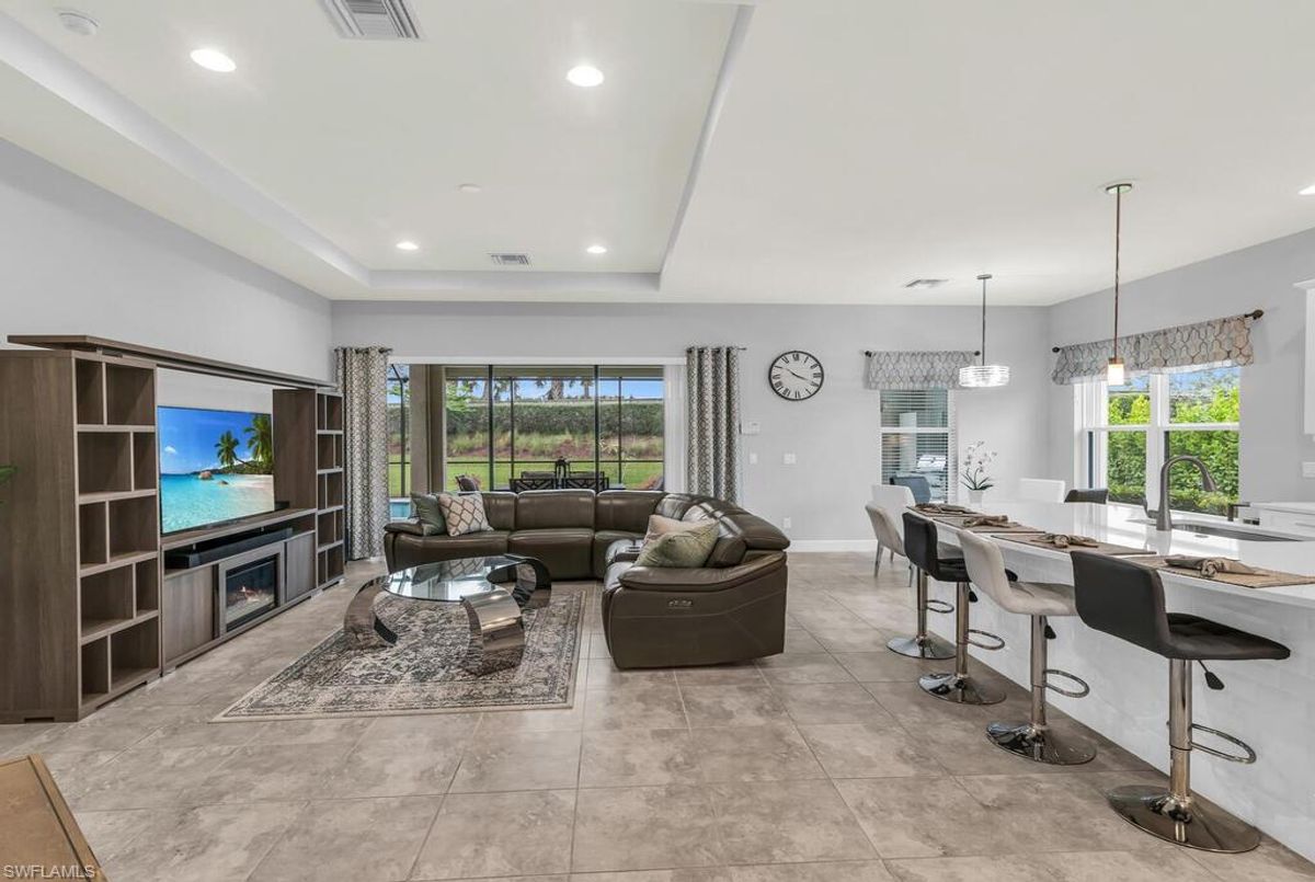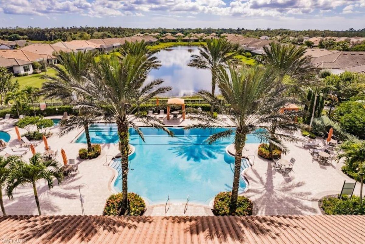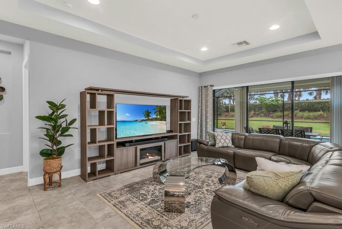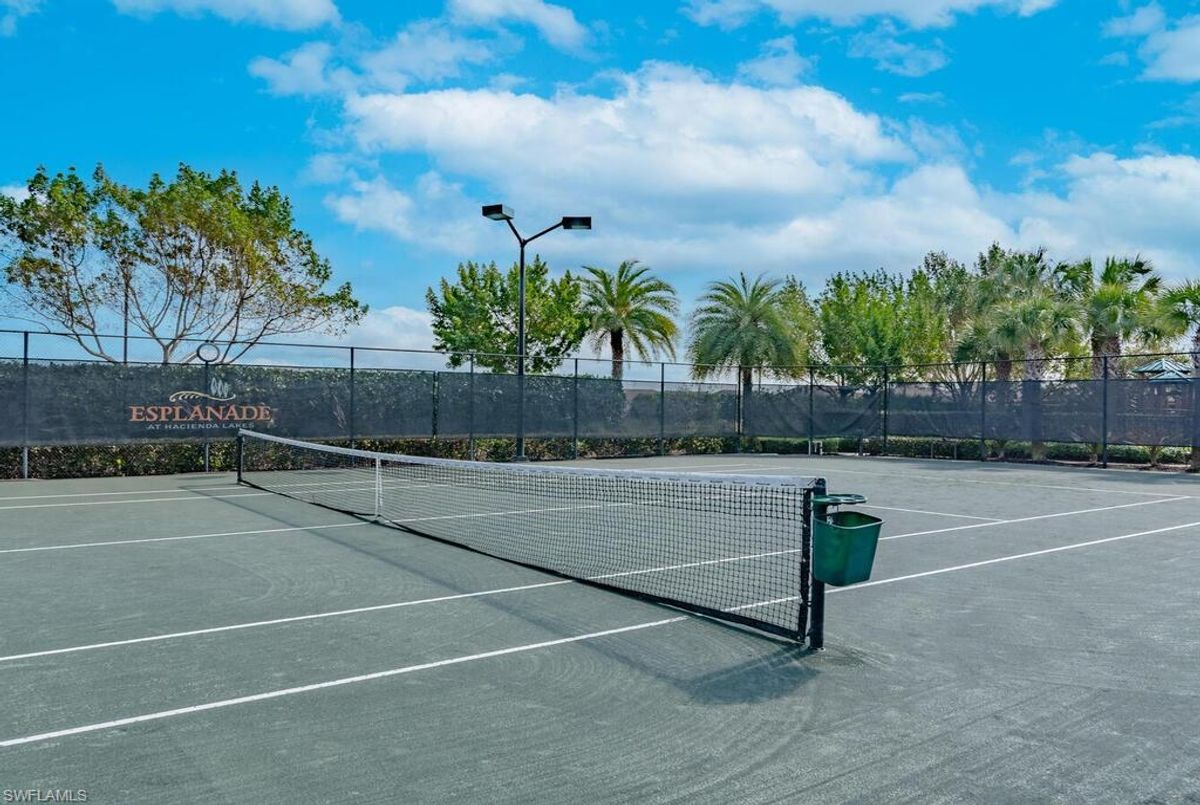 NEW DREAM PRICE  to welcome you home to this stunning Farnese model 2 BR + Den that has plenty of room for a 3rd Bedroom! This FURNISHED pool home, with WHOLE HOUSE 22KW GENERAC GENERATOR is nestled on a larger, premium corner lot cul-de sac setting, in the popular Esplanade of Hacienda Lakes ~a NATURAL GAS community. This home really lives much LARGER with 2 versatile rooms for your choice of formal Dining, Den / Office, Music room, or easily convert to a 3rd BEDROOM.  Step inside and be greeted by 10ft high ceilings, tile flooring and the spacious open-concept flow between Living room, Kitchen & Dining area that seamlessly blends indoor and outdoor living. Triple sliding doors open to the large screened in Lanai, protected by STORM SMART motorized shades, a custom gas grill summer kitchen and heated saltwater pool to enjoy outdoor living! Total privacy is offered between 2 large Bedrooms with FULL Bath ensuites, a Guest Powder Room and 2 additional large versatile rooms to meet your needs. The Chef's gourmet kitchen offers White 42" wood Shaker style cabinets, a 10ft quartz island, large walk in Pantry, gas range W/ convection & air fry cooking and instant hot water! The large Laundry Room includes a utility sink w/ washer & dryer. Esplanade residents enjoy their beautiful 6,500 sq ft Clubhouse with full catering kitchen, Social & Card room, Billiards, 24/7 full Fitness Gym, Resistance pool & Lap pool, Hot tub, Pickleball, Tennis & Bocce Courts, Play Park & Dog Parks. All this is located at the crossroads of Naples & Marco Island with pristine beaches and famous Naples 5th Ave. Our SOCIAL EVENTS ARE AMAZING! Come be my neighbor and love living here too! *NO FLOOD INSURANCE NEEDED AND VERY LOW HOA FEES*  Be sure to Watch the Tour!