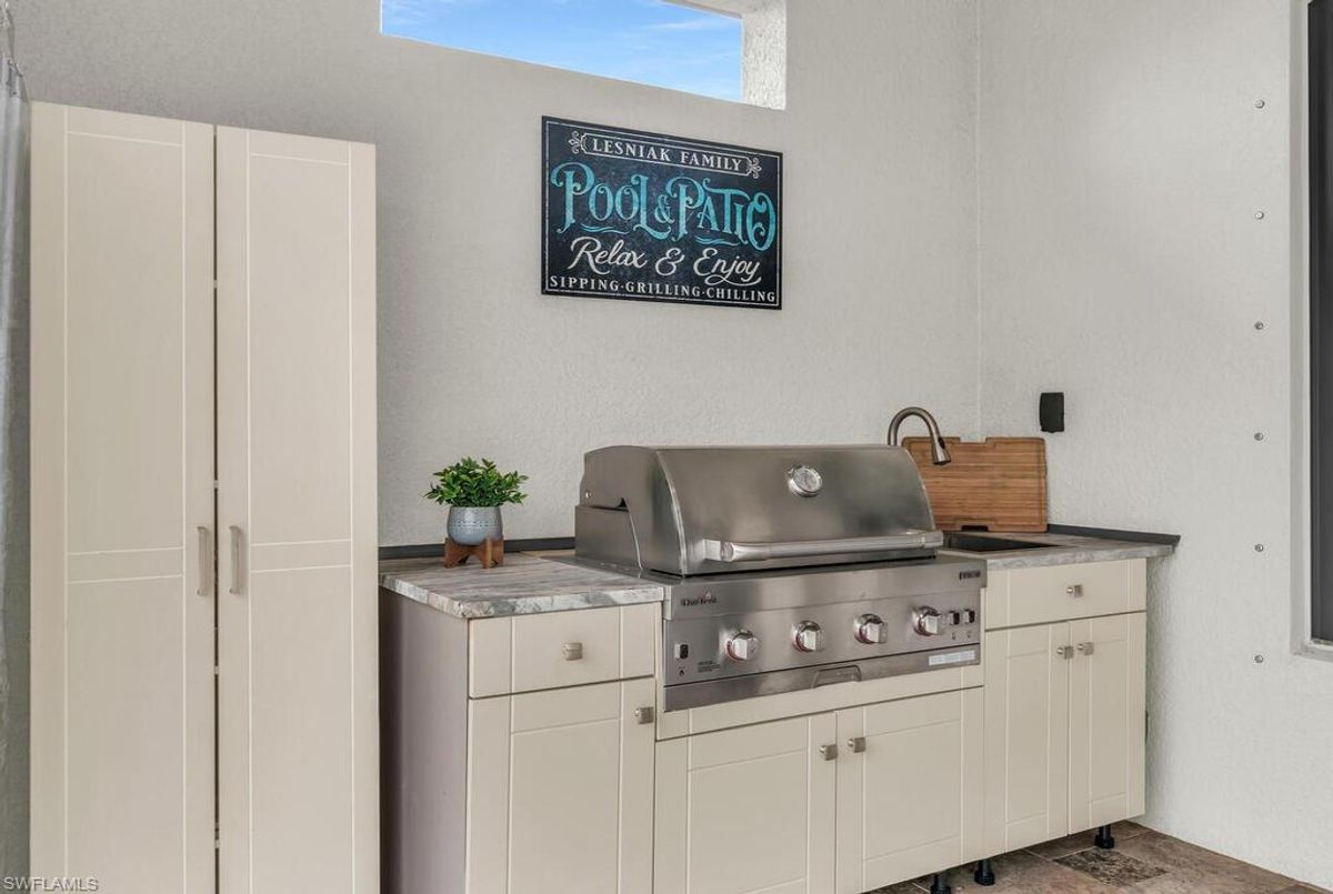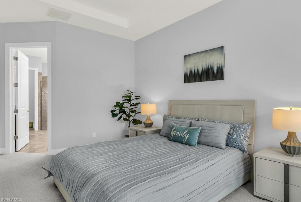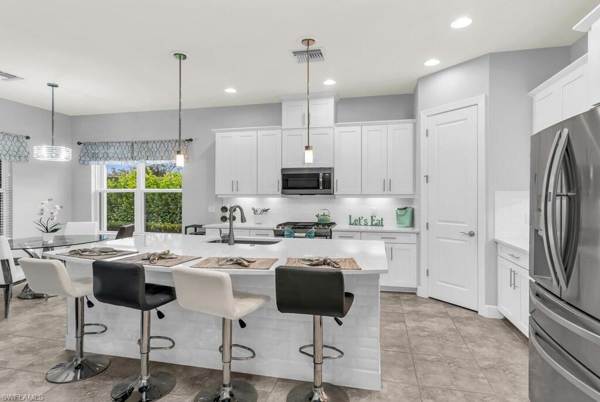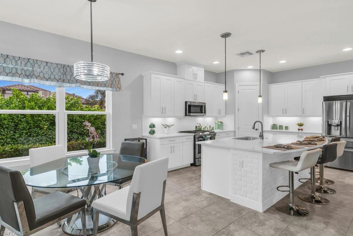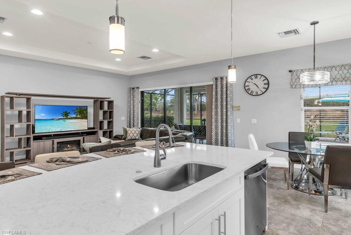 NEW DREAM PRICE  to welcome you home to this stunning Farnese model 2 BR + Den that has plenty of room for a 3rd Bedroom! This FURNISHED pool home, with WHOLE HOUSE 22KW GENERAC GENERATOR is nestled on a larger, premium corner lot cul-de sac setting, in the popular Esplanade of Hacienda Lakes ~a NATURAL GAS community. This home really lives much LARGER with 2 versatile rooms for your choice of formal Dining, Den / Office, Music room, or easily convert to a 3rd BEDROOM.  Step inside and be greeted by 10ft high ceilings, tile flooring and the spacious open-concept flow between Living room, Kitchen & Dining area that seamlessly blends indoor and outdoor living. Triple sliding doors open to the large screened in Lanai, protected by STORM SMART motorized shades, a custom gas grill summer kitchen and heated saltwater pool to enjoy outdoor living! Total privacy is offered between 2 large Bedrooms with FULL Bath ensuites, a Guest Powder Room and 2 additional large versatile rooms to meet your needs. The Chef's gourmet kitchen offers White 42" wood Shaker style cabinets, a 10ft quartz island, large walk in Pantry, gas range W/ convection & air fry cooking and instant hot water! The large Laundry Room includes a utility sink w/ washer & dryer. Esplanade residents enjoy their beautiful 6,500 sq ft Clubhouse with full catering kitchen, Social & Card room, Billiards, 24/7 full Fitness Gym, Resistance pool & Lap pool, Hot tub, Pickleball, Tennis & Bocce Courts, Play Park & Dog Parks. All this is located at the crossroads of Naples & Marco Island with pristine beaches and famous Naples 5th Ave. Our SOCIAL EVENTS ARE AMAZING! Come be my neighbor and love living here too! *NO FLOOD INSURANCE NEEDED AND VERY LOW HOA FEES*  Be sure to Watch the Tour!