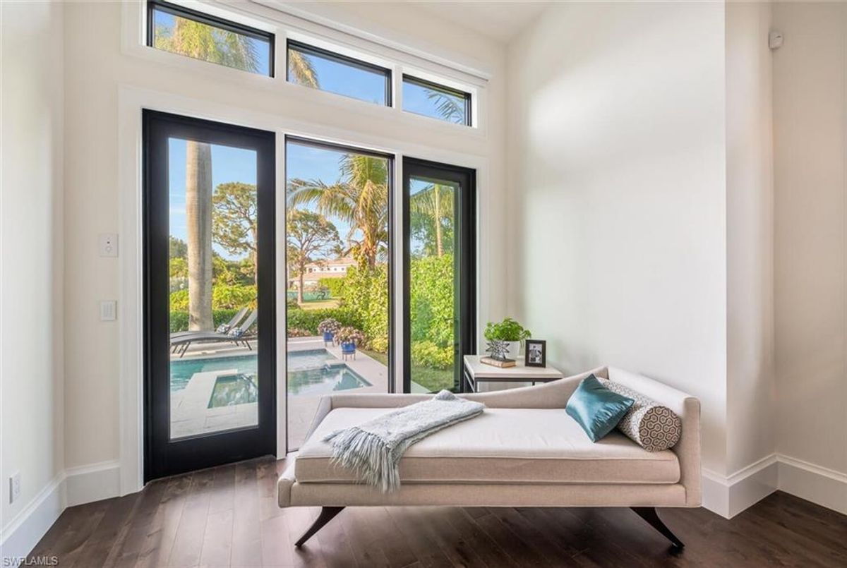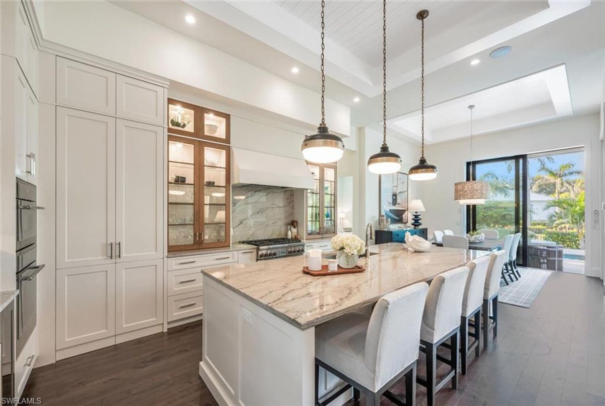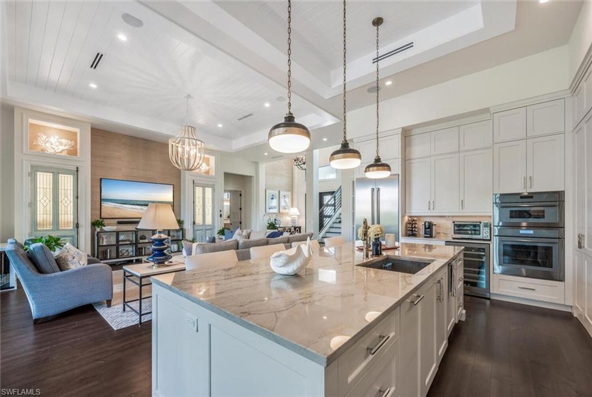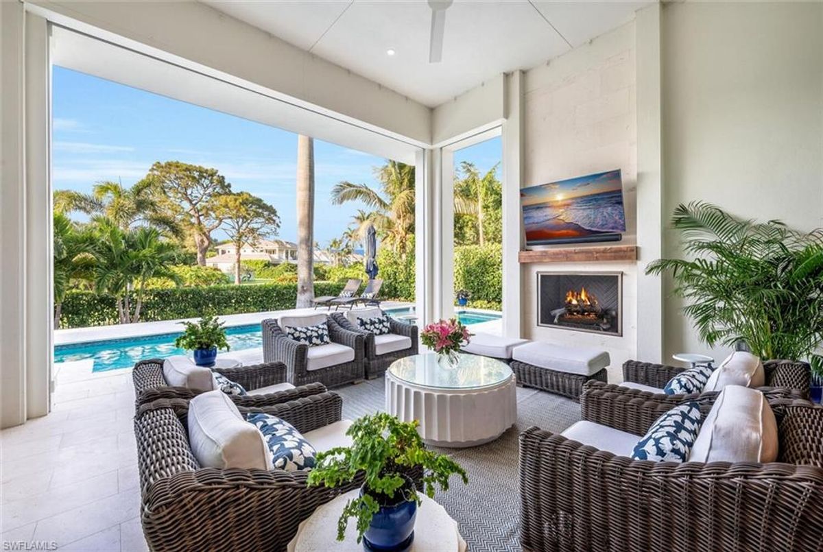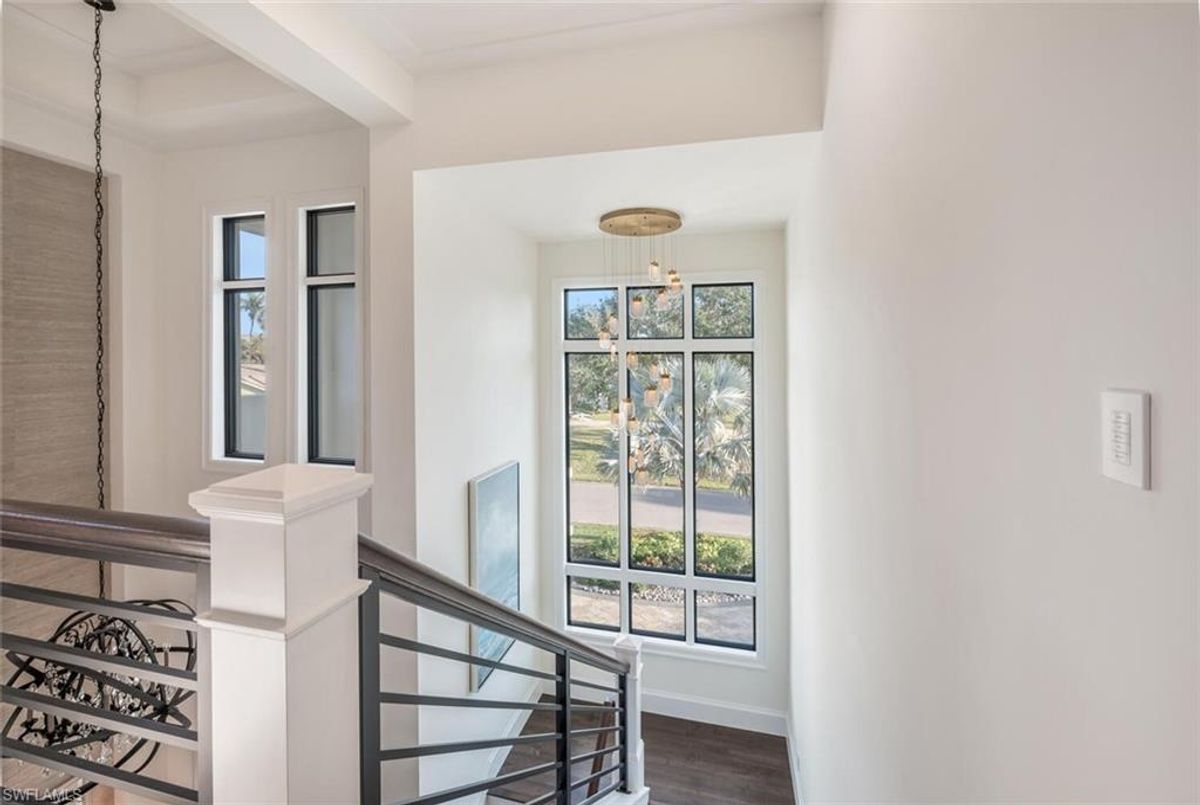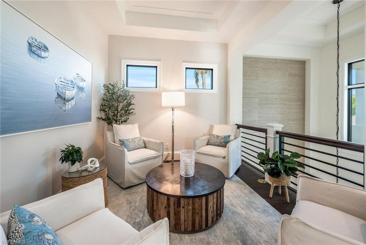 This 2020 carefully crafted dream home in Park Shore, Point West community is a rare offering on Parkview LN. The beautiful 2-level home is 5 bedrooms, all en-suite, one currently decorated as an office. The amazing outdoor living space with fire pit overlooking a rare Parkshore green space offers a serene quiet setting for your FL lifestyle. Walk into this home through beautifully crafted wood and glass front doors to a large open great room living area with custom kitchen island, range with gas cooktop, 2 ovens, wall microwave, and a large walk-in pantry. Journey upstairs on a grand staircase to 3 en-suite bedrooms, loft area, and wet bar. Don't forget to glance at the beautiful chandeliers throughout the home for a welcoming chic coastal feel. Home is equip with an elevator, and a hidden closet that only you will know it is there! The outdoor living space also offers gas kitchen, dining, gas fireplace, pool/spa and remote bug screens. The 2 car garage has plenty of room for added storage and provides two entrances into the home. Vantage smart lighting system, complete surround sound with Sonos bar for easy listening music, and smart TV's are only some of the upgrades you'll enjoy. All Hurricane impact windows and doors. Point West community is a 16 home HOA, with a community pool and gathering place. The community is small, quaint and very friendly, offering weekly get togethers for cocktails, snacks and conversation. Residents of Park Shore are invited to join in on the fun at the private Park Shore Beach. No Hurricane Ian damage and peace of mind when you lock and go. 725 Parkview LN is a must see in the Park Shore community. Some furniture negotiable, with some exclusions, and some furniture can convey. A must see home in the Park Shore area...