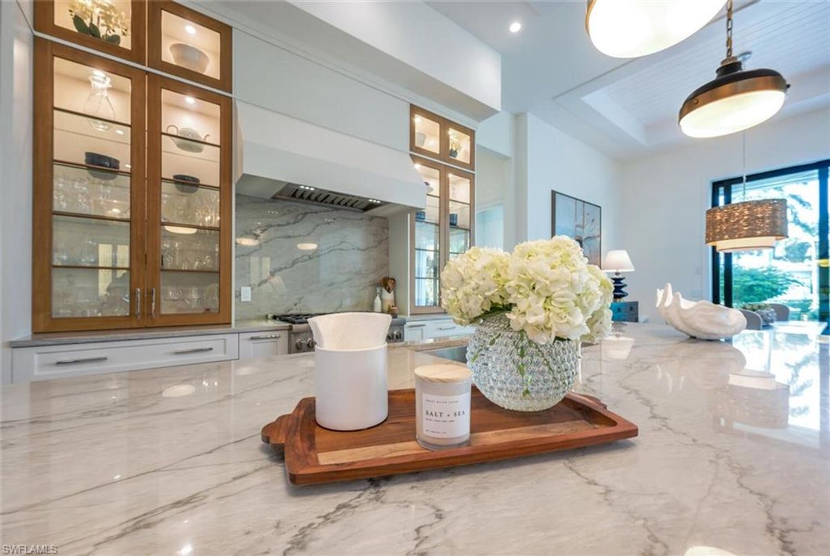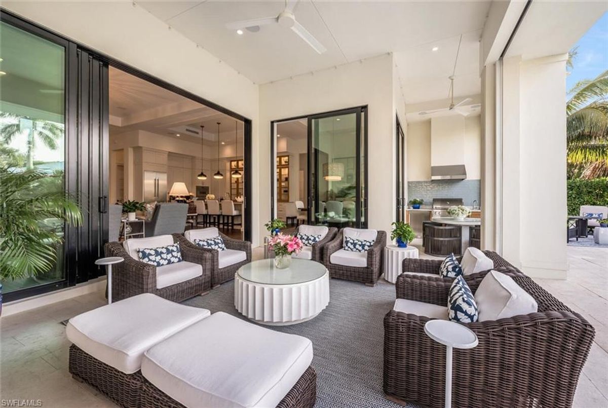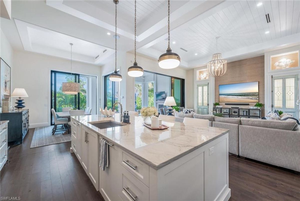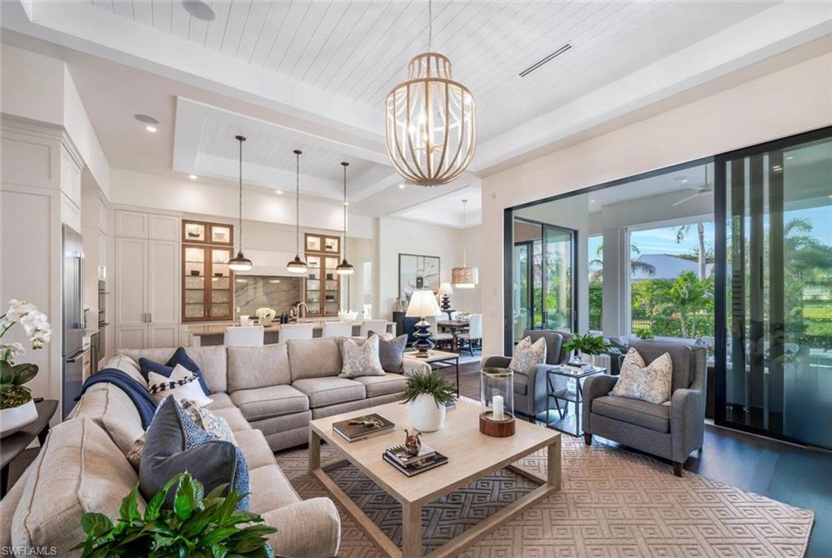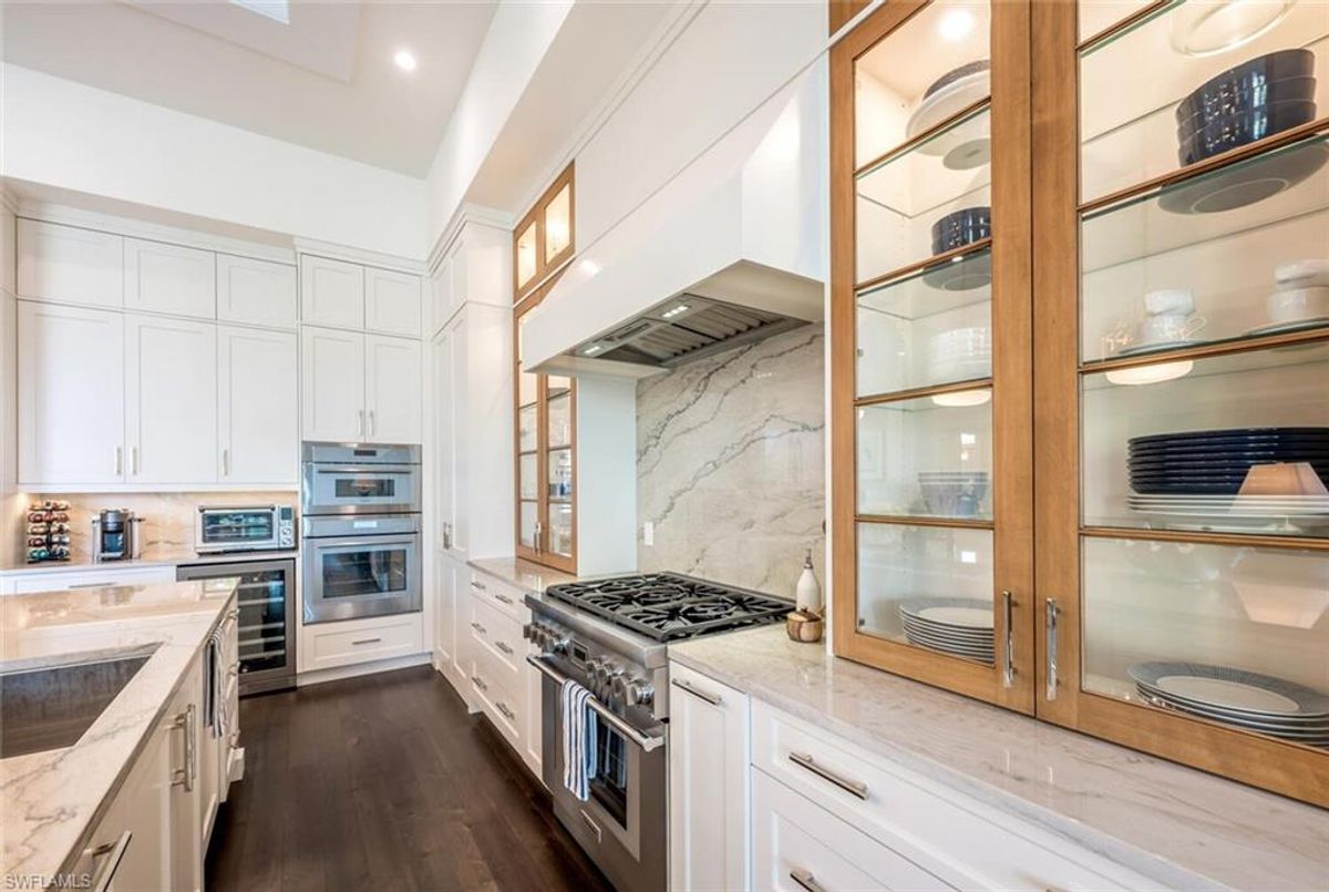 This 2020 carefully crafted dream home in Park Shore, Point West community is a rare offering on Parkview LN. The beautiful 2-level home is 5 bedrooms, all en-suite, one currently decorated as an office. The amazing outdoor living space with fire pit overlooking a rare Parkshore green space offers a serene quiet setting for your FL lifestyle. Walk into this home through beautifully crafted wood and glass front doors to a large open great room living area with custom kitchen island, range with gas cooktop, 2 ovens, wall microwave, and a large walk-in pantry. Journey upstairs on a grand staircase to 3 en-suite bedrooms, loft area, and wet bar. Don't forget to glance at the beautiful chandeliers throughout the home for a welcoming chic coastal feel. Home is equip with an elevator, and a hidden closet that only you will know it is there! The outdoor living space also offers gas kitchen, dining, gas fireplace, pool/spa and remote bug screens. The 2 car garage has plenty of room for added storage and provides two entrances into the home. Vantage smart lighting system, complete surround sound with Sonos bar for easy listening music, and smart TV's are only some of the upgrades you'll enjoy. All Hurricane impact windows and doors. Point West community is a 16 home HOA, with a community pool and gathering place. The community is small, quaint and very friendly, offering weekly get togethers for cocktails, snacks and conversation. Residents of Park Shore are invited to join in on the fun at the private Park Shore Beach. No Hurricane Ian damage and peace of mind when you lock and go. 725 Parkview LN is a must see in the Park Shore community. Some furniture negotiable, with some exclusions, and some furniture can convey. A must see home in the Park Shore area...