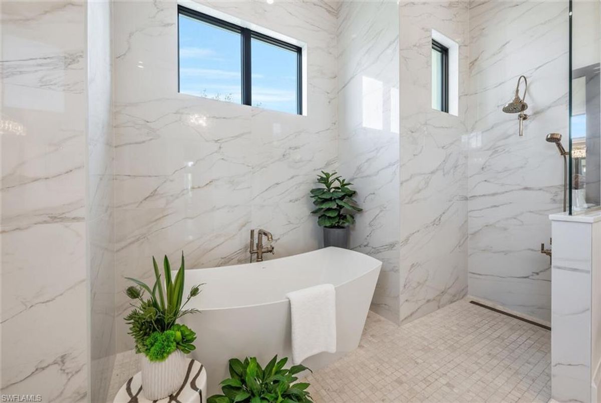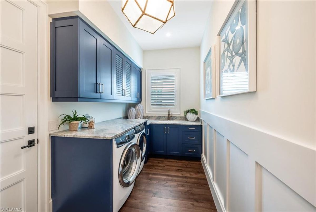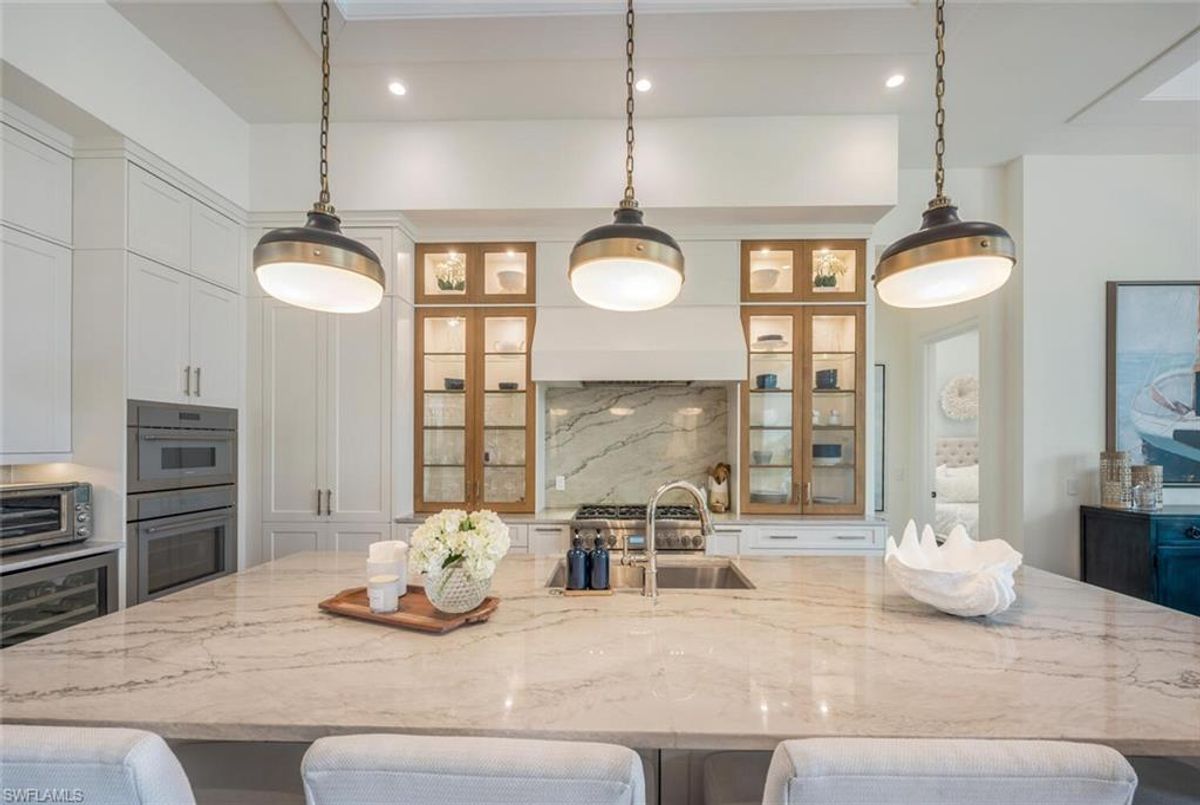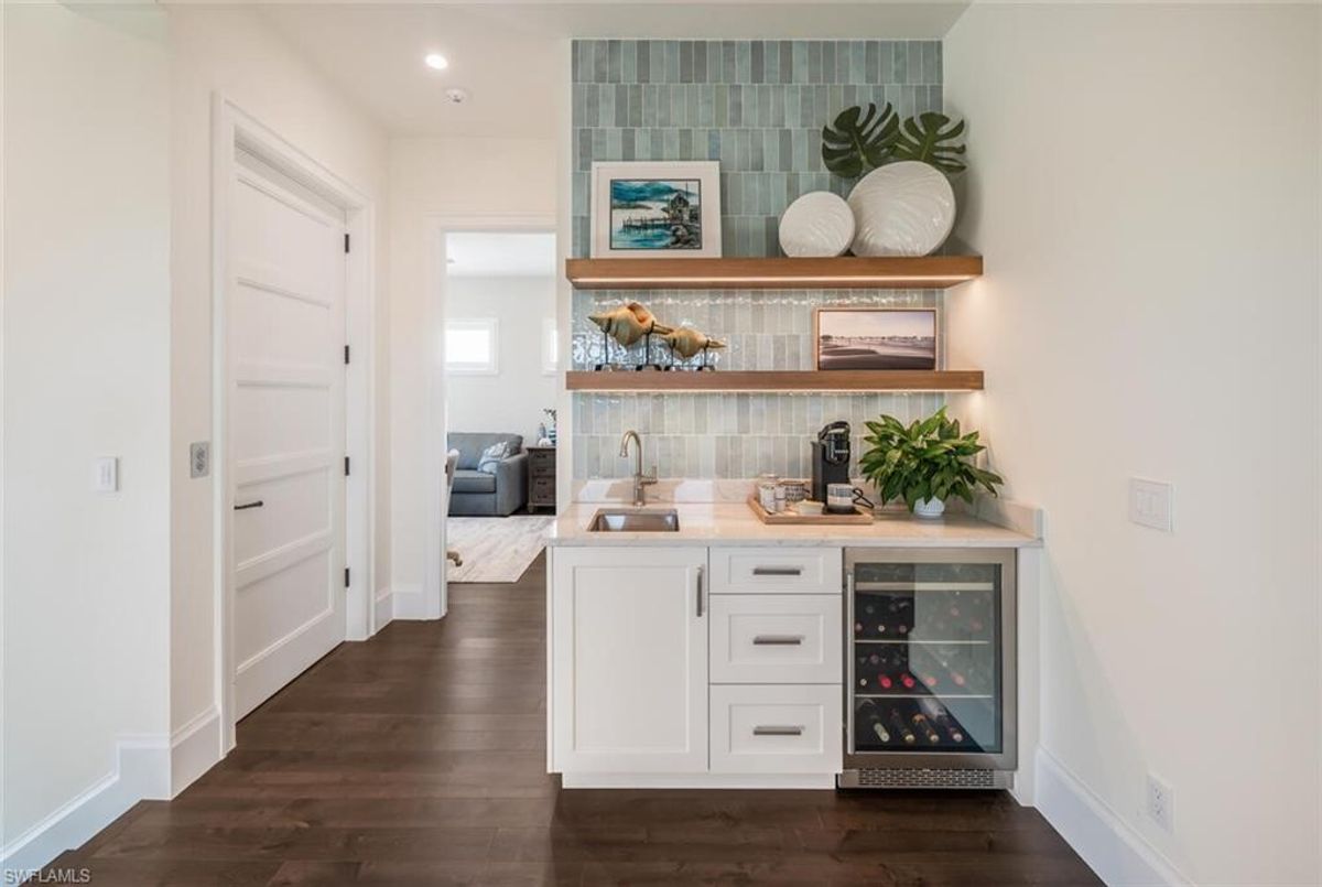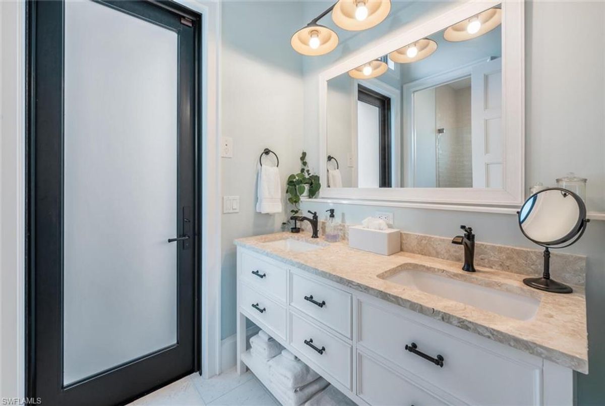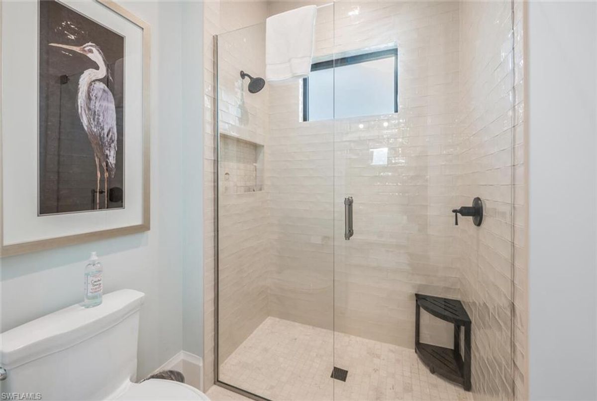 This 2020 carefully crafted dream home in Park Shore, Point West community is a rare offering on Parkview LN. The beautiful 2-level home is 5 bedrooms, all en-suite, one currently decorated as an office. The amazing outdoor living space with fire pit overlooking a rare Parkshore green space offers a serene quiet setting for your FL lifestyle. Walk into this home through beautifully crafted wood and glass front doors to a large open great room living area with custom kitchen island, range with gas cooktop, 2 ovens, wall microwave, and a large walk-in pantry. Journey upstairs on a grand staircase to 3 en-suite bedrooms, loft area, and wet bar. Don't forget to glance at the beautiful chandeliers throughout the home for a welcoming chic coastal feel. Home is equip with an elevator, and a hidden closet that only you will know it is there! The outdoor living space also offers gas kitchen, dining, gas fireplace, pool/spa and remote bug screens. The 2 car garage has plenty of room for added storage and provides two entrances into the home. Vantage smart lighting system, complete surround sound with Sonos bar for easy listening music, and smart TV's are only some of the upgrades you'll enjoy. All Hurricane impact windows and doors. Point West community is a 16 home HOA, with a community pool and gathering place. The community is small, quaint and very friendly, offering weekly get togethers for cocktails, snacks and conversation. Residents of Park Shore are invited to join in on the fun at the private Park Shore Beach. No Hurricane Ian damage and peace of mind when you lock and go. 725 Parkview LN is a must see in the Park Shore community. Some furniture negotiable, with some exclusions, and some furniture can convey. A must see home in the Park Shore area...