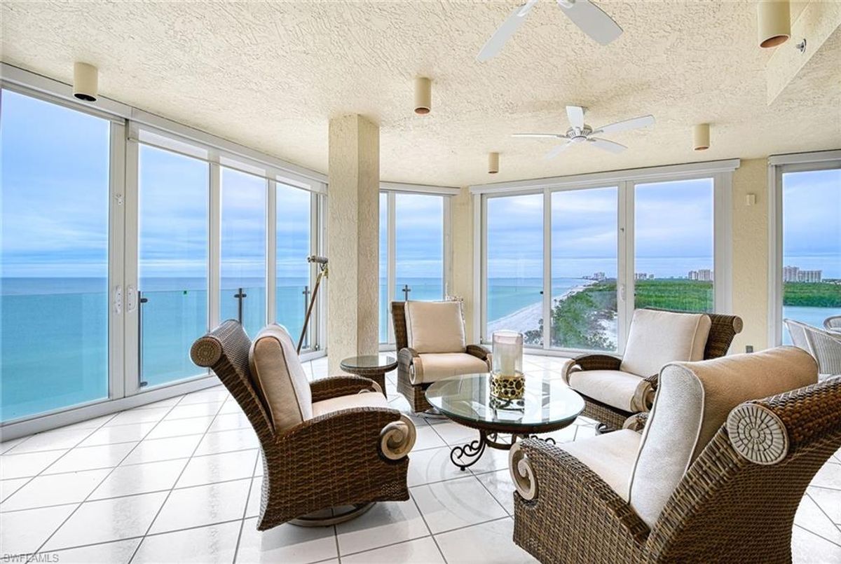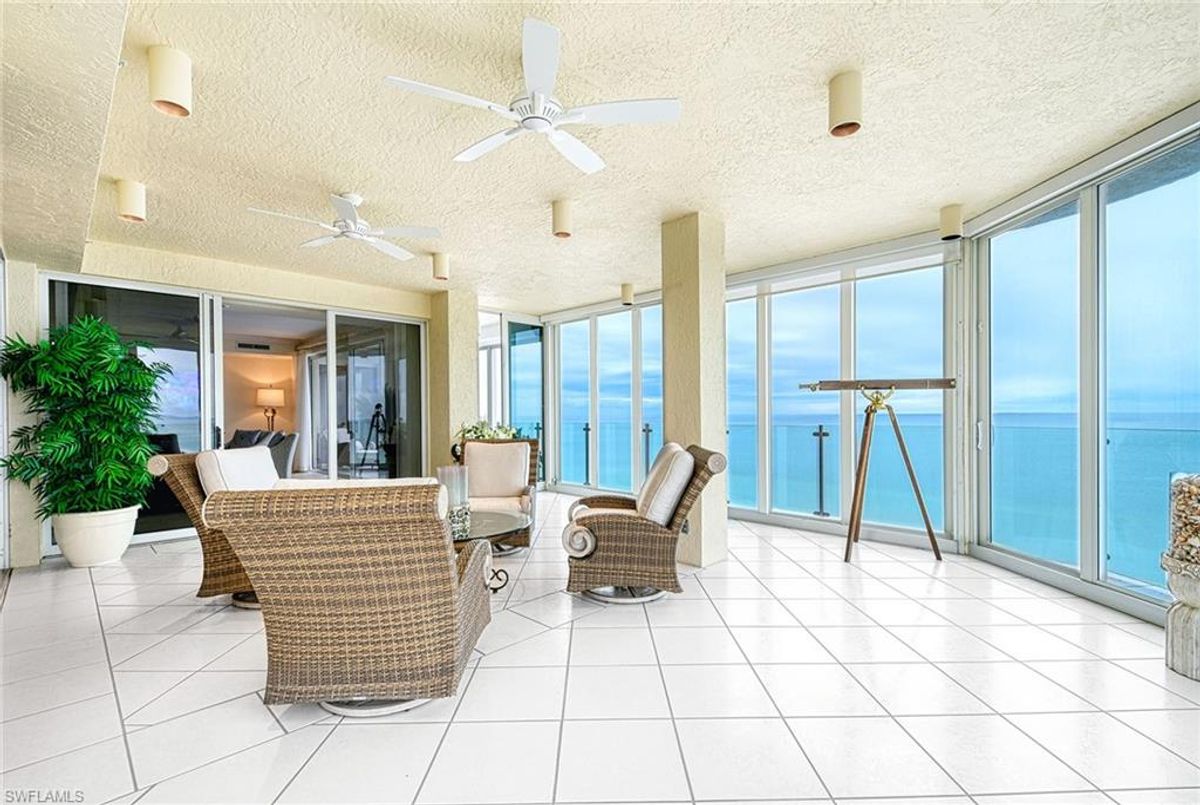 A once in a lifetime opportunity to reside in the prestigious and rarely available Seapoint at Naples Cay. On the sixth floor on the preferred north side of the building. This oasis offers almost 5,000 square feet under air and complete privacy at the ideal elevation with arguably the best unobstructed breathtaking panoramic views of the Gulf of Mexico and Clam Bay. The views from the sliding glass doors complement the modern exterior glass rails adopted by the building and ideally balance the 1,000-plus-square-foot balcony with a built-in grill. Never miss a sunset from this four-bedroom, four-bath home and it includes a two-car private garage. Seapoint is an intimate building with only 28 residences, a luxurious lifestyle boasting amenities that include an elegant community room, infinity edge pool, cutting-edge fitness room, two well-appointed guest suites and concierge management. This direct gulf front enclave is only steps from the beautiful white sandy beach and a private kayak launch into the bay. Naples Cay is conveniently between Park Shore and Pelican Bay, in walking distance to Waterside Shops offering fine dining and shopping, and centrally in Naples, with only a short drive to renowned 5th Avenue South and Mercato.