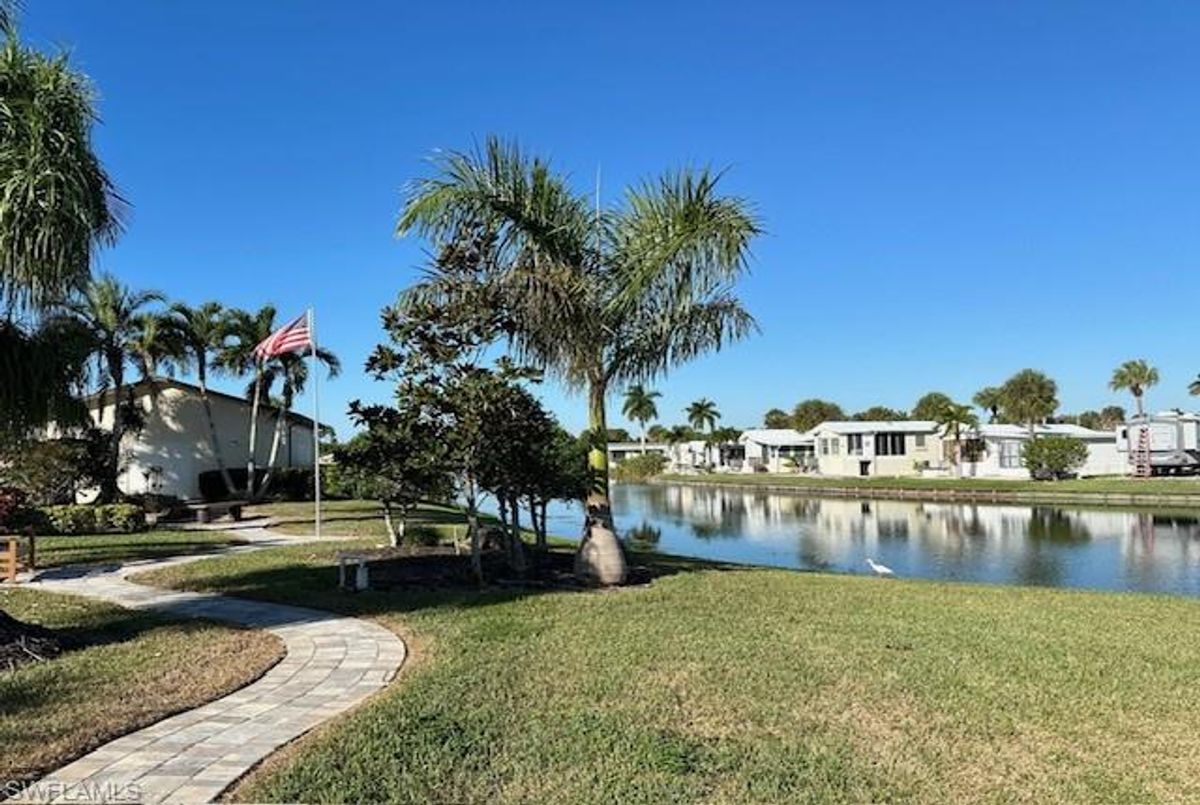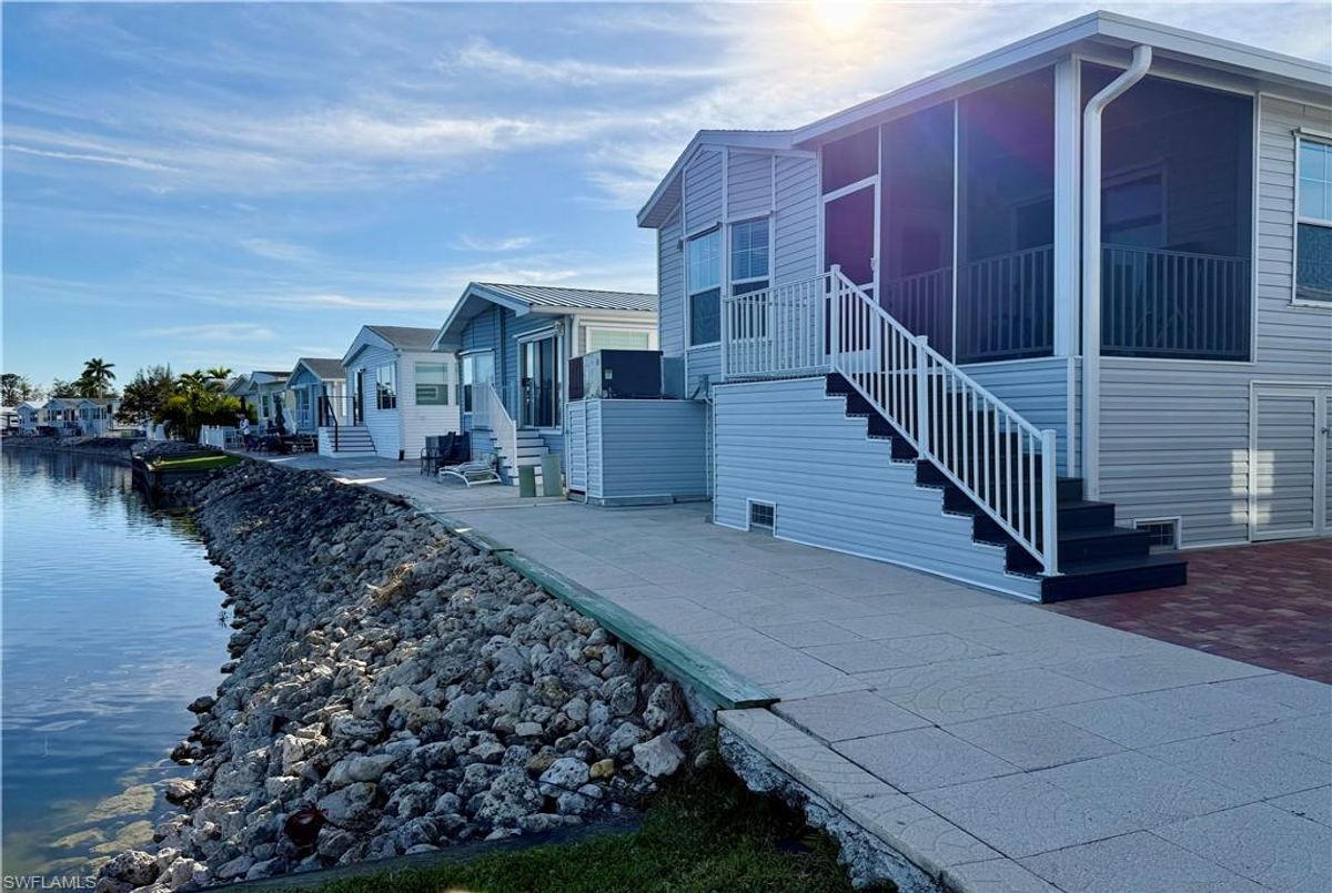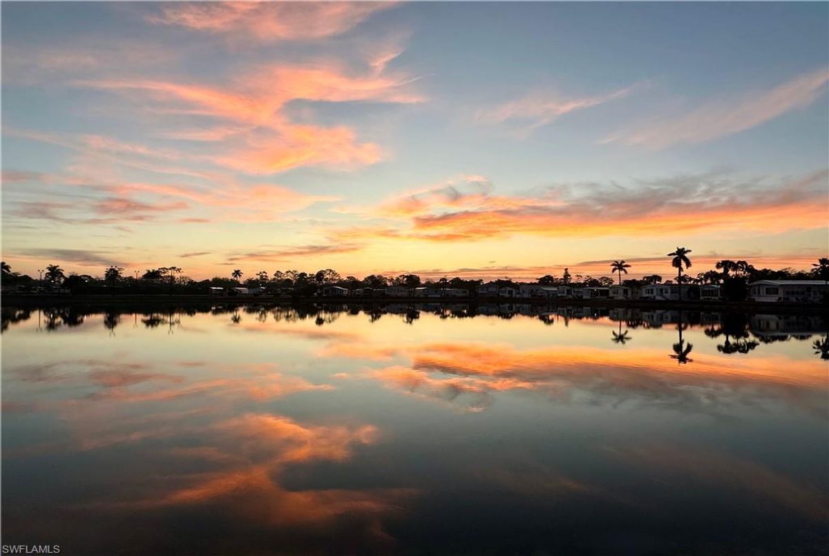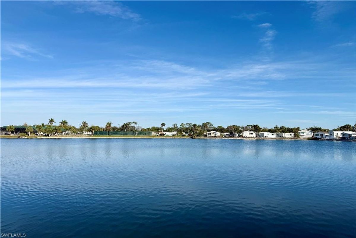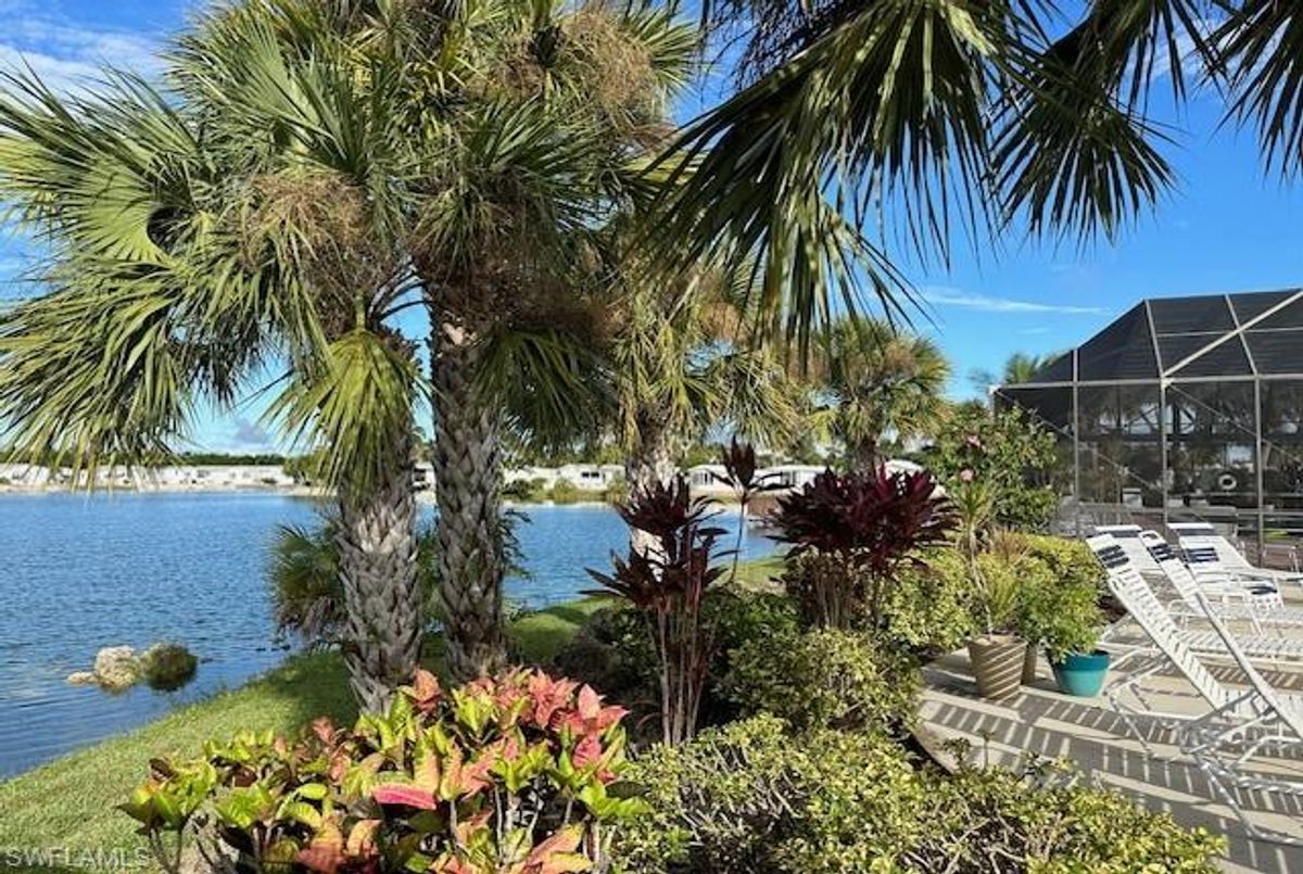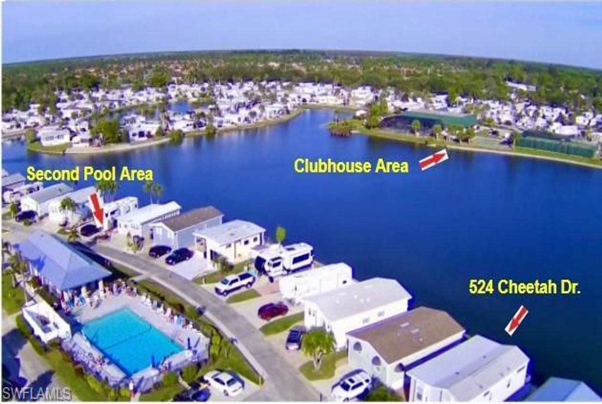Thank you for viewing 524 Cheetah Drive in the Imperial Wilderness Condominium Association of Naples, FL. This is a very active, gated, 55+ community where YOU OWN THE LAND. This outstanding 2Br/2Ba home was constructed in 2022 and 2023 and is situated on the water of the largest lake in the community. The home’s superlative position, near the center of the lake, provides a breathtaking sunrise view that can be enjoyed from the screened lanai, dining area, and rear patio. Additionally, the second pool area is diagonally across the street. The park model is a 2022 Skyline, Palm Bay model 2622, and the addition was completed in 2023. The color palette is tasteful, relaxing, and consistent. You will appreciate the attractive lighting fixtures and abundance of natural light. Both bathrooms are quite spacious and offer walk-in showers. The bathroom near the main bedroom has a large shower with double seats. The main bedroom offers a Tempur-Cloud Supreme split-king, built-in storage, and 2 closets. Throughout the home, there is crown molding. In the main bedroom and kitchen, there are trey ceilings. The kitchen contains Whirlpool and LG appliances. The laundry appliances are Bosch. In addition to ample storage within the house, the under-home storage area is huge. This storage location is high enough to store your bikes in a standing position. This beautiful home is being sold furnished. The HOA fee of $840. per quarter is very reasonable and covers many of your needs: water, lawn care, basic cable, trash/recycling, and community amenities. Community amenities include the following: 2 pools with spas, bocce, pickleball, pétanque, tennis, shuffleboard, billiards, ping pong, a library, clubhouse, dog parks, and an extremely active events calendar!