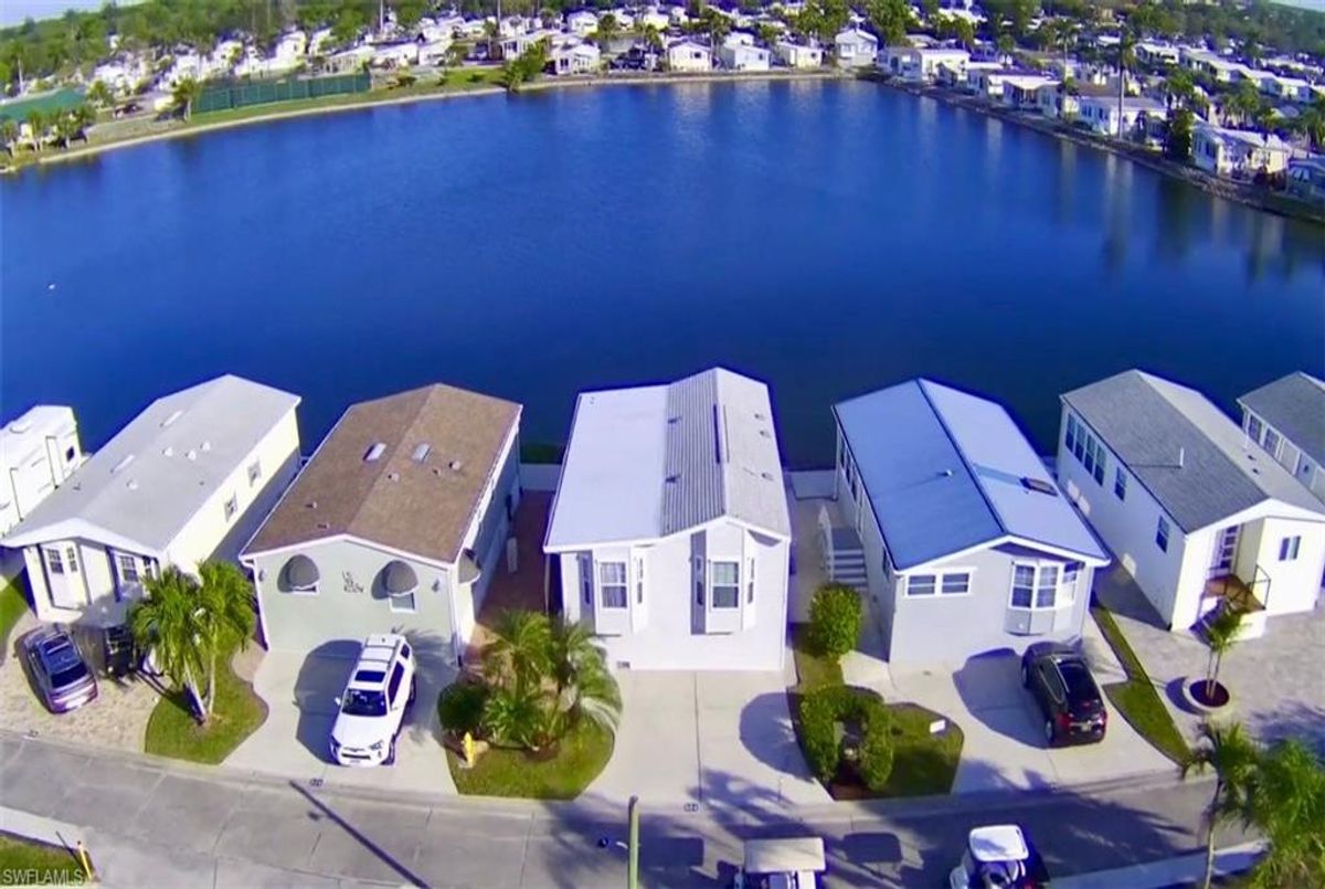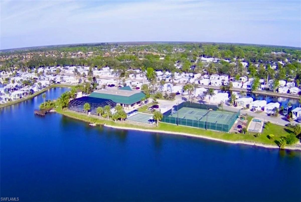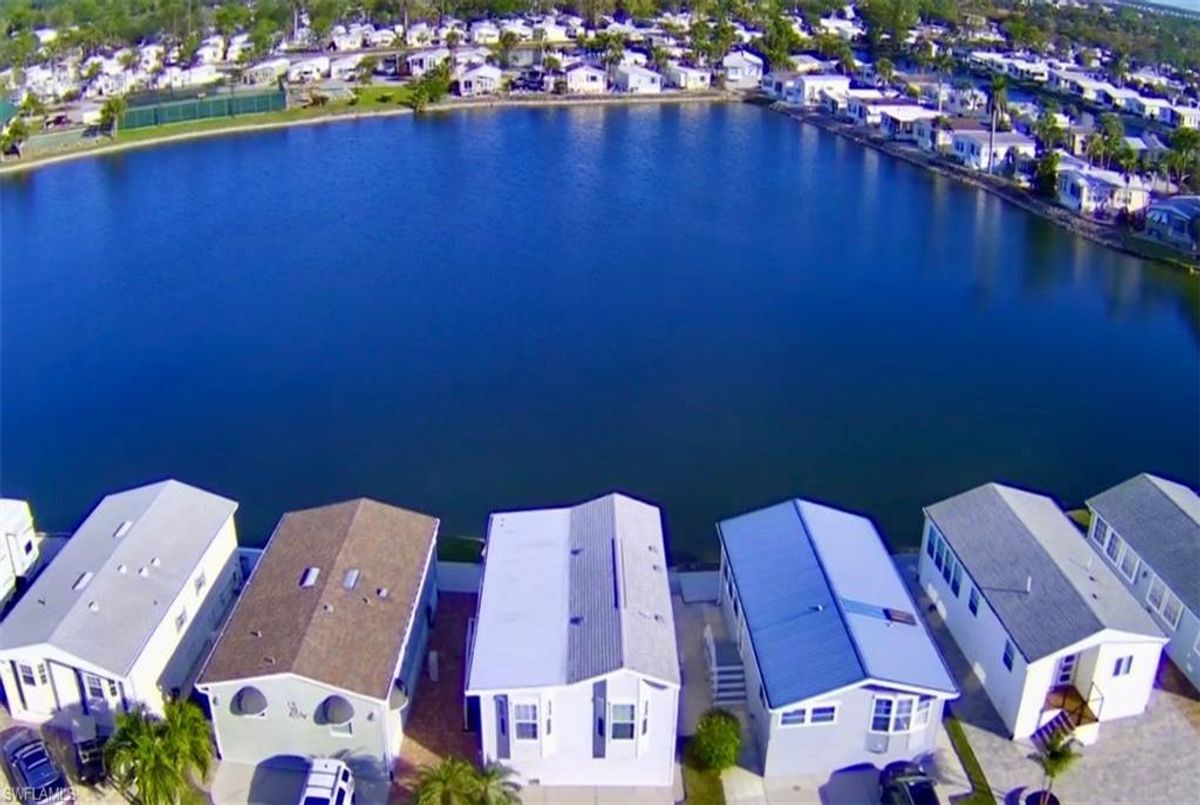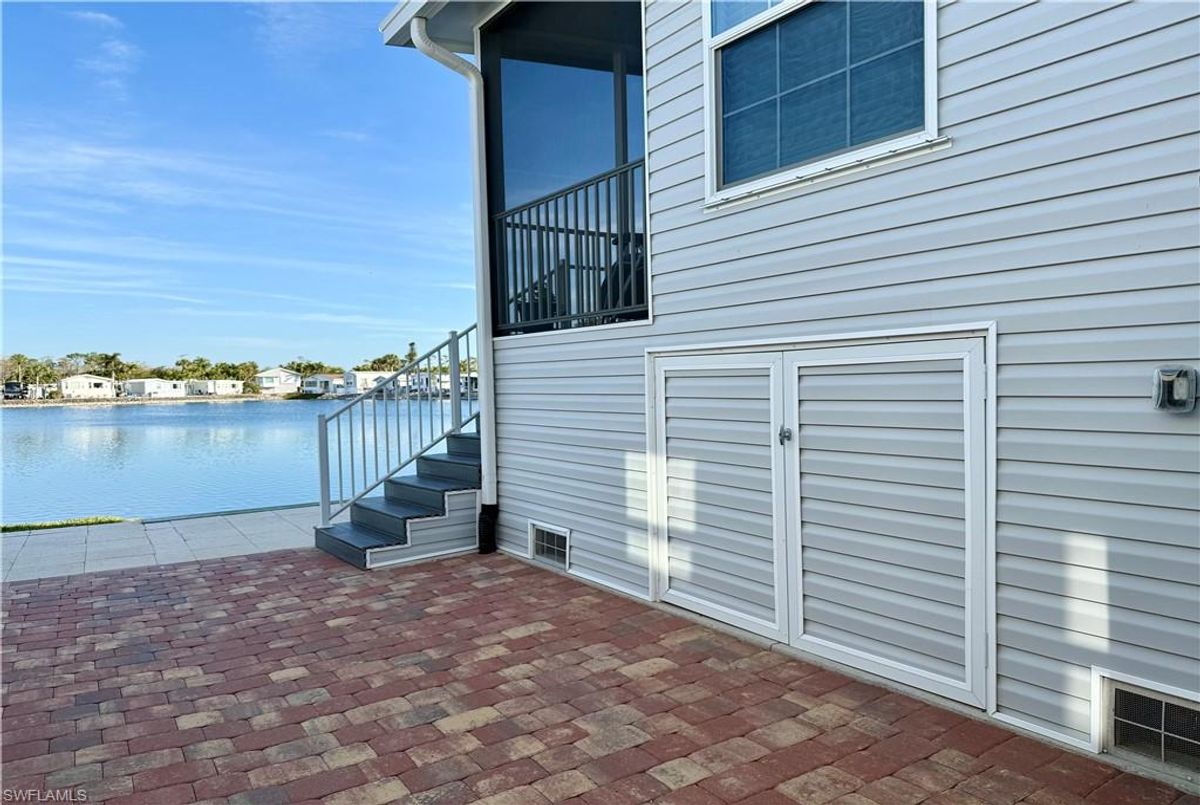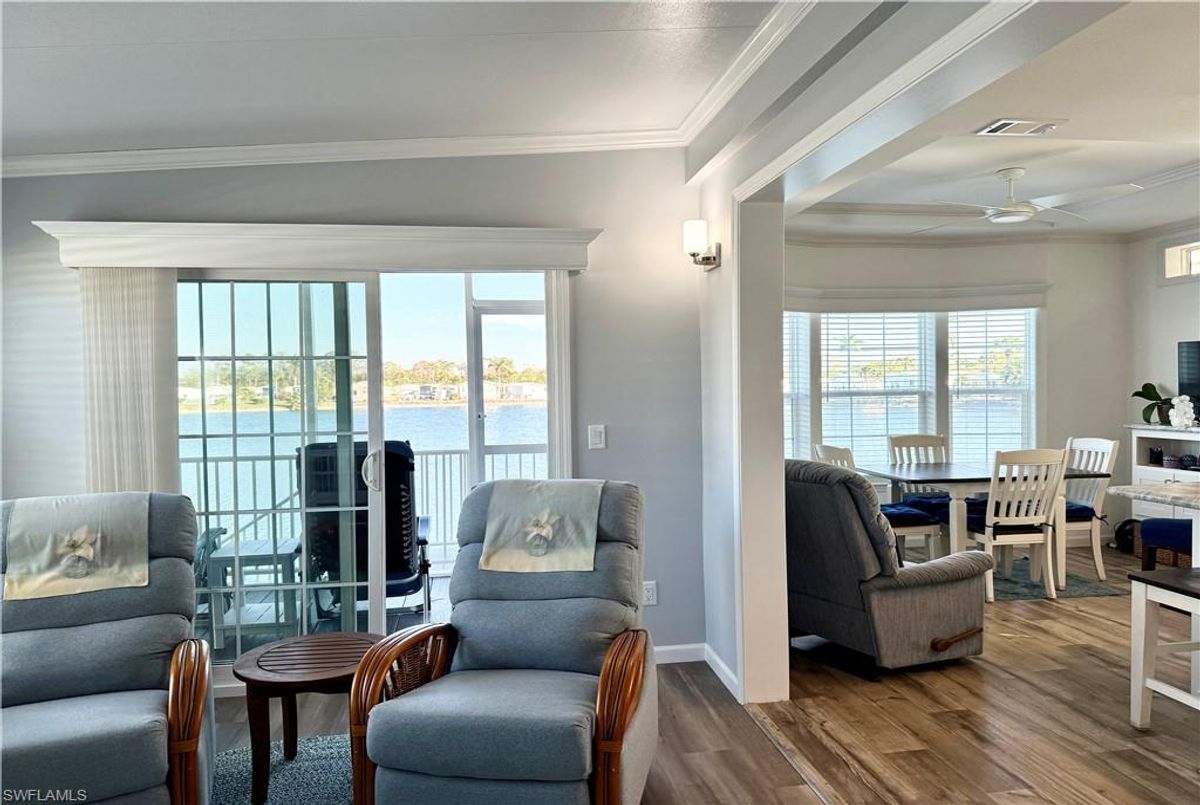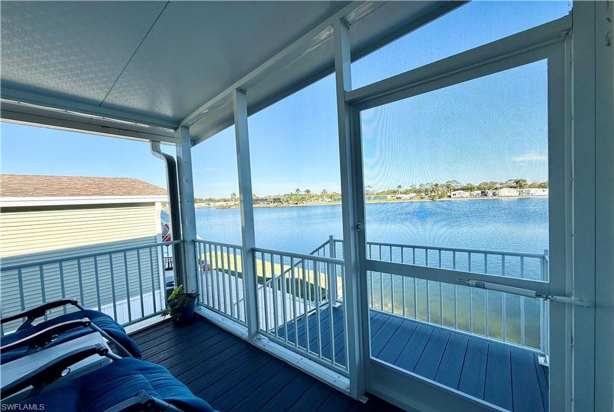 Thank you for viewing 524 Cheetah Drive in the Imperial Wilderness Condominium Association of Naples, FL. This is a very active, gated, 55+ community where YOU OWN THE LAND. This outstanding 2Br/2Ba home was constructed in 2022 and 2023 and is situated on the water of the largest lake in the community. The home’s superlative position, near the center of the lake, provides a breathtaking sunrise view that can be enjoyed from the screened lanai, dining area, and rear patio. Additionally, the second pool area is diagonally across the street. The park model is a 2022 Skyline, Palm Bay model 2622, and the addition was completed in 2023. The color palette is tasteful, relaxing, and consistent. You will appreciate the attractive lighting fixtures and abundance of natural light. Both bathrooms are quite spacious and offer walk-in showers. The bathroom near the main bedroom has a large shower with double seats. The main bedroom offers a Tempur-Cloud Supreme split-king, built-in storage, and 2 closets. Throughout the home, there is crown molding. In the main bedroom and kitchen, there are trey ceilings. The kitchen contains Whirlpool and LG appliances. The laundry appliances are Bosch. In addition to ample storage within the house, the under-home storage area is huge. This storage location is high enough to store your bikes in a standing position. This beautiful home is being sold furnished. The HOA fee of $840. per quarter is very reasonable and covers many of your needs: water, lawn care, basic cable, trash/recycling, and community amenities. Community amenities include the following: 2 pools with spas, bocce, pickleball, pétanque, tennis, shuffleboard, billiards, ping pong, a library, clubhouse, dog parks, and an extremely active events calendar!
