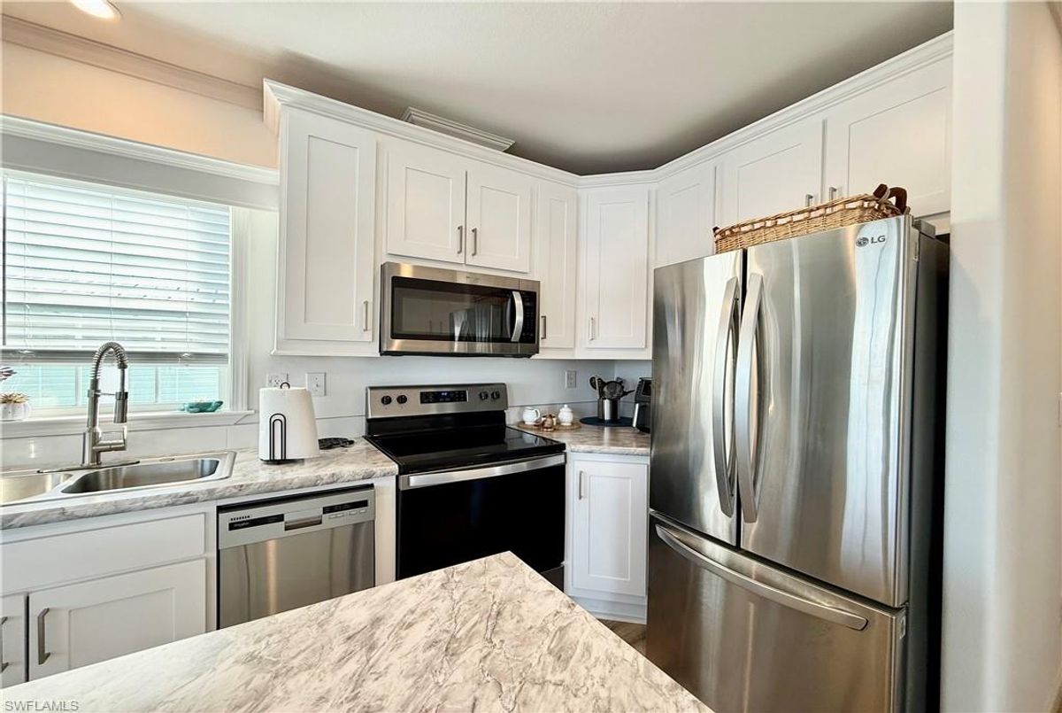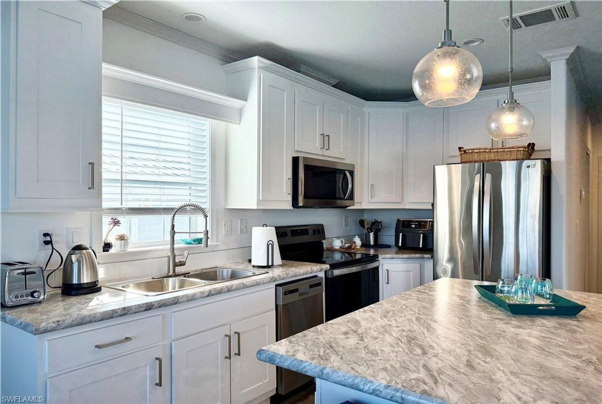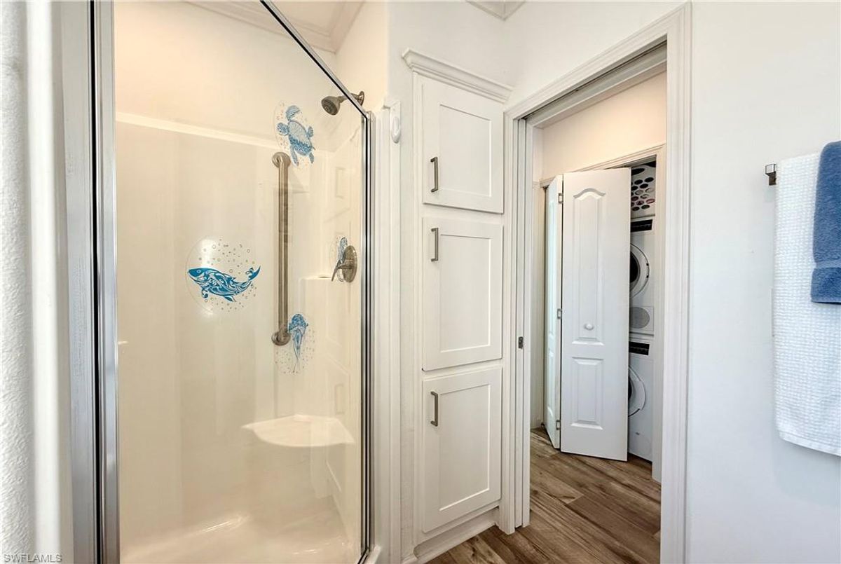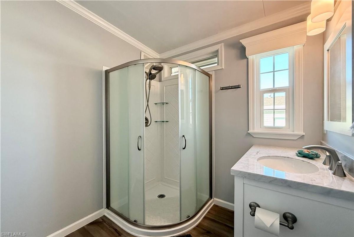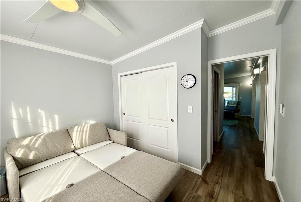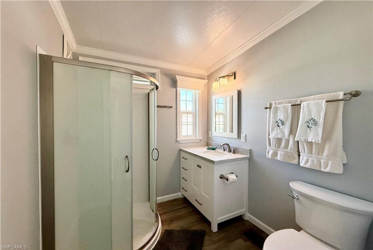 Thank you for viewing 524 Cheetah Drive in the Imperial Wilderness Condominium Association of Naples, FL. This is a very active, gated, 55+ community where YOU OWN THE LAND. This outstanding 2Br/2Ba home was constructed in 2022 and 2023 and is situated on the water of the largest lake in the community. The home’s superlative position, near the center of the lake, provides a breathtaking sunrise view that can be enjoyed from the screened lanai, dining area, and rear patio. Additionally, the second pool area is diagonally across the street. The park model is a 2022 Skyline, Palm Bay model 2622, and the addition was completed in 2023. The color palette is tasteful, relaxing, and consistent. You will appreciate the attractive lighting fixtures and abundance of natural light. Both bathrooms are quite spacious and offer walk-in showers. The bathroom near the main bedroom has a large shower with double seats. The main bedroom offers a Tempur-Cloud Supreme split-king, built-in storage, and 2 closets. Throughout the home, there is crown molding. In the main bedroom and kitchen, there are trey ceilings. The kitchen contains Whirlpool and LG appliances. The laundry appliances are Bosch. In addition to ample storage within the house, the under-home storage area is huge. This storage location is high enough to store your bikes in a standing position. This beautiful home is being sold furnished. The HOA fee of $840. per quarter is very reasonable and covers many of your needs: water, lawn care, basic cable, trash/recycling, and community amenities. Community amenities include the following: 2 pools with spas, bocce, pickleball, pétanque, tennis, shuffleboard, billiards, ping pong, a library, clubhouse, dog parks, and an extremely active events calendar!
