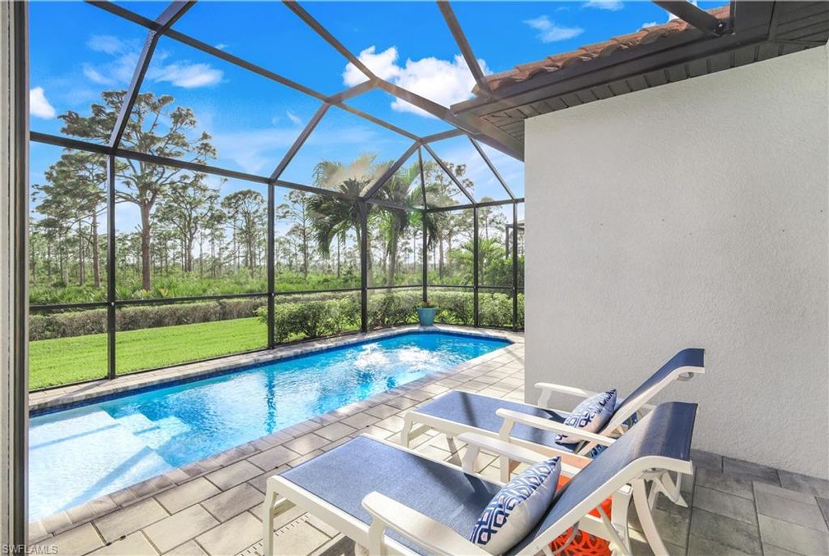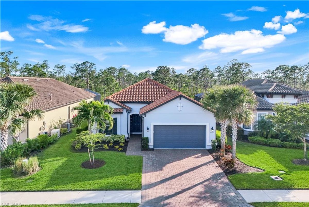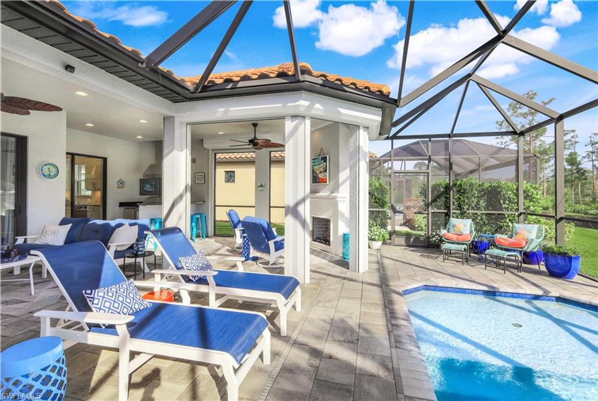 Nestled within the exclusive gated community of Estero Pointe, this exceptional Taylor Morrison-built residence offers a tranquil escape with stunning southern-facing views of private preserves. Located in one of the area’s most sought-after natural gas communities, this home combines luxury, comfort, and efficiency. The Lazio model boasts 3 spacious bedrooms plus a den, 3 elegantly appointed bathrooms, and a thoughtfully designed open floor plan, enhanced with high-end finishes throughout. Every detail has been carefully considered to create an inviting, sophisticated atmosphere. At the heart of the home lies a Chef’s kitchen, featuring stainless steel appliances, a natural gas range, and an expansive island with gleaming quartz countertops. The custom herringbone tile backsplash, upgraded crown molding, and premium pendant lighting add a touch of elegance and style. Step outside to discover an entertainer’s paradise. The oversized, screened lanai offers abundant covered space for relaxation or hosting guests. The custom outdoor bar, complete with a sink, wine fridge, and high-end grill, ensures effortless outdoor entertaining.  The private backyard, bathed in natural light, provides the perfect backdrop for peaceful evenings. Indulge in quiet moments by the cozy fireplace, an ideal spot to unwind and immerse yourself in the beauty of the surrounding nature. With stunning views of the protected southern preserve, this extended lanai transforms into a serene oasis where you can escape from the world. Estero Pointe is perfectly located, offering easy access to top-rated medical facilities, exceptional schools, Coconut Point Mall, fine dining, and entertainment. The pristine Gulf beaches and nature preserves are just a short drive away, ensuring you’ll always have access to the best of Southwest Florida.Don’t miss the opportunity to make this extraordinary home yours. Schedule your private showing today and experience all the elegance and tranquility this residence has to offer.