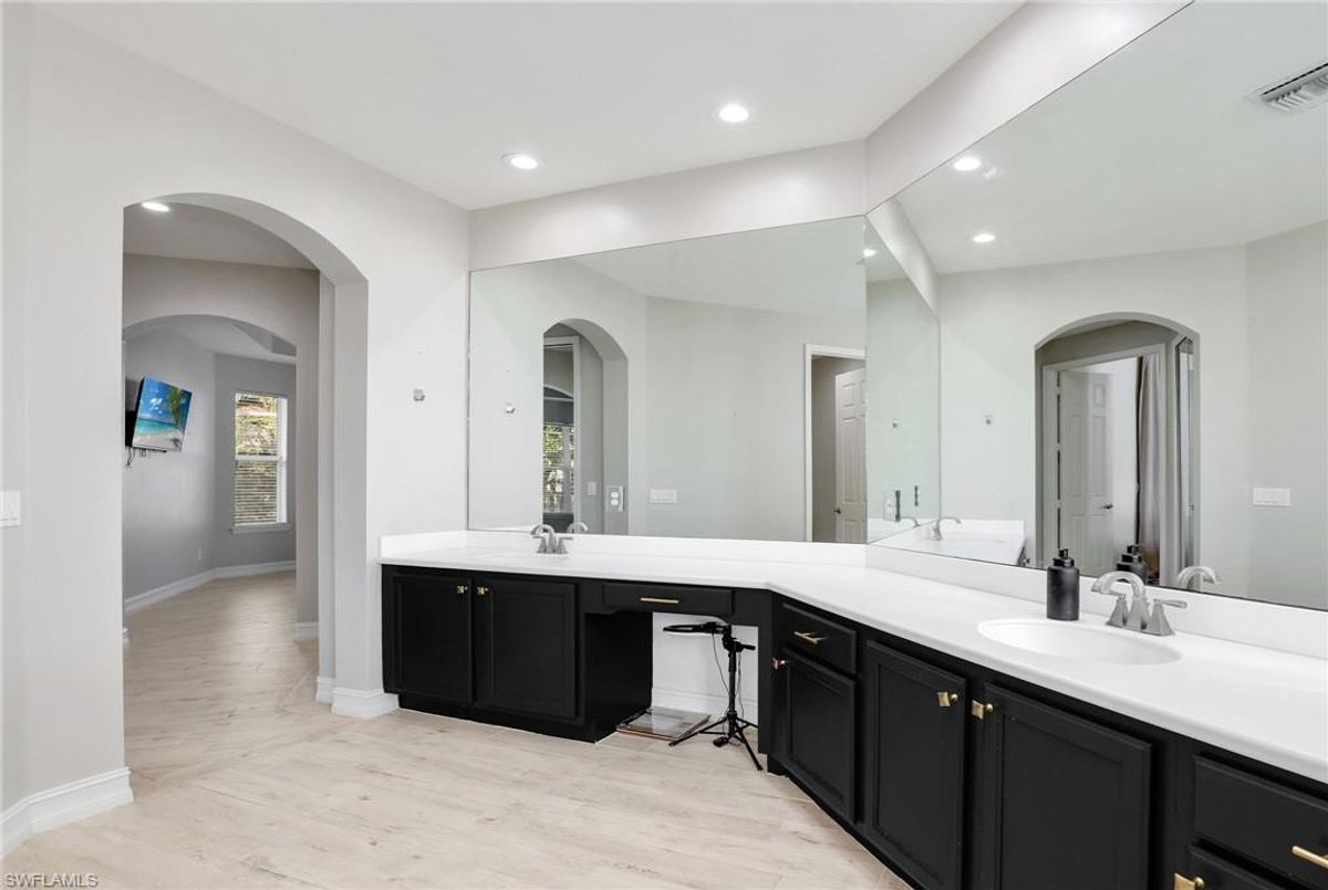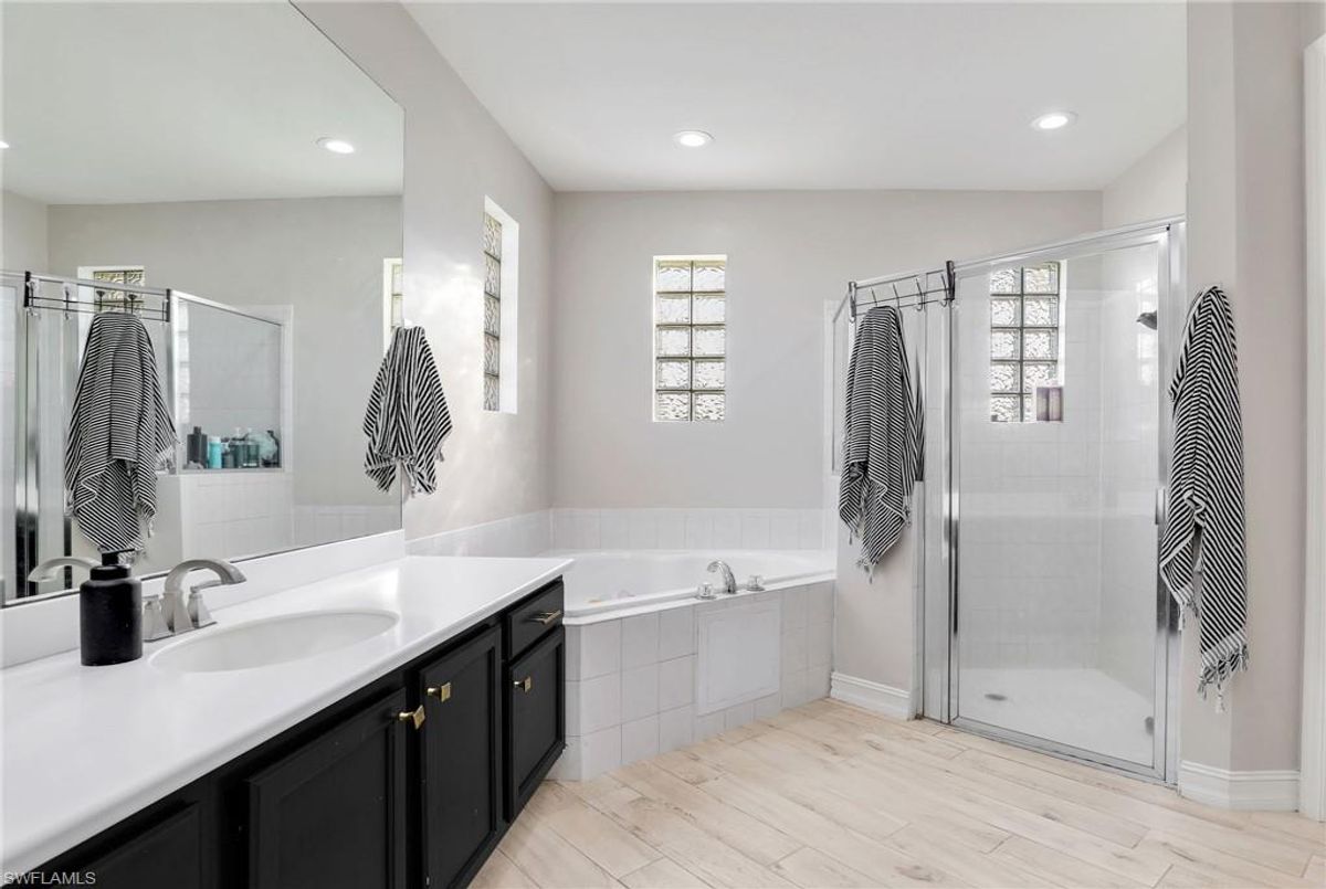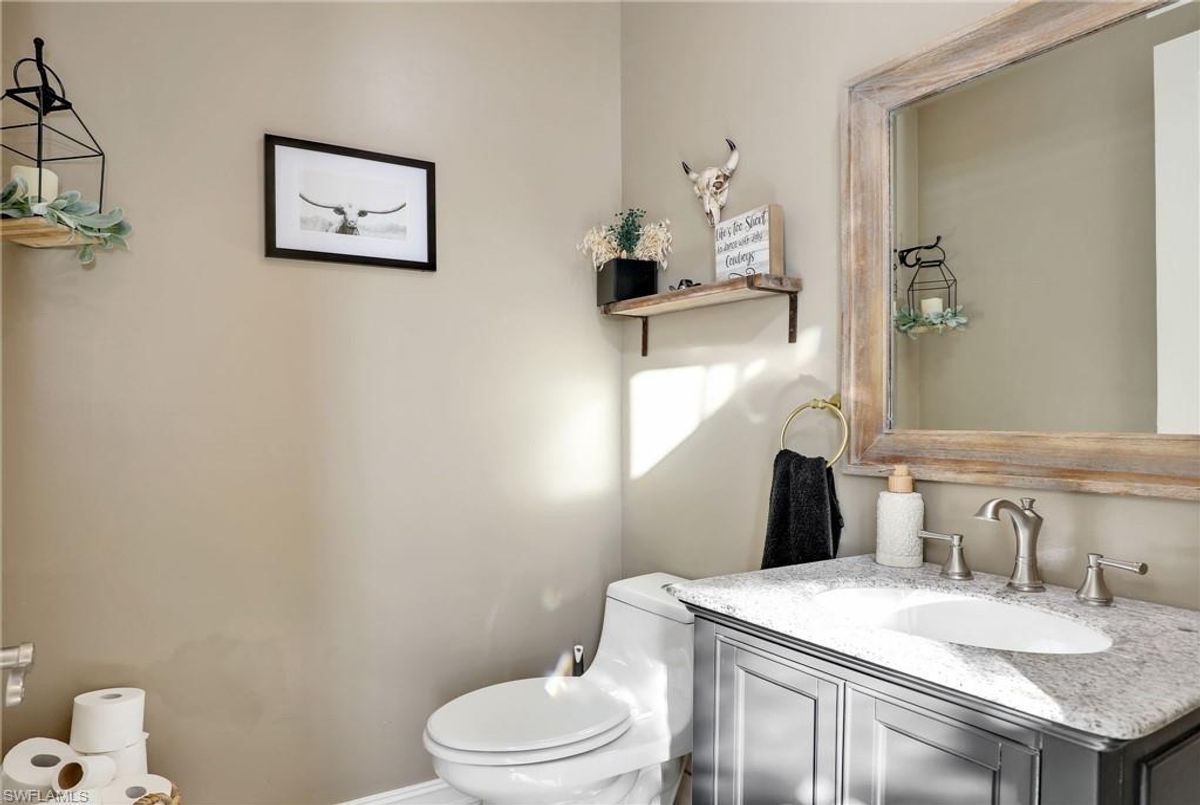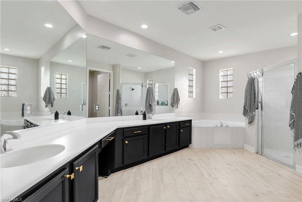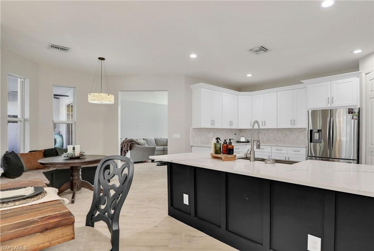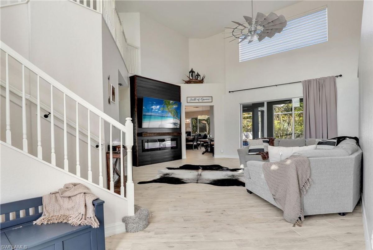 Welcome to this spacious 2-story home offering 4 bedrooms, 2.5 bathrooms, and a versatile den—perfect for home office or study. This beautifully maintained property features high ceilings, a bright and airy atmosphere, and stylish upgrades throughout. The heart of the home is the brand new chef’s kitchen, complete with stainless steel appliances, white stylish cabinets, and ample counter space—ideal for preparing gourmet meals. Open to the family room, the kitchen ensures the space feels open and perfect for entertaining. Enjoy indoor-outdoor living with a screened lanai that features an oversized heated saltwater pool with an auto overfill system and a relaxing spa. The entire pool area is controlled by a smart panel from the comfort of your home, offering both convenience and luxury—an oasis right in your own backyard. The fully fenced yard offers privacy and safety for both children and pets. The primary suite, conveniently located on the first floor, boasts a walk-in closet, dual sinks, a soaking tub, and a large shower, creating a tranquil retreat. You’ll find planked tile throughout the first floor, enhancing the home's modern design. Other highlights include a formal living area, second-floor bedrooms, zoned HVAC ensuring efficient climate control throughout the home, an electric fireplace adding warmth and ambiance to the living area, and plenty of natural light in every room. Recent upgrades include a whole house reverse osmosis system (2022), new water heater (2022), new roof (2022), fresh exterior paint (2024). For added safety and peace of mind, the home is equipped with impact windows upstairs and galvanized shutters downstairs. Take advantage of an assumable mortgage at a favorable 3.75% interest rate, potentially offering significant savings compared to current market rates. The home has a low-cost flood insurance policy that is assumable. Don’t miss the chance to make this beautiful property your new home!