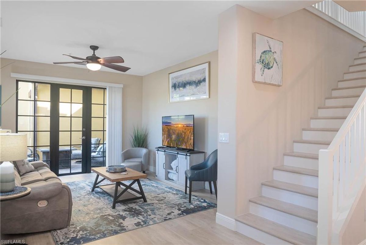 Stunning, turnkey Furnished Capistrano Casita in the award winning community of Paseo. This 3 bedroom 2.5 bath Floorplan also features large 2 car garage with storage space. Seller choose to leave 3rd bedroom open as loft area, still featuring large walk in closet. A perfect mix of contemporary and Florida decor is sure to please. Also featuring coveted white cabinets, Arabesco granite countertops, tile backsplash, stainless appliances, Luxury plank flooring. Other upgrades since 2022 include New HVAC, Water Heater and Light Fixtures. Home also boasts hurricane impact glass and doors for added peace of mind.  PASEO VOTED COMMUNITY OF THE YEAR 9 YEARS IN A ROW!! Come relax by the RESORT STYLE POOL or enjoy a beverage at the TIKI BAR. Watch a game at the PUB or enjoy brunch at the BISTRO. Grab a friend and watch a movie in the cinema or work out in the FULLY EQUIPPED GYM. New lighted bike path will connect you to Lee County bike trail system. Enjoy a game of doubles on the 6 har tru TENNIS COURTS or join in the fun at the PICKLE BALL COURTS!! Come enjoy the PASEO LIFESTYLE
