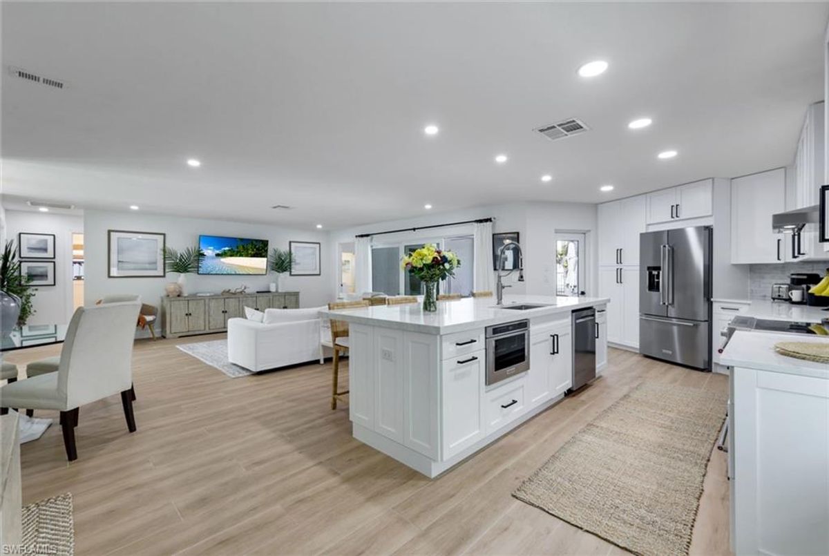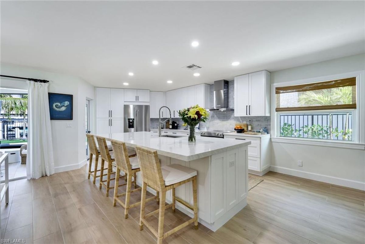 Discover a boater's paradise on the picturesque Isles of Capri, where every detail of this stunning waterfront retreat invites you to indulge in the ultimate island lifestyle. As you step through the front door, you'll be greeted by an airy and inviting atmosphere, meticulously designed in the sought-after Coastal Modern style, which marries elegance with a relaxed beach vibe.This beautifully updated home features a generous and open floor plan, encompassing three spacious bedrooms and two well-appointed bathrooms. The property boasts state-of-the-art improvements, including new impact-resistant windows and sliders that not only enhance energy efficiency but also provide breathtaking views of the water. With brand new plumbing, an efficient air conditioning system, and a newly constructed seawall (2021), this home ensures peace of mind and comfort.The heart of the home is the expansive open kitchen, perfect for culinary enthusiasts. Here, you’ll find ample counter space to prepare your fresh catches from the sea, along with a large island that provides plenty of seating for family gatherings or evening entertaining. The seamless flow from the kitchen to the living areas creates an ideal environment for creating lasting memories. All appliances, such as washer & dryer, fridge, range, dishwasher, etc., are all brand new. A Sonos system also adds to the atmosphere in the house.Step outside to a sprawling covered lanai that acts as an extension of your living space, outfitted for ultimate relaxation. The heated swimming pool sparkles invitingly under the Florida sun, providing a tranquil oasis where you and your loved ones can unwind after a day on the water. For those who love boating, this location is truly exceptional. Enjoy quick, direct access to the Gulf of Mexico, allowing for easy offshore fishing adventures or leisurely day trips to the vibrant Key West for a delightful lunch and exploration. Being situated in the heart of the breathtaking 10,000 Islands, you are surrounded by the serene beauty of protected mangrove ecosystems. This unique landscape offers endless opportunities for outdoor activities, including kayaking, paddleboarding, and world-class fishing, especially on those windy days when offshore excursions may not be ideal.Our community is renowned for its pristine white-sand beaches, unparalleled shelling opportunities, exceptional fishing and boating experiences, and fantastic golf courses nearby. With so much to offer, this waterfront retreat is not just a home; it's a gateway to an unforgettable island living experience.