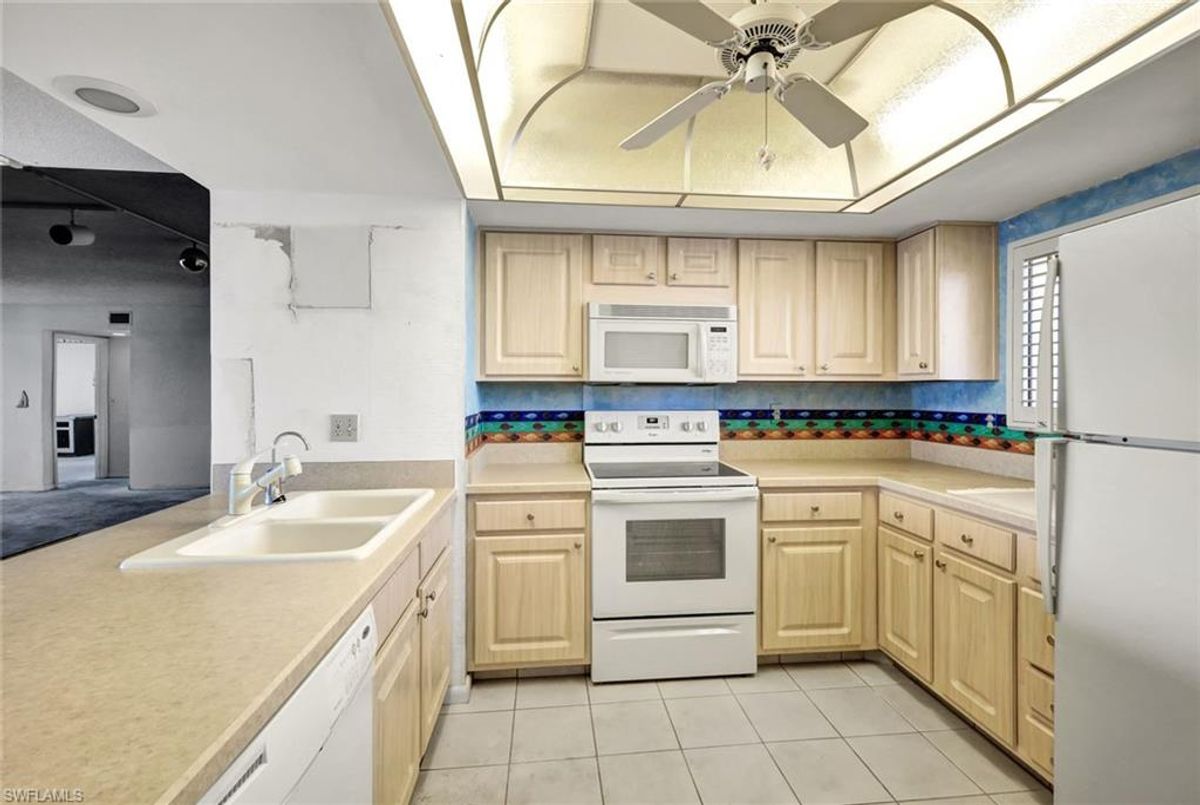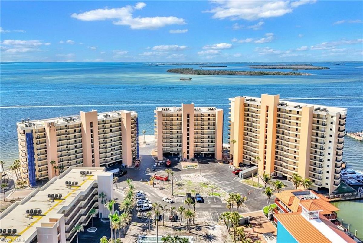 Looking for the PERFECT opportunity to completely customize your Ideal coastal get away? This 4th floor condo with stunning bay/causway views is just that! 2 bedrooms, 2-bathroom condo features an open living area with a view of the water as soon as you walk in the condo. Parking is under the building and open and not assigned in Building 2. Amenities include a pool, spa, cabana area, grilling area, shuffleboard, tennis and pickleball courts and on-site property management. Nearby you will find Sanibel Island Causeway, Bimini Bait Shack, Sanibel Harbour Yacht Club and Sanibel Harbour Marriott Resort make living in the Florida lifestyle easy. Punta Rassa is being built back after Hurricane Ian. Buyer to conduct due diligence. Property is being sold AS-IS. Occupancy expected late summer/fall 2025
