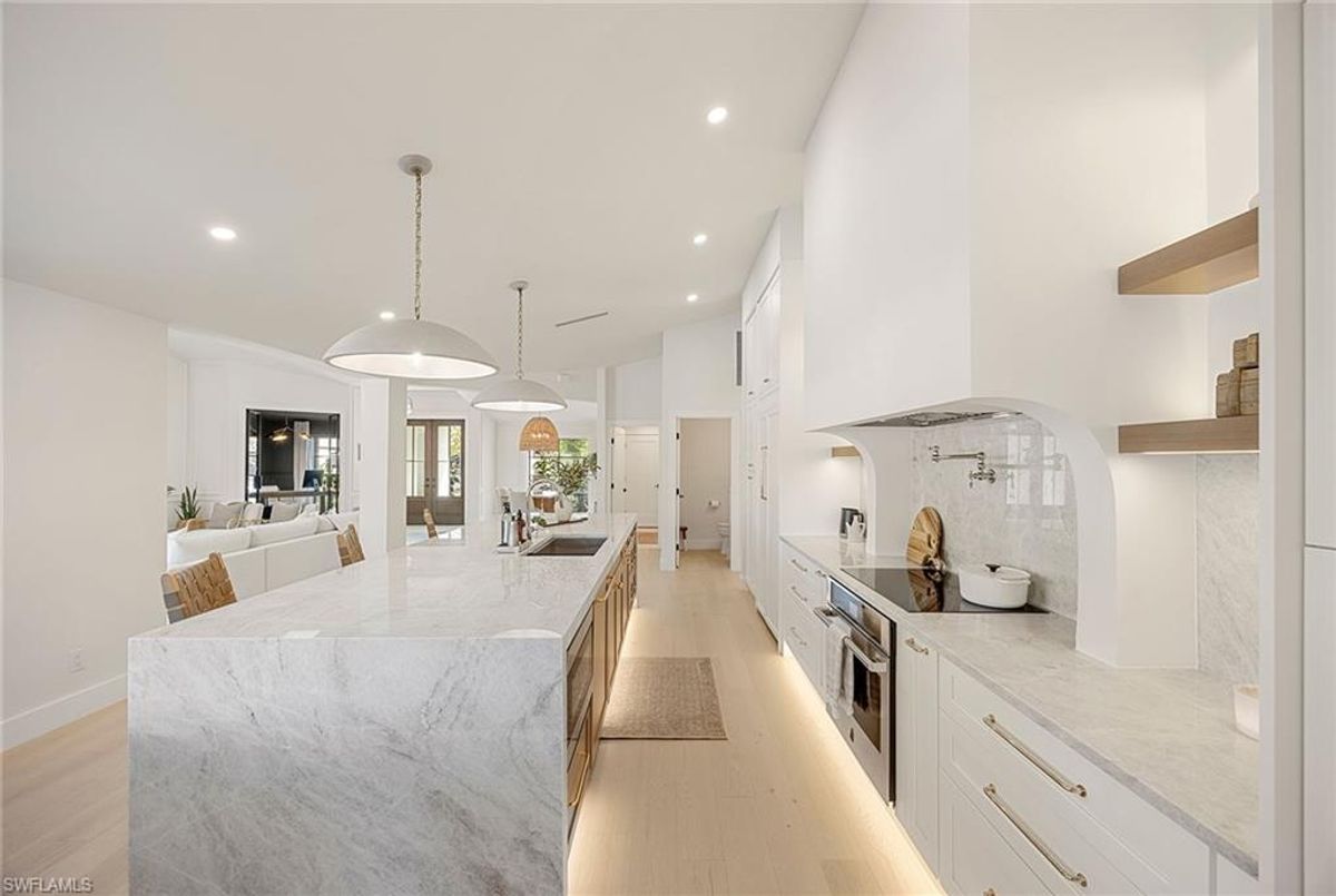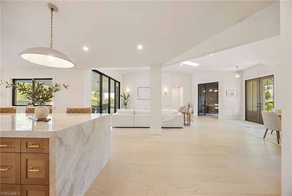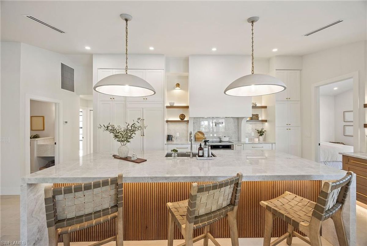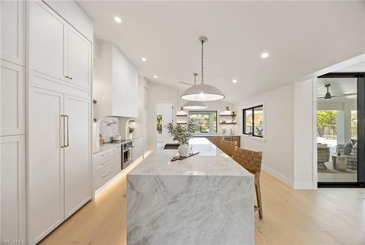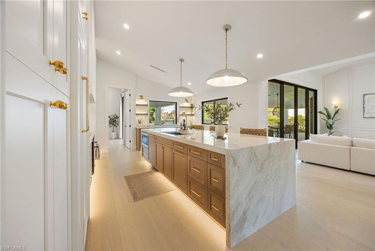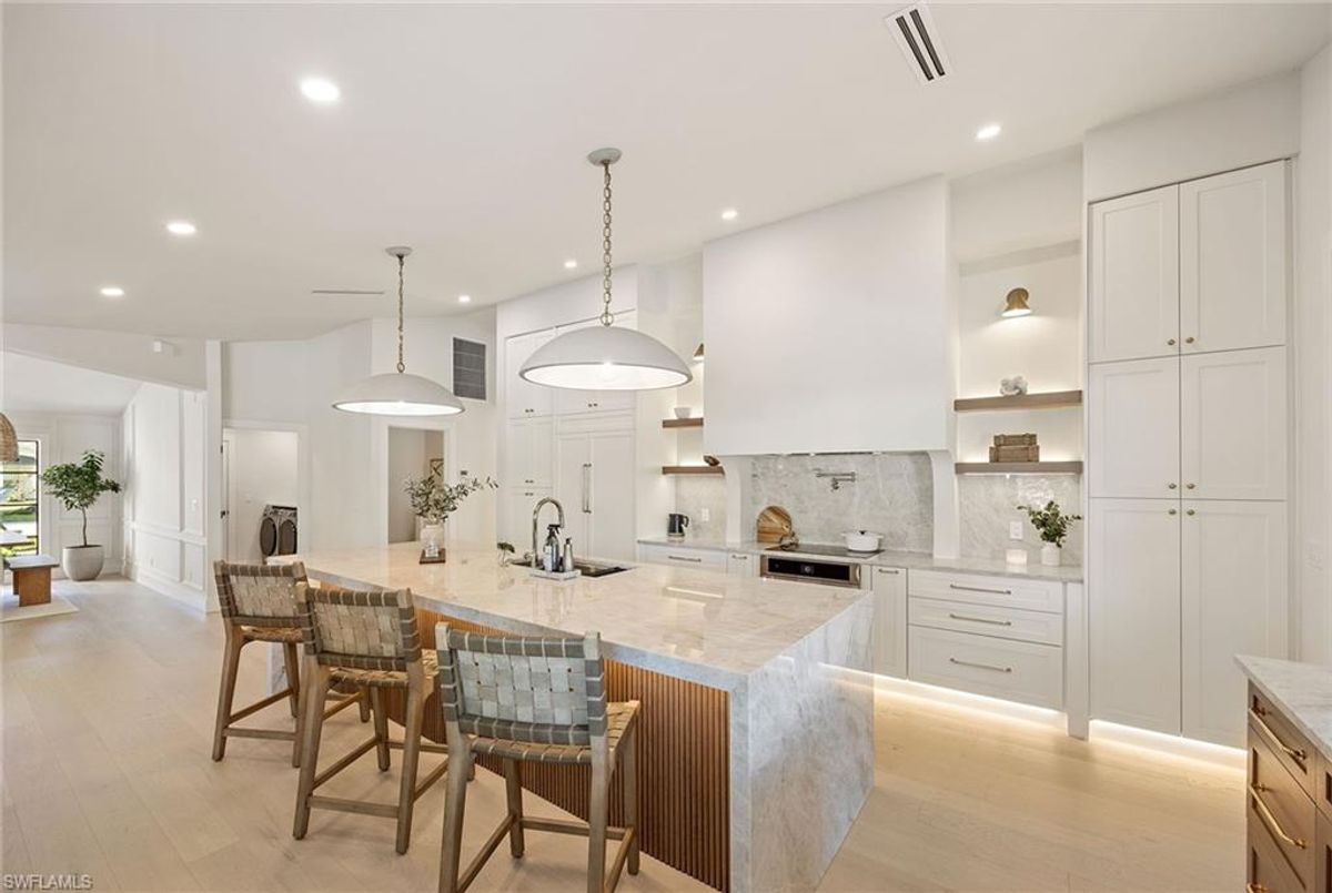 Look no further than this reimagined, redesigned, stunning Monterey residence. This meticulously renovated home boasts four bedrooms plus den/office with three full baths and powder room. Thoughtfully designed, open concept floor plan that flows effortlessly for your comfort and enjoyment. The gourmet kitchen boasts JennAir appliances, Bosch dishwasher, Taj Mahal quartzite counters, custom kitchen shelves and cabinetry with Rejuvenation Brass hardware, LED lighting under cabinets and shelves, custom fluted wood under island, Zephyr beverage refrigerator, Zephyr monsoon hood vent and gorgeous Visual Comfort concrete pendant lights. Additional features are the beautiful white oak hardwood flooring throughout, extensive custom trim work, black iron and glass custom French doors to the office, built-ins in all closets, exquisite tiles and finishes in baths, frameless shower doors, impact 9-foot sliders, 8-foot front doors, new roof and impact windows throughout. Step outside to the expansive open lanai with pool and spa and your putting green. Monterey, is an amenity-rich community and near excellent public and private schools. Amazing location for shopping, dining and our gorgeous beaches! Don’t miss this Monterey gem. ...
