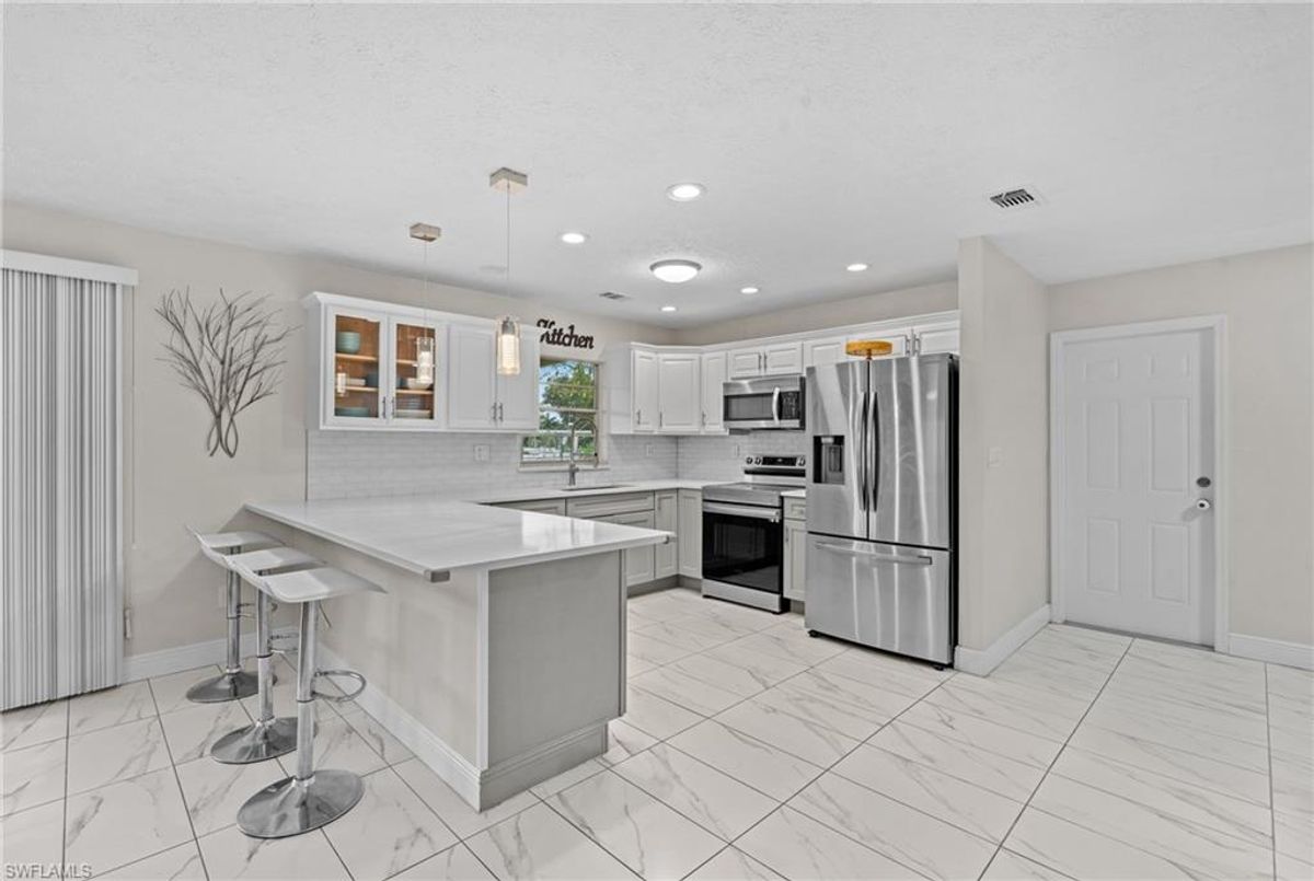Discover waterfront living at its finest in this beautiful canal-front home with direct Gulf access! Nestled in the quiet community of Fort Myers Shores, this charming 3-bedroom, 2-bath residence offers just under 1,300 square feet of comfortable living space. The open-concept kitchen flows seamlessly into the dinette and living areas, creating the perfect space for entertaining. Step outside to the large screened lanai and enjoy peaceful views of the extra-wide, 150-foot deep water canal—ideal for boating enthusiasts! Additional features include a one-car garage, new appliances installed in 2023, and a fenced backyard for added privacy. Just two blocks from the boat ramp, this home offers easy access to the water and all that Southwest Florida has to offer.