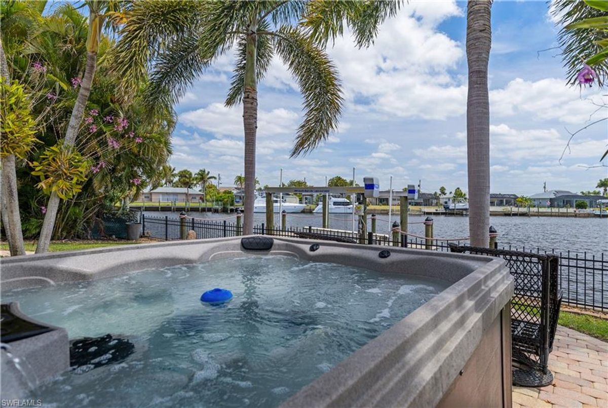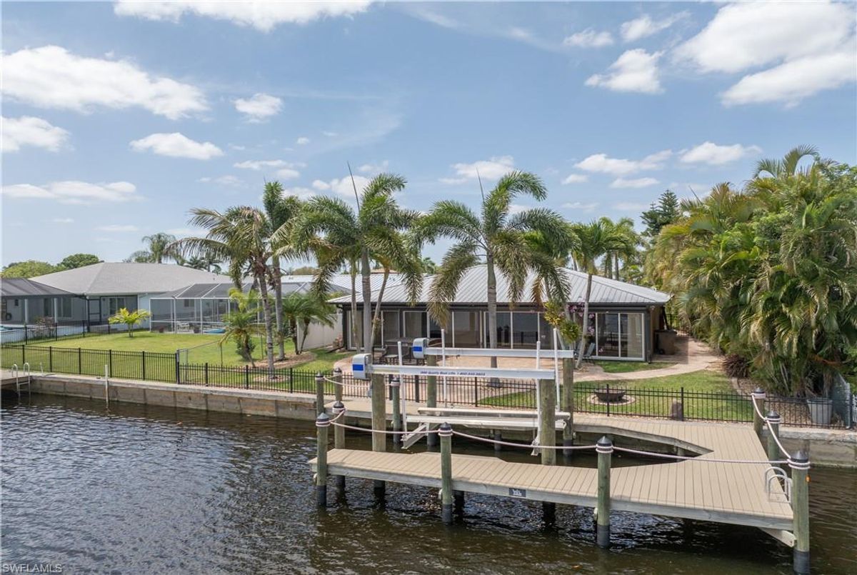 One Year Home warranty   Experience the Ultimate in Gulf Access Living! Enjoy peaceful easy living in the beautifully renovated 3-bedroom, 2 bath waterfront home, thoughtfully updated in 2025. Situated on one of Ft Myers shore massive Deep Water canals, Direct Gulf  access  this property offers breathtaking views from the grand great room and electric roll down hurricane sliders stretching across the rear of the home. Boaters will appreciate the brand new 10K boat lift and wraparound dock. perfect for a quick and easy access to open water. Additional upgrades included New A/C and ductwork, Home completely replumbed, Hurricane resistant garage door. Enjoy the 6-person hot tub for relaxing after a day on the water, and a fenced in yard with paver patio for outdoor entertaining.  Flood insurance is assumable, providing additional peace of mind. Schedule your private tour today, you'll be amazed by everything this exceptional home has to offer.