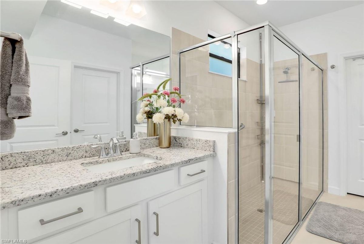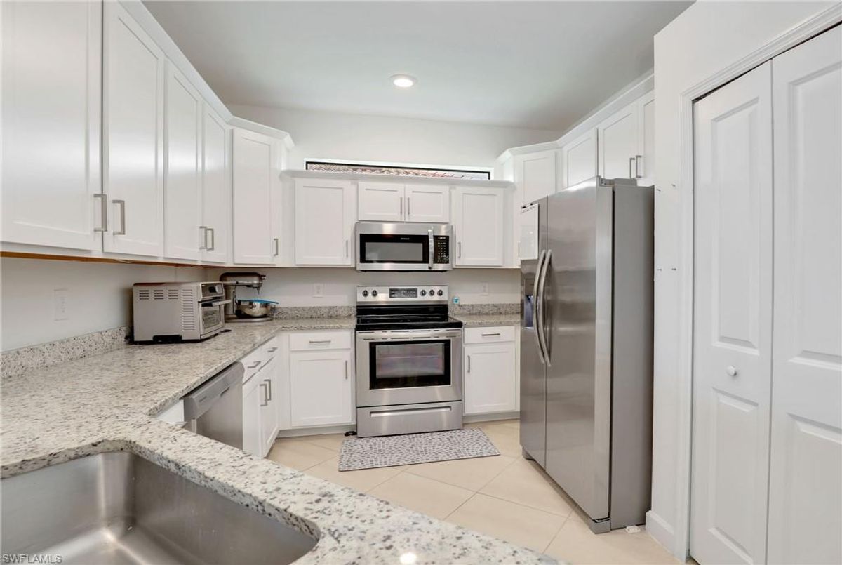 Welcome to this like-new 2-bedroom plus den, 2-bath villa located in the highly desirable, pet-friendly community of Timber Creek in Fort Myers. Enjoy peaceful lake views from your screened lanai, with access from both the family room and the spacious primary suite. Inside, you’ll find an open and airy layout featuring light, neutral tones and tile flooring throughout—no carpet here! The kitchen is beautifully appointed with white shaker cabinets, stainless steel appliances, granite countertops, a pantry, a breakfast bar, and a dining area that flows seamlessly into the family room. The den includes doors for added privacy, making it ideal for a home office or guest space. The primary suite boasts direct lanai access, a large walk-in closet, and a stylish en-suite bathroom with dual sinks and a generous walk-in shower. Additional highlights include window treatments, abundant closet and storage space, and a 2-car garage. Timber Creek offers a vibrant lifestyle with resort-style amenities, including pools, a clubhouse, fitness center, onsite restaurant, walking trails, putting green, bocce, pickleball, and more—all just minutes from shopping, dining, and the best of Southwest Florida living. Whether you're looking for a seasonal retreat or a long-term residence, this villa also presents an excellent leasing opportunity.