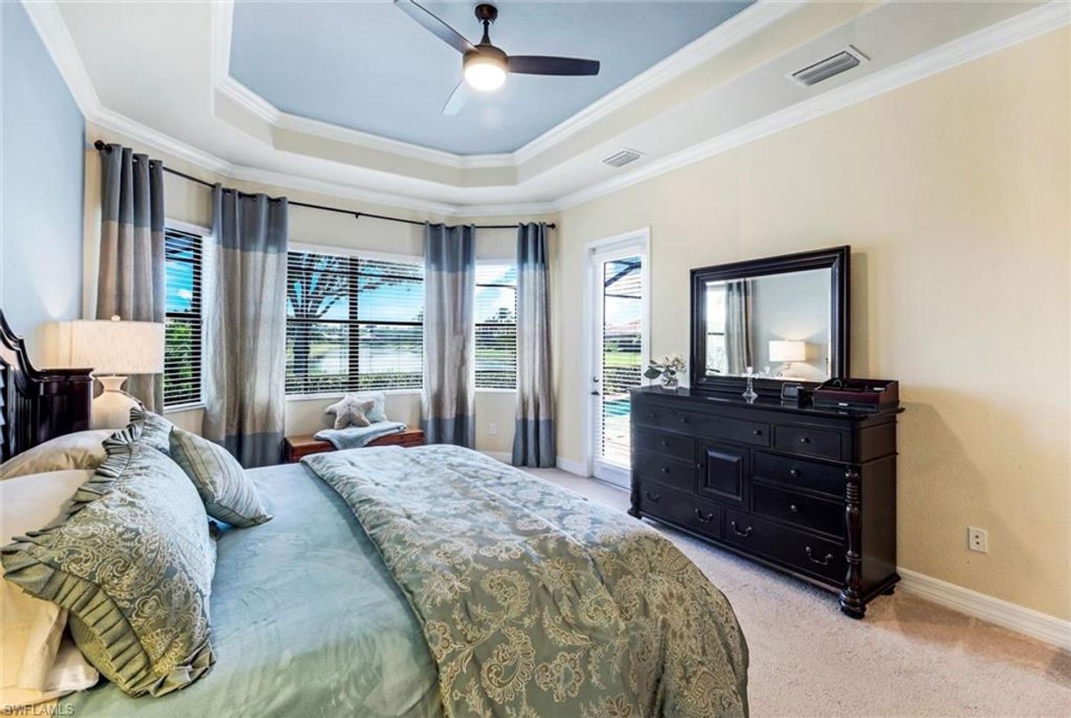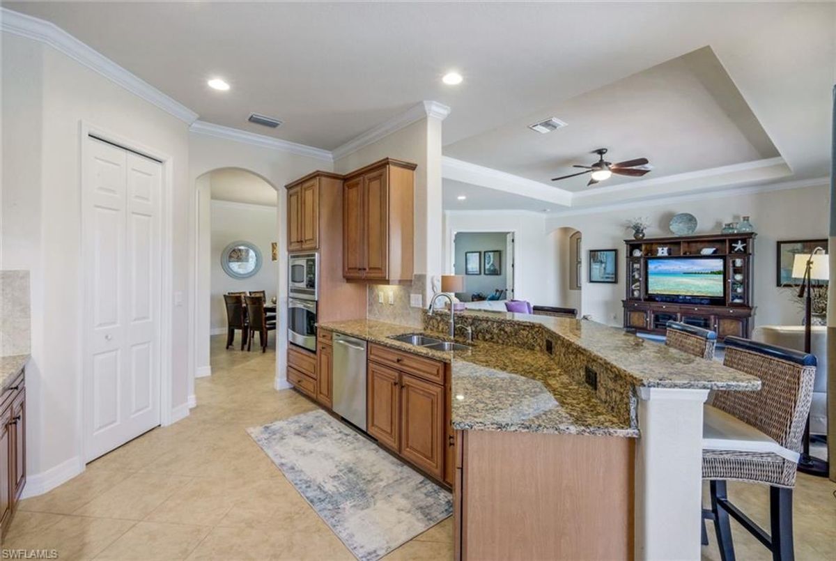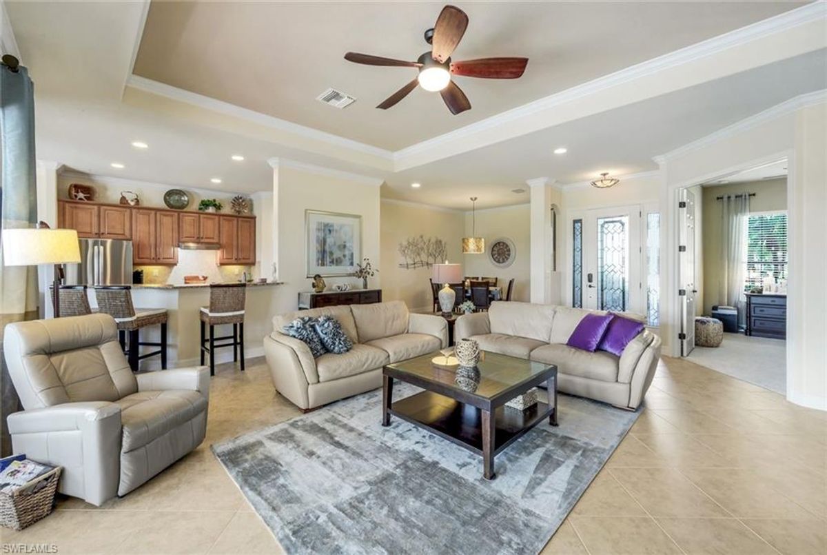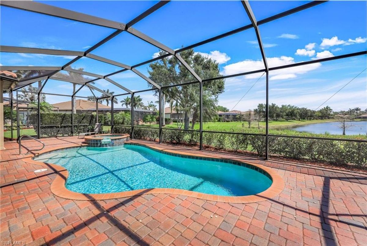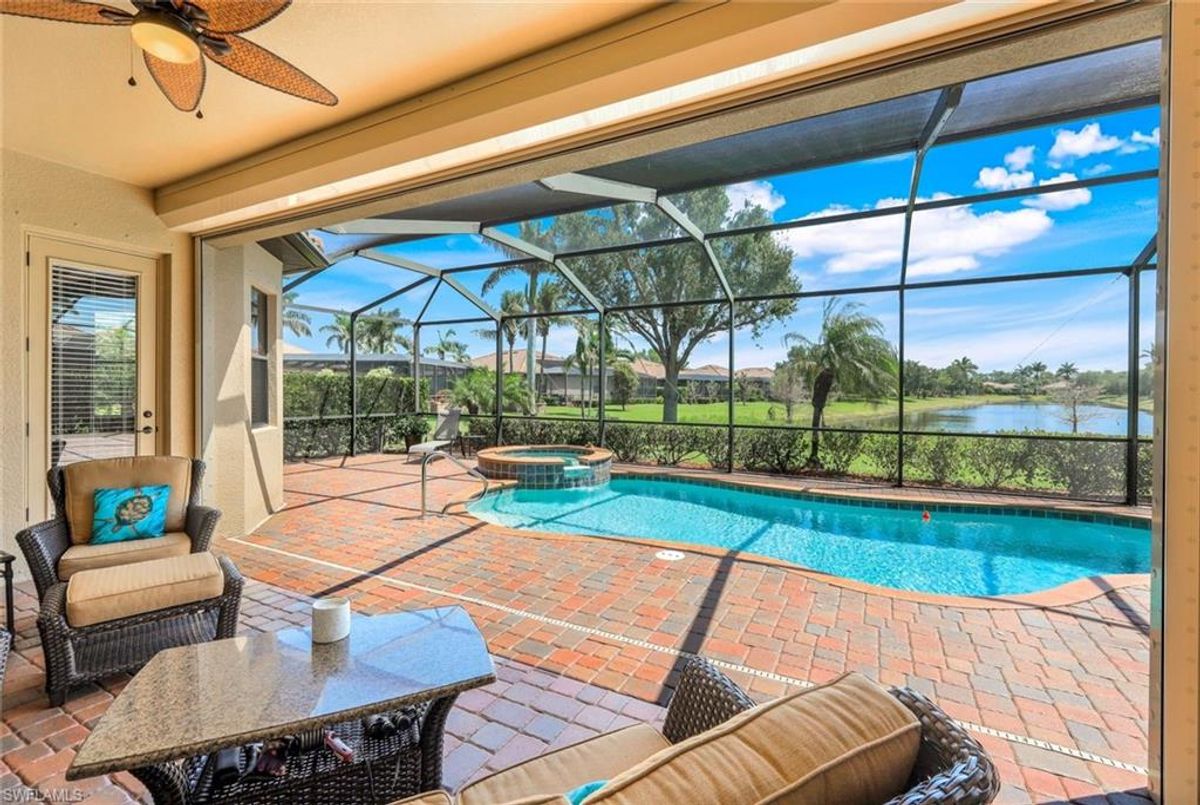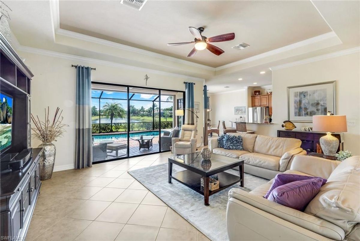 The Oakmont floor plan is one of the most desirable layouts in Copper Cove, featuring 4 bedrooms, 2.5 baths, and an expanded lanai with pool and spa overlooking serene lake views with ideal eastern exposure. Inside, the gourmet kitchen is equipped with upgraded stainless steel appliances, a wall oven, and a spacious pantry, while the laundry room offers convenience with an upgraded LG washer and dryer, utility sink, and upper cabinets for extra storage.Elegant details include tray ceilings in both the great room and primary suite. The 3-car garage is finished with epoxy floors and a second refrigerator, adding functionality and style. For peace of mind, the home is fitted with electric storm shutters on the lanai and front door, with manual shutters on all windows.Meticulously maintained inside and out, this furnished residence is move-in ready. Perfectly situated just a short drive to Marco Island and Downtown Naples, you’ll enjoy world-class beaches, boating, golf, dining, and entertainment right at your fingertips. This home is truly a must-see!