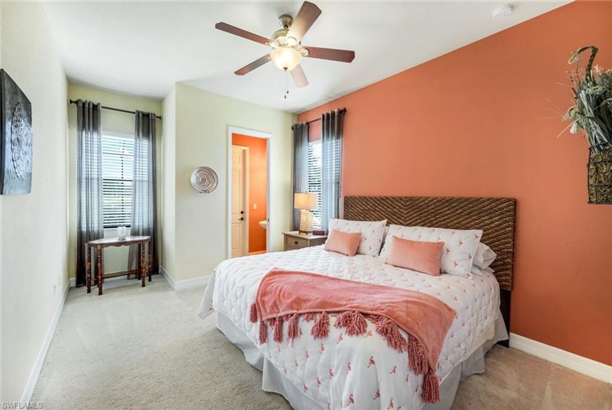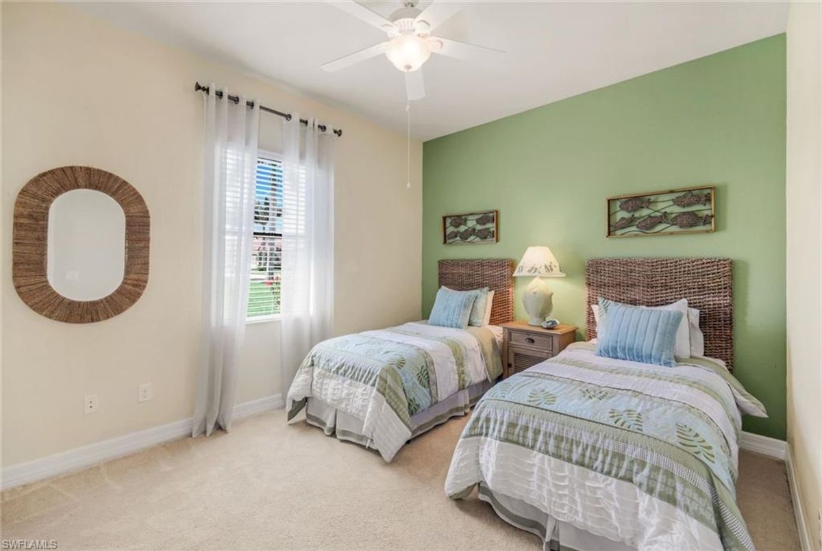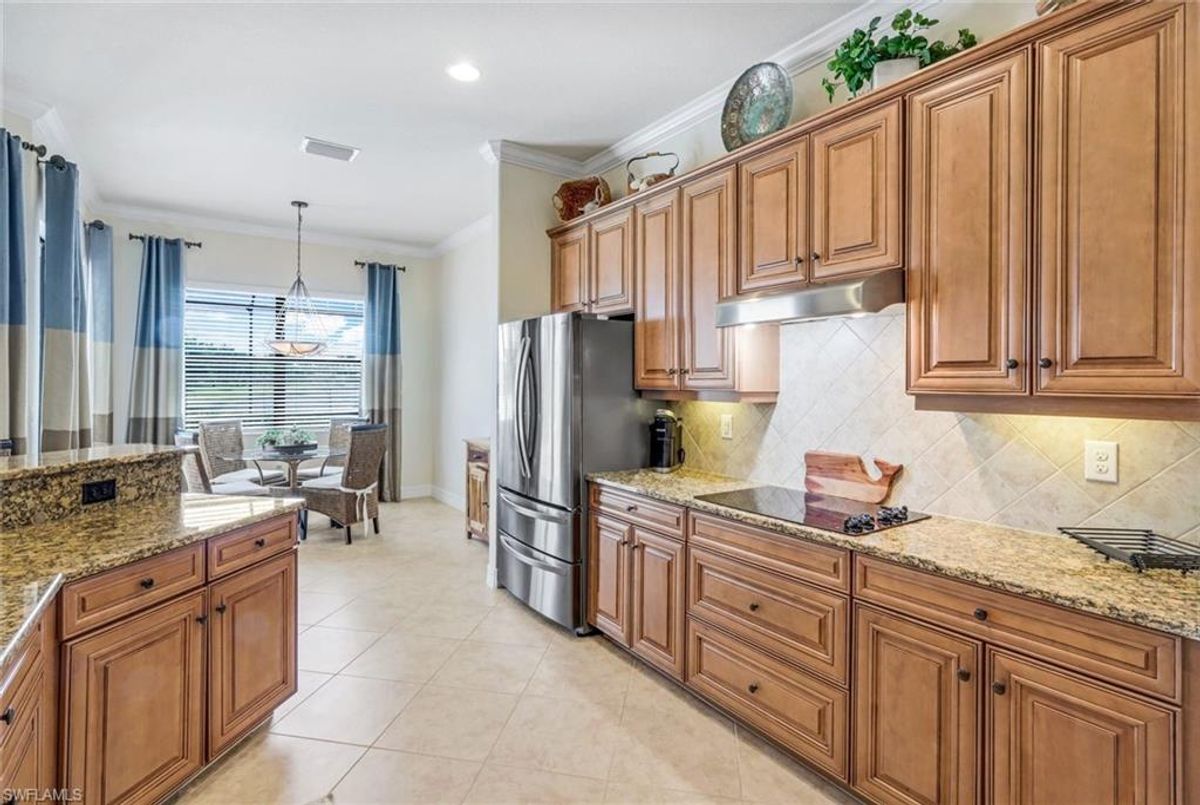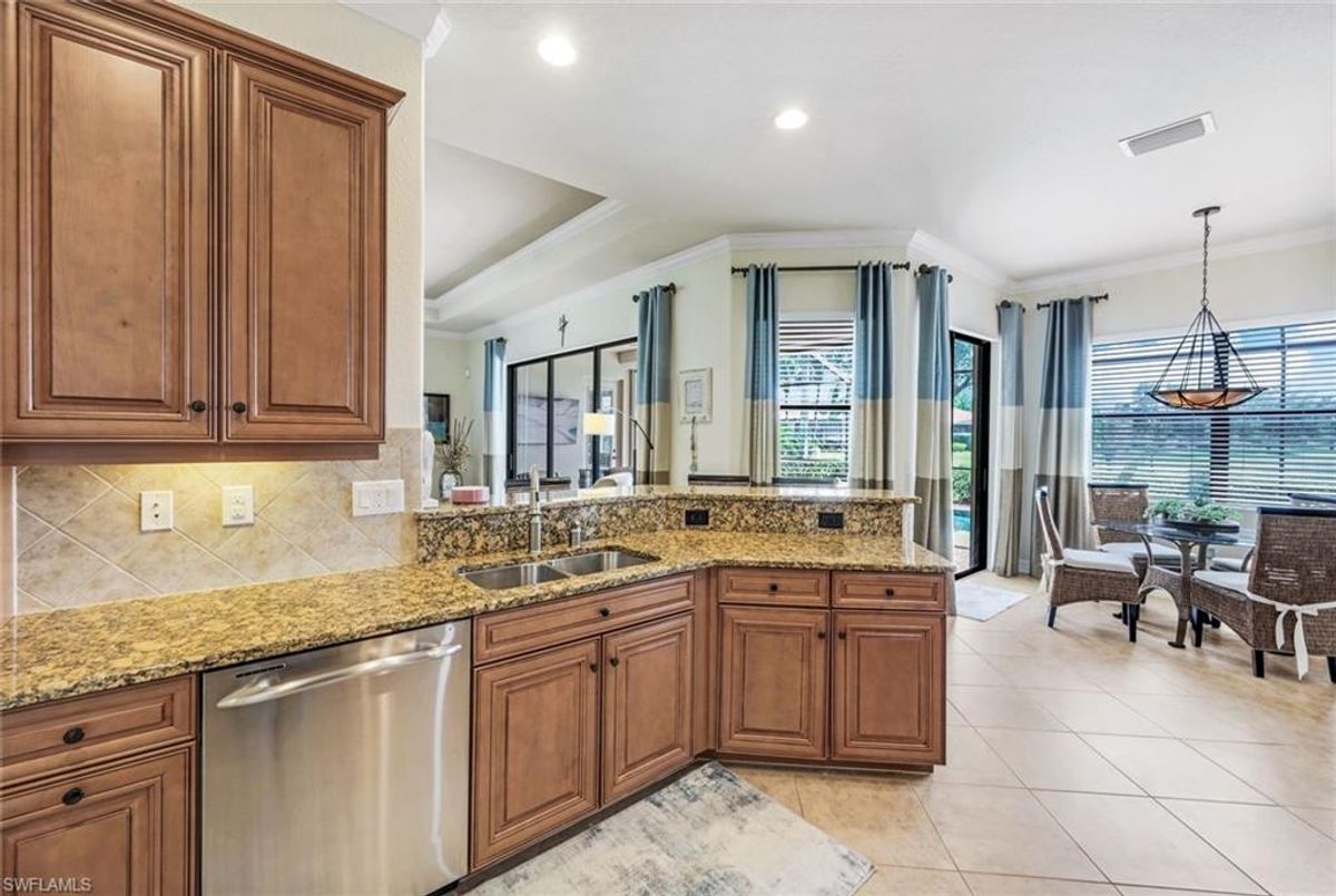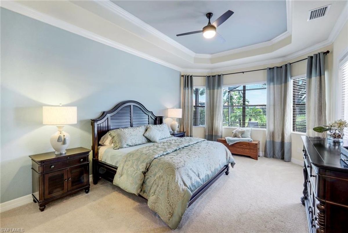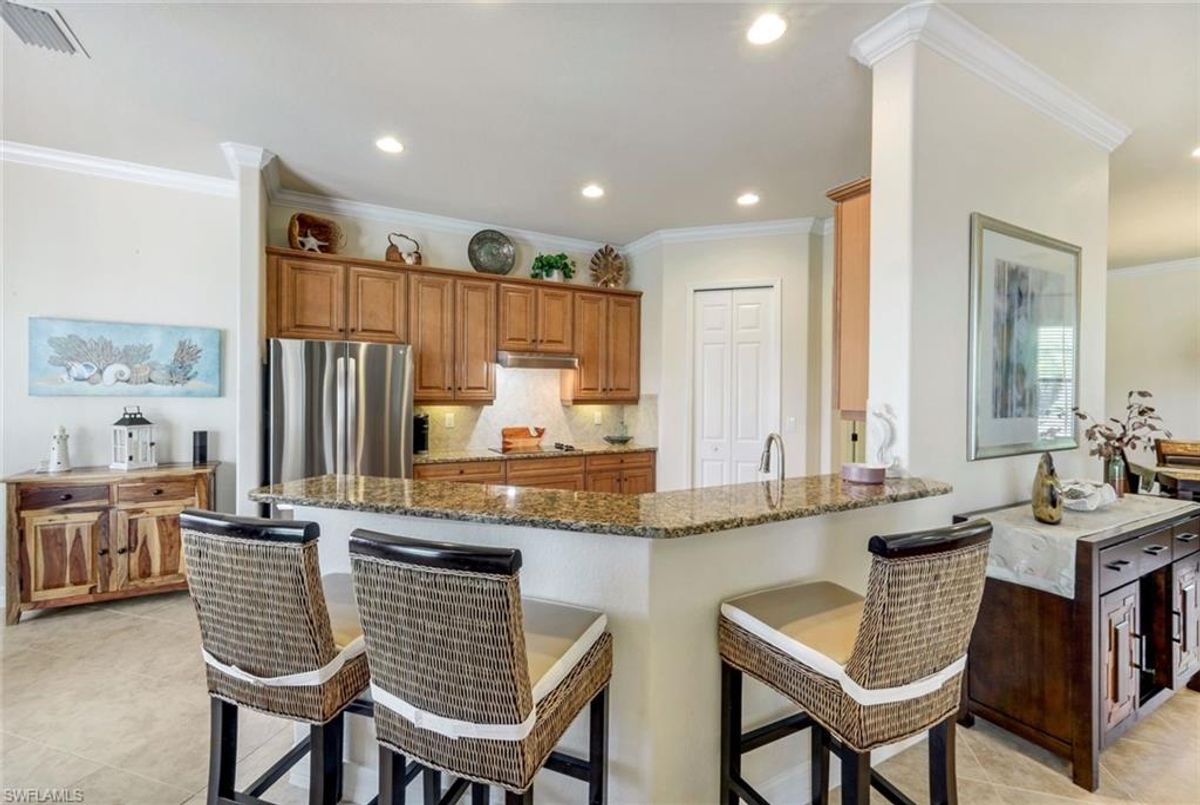 The Oakmont floor plan is one of the most desirable layouts in Copper Cove, featuring 4 bedrooms, 2.5 baths, and an expanded lanai with pool and spa overlooking serene lake views with ideal eastern exposure. Inside, the gourmet kitchen is equipped with upgraded stainless steel appliances, a wall oven, and a spacious pantry, while the laundry room offers convenience with an upgraded LG washer and dryer, utility sink, and upper cabinets for extra storage.Elegant details include tray ceilings in both the great room and primary suite. The 3-car garage is finished with epoxy floors and a second refrigerator, adding functionality and style. For peace of mind, the home is fitted with electric storm shutters on the lanai and front door, with manual shutters on all windows.Meticulously maintained inside and out, this furnished residence is move-in ready. Perfectly situated just a short drive to Marco Island and Downtown Naples, you’ll enjoy world-class beaches, boating, golf, dining, and entertainment right at your fingertips. This home is truly a must-see!