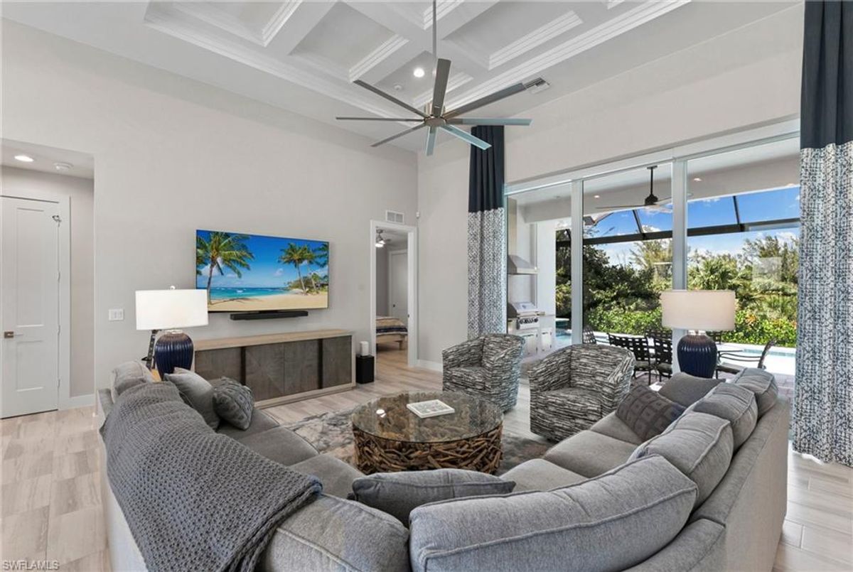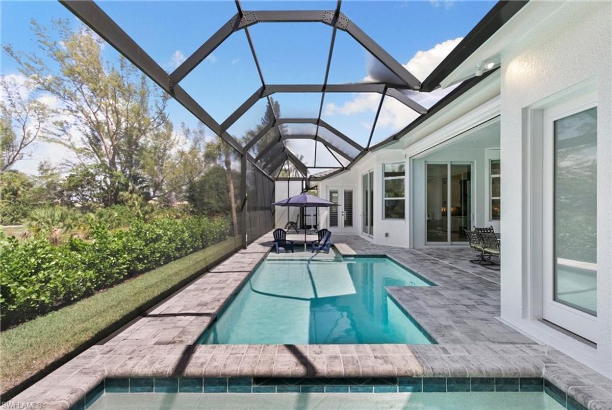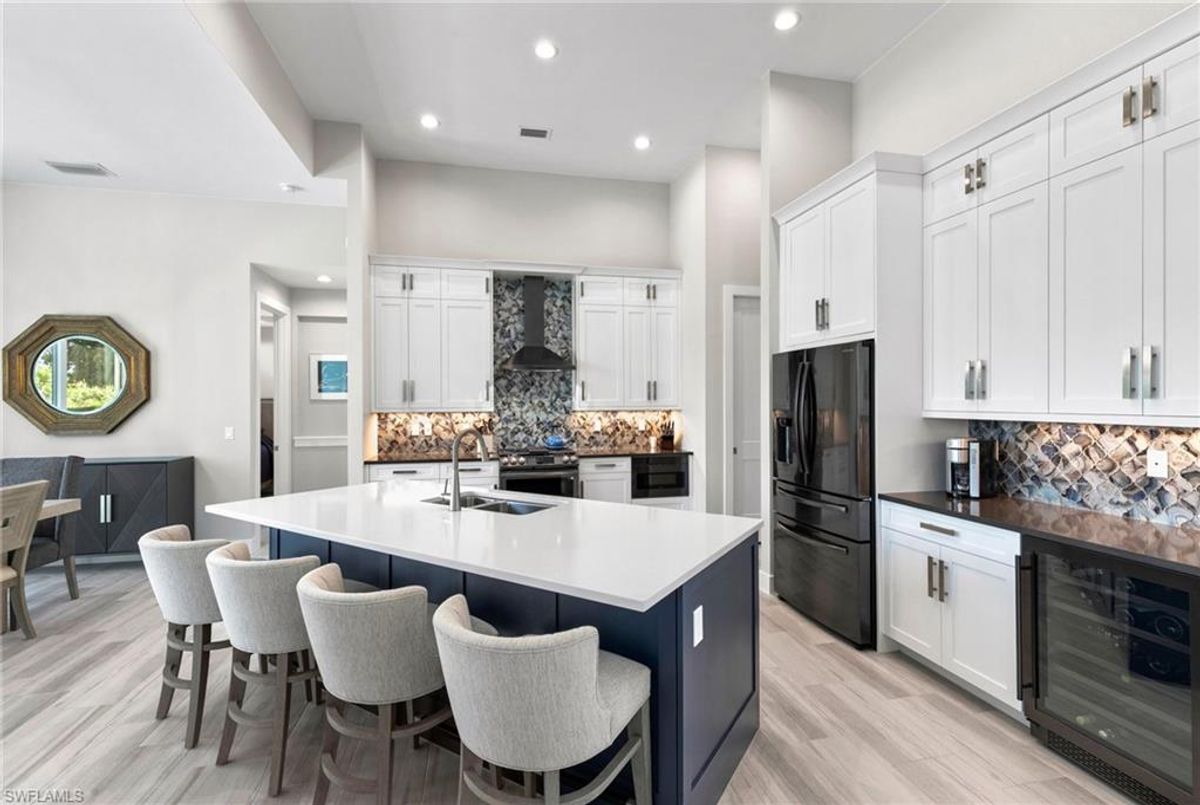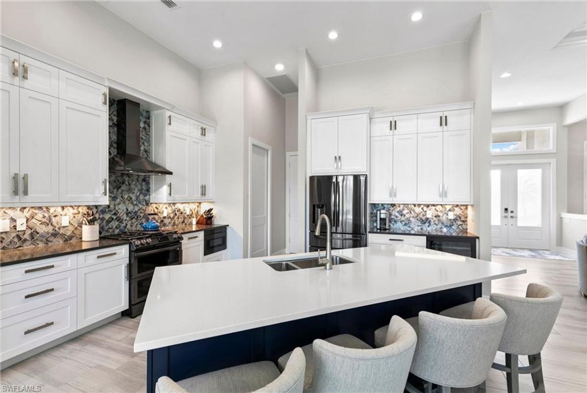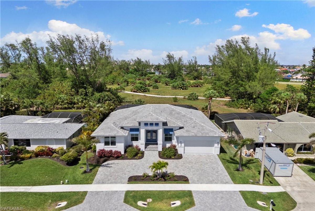 Welcome home to beautiful Marco Island! This 4-bedroom plus den, 3-bathroom 2024 new build single-family residence offers modern luxury and convenience while also providing serene nature views, with your backyard being the Marco Island Nature Preserve and Bird Sanctuary. Step inside to a spacious and elegantly designed interior, featuring an open floor plan, volume ceilings, and premium finishes. The exquisite kitchen boasts a top quality gas stove, high-end appliances, built-in wine cooler, and stunning quartz countertops with supremely crafted cabinets, with open access to the dining and living rooms. The primary bedroom provides unbeatable comfort, with french door lanai access, recessed lighting, his and hers walk-in closets, and a stupendous bathroom with walk-in shower and separate tub. Split from the primary, three guest bedrooms also impress, one en-suite, and all with pleasant natural light. The den, immediately to the right upon entry, provides the perfect space for a home office or media room. This house is absolutely built with the Southwest Florida environment in mind; upgraded to 10 foot elevation, protective storm shades, picture and privacy screens on the lanai, and a whole-house gas generator means that paradise is never interrupted. Enjoy outdoor living at its finest with a summer kitchen, complete with a refrigerator and a built-in gas barbecue, and a sparkling pool and spa, all set against the backdrop of the Island's natural beauty. Pocket Sliders that lead out to the lanai are 10 feet tall, maximizing your view. Getting to and from the home is a breeze as well, with an air conditioned 2-car garage for parking and a convenient circular paver driveway. With a relaxing neighborhood surrounding the sanctuary and Tiger tail Beach just over half a mile away, this location will not fail to please. This is an amazing opportunity to own a new home with spectacular updates in a pristine Island location, take an opportunity to have a look.