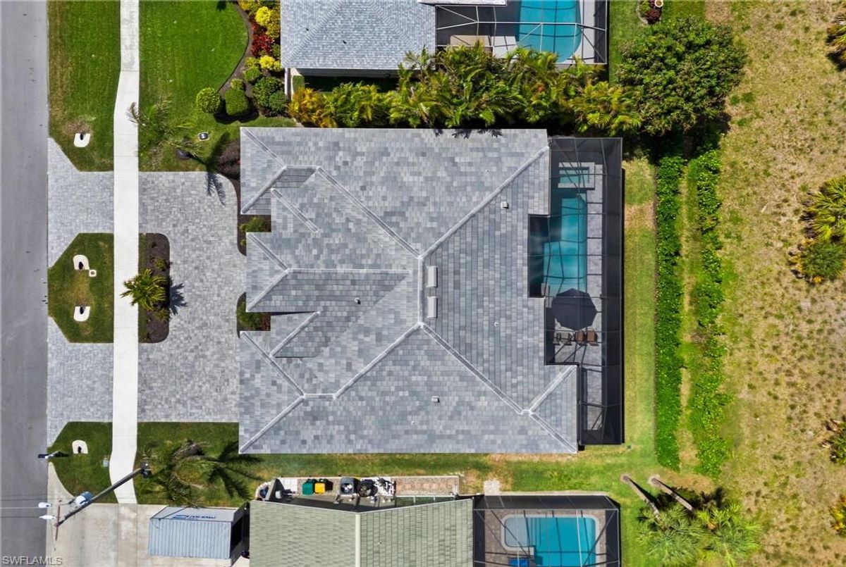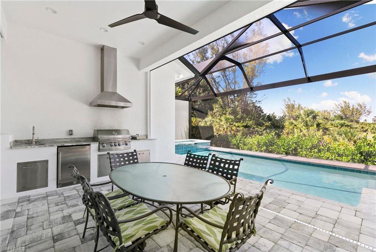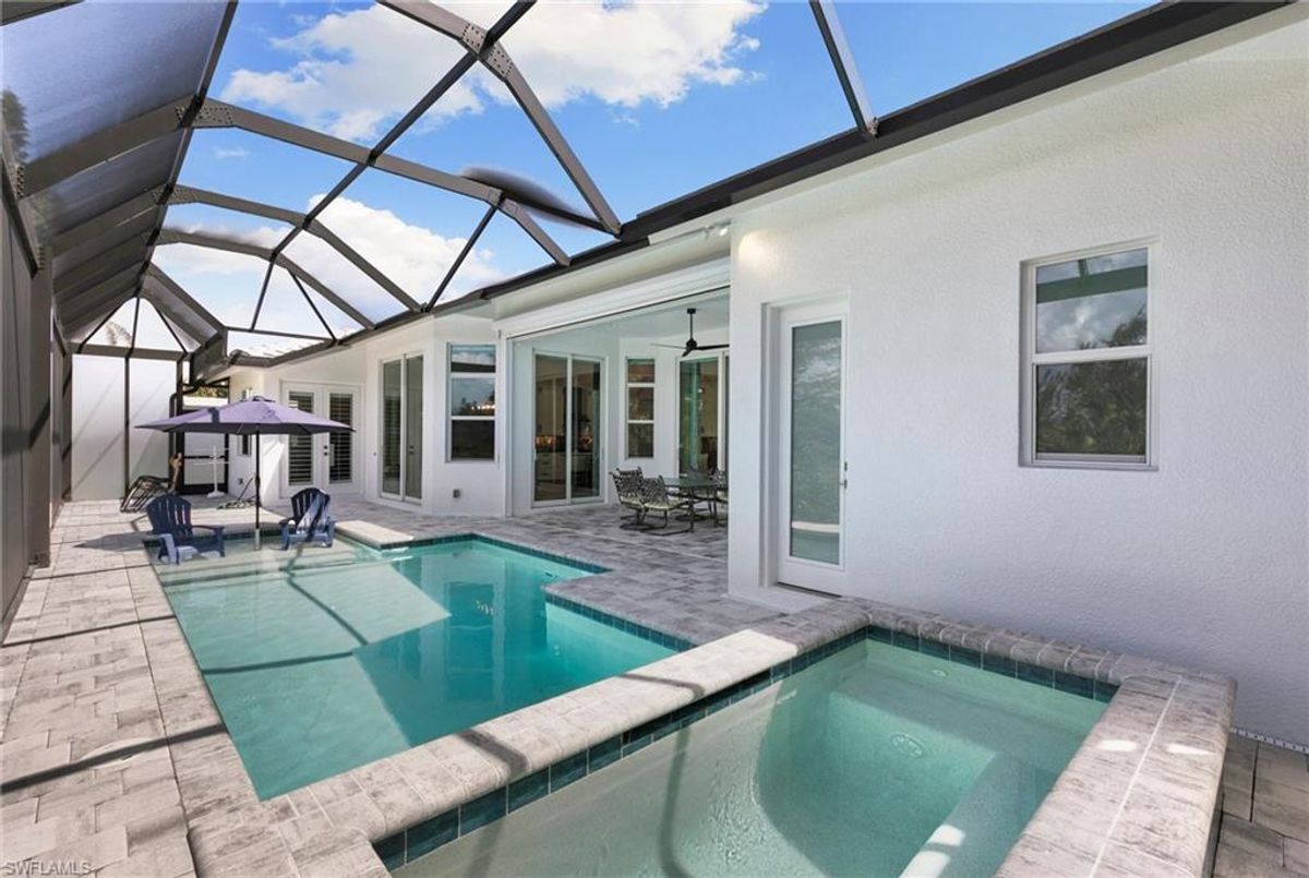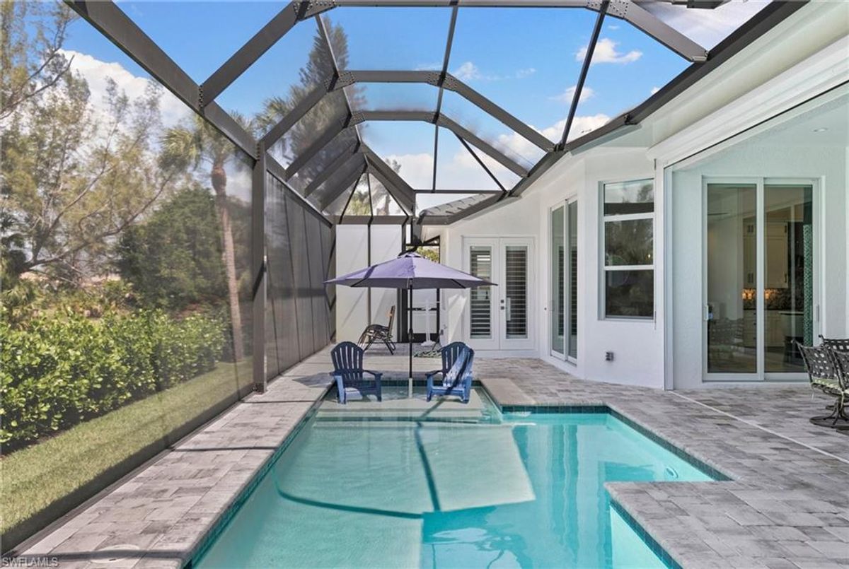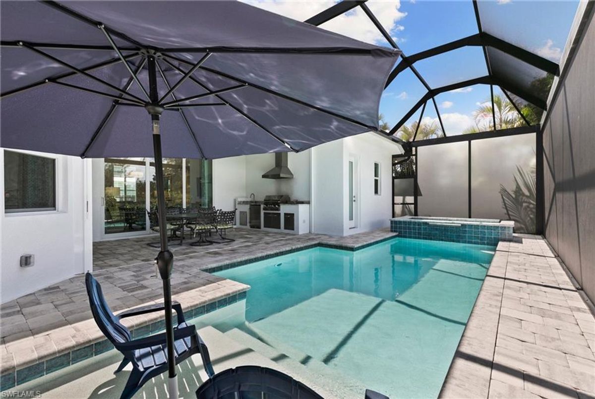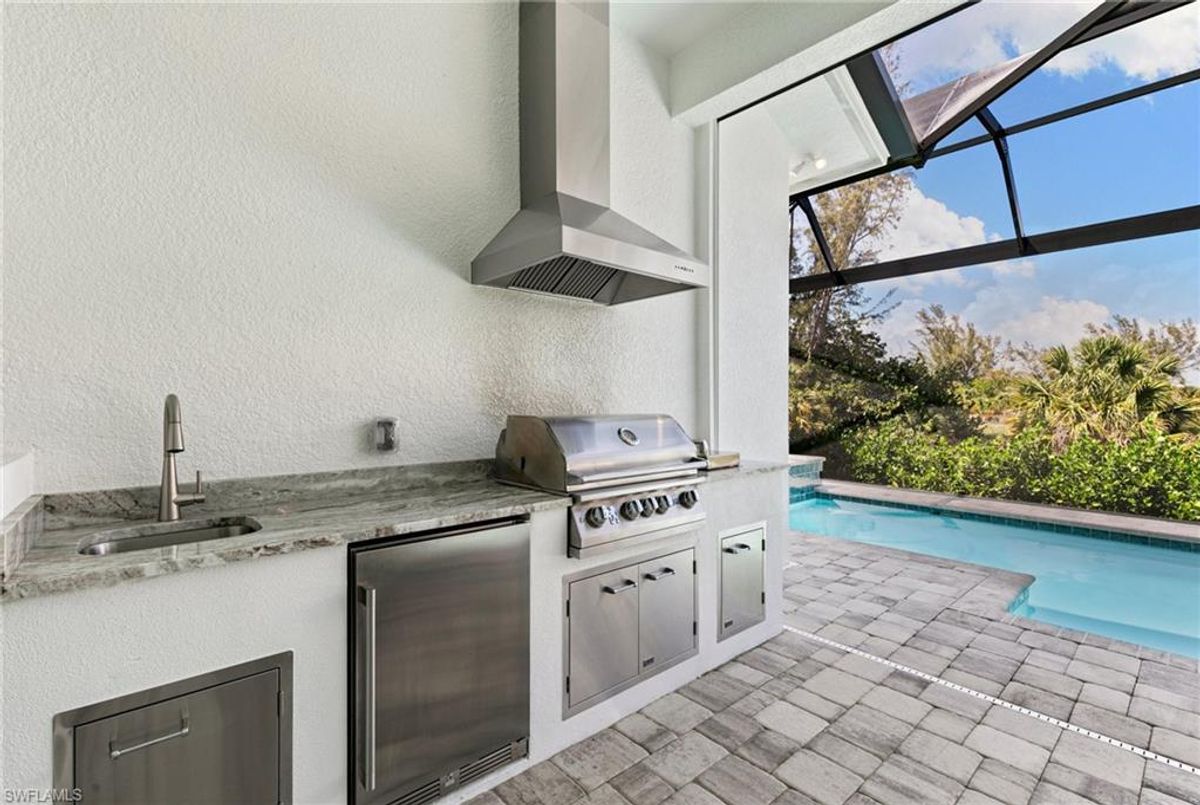 Welcome home to beautiful Marco Island! This 4-bedroom plus den, 3-bathroom 2024 new build single-family residence offers modern luxury and convenience while also providing serene nature views, with your backyard being the Marco Island Nature Preserve and Bird Sanctuary. Step inside to a spacious and elegantly designed interior, featuring an open floor plan, volume ceilings, and premium finishes. The exquisite kitchen boasts a top quality gas stove, high-end appliances, built-in wine cooler, and stunning quartz countertops with supremely crafted cabinets, with open access to the dining and living rooms. The primary bedroom provides unbeatable comfort, with french door lanai access, recessed lighting, his and hers walk-in closets, and a stupendous bathroom with walk-in shower and separate tub. Split from the primary, three guest bedrooms also impress, one en-suite, and all with pleasant natural light. The den, immediately to the right upon entry, provides the perfect space for a home office or media room. This house is absolutely built with the Southwest Florida environment in mind; upgraded to 10 foot elevation, protective storm shades, picture and privacy screens on the lanai, and a whole-house gas generator means that paradise is never interrupted. Enjoy outdoor living at its finest with a summer kitchen, complete with a refrigerator and a built-in gas barbecue, and a sparkling pool and spa, all set against the backdrop of the Island's natural beauty. Pocket Sliders that lead out to the lanai are 10 feet tall, maximizing your view. Getting to and from the home is a breeze as well, with an air conditioned 2-car garage for parking and a convenient circular paver driveway. With a relaxing neighborhood surrounding the sanctuary and Tiger tail Beach just over half a mile away, this location will not fail to please. This is an amazing opportunity to own a new home with spectacular updates in a pristine Island location, take an opportunity to have a look.