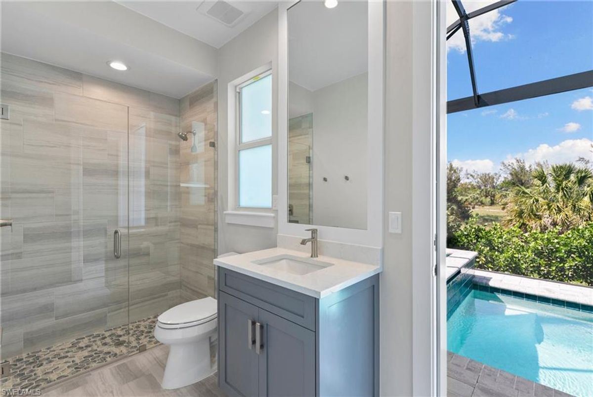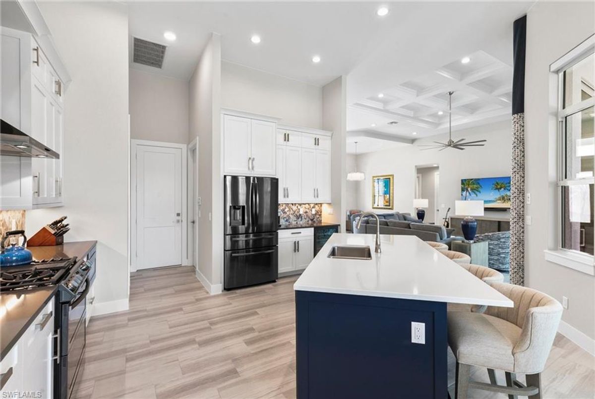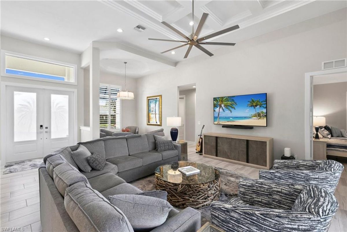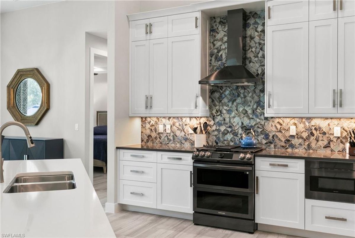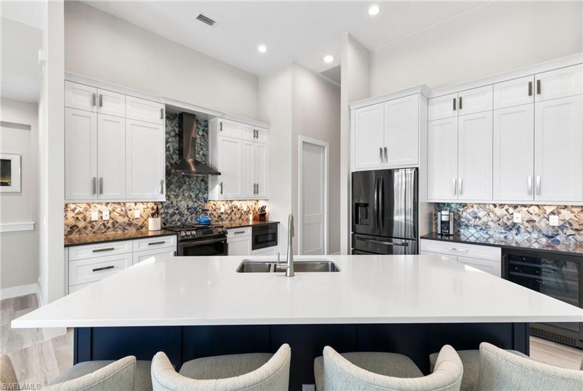 Welcome home to beautiful Marco Island! This 4-bedroom plus den, 3-bathroom 2024 new build single-family residence offers modern luxury and convenience while also providing serene nature views, with your backyard being the Marco Island Nature Preserve and Bird Sanctuary. Step inside to a spacious and elegantly designed interior, featuring an open floor plan, volume ceilings, and premium finishes. The exquisite kitchen boasts a top quality gas stove, high-end appliances, built-in wine cooler, and stunning quartz countertops with supremely crafted cabinets, with open access to the dining and living rooms. The primary bedroom provides unbeatable comfort, with french door lanai access, recessed lighting, his and hers walk-in closets, and a stupendous bathroom with walk-in shower and separate tub. Split from the primary, three guest bedrooms also impress, one en-suite, and all with pleasant natural light. The den, immediately to the right upon entry, provides the perfect space for a home office or media room. This house is absolutely built with the Southwest Florida environment in mind; upgraded to 10 foot elevation, protective storm shades, picture and privacy screens on the lanai, and a whole-house gas generator means that paradise is never interrupted. Enjoy outdoor living at its finest with a summer kitchen, complete with a refrigerator and a built-in gas barbecue, and a sparkling pool and spa, all set against the backdrop of the Island's natural beauty. Pocket Sliders that lead out to the lanai are 10 feet tall, maximizing your view. Getting to and from the home is a breeze as well, with an air conditioned 2-car garage for parking and a convenient circular paver driveway. With a relaxing neighborhood surrounding the sanctuary and Tiger tail Beach just over half a mile away, this location will not fail to please. This is an amazing opportunity to own a new home with spectacular updates in a pristine Island location, take an opportunity to have a look.