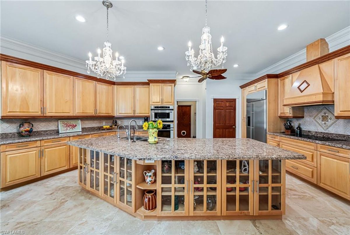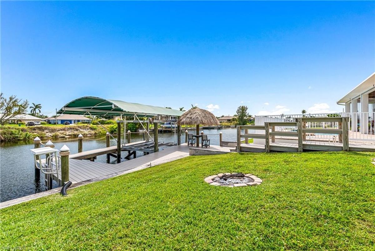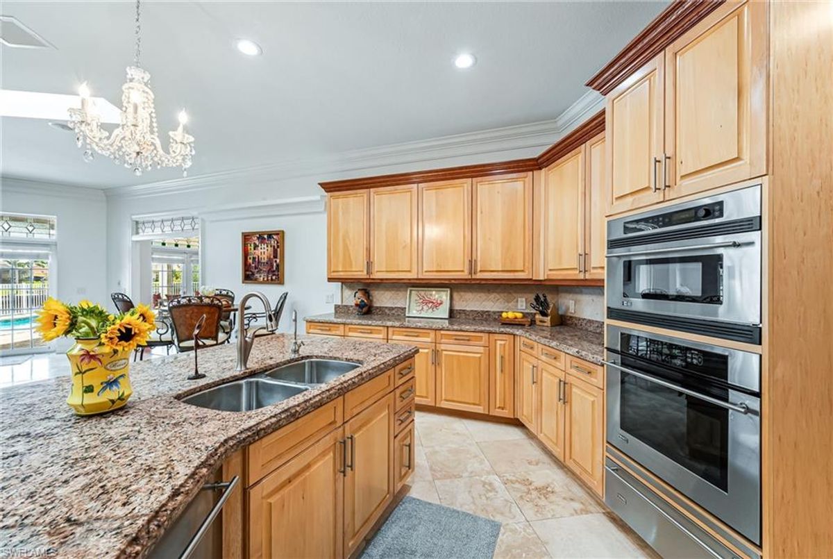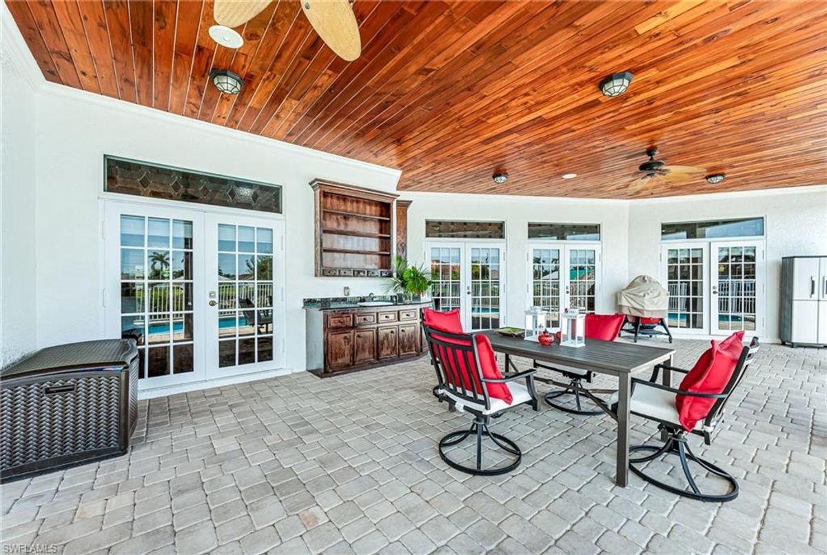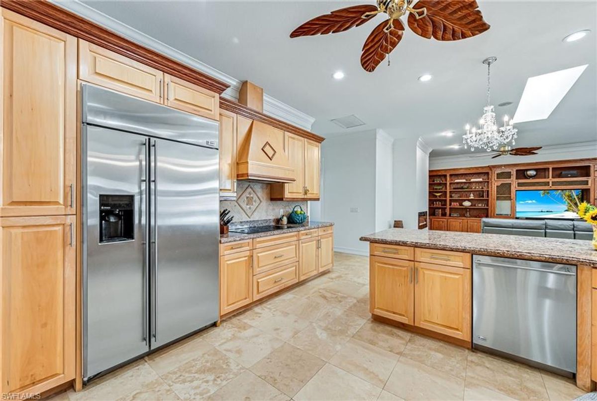 Exceptional Gulf Access Waterfront Home – Elegant, Spacious & Built for the Florida Lifestyle. NO FLOODING with any of the Hurricanes. This beautifully crafted custom waterfront home sits on a rare oversized point lot with long intersecting canal views and direct Gulf access—perfect for boating enthusiasts seeking both luxury and convenience. With room to spare, this property also offers dedicated space alongside the dock for an additional large boat or vessel, making it a true boater’s dream.From the moment you arrive, the brick paver driveway and impressive double-door entry set the tone. Inside, you'll be welcomed by an open, light-filled layout with soaring coffered ceilings, elegant crown molding, and oversized rooms throughout. With over 4,100 sq ft under air, every space in this home feels grand, yet comfortable. The split floorplan offers excellent privacy, with two spacious primary suites, each with luxurious en-suite bathrooms and plenty of room to unwind.The gourmet kitchen is both stylish and functional, featuring light wood cabinetry, skylights, high-end Monogram appliances, and a large central island that flows into the expansive living and family rooms. Whether you’re hosting a holiday dinner or enjoying a quiet breakfast in the nook, the layout is designed for both entertaining and everyday ease.Along the backside of the home, you'll find multiple French doors leading out to the patio, showcasing gorgeous views of the pool, tropical landscaping, and the serene canal beyond. Step outside to your private resort-style lanai, complete with a tongue-and-groove wood ceiling, heated pool and spa, and ample space for relaxing or entertaining.The composite dock boasts a new boat lift with a custom canopy that matches the home’s 2024 metal roof, plus ambient lighting on the pilings and room for a larger vessel alongside. The property also features a 200-foot concrete seawall, offering both peace of mind and extensive water frontage.This home is built for peace of mind with impact-resistant windows and doors, electric roll-down shutters, dual electric panels wired for a generator, and a new pool pump. Additional features include custom chandeliers and ceiling fans, built-in-style cabinetry, and even an in-ground pet fence.If you're searching for spacious luxury with exceptional waterfront access, this home truly has it all. It’s more than a residence—it’s a statement in Florida living.