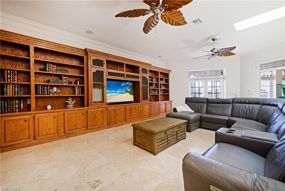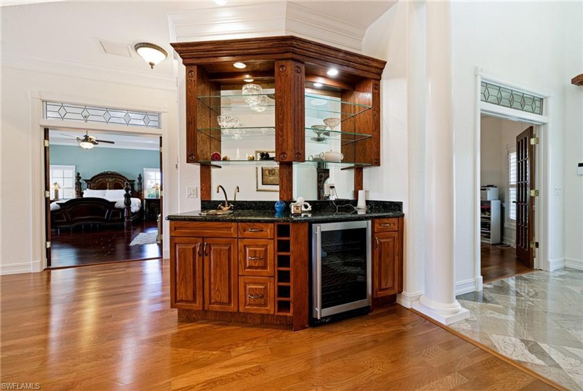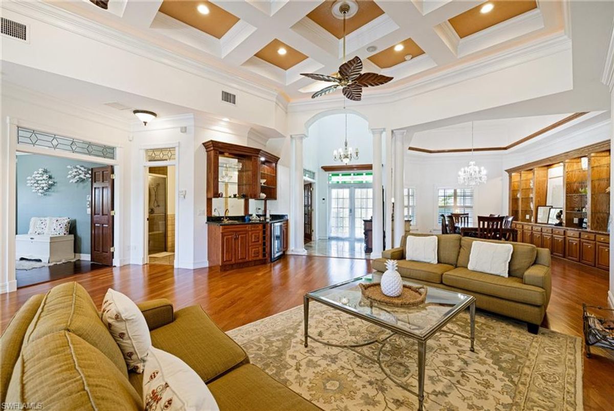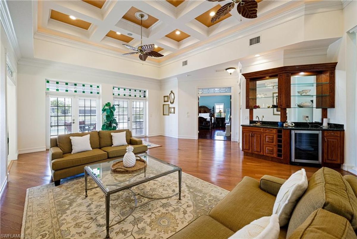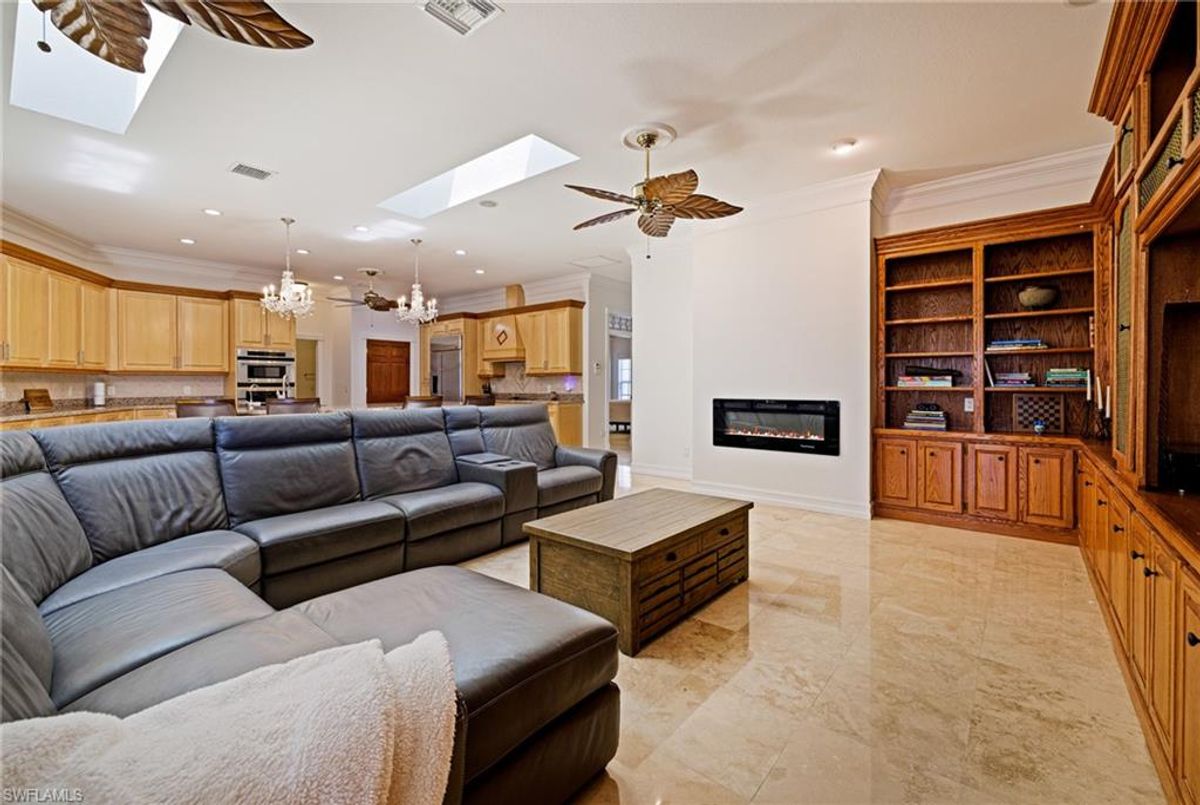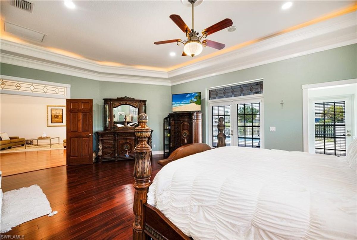 Exceptional Gulf Access Waterfront Home – Elegant, Spacious & Built for the Florida Lifestyle. NO FLOODING with any of the Hurricanes. This beautifully crafted custom waterfront home sits on a rare oversized point lot with long intersecting canal views and direct Gulf access—perfect for boating enthusiasts seeking both luxury and convenience. With room to spare, this property also offers dedicated space alongside the dock for an additional large boat or vessel, making it a true boater’s dream.From the moment you arrive, the brick paver driveway and impressive double-door entry set the tone. Inside, you'll be welcomed by an open, light-filled layout with soaring coffered ceilings, elegant crown molding, and oversized rooms throughout. With over 4,100 sq ft under air, every space in this home feels grand, yet comfortable. The split floorplan offers excellent privacy, with two spacious primary suites, each with luxurious en-suite bathrooms and plenty of room to unwind.The gourmet kitchen is both stylish and functional, featuring light wood cabinetry, skylights, high-end Monogram appliances, and a large central island that flows into the expansive living and family rooms. Whether you’re hosting a holiday dinner or enjoying a quiet breakfast in the nook, the layout is designed for both entertaining and everyday ease.Along the backside of the home, you'll find multiple French doors leading out to the patio, showcasing gorgeous views of the pool, tropical landscaping, and the serene canal beyond. Step outside to your private resort-style lanai, complete with a tongue-and-groove wood ceiling, heated pool and spa, and ample space for relaxing or entertaining.The composite dock boasts a new boat lift with a custom canopy that matches the home’s 2024 metal roof, plus ambient lighting on the pilings and room for a larger vessel alongside. The property also features a 200-foot concrete seawall, offering both peace of mind and extensive water frontage.This home is built for peace of mind with impact-resistant windows and doors, electric roll-down shutters, dual electric panels wired for a generator, and a new pool pump. Additional features include custom chandeliers and ceiling fans, built-in-style cabinetry, and even an in-ground pet fence.If you're searching for spacious luxury with exceptional waterfront access, this home truly has it all. It’s more than a residence—it’s a statement in Florida living.