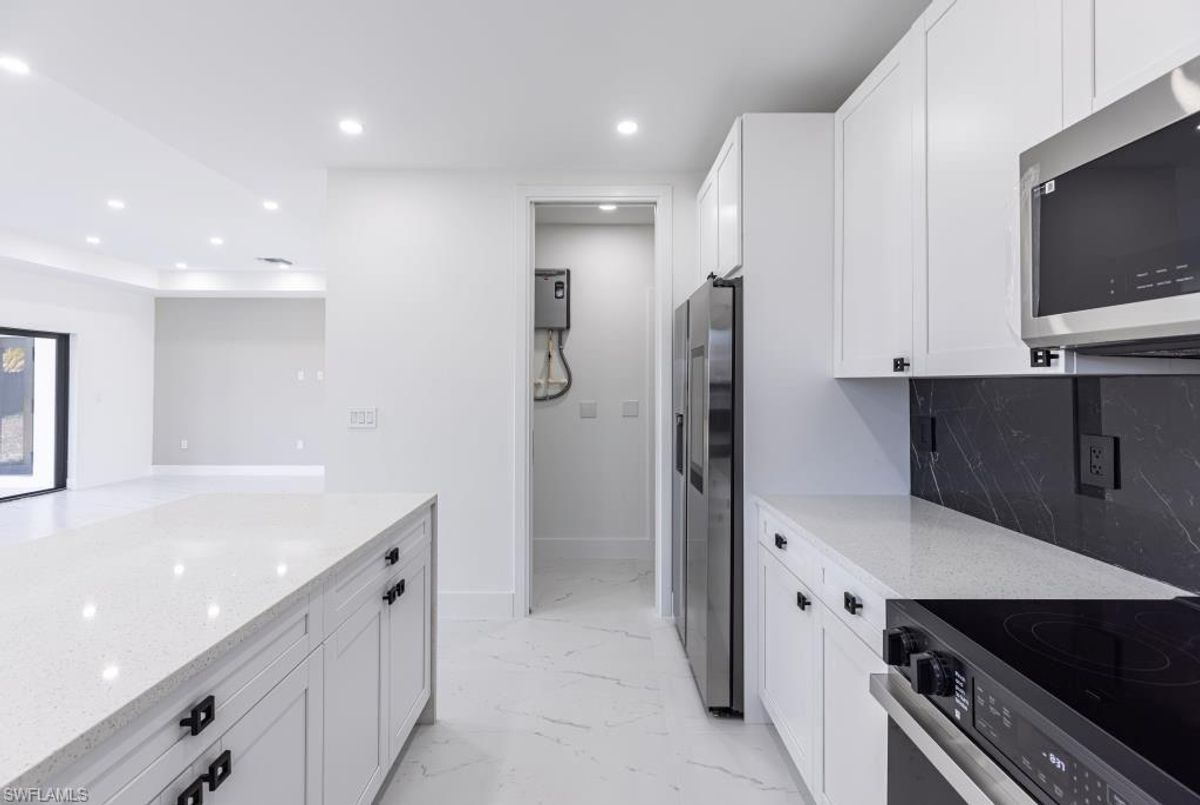 Modern Elegance Meets Everyday Comfort – Move-In Ready New Construction! Extra LotExperience refined living in this brand-new, modern-designed home offering 4 bedrooms, 2.5 bathrooms, and nearly 2,930 square feet of open-concept space. Soaring ceilings and sleek porcelain flooring set the tone for upscale living throughout.The chef-inspired kitchen stuns with soft-close cabinetry, waterfall-edge quartz countertops, and a full porcelain backsplash—perfect for entertaining or everyday luxury.Enjoy spa-like bathrooms featuring glass-enclosed showers, double vanities with full-size mirrors, and modern LED lighting that adds style and warmth.Thoughtful upgrades include:*Hurricane impact windows & doors*Epoxy-coated garage flooring + hurricane-rated doors*Tankless water heater & ample laundry room storageRelax under the shaded, covered lanai surrounded by mature trees—your private outdoor oasis.Stylish, functional, and built to impress—this modern masterpiece is priced to sell. Schedule your showing today!