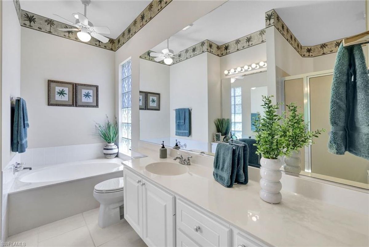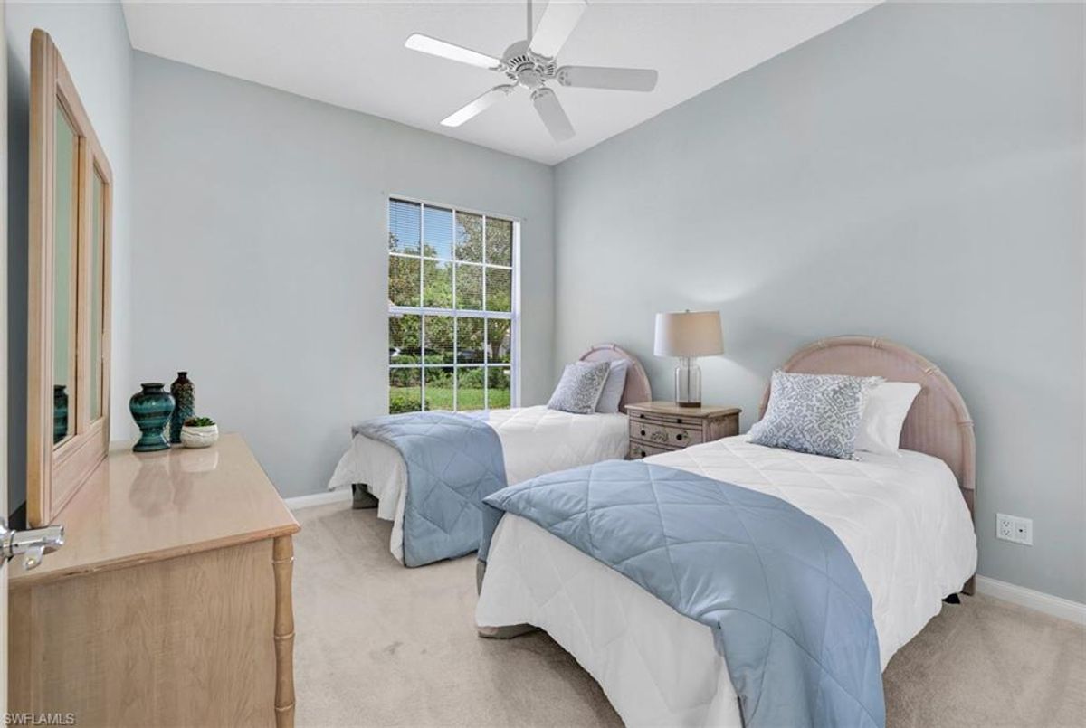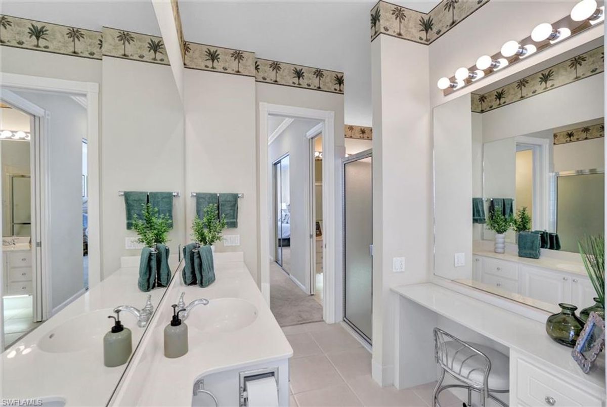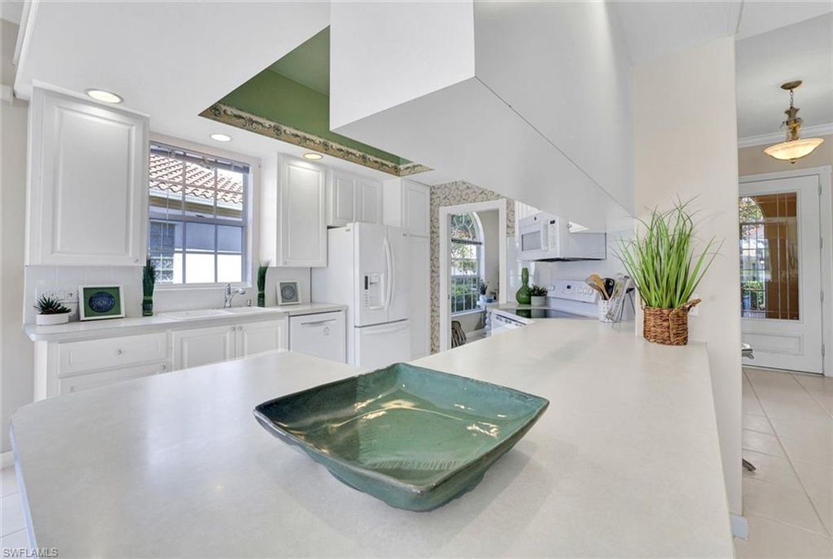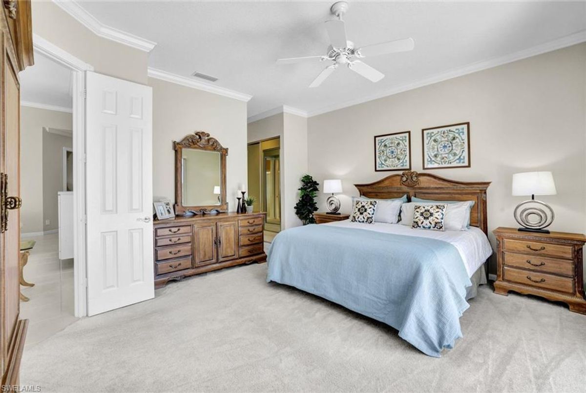 Discover this beautifully maintained extended Oakmont model in Island Walk—offering a NEW ROOF (2023), RE-SURFACED POOL AND POOL DECK, NEWER HEATER, and N.WESTERN LONG LAKE VIEWS. This 2,181 sq. ft. DiVosta-built poured concrete home sits on a 0.19-acre lot with larger side yards for privacy. With hurricane shutters all-around, a 2017 installed AC and a 2018 renewed screen enclosure, this home provides year-round enjoyment. Inside, enjoy crown molding, ceiling fans in every room, white tile in living areas and den, and a freshly painted living room. The kitchen features appliances (all 4 years or newer), and the 2023 washer & dryer add convenience. A den with built-in desk offers flexible space for work or hobbies. The side-entry garage includes added storage and a resurfaced floor. With its serene setting, thoughtful upgrades, and meticulously cared-for features, this one-owner home is the perfect Florida retreat. Island Walk is renowned for its amenities, including a community center with a bustling activities calendar, lap and resort-style pools, a restaurant with rave reviews, gas station, car wash, nail and hair salon, and post office. Sports enthusiasts will appreciate the state-of the art gym, clay tennis courts, pickleball, basketball, and bocce ball courts. Experience the best of Naples living in this exceptional home in Island Walk.