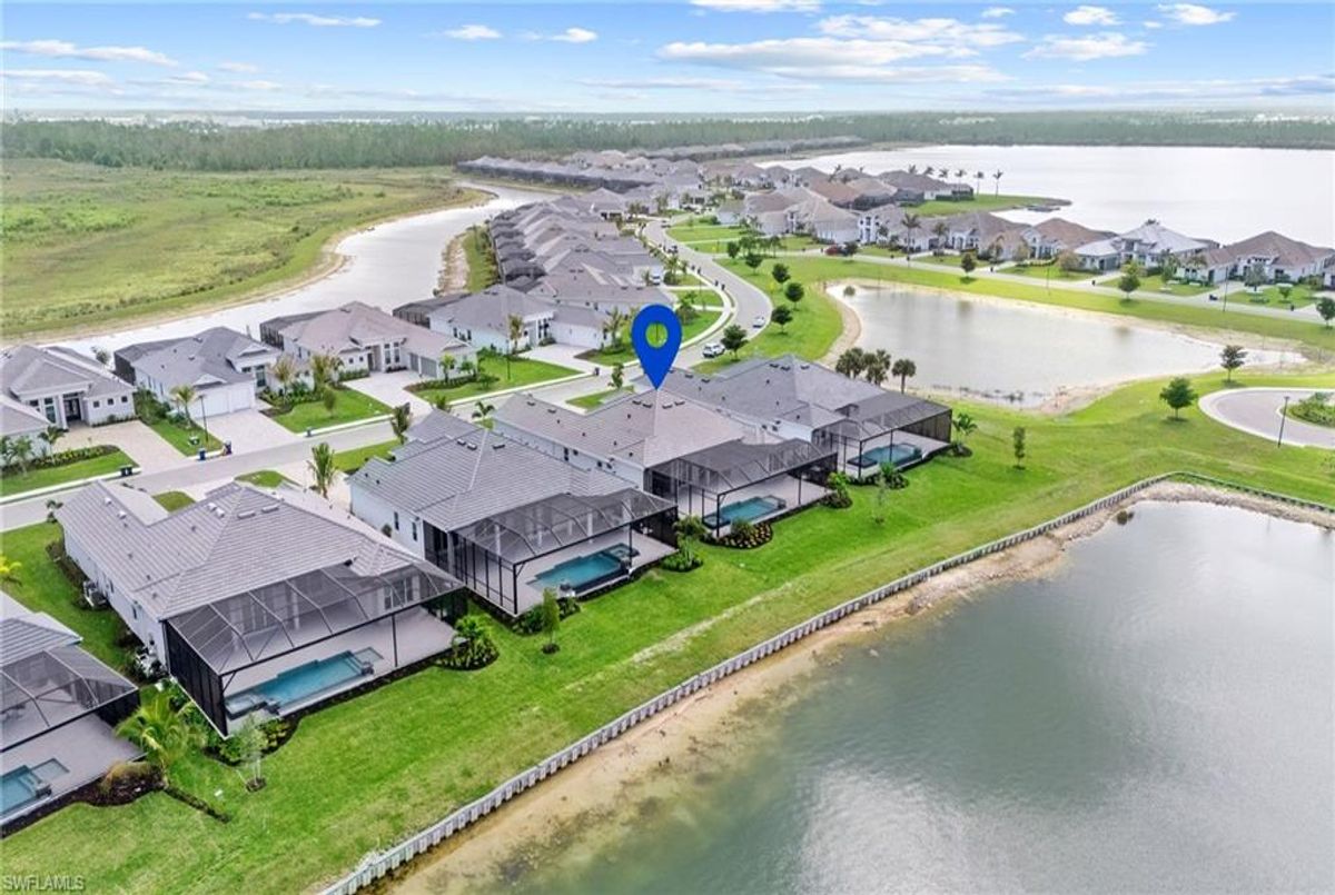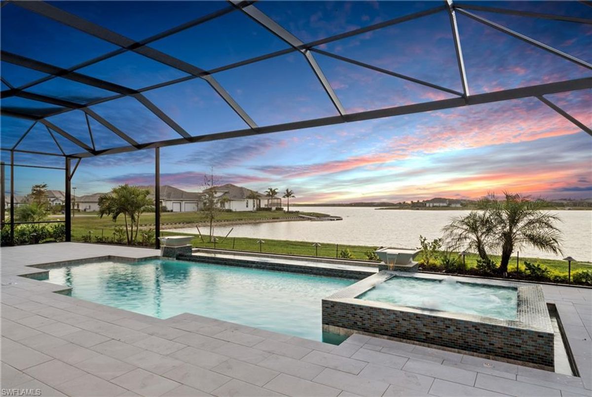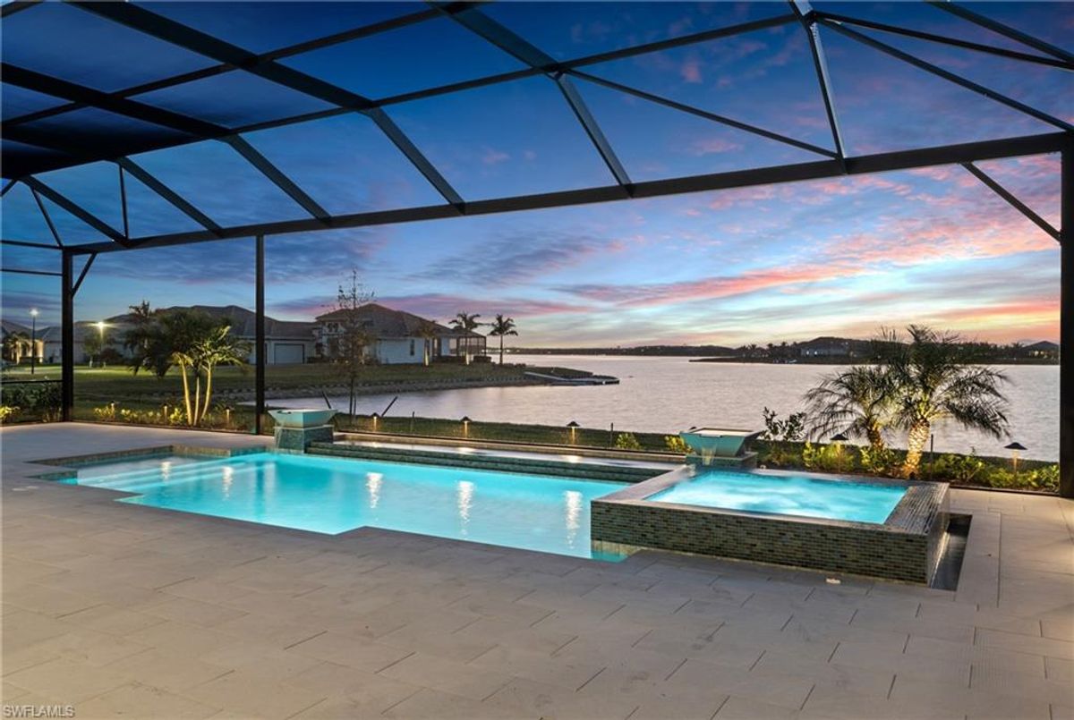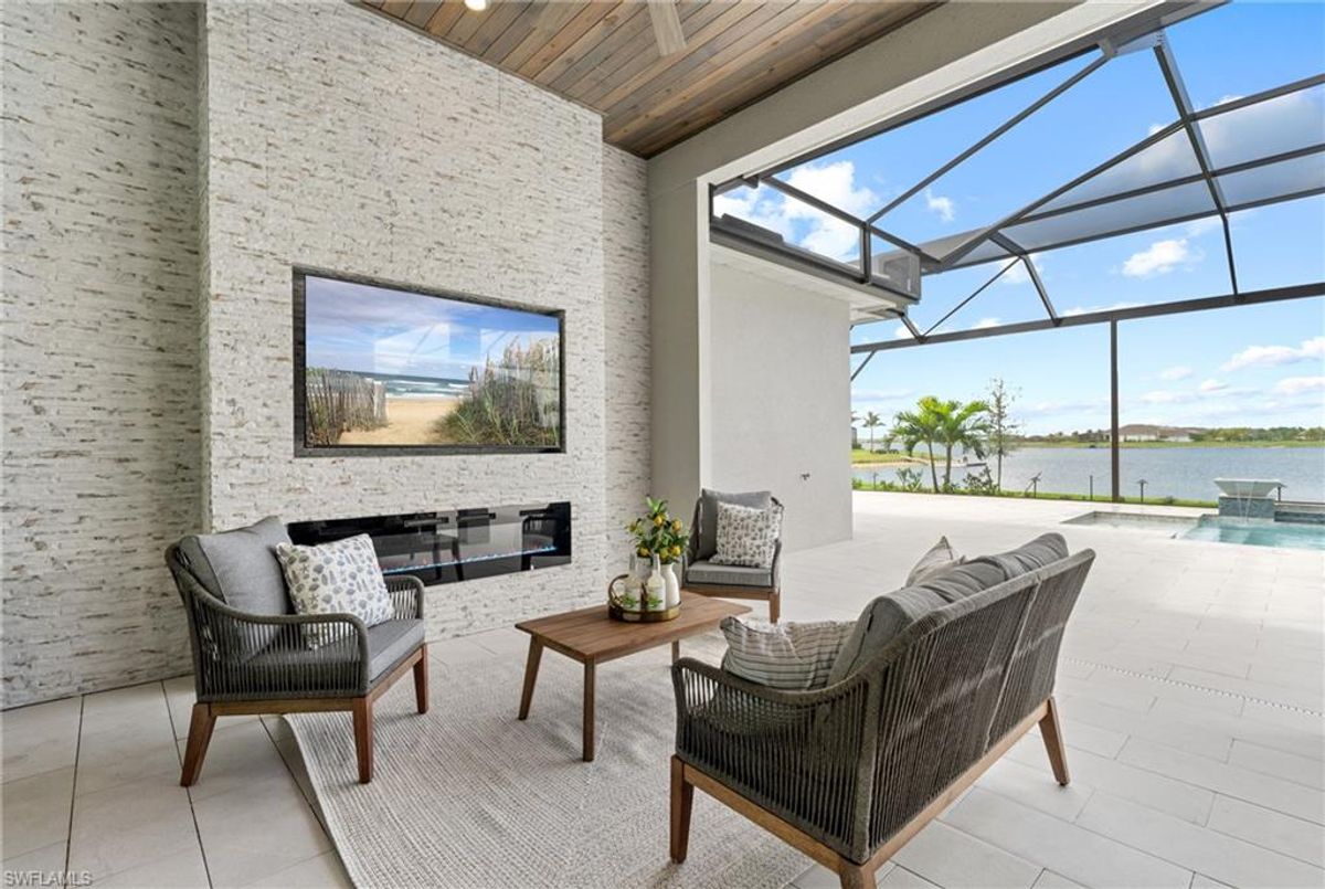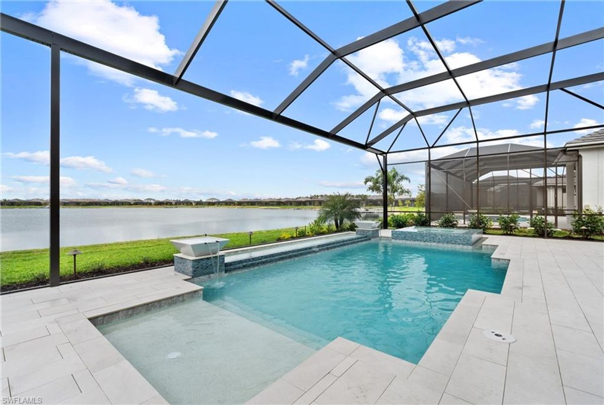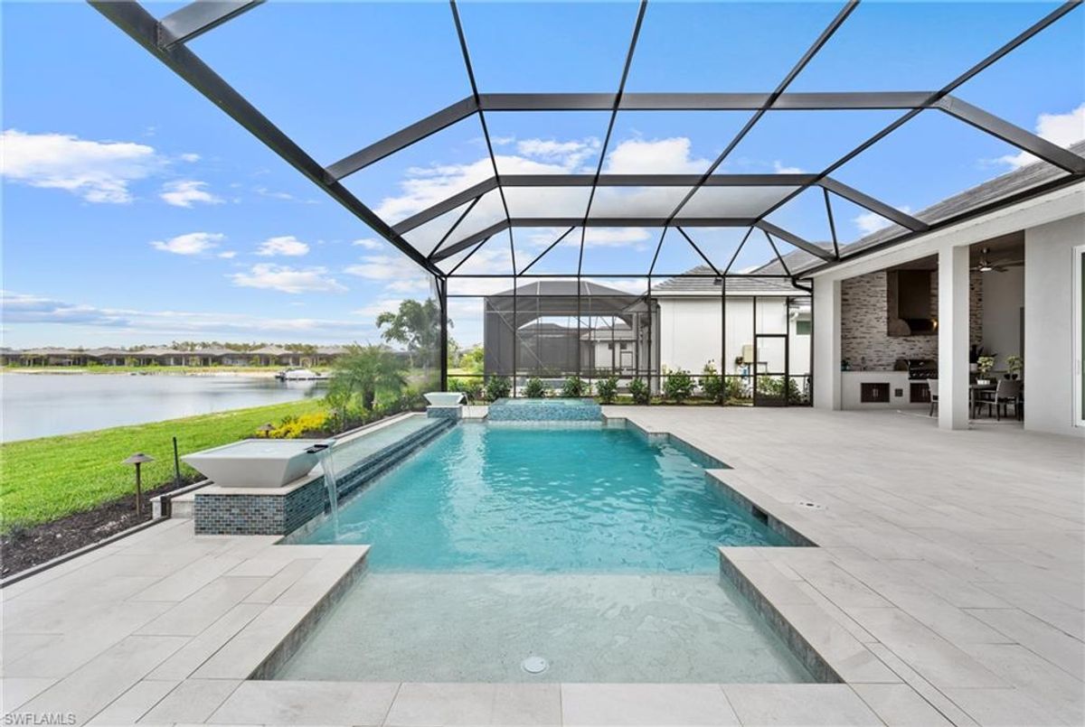 Now fully furnished – move-in ready with designer-selected pieces throughout!Welcome to a distinguished home at 17346 Blue Sapphire Drive, located in the exclusive community of Wildblue, Fort Myers, FL. This immaculate, newly built residence embodies refined elegance and offers an unparalleled living experience. The sophisticated WCI Luxury Baneberry floor plan features four spacious bedrooms, three and a half exquisite baths, and an ample three-car garage, encompassing 3,178 square feet of pristine living area. Set on a sprawling 14,211-square-foot estate lot, this property provides a sense of grandeur and privacy.Upon entry, you are welcomed by custom trim woodworking adorning the tray ceilings, adding an artistic flair to the ambiance. The living room is a testament to luxury, with a custom-designed entertainment center complete with a fireplace, extending seamlessly to the lanai for harmonious indoor-outdoor living. Over $250,000 in custom upgrades have been meticulously integrated throughout the home, enhancing its sophistication and comfort. This residence is adorned with a tailored lighting and mirror package, elevating the home's inherent elegance.Step outside to find custom landscaping and ambient lighting that enhance the pool deck, perfect for savoring the tranquil southwest views. Additionally, the garage is air-conditioned with a mini-split system, providing a comfortable environment for your vehicles and storage needs.This home offers not only a picturesque long water view but also access to The Cove at Wildblue's exceptional boating and lifestyle amenities. Enjoy the resort-style pool equipped with an outdoor bar and grill, as well as fine dining indoors. For those seeking an active lifestyle, Wildblue provides a fitness center complete with a day spa, along with pickleball, tennis, bocce, and horseshoe courts. Don't forget the exercise pool and members' locker rooms for a comprehensive wellness experience.Never lived in, this home awaits discerning buyers ready to indulge in its beauty and sophistication. The home is professionally staged, further enhancing its appeal and readiness for its fortunate new owners. Experience the unique charm and serenity of this magnificent estate, where luxury is redefined.