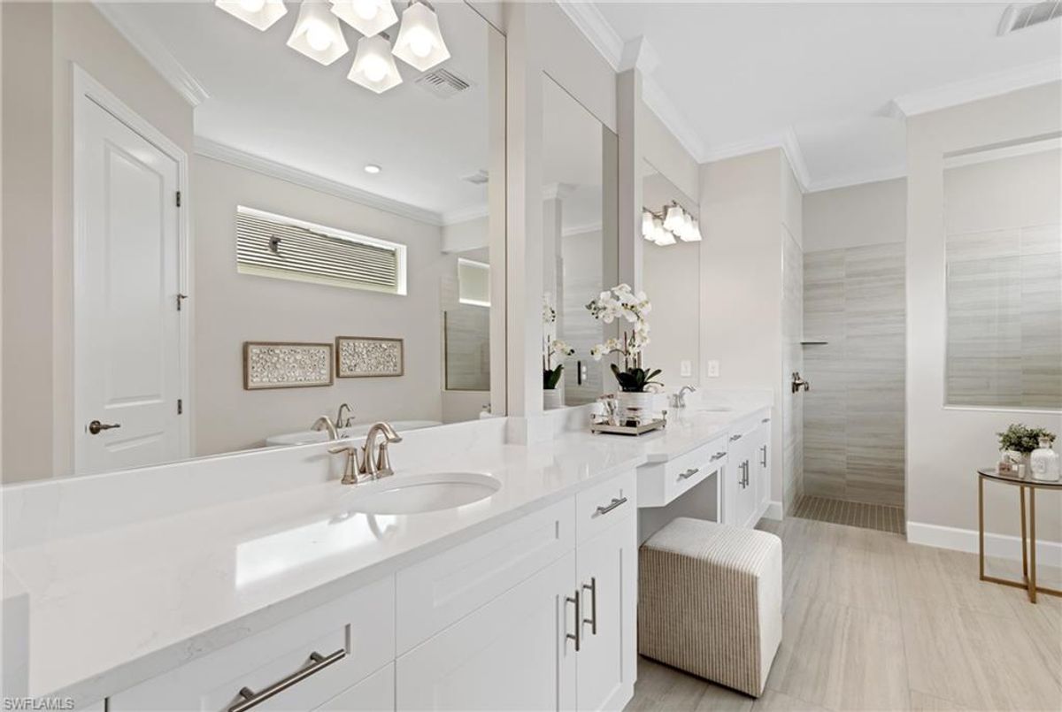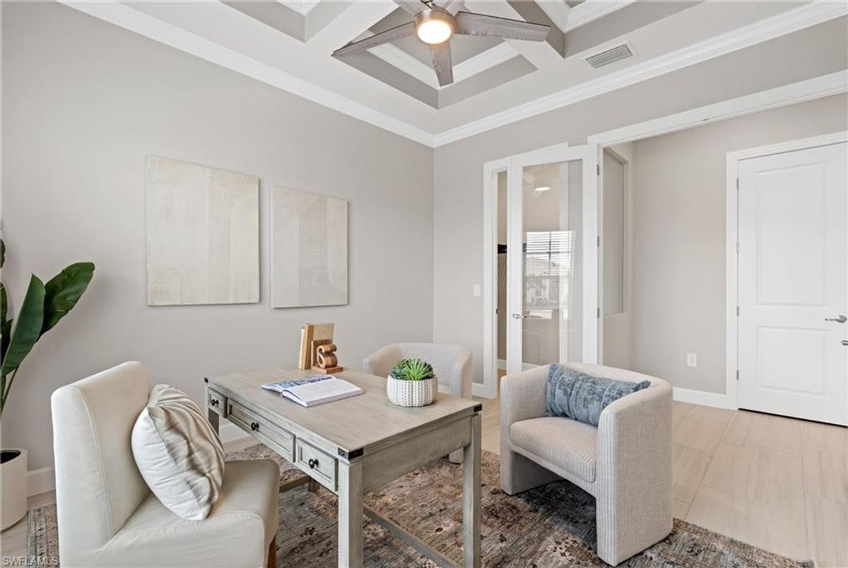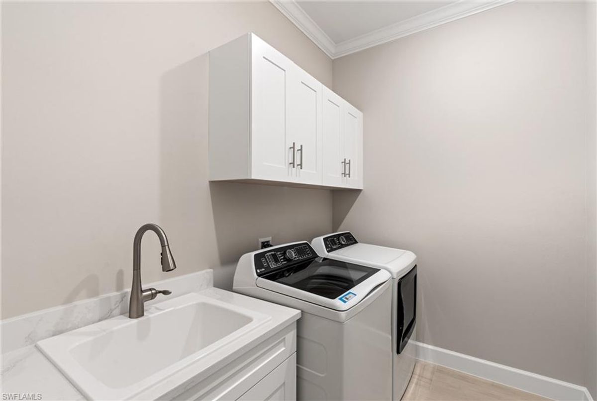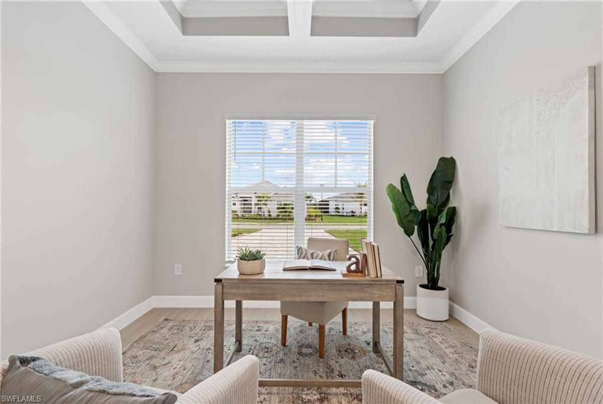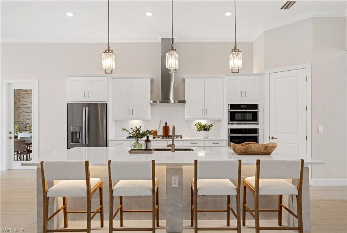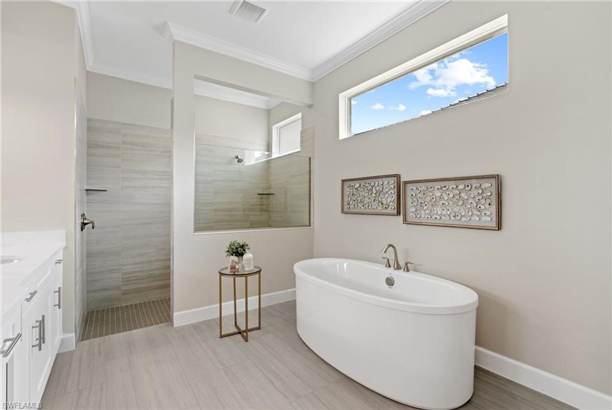 Now fully furnished – move-in ready with designer-selected pieces throughout!Welcome to a distinguished home at 17346 Blue Sapphire Drive, located in the exclusive community of Wildblue, Fort Myers, FL. This immaculate, newly built residence embodies refined elegance and offers an unparalleled living experience. The sophisticated WCI Luxury Baneberry floor plan features four spacious bedrooms, three and a half exquisite baths, and an ample three-car garage, encompassing 3,178 square feet of pristine living area. Set on a sprawling 14,211-square-foot estate lot, this property provides a sense of grandeur and privacy.Upon entry, you are welcomed by custom trim woodworking adorning the tray ceilings, adding an artistic flair to the ambiance. The living room is a testament to luxury, with a custom-designed entertainment center complete with a fireplace, extending seamlessly to the lanai for harmonious indoor-outdoor living. Over $250,000 in custom upgrades have been meticulously integrated throughout the home, enhancing its sophistication and comfort. This residence is adorned with a tailored lighting and mirror package, elevating the home's inherent elegance.Step outside to find custom landscaping and ambient lighting that enhance the pool deck, perfect for savoring the tranquil southwest views. Additionally, the garage is air-conditioned with a mini-split system, providing a comfortable environment for your vehicles and storage needs.This home offers not only a picturesque long water view but also access to The Cove at Wildblue's exceptional boating and lifestyle amenities. Enjoy the resort-style pool equipped with an outdoor bar and grill, as well as fine dining indoors. For those seeking an active lifestyle, Wildblue provides a fitness center complete with a day spa, along with pickleball, tennis, bocce, and horseshoe courts. Don't forget the exercise pool and members' locker rooms for a comprehensive wellness experience.Never lived in, this home awaits discerning buyers ready to indulge in its beauty and sophistication. The home is professionally staged, further enhancing its appeal and readiness for its fortunate new owners. Experience the unique charm and serenity of this magnificent estate, where luxury is redefined.