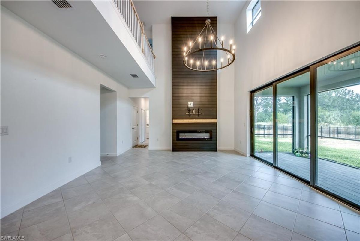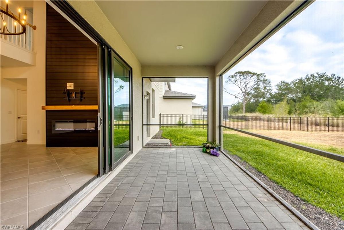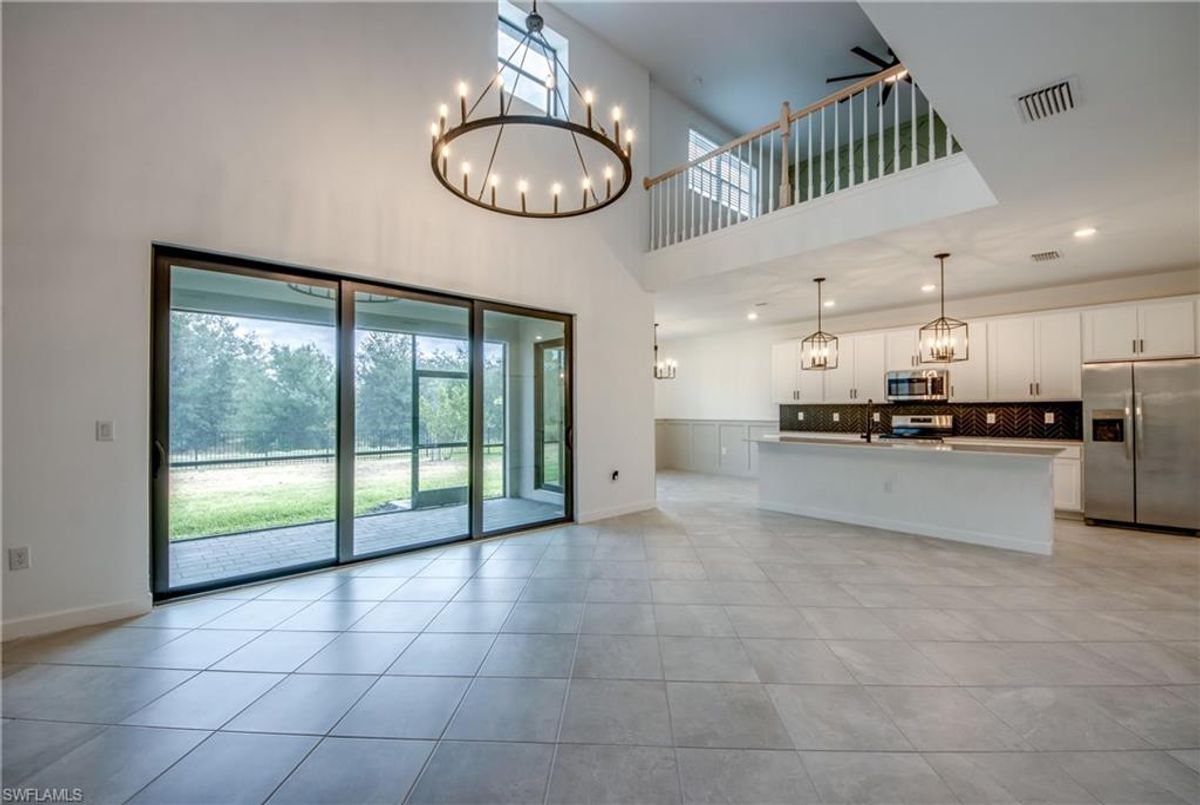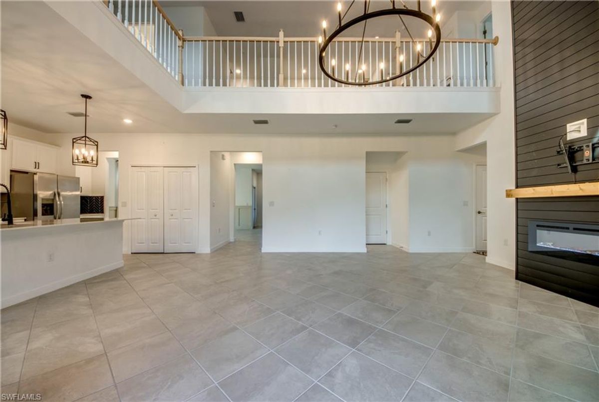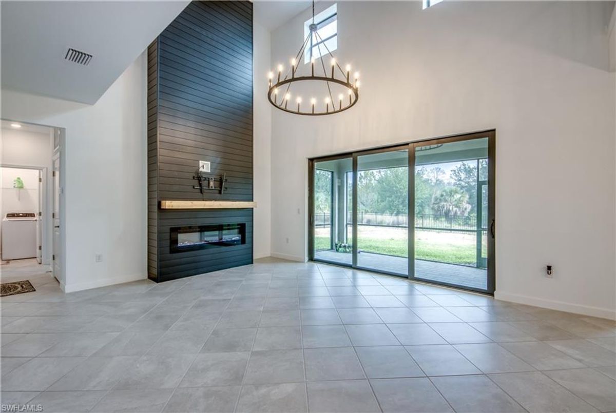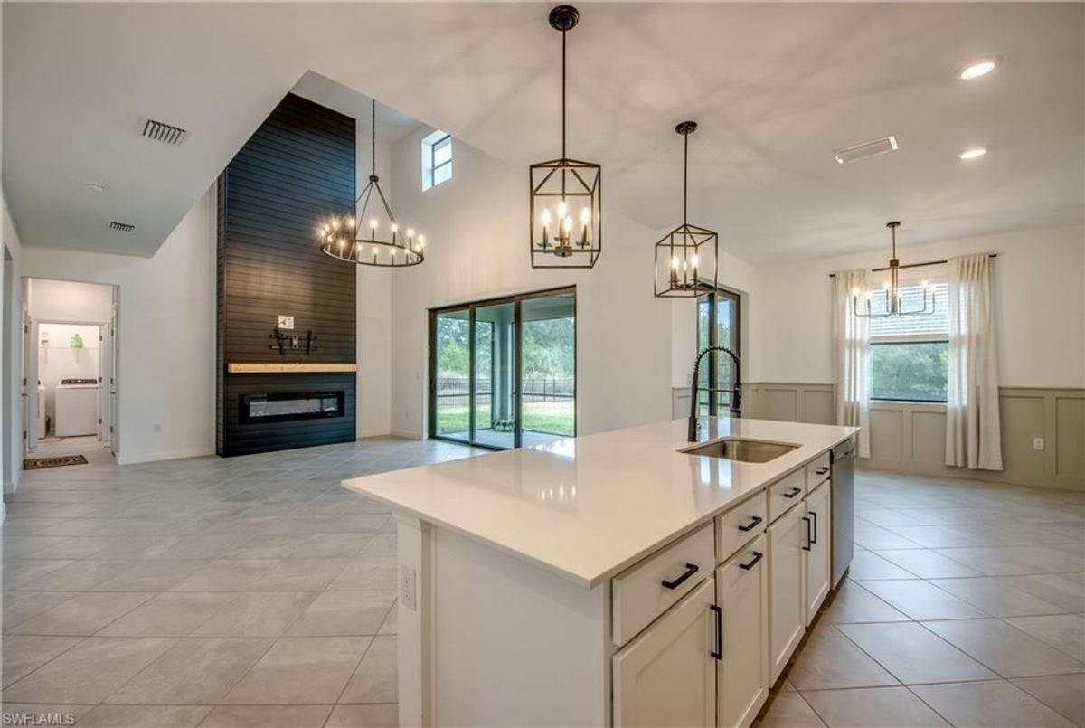 This stunning 2023-built Sorrento Model built by Lennar offers 5 bedrooms, 4.5 bathrooms, and 3,357 square feet of luxurious living space in the coveted Timber Creek community. The home features a completely fenced in backyard and backs up to a preserve for perfect amount of privacy complete with impact windows and doors. Pulling up the well thought out landscaping, covered entry area is eye-catching and complemented by two separate garages, one 1-car, one 2-car. Downstairs, diagonally laid porcelain tile floors enhances the huge layout, highlighted by a modern kitchen with quartz countertops, and a large island that allows for pull-up seating, white shaker cabinetry, an elegant backsplash paired perfectly with the elegant lighting fixtures. The kitchen flows into a breakfast nook, and a walk-in pantry, main living area. Can't have a house built for entertaining or comfort with a formal dining area. A giant 20ft tall shiplap custom entertainment center with an LED fireplace anchors the main living room and is a Huge focal point stretching past the second floor from downstairs to the ceiling. First floor has an ensuite with backyard access, a powder room, and a laundry room. Custom wainscoting walls in the nook and formal dining and one custom trimmed accent wall down stairs catching your eye as soon as you walk in. On the second floor, a spacious loft and overlooks the grand living area below, joined by a playroom with another custom trimmed accent wall, three guest bedrooms (one an ensuite with attached bathroom), and a massive owner’s suite boasting his and her dual walk-in closets, separate vanities, and a walk-in shower. Recent upgrades include energy-efficient windows, a smart thermostat, and fresh interior paint. Timber Creek’s resort-style amenities, including a lap pool, state-of-the-art fitness center, sauna, play area, pickleball courts, putting green, and indoor/outdoor restaurant and bar, elevate the lifestyle. Near RSW Airport, JetBlue Park, and dining, this home includes a 1-year home warranty, blending privacy, luxury, and convenience seamlessly.