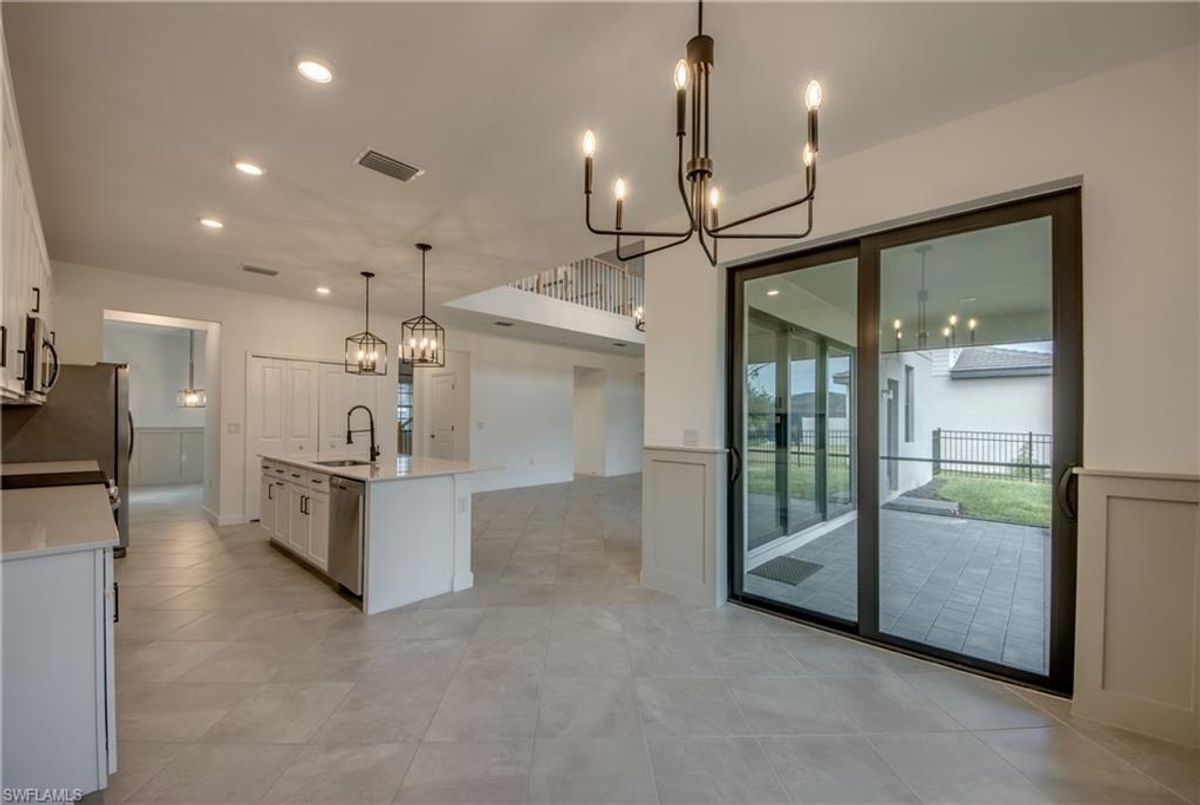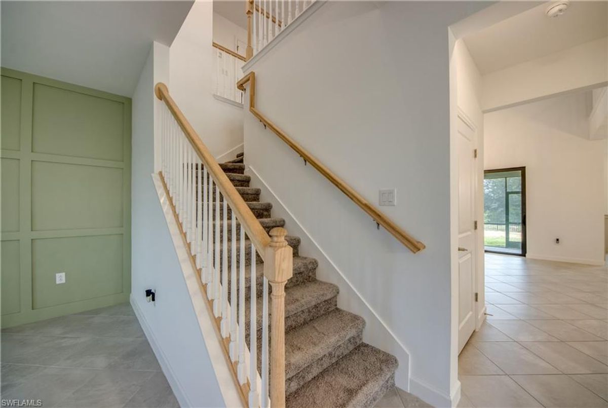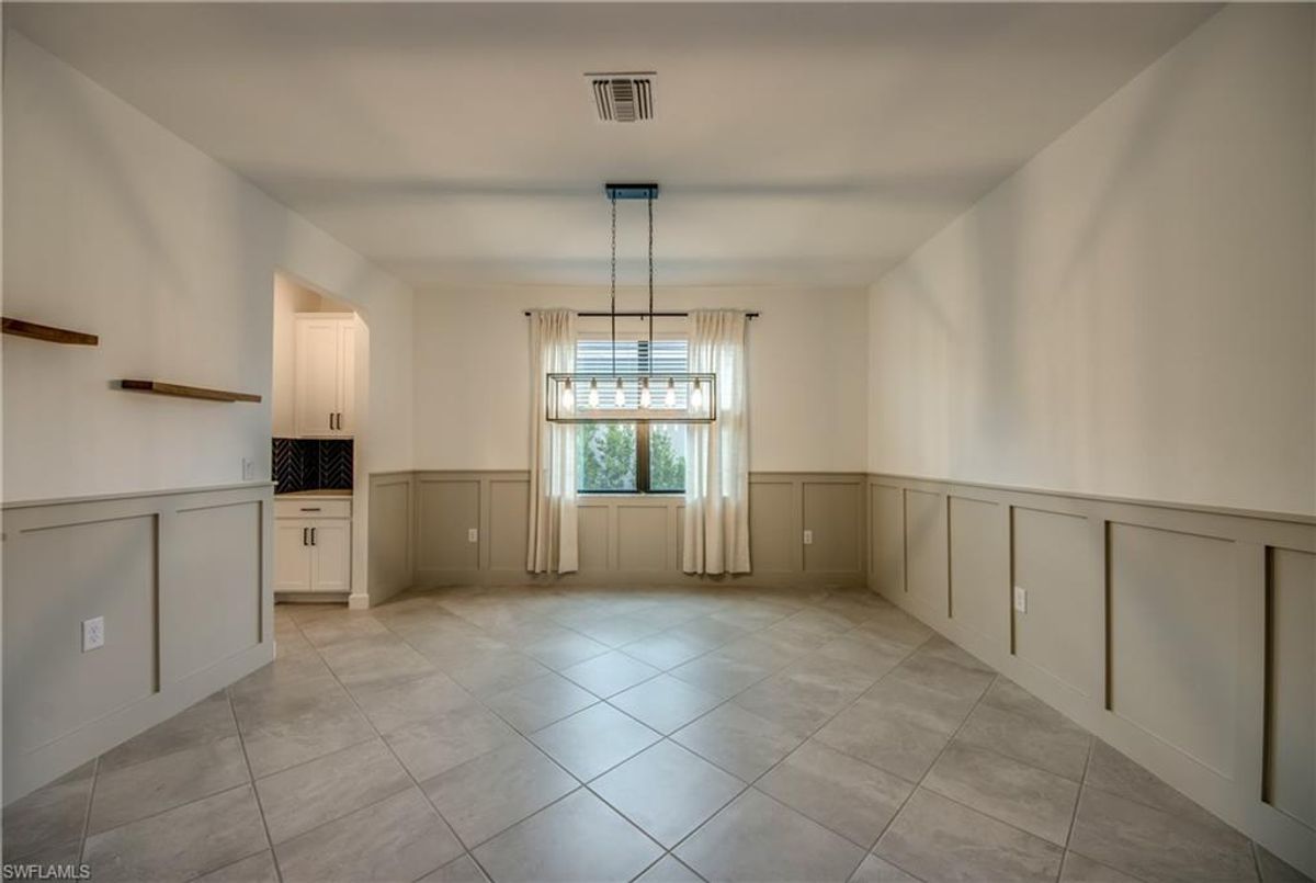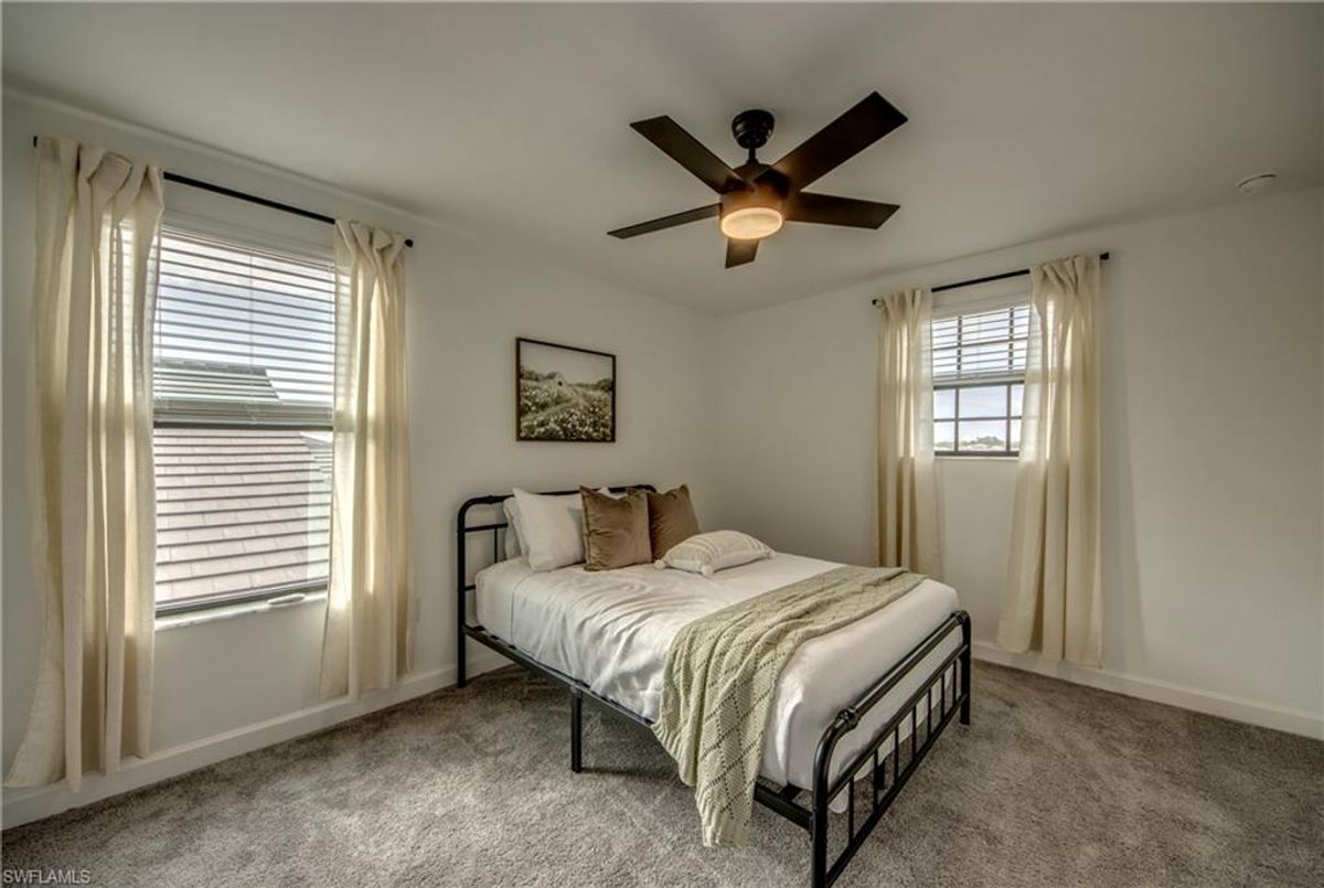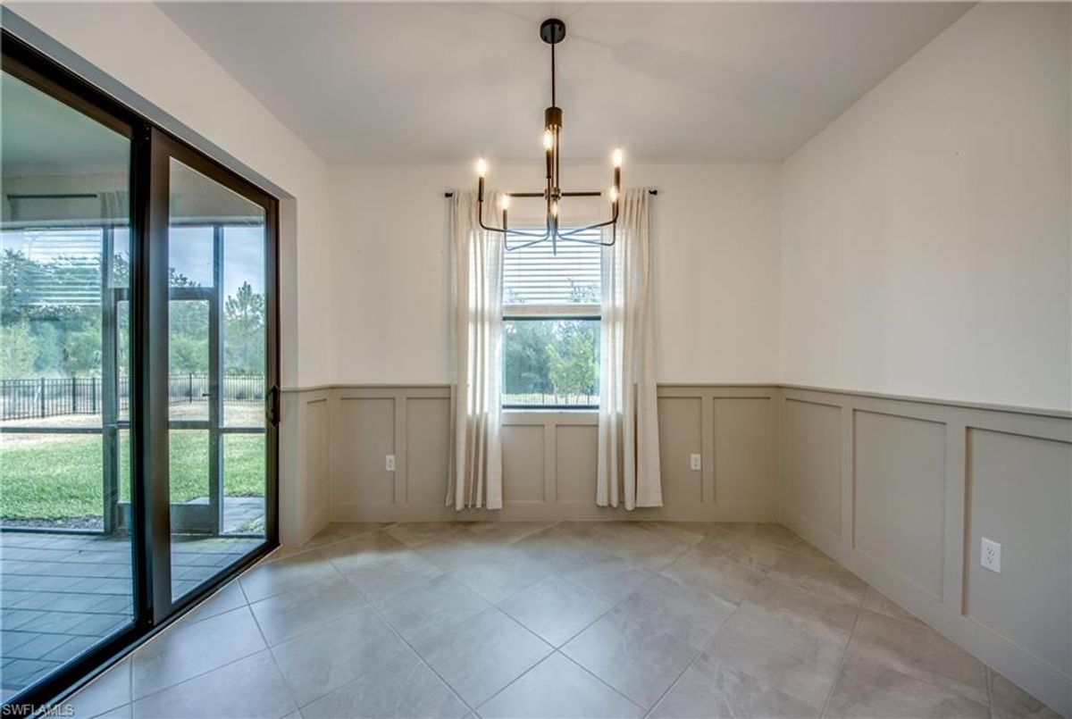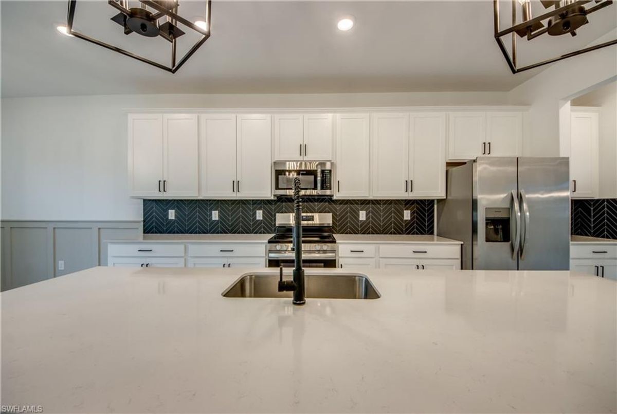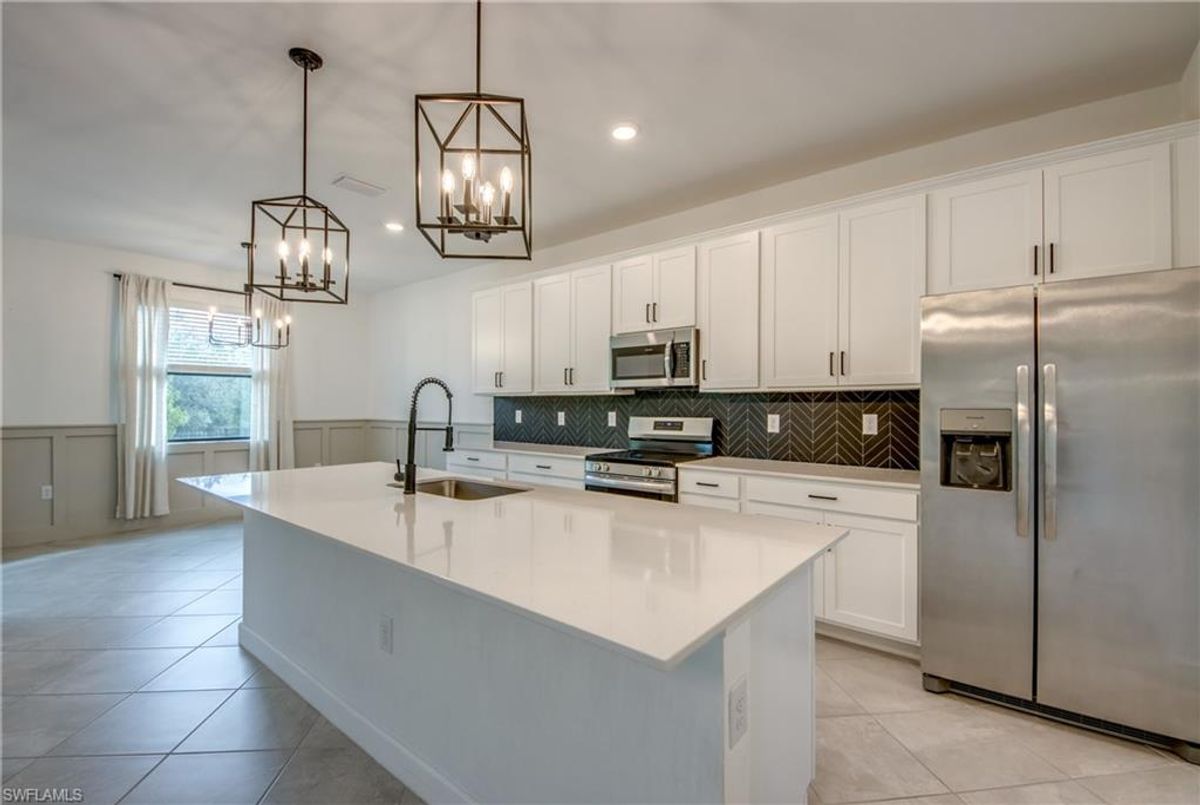 This stunning 2023-built Sorrento Model built by Lennar offers 5 bedrooms, 4.5 bathrooms, and 3,357 square feet of luxurious living space in the coveted Timber Creek community. The home features a completely fenced in backyard and backs up to a preserve for perfect amount of privacy complete with impact windows and doors. Pulling up the well thought out landscaping, covered entry area is eye-catching and complemented by two separate garages, one 1-car, one 2-car. Downstairs, diagonally laid porcelain tile floors enhances the huge layout, highlighted by a modern kitchen with quartz countertops, and a large island that allows for pull-up seating, white shaker cabinetry, an elegant backsplash paired perfectly with the elegant lighting fixtures. The kitchen flows into a breakfast nook, and a walk-in pantry, main living area. Can't have a house built for entertaining or comfort with a formal dining area. A giant 20ft tall shiplap custom entertainment center with an LED fireplace anchors the main living room and is a Huge focal point stretching past the second floor from downstairs to the ceiling. First floor has an ensuite with backyard access, a powder room, and a laundry room. Custom wainscoting walls in the nook and formal dining and one custom trimmed accent wall down stairs catching your eye as soon as you walk in. On the second floor, a spacious loft and overlooks the grand living area below, joined by a playroom with another custom trimmed accent wall, three guest bedrooms (one an ensuite with attached bathroom), and a massive owner’s suite boasting his and her dual walk-in closets, separate vanities, and a walk-in shower. Recent upgrades include energy-efficient windows, a smart thermostat, and fresh interior paint. Timber Creek’s resort-style amenities, including a lap pool, state-of-the-art fitness center, sauna, play area, pickleball courts, putting green, and indoor/outdoor restaurant and bar, elevate the lifestyle. Near RSW Airport, JetBlue Park, and dining, this home includes a 1-year home warranty, blending privacy, luxury, and convenience seamlessly.