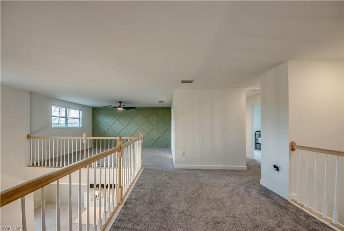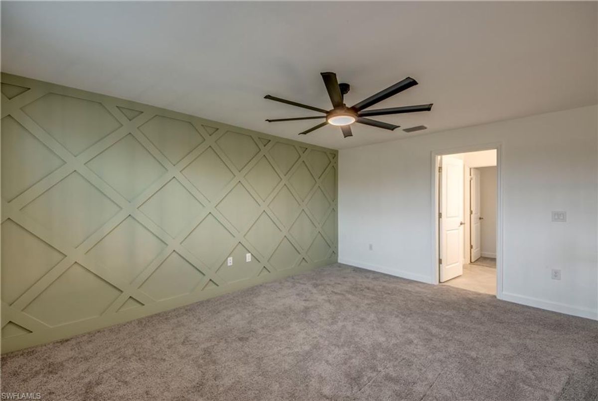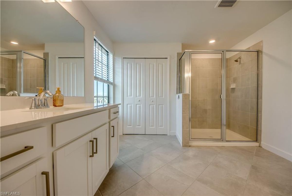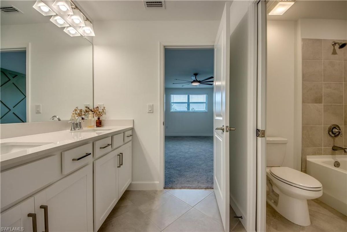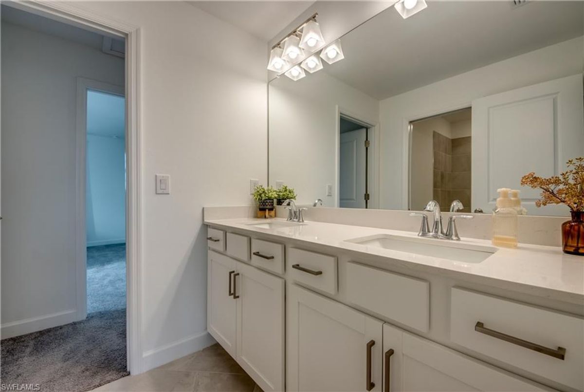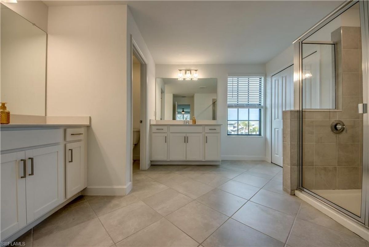 This stunning 2023-built Sorrento Model built by Lennar offers 5 bedrooms, 4.5 bathrooms, and 3,357 square feet of luxurious living space in the coveted Timber Creek community. The home features a completely fenced in backyard and backs up to a preserve for perfect amount of privacy complete with impact windows and doors. Pulling up the well thought out landscaping, covered entry area is eye-catching and complemented by two separate garages, one 1-car, one 2-car. Downstairs, diagonally laid porcelain tile floors enhances the huge layout, highlighted by a modern kitchen with quartz countertops, and a large island that allows for pull-up seating, white shaker cabinetry, an elegant backsplash paired perfectly with the elegant lighting fixtures. The kitchen flows into a breakfast nook, and a walk-in pantry, main living area. Can't have a house built for entertaining or comfort with a formal dining area. A giant 20ft tall shiplap custom entertainment center with an LED fireplace anchors the main living room and is a Huge focal point stretching past the second floor from downstairs to the ceiling. First floor has an ensuite with backyard access, a powder room, and a laundry room. Custom wainscoting walls in the nook and formal dining and one custom trimmed accent wall down stairs catching your eye as soon as you walk in. On the second floor, a spacious loft and overlooks the grand living area below, joined by a playroom with another custom trimmed accent wall, three guest bedrooms (one an ensuite with attached bathroom), and a massive owner’s suite boasting his and her dual walk-in closets, separate vanities, and a walk-in shower. Recent upgrades include energy-efficient windows, a smart thermostat, and fresh interior paint. Timber Creek’s resort-style amenities, including a lap pool, state-of-the-art fitness center, sauna, play area, pickleball courts, putting green, and indoor/outdoor restaurant and bar, elevate the lifestyle. Near RSW Airport, JetBlue Park, and dining, this home includes a 1-year home warranty, blending privacy, luxury, and convenience seamlessly.