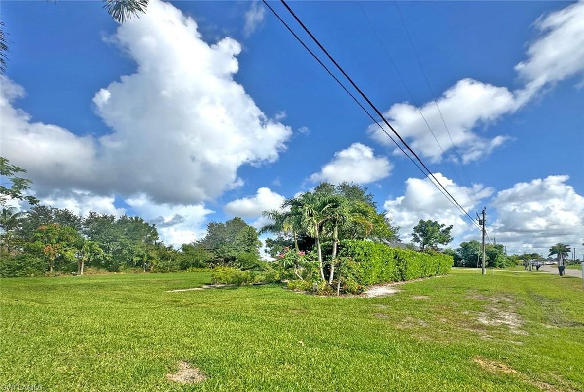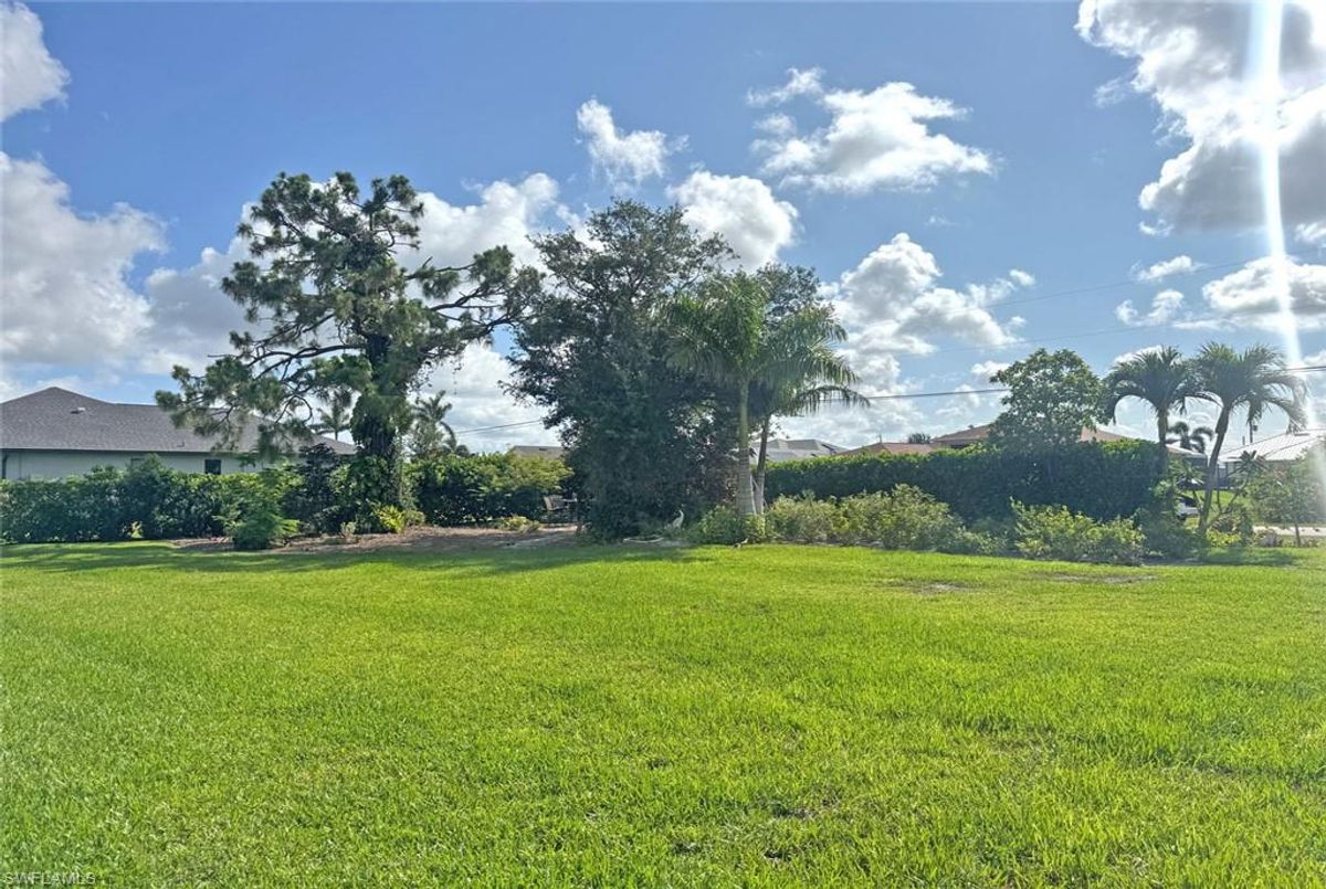 Great Rare Residential 3-Lot By The Canal. In Fast Growing Cape Coral - Western Exposure - Sun All Day on your future lanai and towards the beautiful sunsets . Surrounded by beautiful newer homes. Build your dream home or have a great investment! This beautyfully landscaped lot has already grown up hedges around it. It gets even better! Your neighbors are already in place. ONLY 8 min drive to Coral Oaks Golf Course and 9 min to Cape Royal Golf Club. Only a few minutes driving to everything that Pine Island Road has to offer, all large retail stores, gyms and restaurants. Nothing is left out - it is here! Easy access to Fort Myers and South West Florida International Airport.