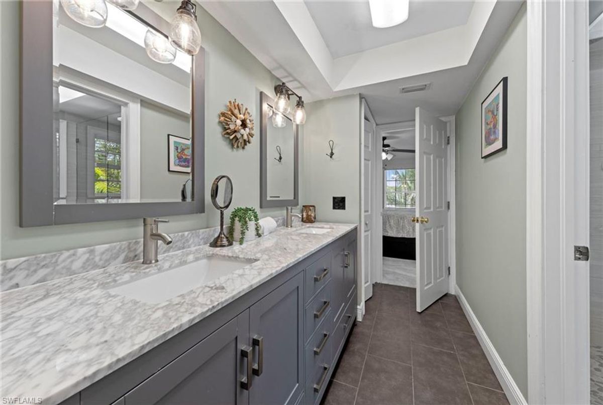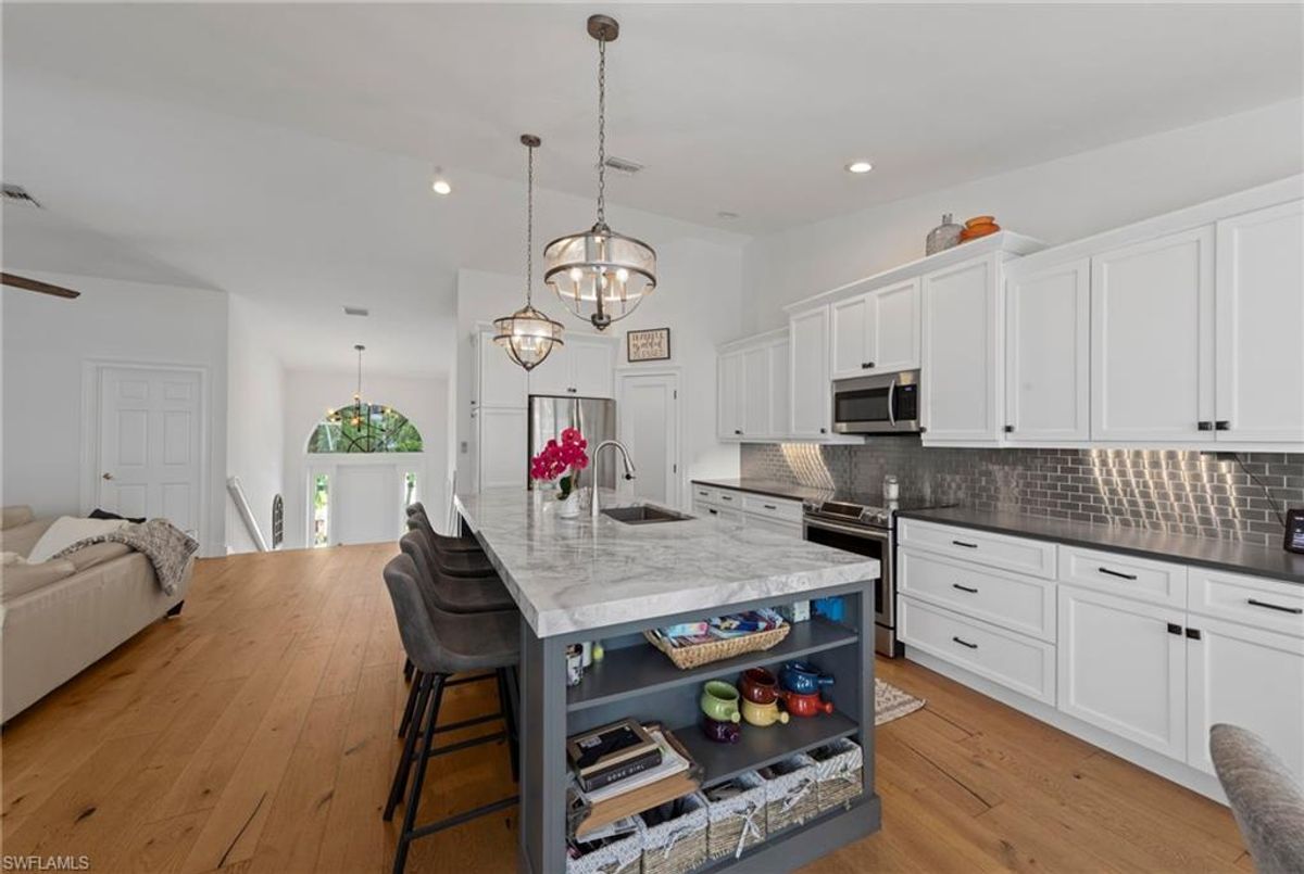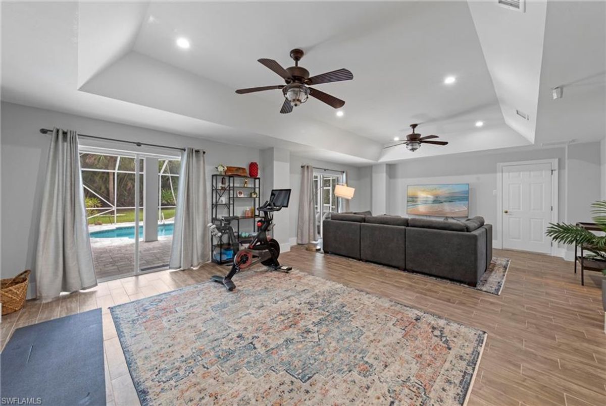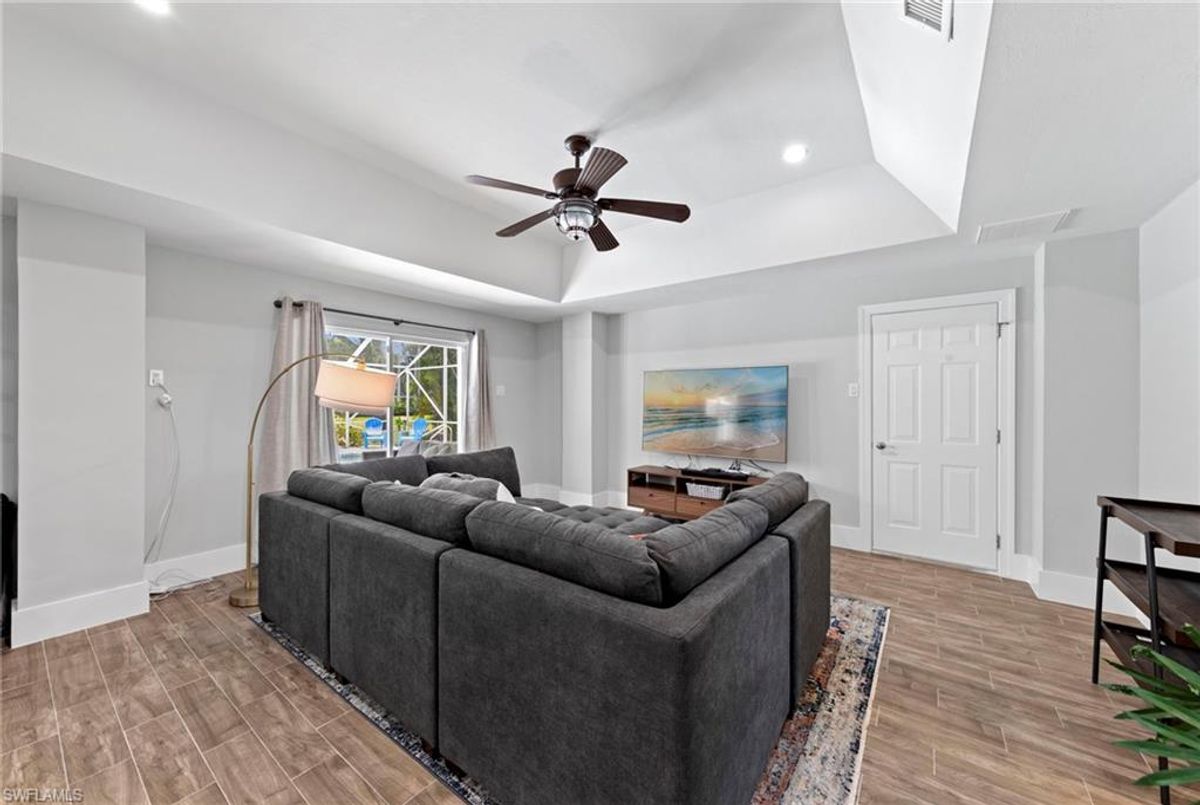 BOATERS DREAM!! Welcome to your private oasis situated in the prestigious "Parkridge Estates" community located in South Fort Myers! A true hidden gem community not located in an HOA less than 1/2 mile from Mullock Creek Marina one of the only public boat ramps in the area! This beautifully maintained 3-bedroom, 3.5-bathroom, with an oversized bonus room, two-story home sits on a meticulously landscaped 0.36-acre lot with plenty of room for all of your toys. From the moment you arrive, you’ll appreciate the spacious 2 single car garages, lush greenery, and the BEAUTIFUL curb appeal. Inside, the open floor plan and vaulted ceilings create an airy, expansive feel. The spacious living room flows seamlessly with beautiful custom wood flooring into a gourmet kitchen featuring stainless steel appliances, a tile backsplash, a large kitchen island, and an abundance of cabinetry with elegant crown molding—perfect for both entertaining and everyday living. The primary bedroom is a true retreat, complete with tray ceilings, sliding doors to a deck overlooking the screen-enclosed in-ground pool, and a luxurious ensuite bathroom that was just recently remodeled. The spa-like primary bathroom offers dual vanities, a soaking tub, and a large glass-enclosed shower. Upstairs also includes two additional bedrooms connected by a Jack and Jill bathroom, along with a convenient half bath for guests. The lower level offers even more living space with a family room, exercise area, full bath, and direct access to your BRAND NEW brick paver pool deck and recently resurfaced pool/covered patio area—ideal for indoor/outdoor Florida living. Ceiling fans throughout and in-residence laundry add to the comfort and convenience. Enjoy maximum privacy thanks to thoughtful landscaping and a dedicated pavilion for storage. NEW ROOF INSTALLED IN 2023! This home comes with a TRANSFERABLE flood policy of only $1,525 per year!! Located just minutes from Mullock Creek Marina with quick Gulf access to SWFL's sunny beaches, Centrally located just minutes from dining, shopping, and entertainment. Don’t miss the chance to own this exceptional Fort Myers property—schedule your showing today!!