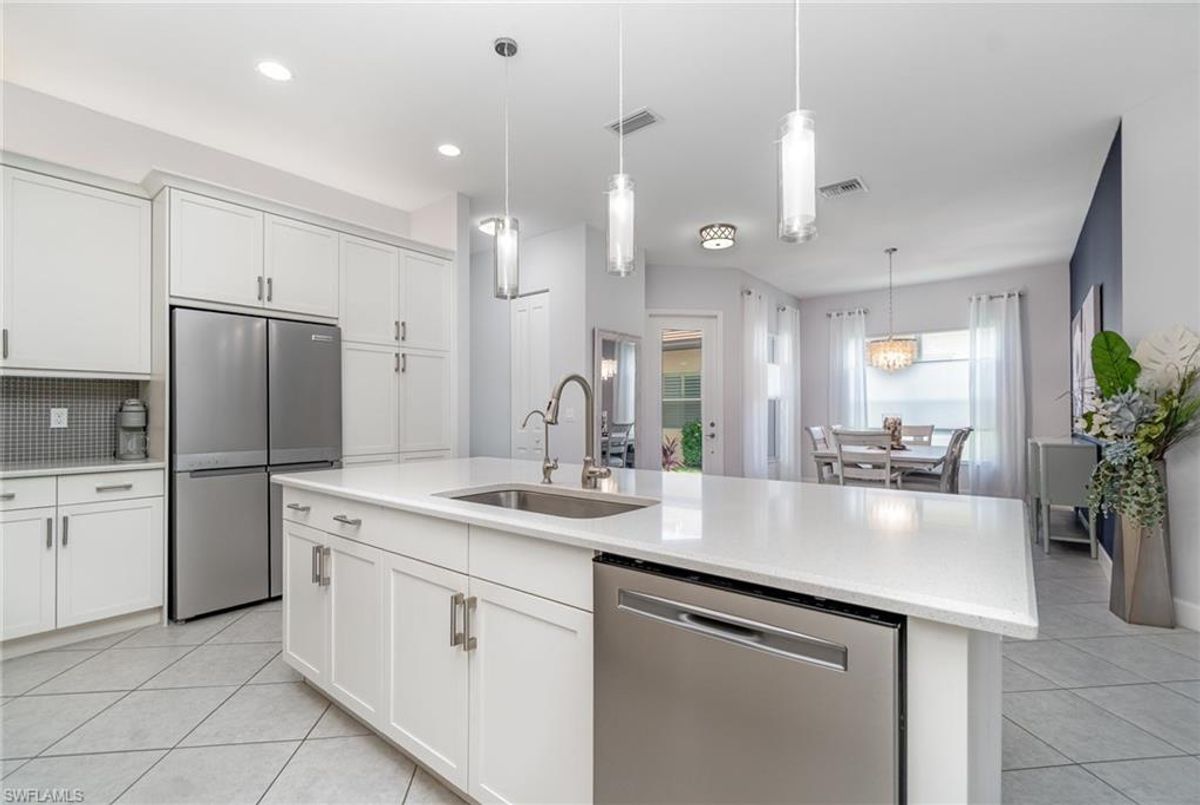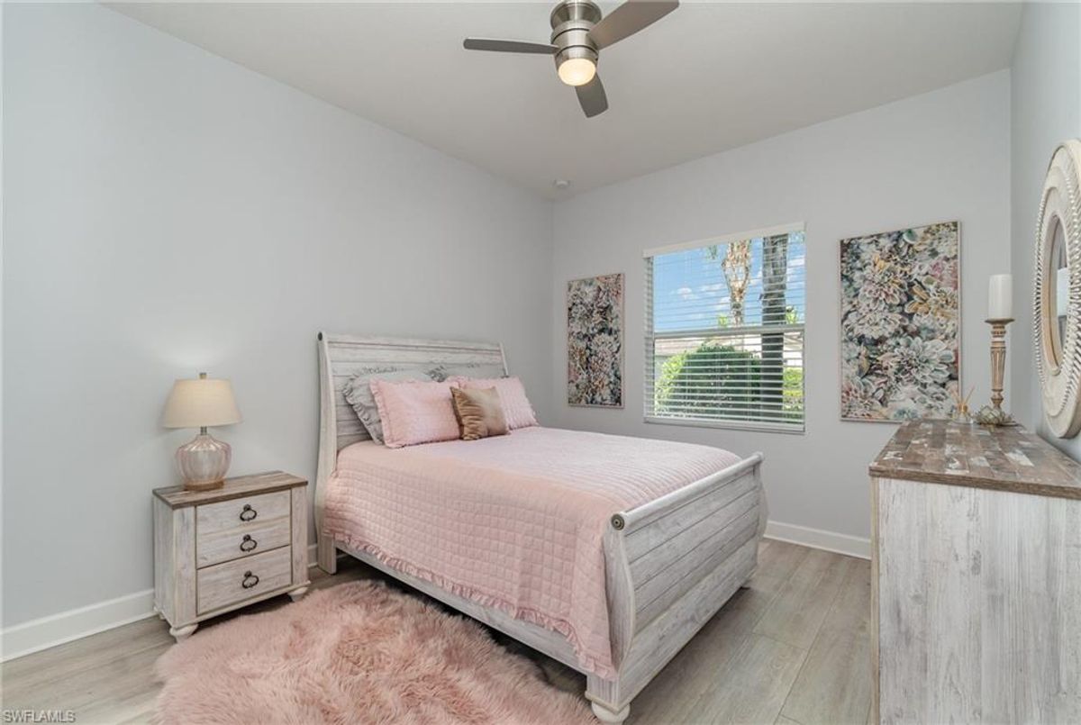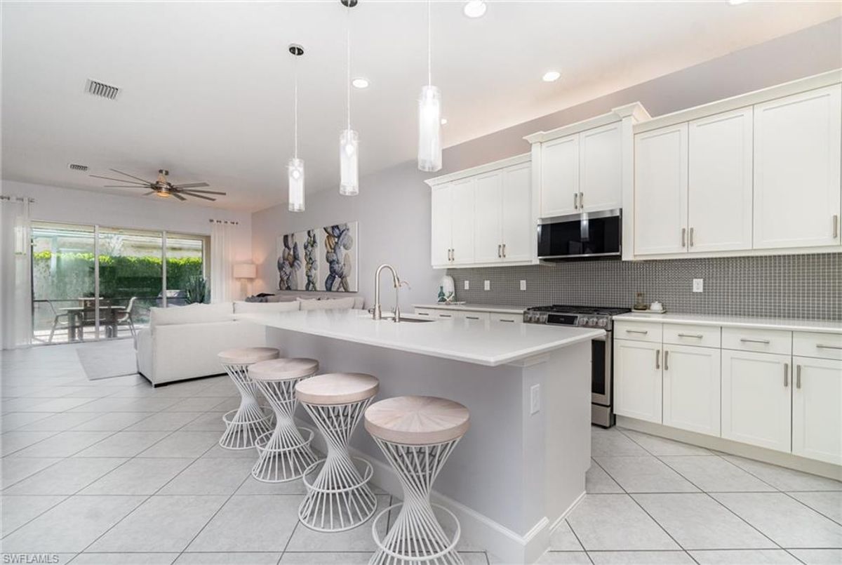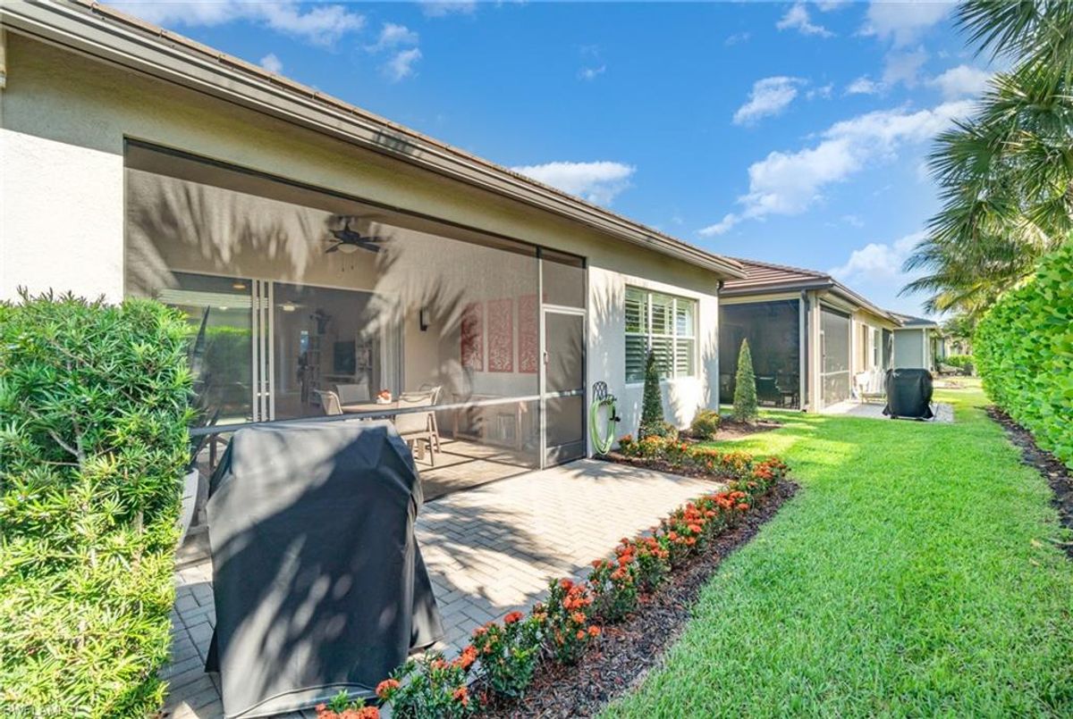 Discover the York Model Villa—offered at the best value and showcasing extensive upgrades, refined finishes, and unmatched attention to detail. A rare opportunity you won’t want to miss! Step through the front door into a beautifully maintained 2-bedroom + den, 2.5-bath home that exudes comfort and style. The chef-inspired kitchen is fully equipped with a reverse osmosis water system, brand-new LG Studio gas stove, upgraded refrigerator, Samsung microwave, and convenient roll-out cabinetry throughout. The spacious primary suite features upgraded flooring, plantation shutters, and a fully customized walk-in closet. The stunning, newly renovated primary bath includes quartz countertops, under-mount sinks, a frameless glass shower, and high-end fixtures. Enjoy peace of mind with a whole-house Generac generator and impact glass front window. Additional highlights include a refreshed backyard with extended brick patio, upgraded laundry room with quartz counters and stainless sink, top-down/bottom-up blinds in the dining room, and fully updated guest and half baths. Valencia Bonita offers world-class 55+ living with a 45,000+ sq ft clubhouse, resort-style pool with cabanas, full-service restaurant, social hall with stage and dance floor, fitness center, tennis and pickleball courts, dog park, spa, salon, bocce, arts & crafts studio, and a full calendar of clubs and events. Ideally located just 20 minutes to Bonita Beach and Barefoot Beach, with easy access to dining, shopping, RSW Airport, and Naples. Don’t miss this rare opportunity to own one of the most upgraded and move-in ready villas in all of Valencia Bonita.