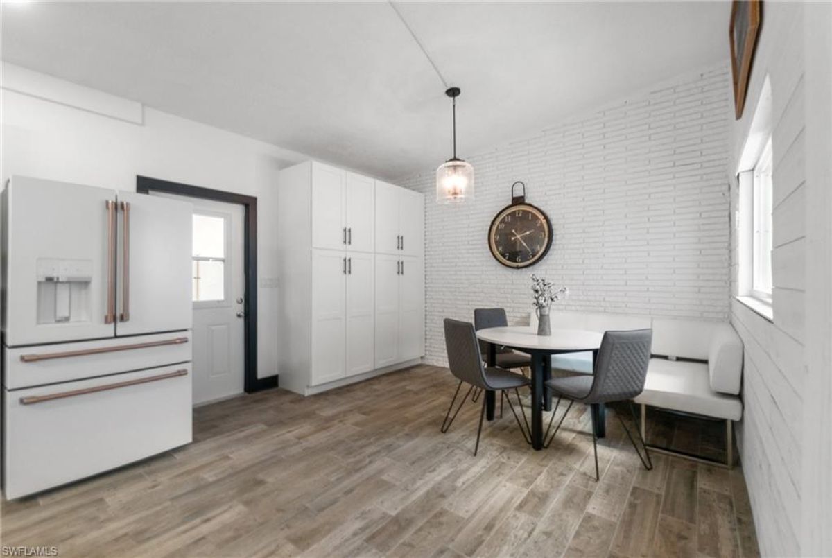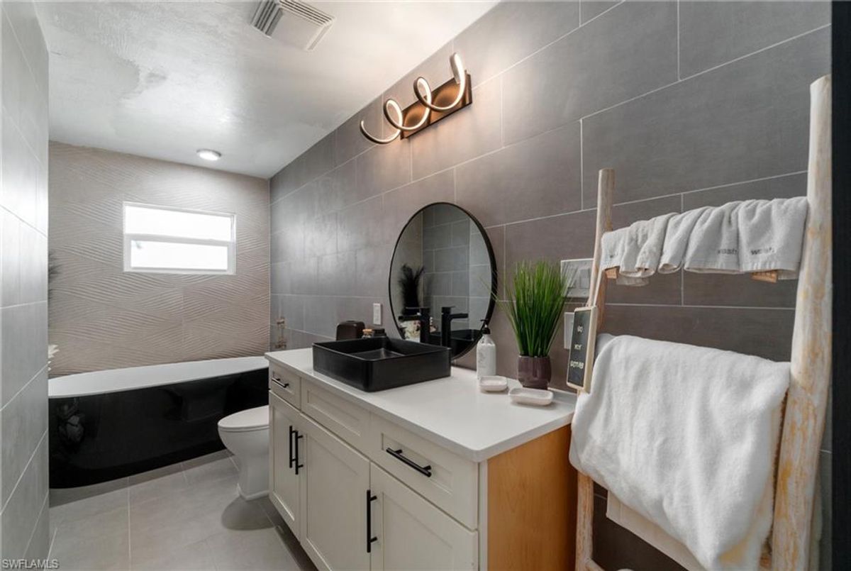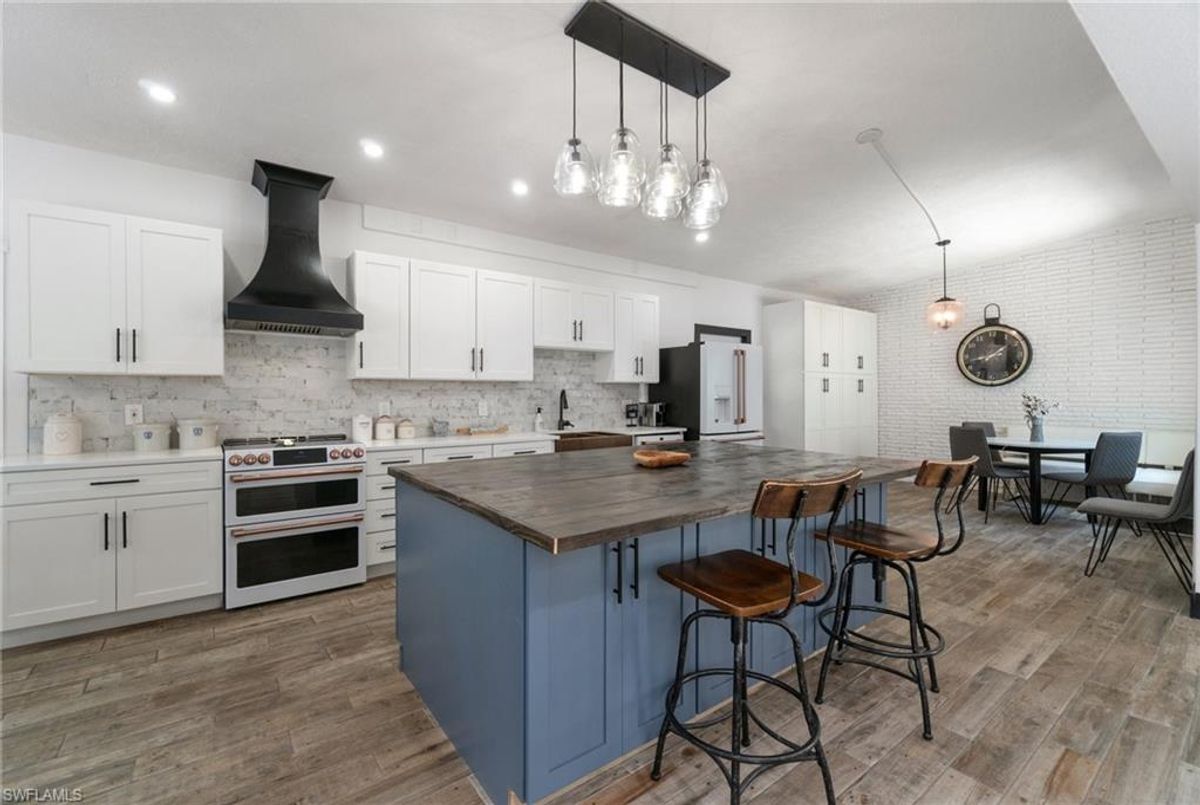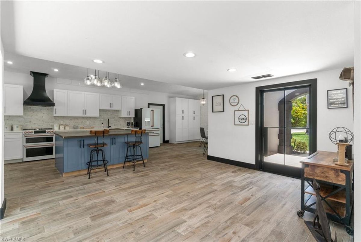 Discover this stunning 3-bedroom, 2-bathroom modern farmhouse, offering 2,118 square feet of thoughtfully designed living space on a spacious .362-acre lot filled with lush landscaping and swaying palm trees. This private retreat seamlessly blends style, comfort, and functionality, making it the perfect place to call home. Inside, an expansive open floor plan greets you, with natural light pouring in through a skylight above the living room to create a serene ambiance, ideal for relaxing evenings. The heart of the home is the dream kitchen, featuring a large island with plenty of storage, a striking copper farmhouse sink, and high-end café appliances. The kitchen effortlessly connects to the rest of the living space, allowing for easy entertainment and everyday convenience. The spacious dining room is designed to accommodate festive family gatherings or entertaining friends, and the entire layout is enhanced by a durable and stylish metal roof for peace of mind. Step outside to your own outdoor paradise, complete with an oversized saltwater pool, expansive patio space, and a vast backyard, offering ample room for kids and pets to play or for hosting memorable get-togethers. Practical amenities include an attached 2-car carport with a versatile laundry area and additional storage or workshop space. The generous primary suite features a walk-in closet, dual sinks, and a luxurious glass-walled shower, offering a spa-like experience at home. Two guest bedrooms, separated by an updated bathroom with a soaking tub, ensure comfort and privacy for family or visitors. Located just minutes from College Pkwy and Colonial Blvd, this modern farmhouse is close to top-notch dining, shopping, and all of Southwest Florida’s vibrant entertainment. Offering a unique blend of functionality and elegance, this home invites you to make lasting memories and enjoy the Southwest Florida lifestyle to its fullest. Come see for yourself all that this breathtaking home has to offer!