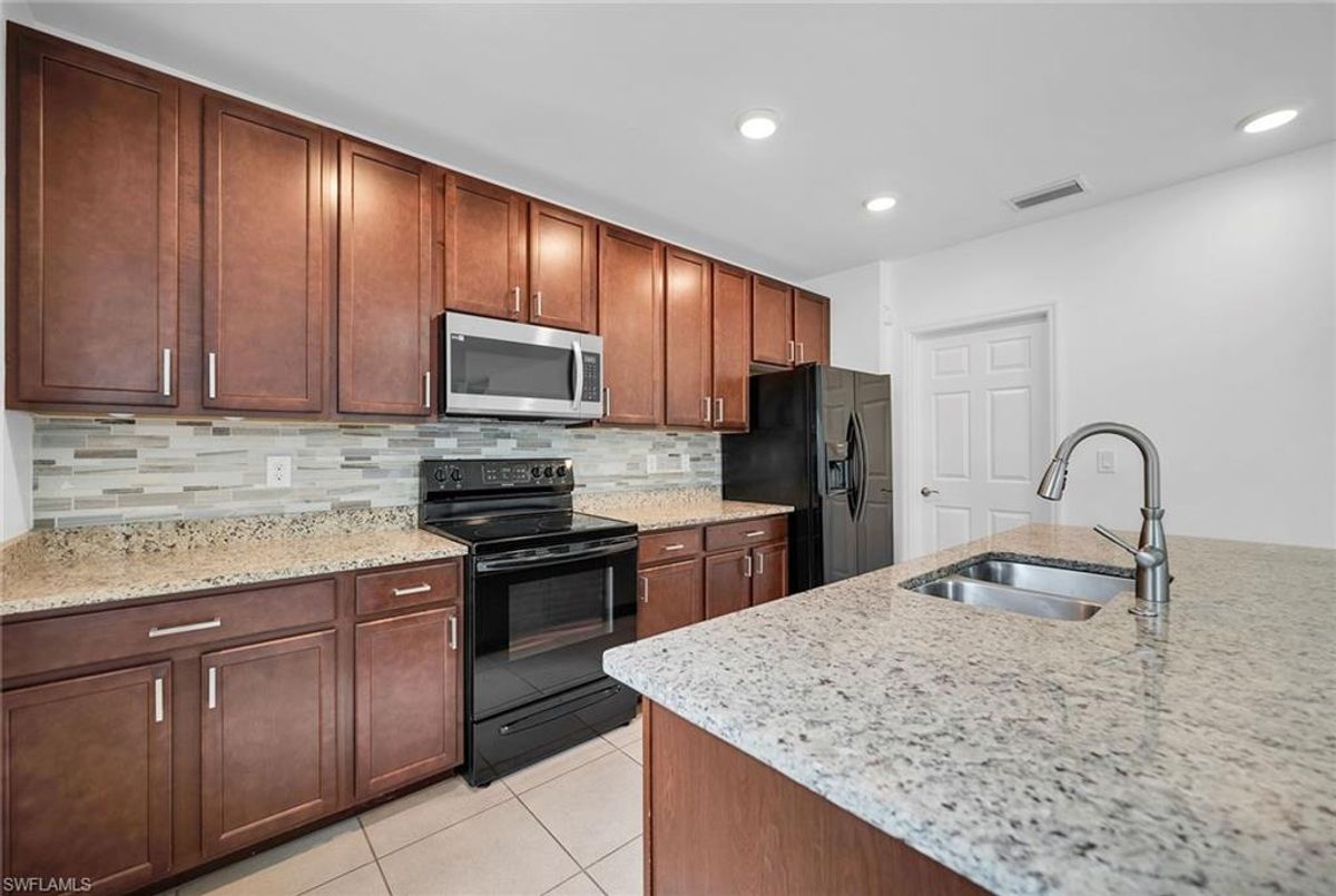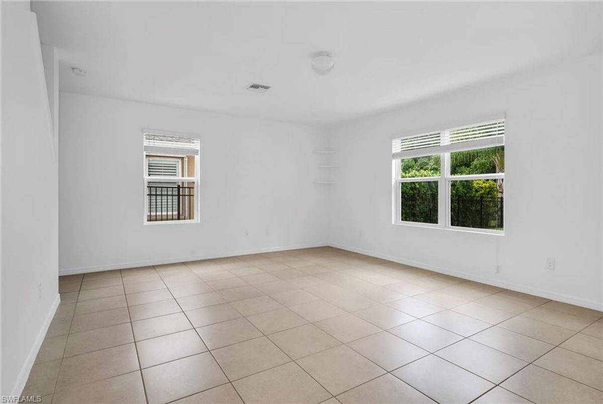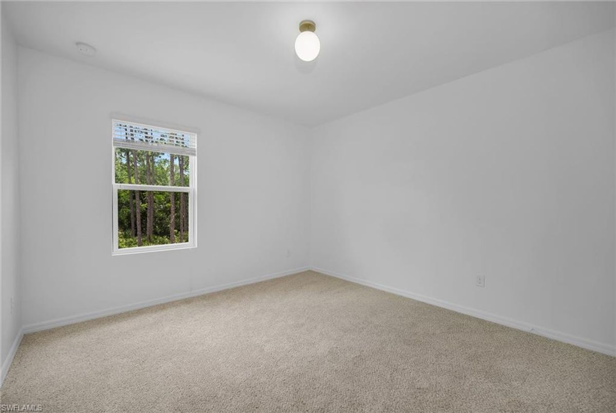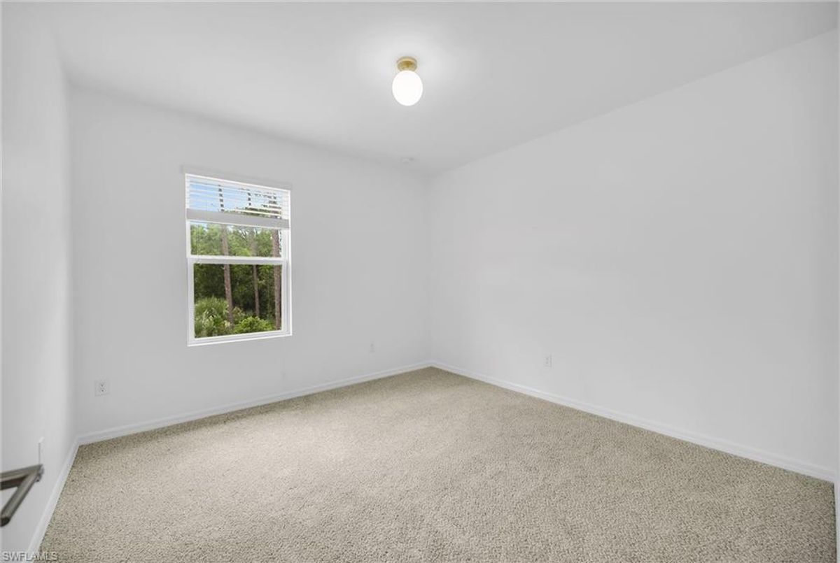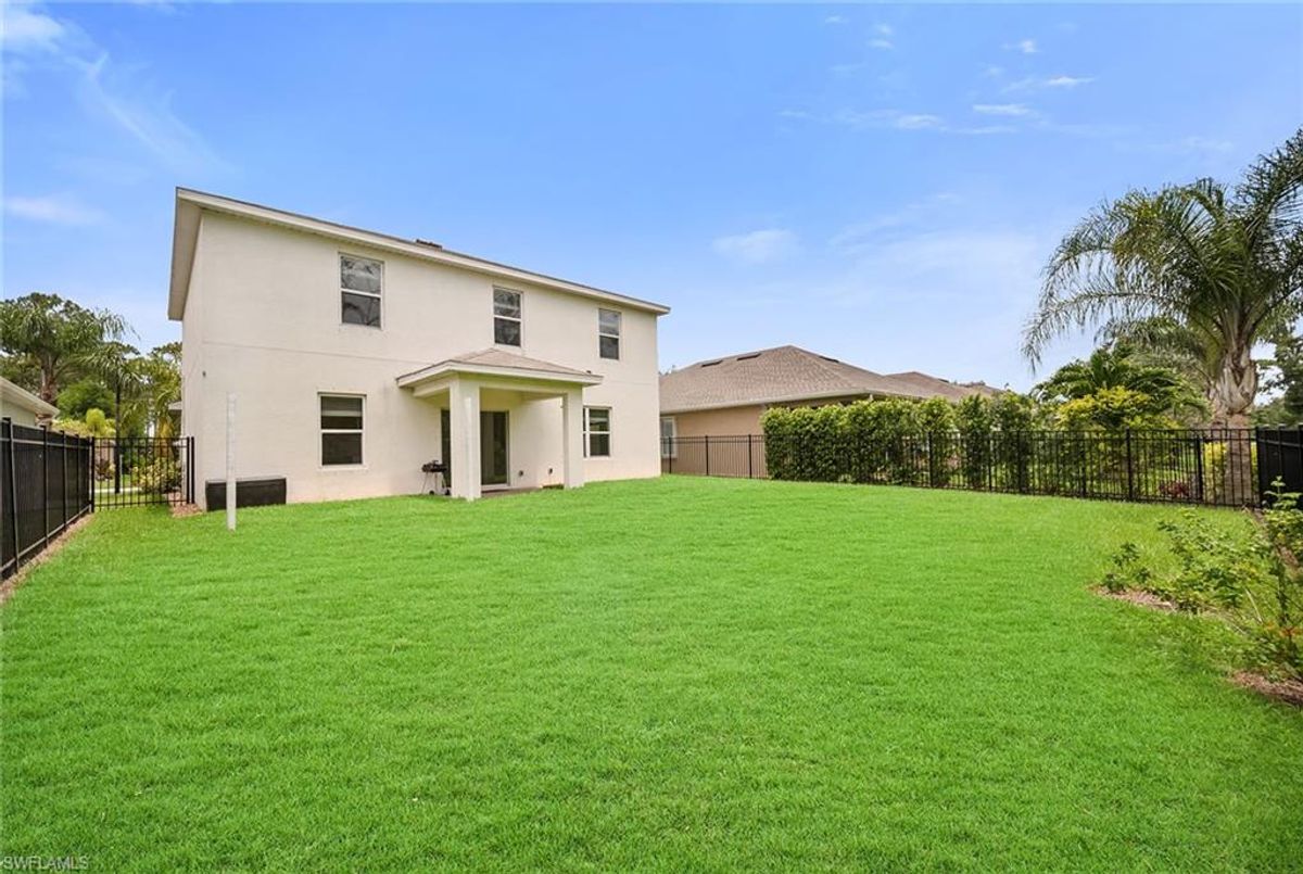 Tucked away in the peaceful Wildwood Preserve community, this beautifully maintained two-story home offers rare privacy and a fully fenced-in yard backing to serene preserve views, ideal for pets and enjoying the outdoors in total seclusion. Whether you're hosting a barbecue on the brick-paver lanai or relaxing in the quiet backyard, this home is ideal for indoor-outdoor Florida living. Its excellent location places you just minutes from Bonita’s pristine beaches, dining, shopping, top-rated schools and exciting new Midtown at Bonita. Offering over 2,400 square feet, this four-bedroom plus den, 2.5-bath home blends comfort and functionality across two spacious levels. The open-concept kitchen serves as the heart of the home, featuring recessed lighting, shaker-style cabinetry, a tile backsplash, granite countertops and a large island with bar seating, ideal for everyday living and entertaining. Appliances include a range, refrigerator with icemaker, dishwasher, and a new microwave and dishwasher. The adjacent dining area flows seamlessly into the living room, where sliding glass doors open to the private lanai and fully fenced backyard with peaceful preserve views. Just off the main hallway, a flexible den offers ideal space for a home office or study, while a convenient powder bath completes the main floor. Upstairs, all four bedrooms have been newly carpeted and are thoughtfully positioned for privacy. The spacious primary suite includes a large walk-in closet with built-in shelving and an en-suite bath with dual sink vanity, full-width mirror, and a walk-in shower with a frameless glass enclosure. Three additional guest bedrooms share a full bath with a shower/tub combo, and upstairs layout is completed by a laundry room with a new 2024 Samsung washer and dryer, and overhead shelving. Additional features include a 2018 roof, air conditioner and water heater, manual storm shutters and a two-car garage. With low HOA fees of just $350 per quarter, this move-in-ready home offers privacy, space and unbeatable value in a prime Bonita Springs location.