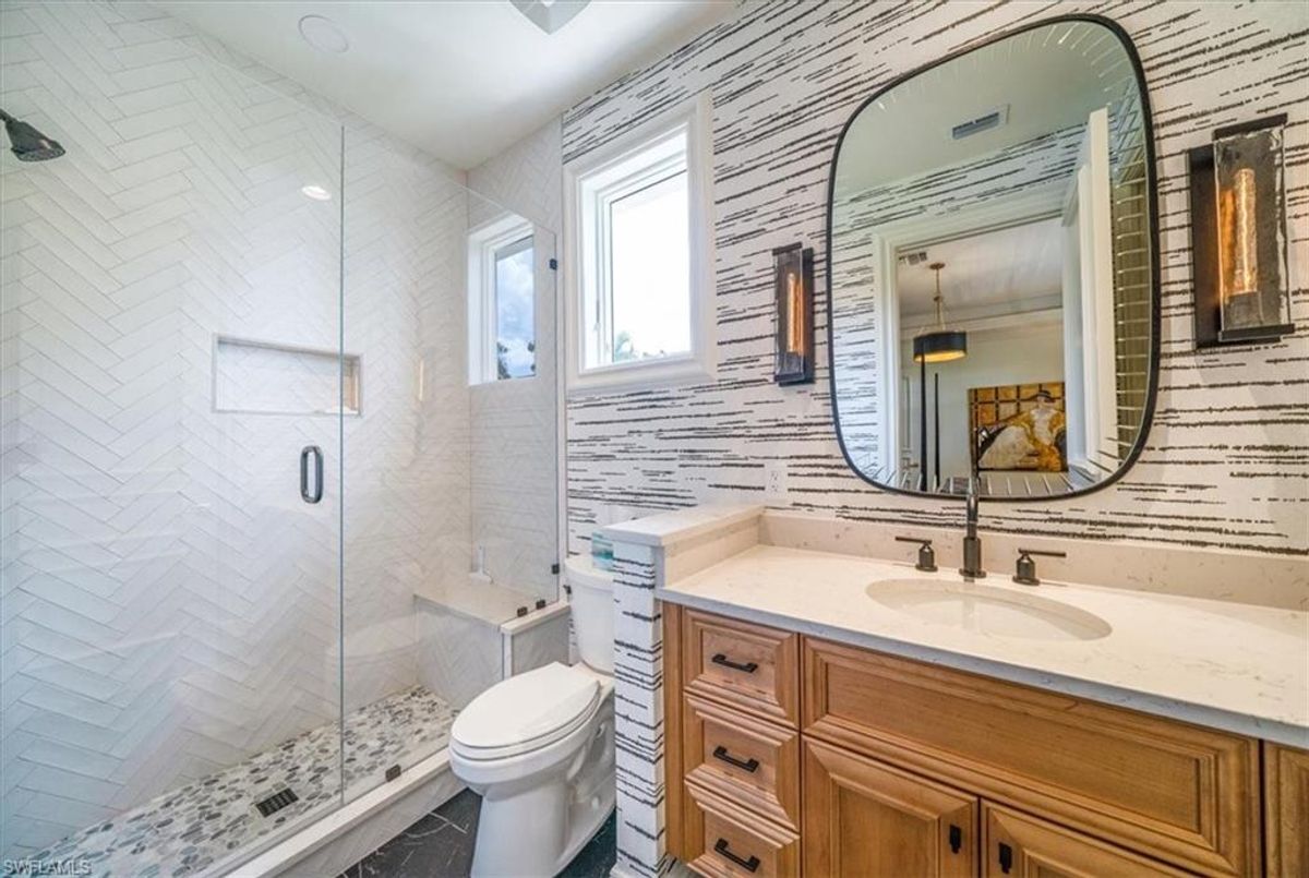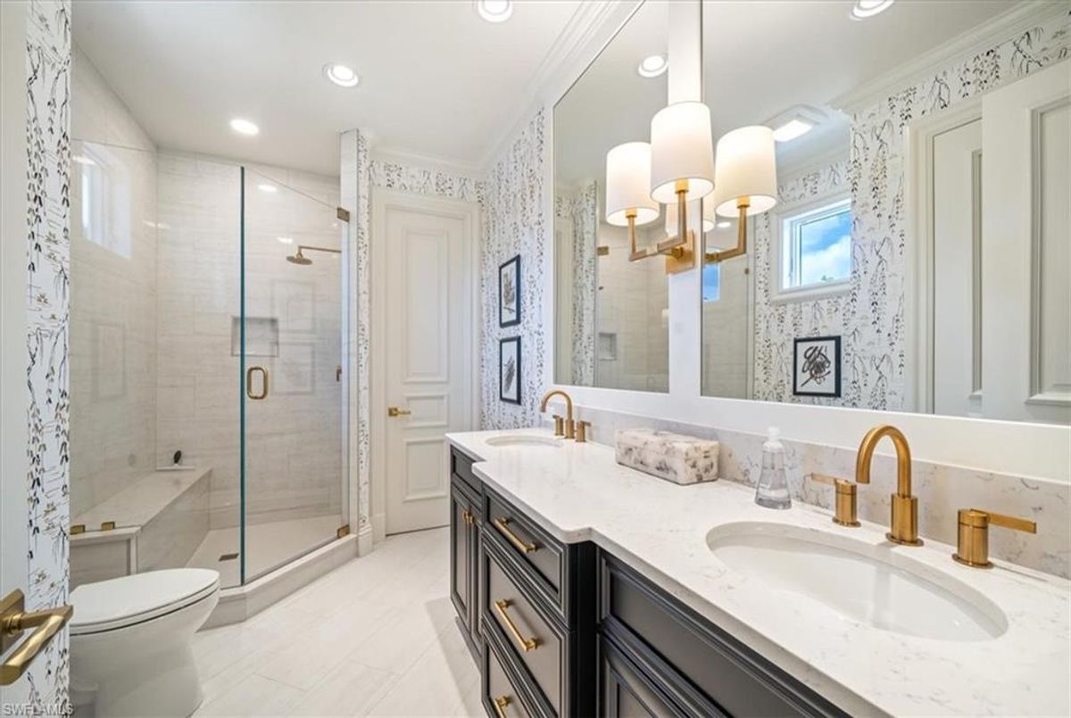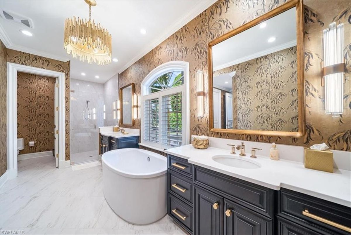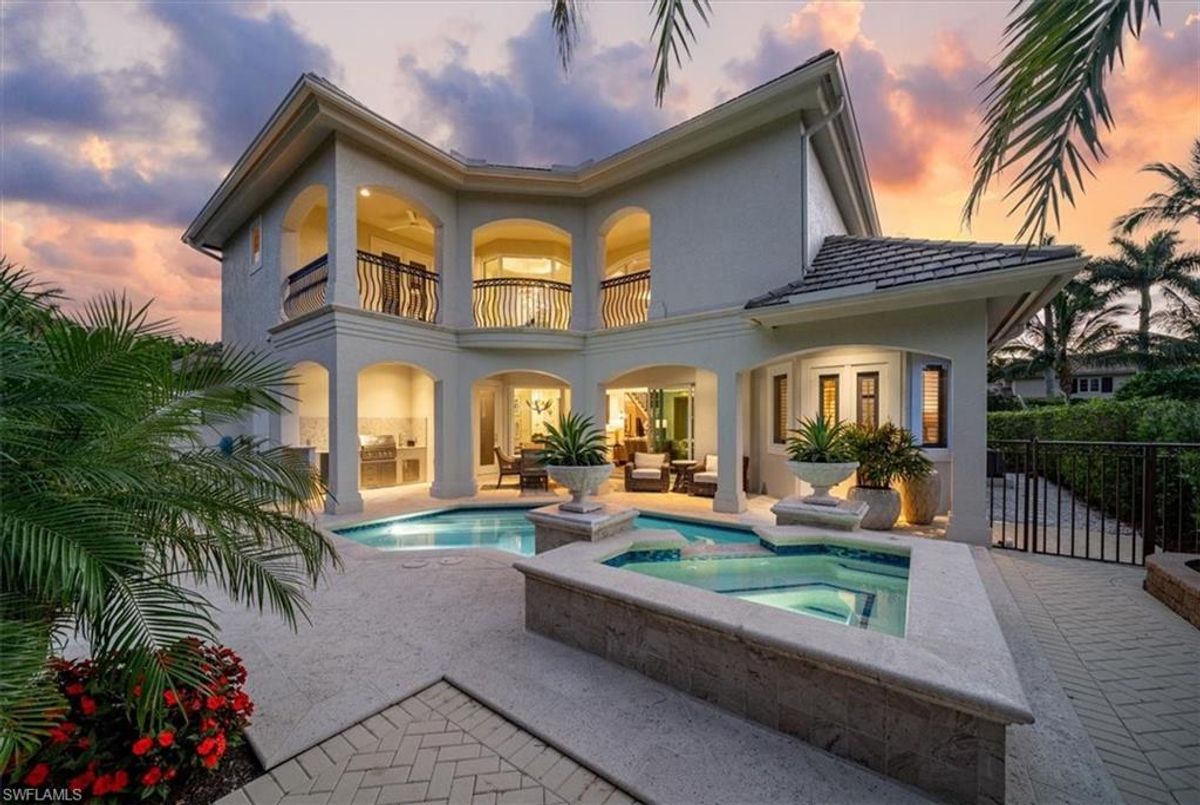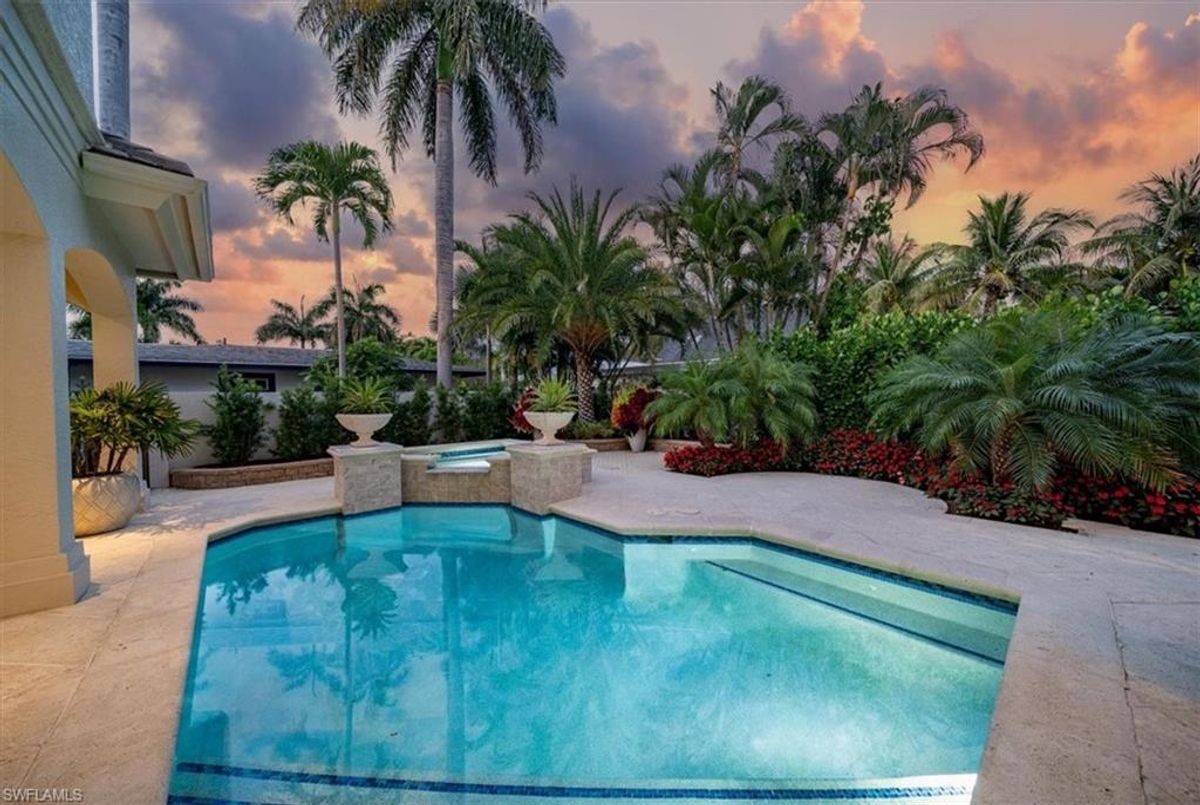 Prepare to be amazed by this exquisite, fully furnished, and remodeled British Cayman inspired haven, just moments from the breathtaking Gulf of Mexico beaches! Positioned a mere three blocks from the shoreline, this luxurious 2-story residence with 4 bedrooms and 3 full and 2 half baths epitomizes the pinnacle of luxury living in Naples. Take a leisurely stroll just five blocks south to immerse yourself in the world-class shopping and dining experiences of 5th Ave S. As you approach, be captivated by the circular paved driveway and meticulously designed landscaping that elevate the curb appeal of this magnificent manor-style home. Enter through the custom Mahogany wood front doors of 33 3rd St and step into a grand yet welcoming great room that offers stunning views of the pool and tropical terrace. The ground floor primary suite features two walk-in closets and a lavish Master Bath. For those passionate about culinary excellence, the spacious gourmet kitchen showcases high-quality appliances, including a gas stove top, complemented by an outdoor kitchen. With ample space for entertaining, this home also boasts a heated pool and spa in your private backyard oasis, perfect for enjoying when you're not soaking up the Florida sunshine at the beach. With its sophisticated light neutral palette, French oak flooring, Anderson impact windows & doors, impeccable designer finishes and fixtures, and undeniable charm, this home is a true masterpiece waiting to be uncovered and cherished. In addition this home did not sustain any water issues from Ian or Milton.