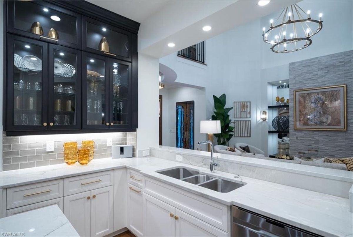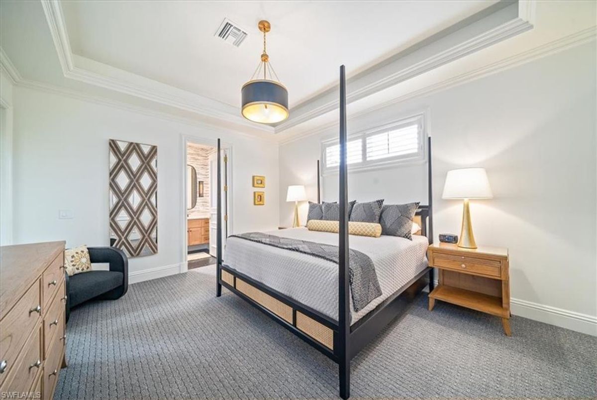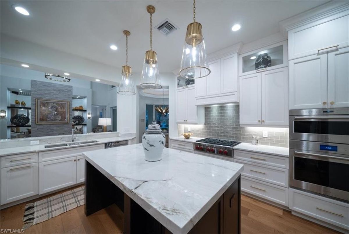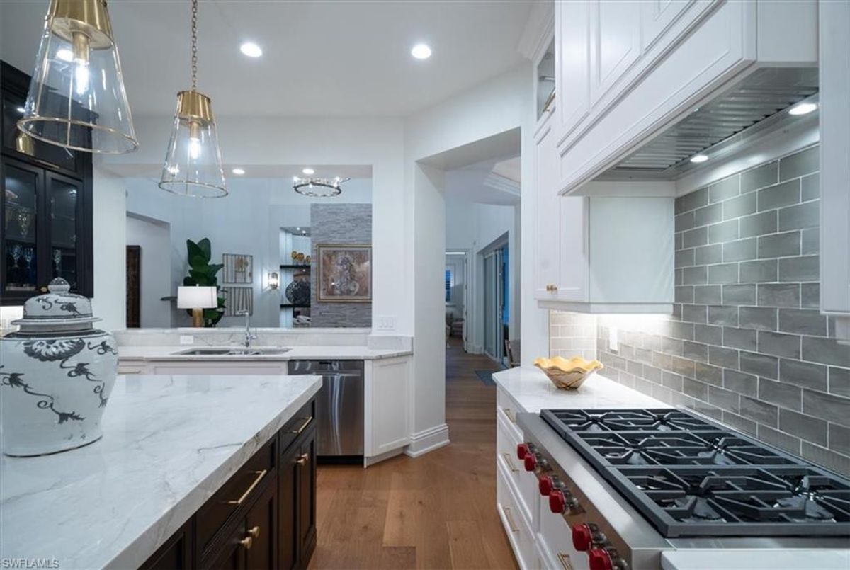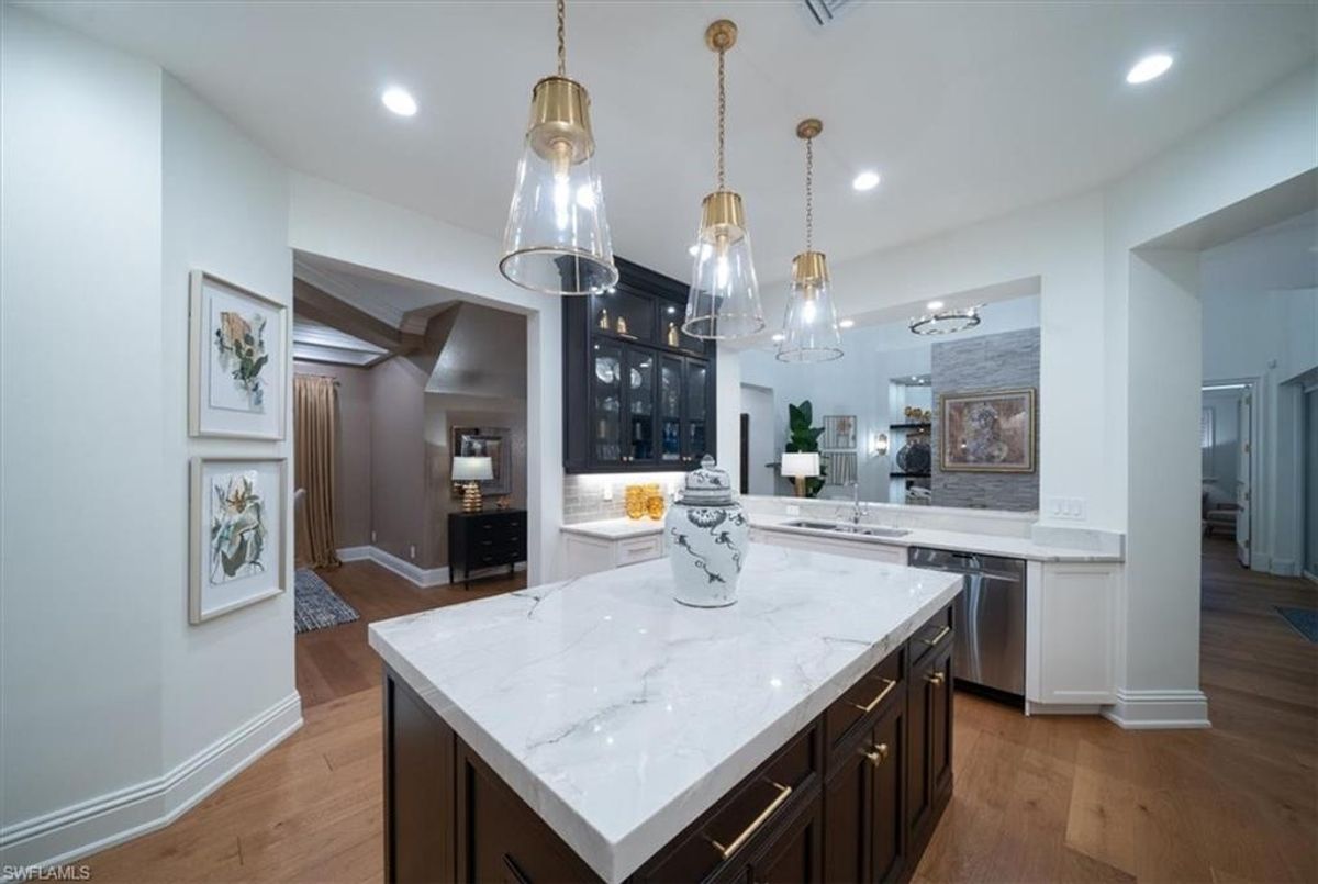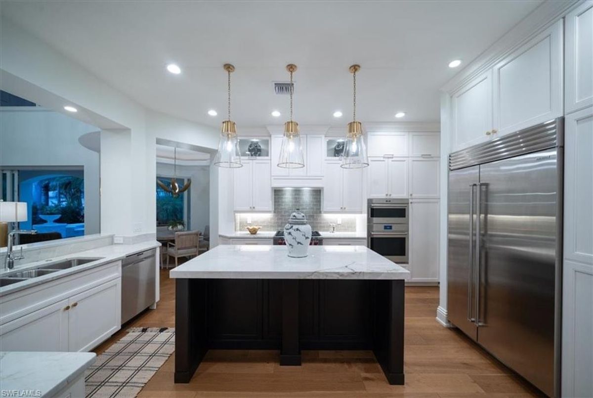 Prepare to be amazed by this exquisite, fully furnished, and remodeled British Cayman inspired haven, just moments from the breathtaking Gulf of Mexico beaches! Positioned a mere three blocks from the shoreline, this luxurious 2-story residence with 4 bedrooms and 3 full and 2 half baths epitomizes the pinnacle of luxury living in Naples. Take a leisurely stroll just five blocks south to immerse yourself in the world-class shopping and dining experiences of 5th Ave S. As you approach, be captivated by the circular paved driveway and meticulously designed landscaping that elevate the curb appeal of this magnificent manor-style home. Enter through the custom Mahogany wood front doors of 33 3rd St and step into a grand yet welcoming great room that offers stunning views of the pool and tropical terrace. The ground floor primary suite features two walk-in closets and a lavish Master Bath. For those passionate about culinary excellence, the spacious gourmet kitchen showcases high-quality appliances, including a gas stove top, complemented by an outdoor kitchen. With ample space for entertaining, this home also boasts a heated pool and spa in your private backyard oasis, perfect for enjoying when you're not soaking up the Florida sunshine at the beach. With its sophisticated light neutral palette, French oak flooring, Anderson impact windows & doors, impeccable designer finishes and fixtures, and undeniable charm, this home is a true masterpiece waiting to be uncovered and cherished. In addition this home did not sustain any water issues from Ian or Milton.