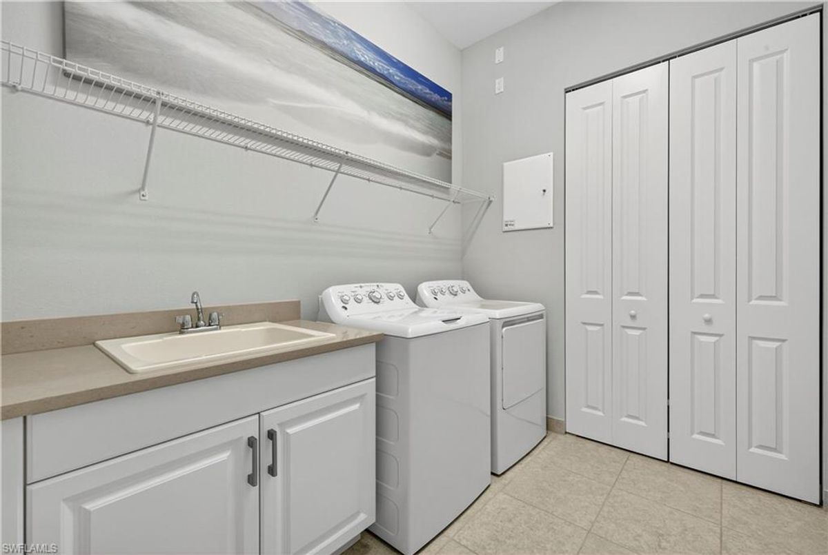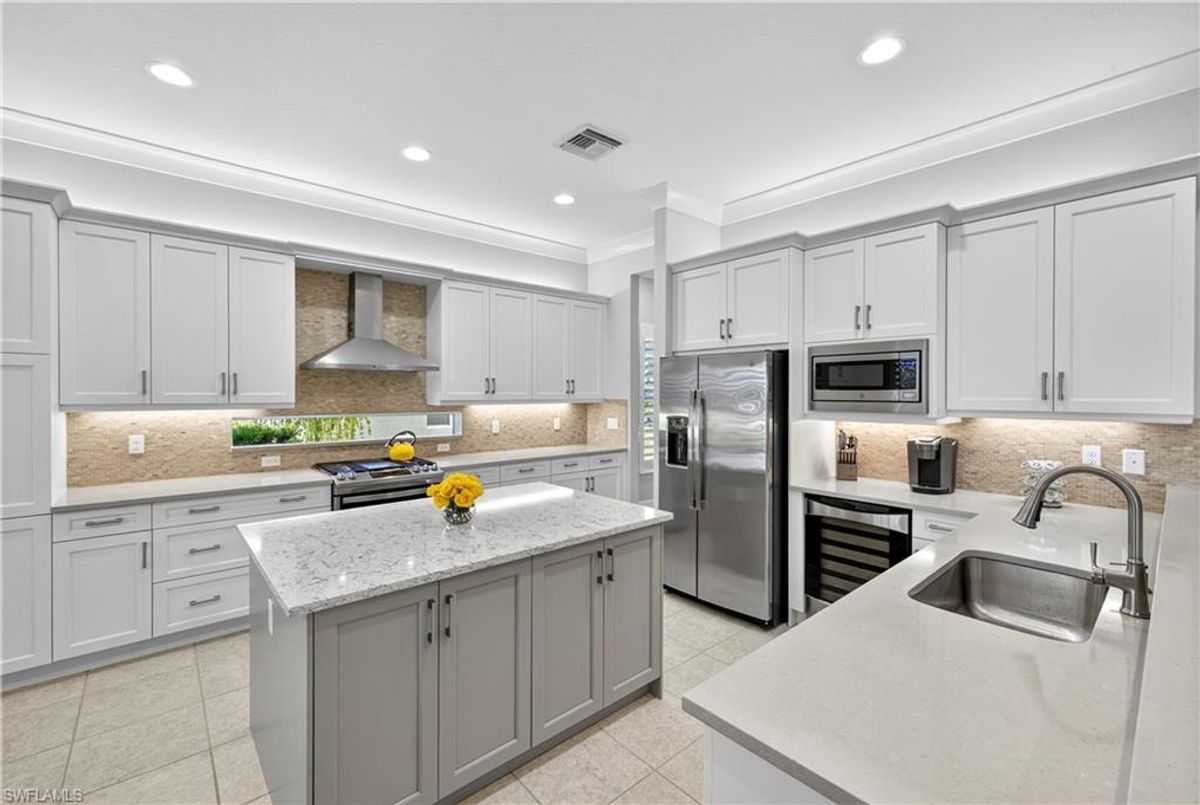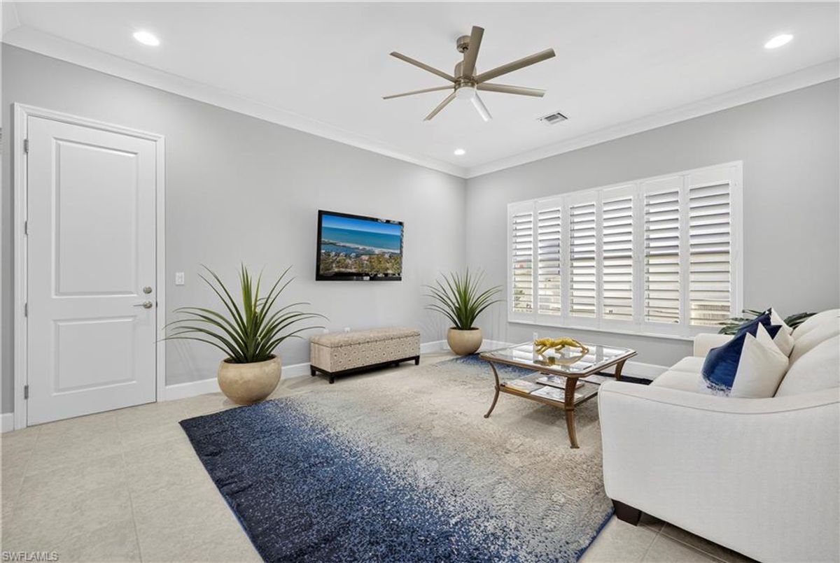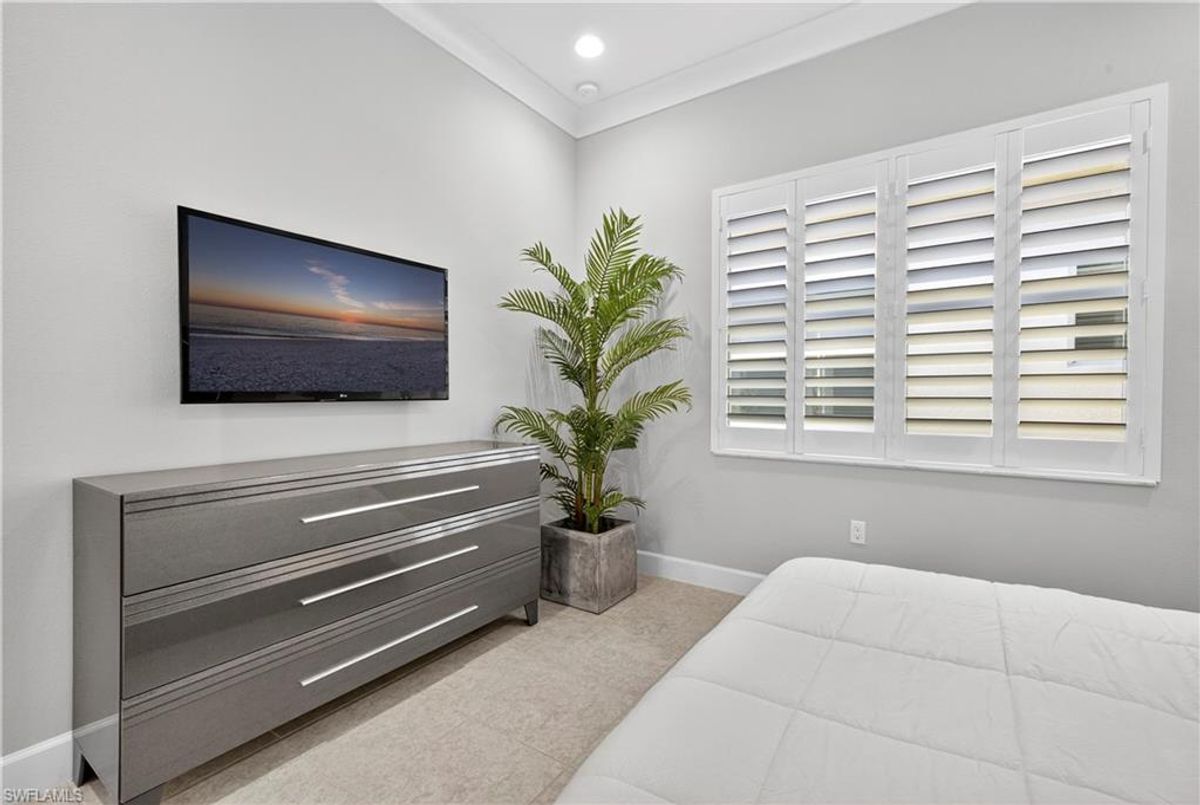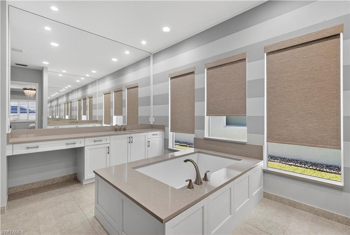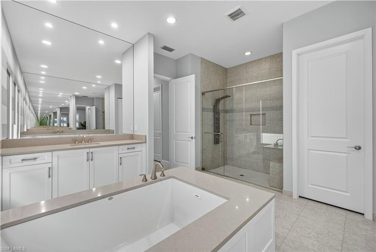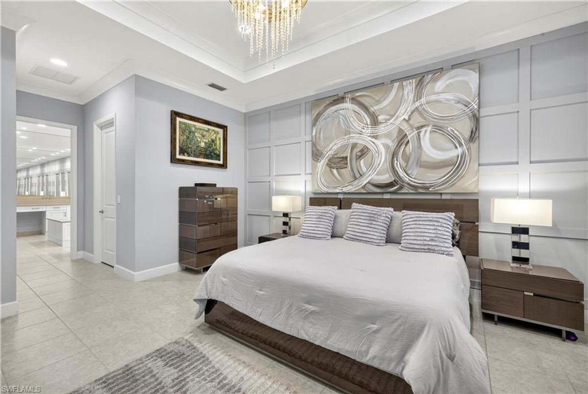 If Valencia Bonita is on your list, this is the one you’ve been waiting for! Welcome to this exquisite, fully furnished move-in-ready Caroline model home in Valencia Bonita, where timeless design has met modern luxury. From the moment you arrive, the lush tropical landscaping and private courtyard entry create a striking first impression. Step inside the expansive foyer with soaring ceilings and designer lighting, and you’ll immediately sense the elegance carried throughout. The great room is a true showpiece, featuring a custom stacked-stone wall with floating shelves, a linear decorative fireplace, and expansive sliders that frame serene lake views. The gourmet kitchen is a chef’s dream, with an oversized quartz island, stainless steel appliance suite including an upgraded gas range, wine cooler, and abundant pantry-style cabinetry, all seamlessly connected to a bright breakfast nook with plantation shutters and tranquil outdoor lake views. An elegant formal dining room with tray ceilings and a beautiful pendant chandelier provides the perfect setting for entertaining. The spacious primary suite is a private retreat complete with designer chandelier, plantation shutters, and two walk-in closets, while the spa-inspired bath offers a soothing peninsula tub, large walk-in shower with upgraded dual shower heads, and two extended double vanities. An additional en-suite bedroom and an oversized den/media room with French doors and private entry from the exterior add comfort and flexibility. Step outside to discover a full outdoor paradise featuring a screened lanai with a gorgeous pool and spa, electronic storm screens, and sunset lake views. Additional features include a 3-car garage with premium epoxy finishes (ideal for a golf cart or workshop), solar panels keeping energy costs at approximately $30/month, a tankless water heater, and sophisticated upgrades throughout. This is your chance to begin enjoying the best of Valencia Bonita immediately. Residents of this sought-after 55+ community also enjoy world-class amenities, including a resort-style pool, clubhouse with dining, fitness center, tennis and pickleball courts, and a vibrant calendar of social activities. This residence is the perfect blend of modern sophistication, energy efficiency, and the quintessential Florida lifestyle.