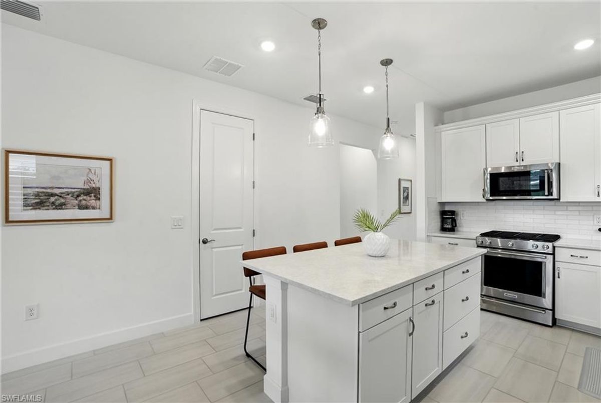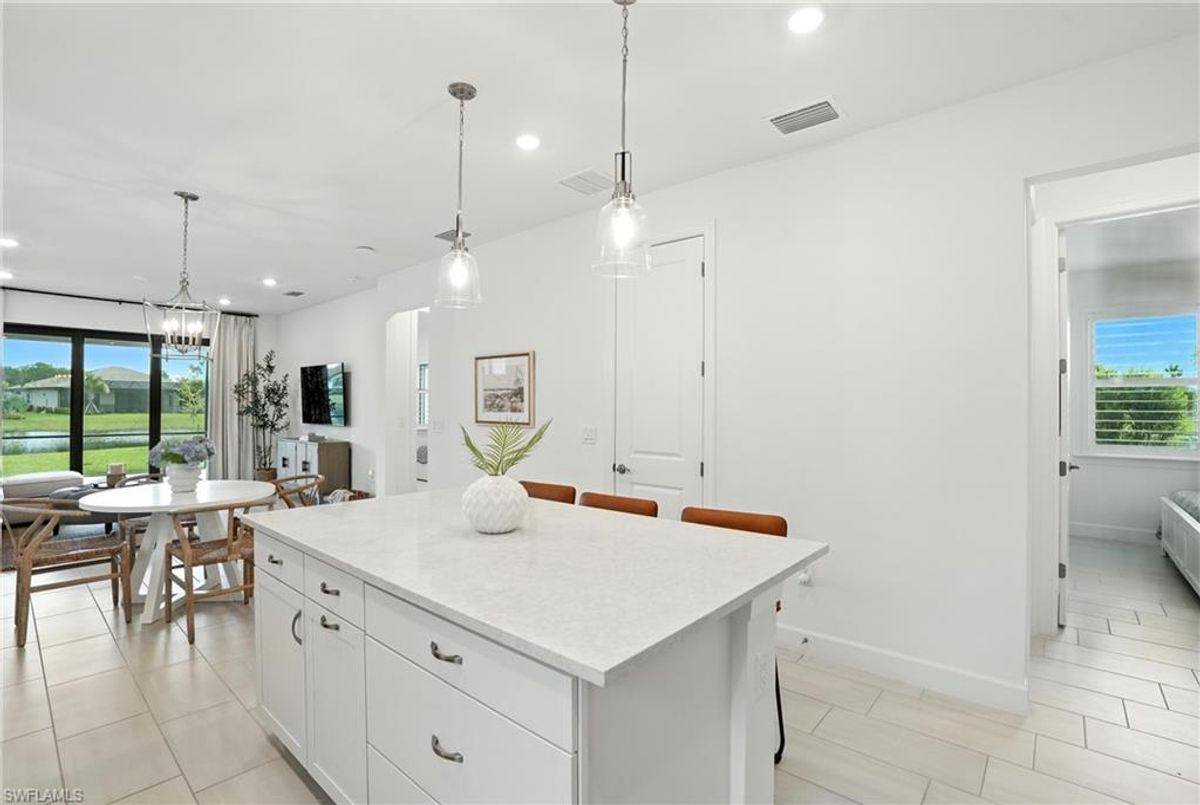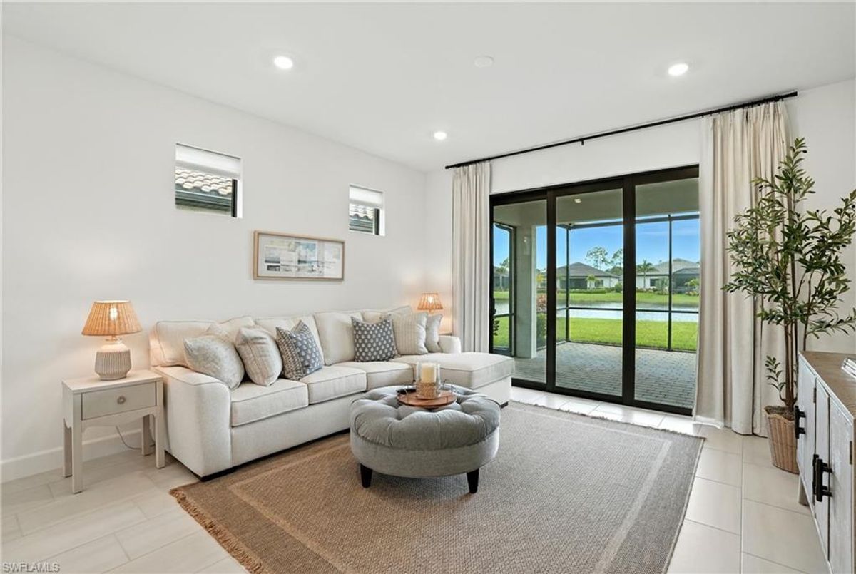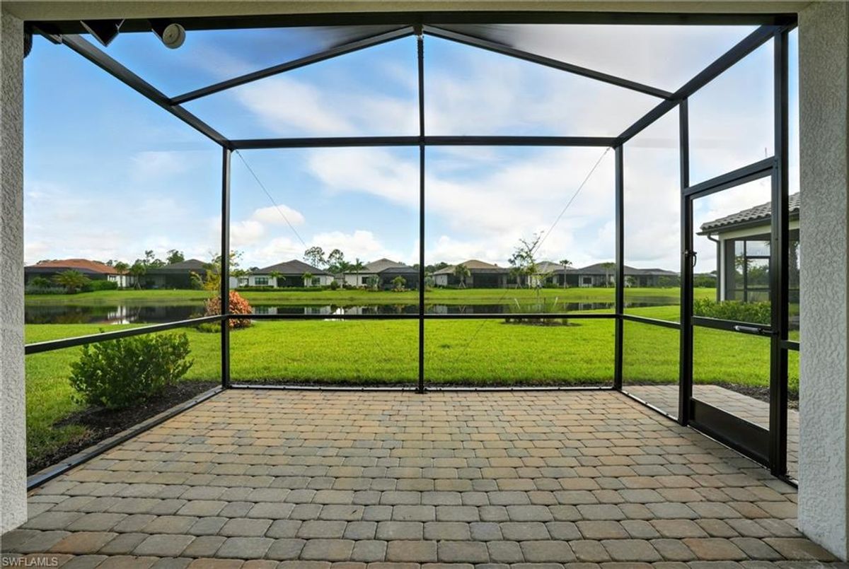 Welcome to this beautifully furnished " Contour" model by Pulte/Divosta, located in one of Naples’ most sought-after gated communities Terreno. This 2-bed +den, 2-bath home with Extended Lanai offers a thoughtful open-concept layout with impact windows and doors, providing both comfort and peace of mind. Both bedrooms feature king-size accommodations, making it ideal for hosting family and guests. Step inside and you’ll find tasteful finishes, tile flooring throughout, with a seamless flow that leads to serene water views—the perfect backdrop for Florida living. Offered turn-key furnished, this residence is move-in ready, with a smart home setup, giving you the opportunity to start enjoying the Naples lifestyle immediately. Epoxy garage floor, plantation shutters and window coverings finish the space nicely. Beyond the home, the community’s brand-new amenity campus is now open, offering a resort-style experience just steps from your front door. Residents enjoy access to a state-of-the-art fitness center, on-site restaurant, resort pool, lap pool, tennis courts, pickleball, dog park, and playground. The community is gated for security and peace of mind, and also provides golf access, making it a true paradise for active lifestyles.Whether you’re looking for a seasonal retreat or a full-time residence, 1863 Mesa Ln. combines the best of comfort, convenience, and resort-style amenities in the heart of Naples.