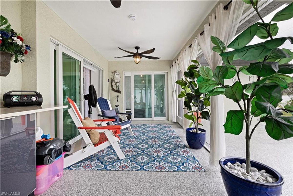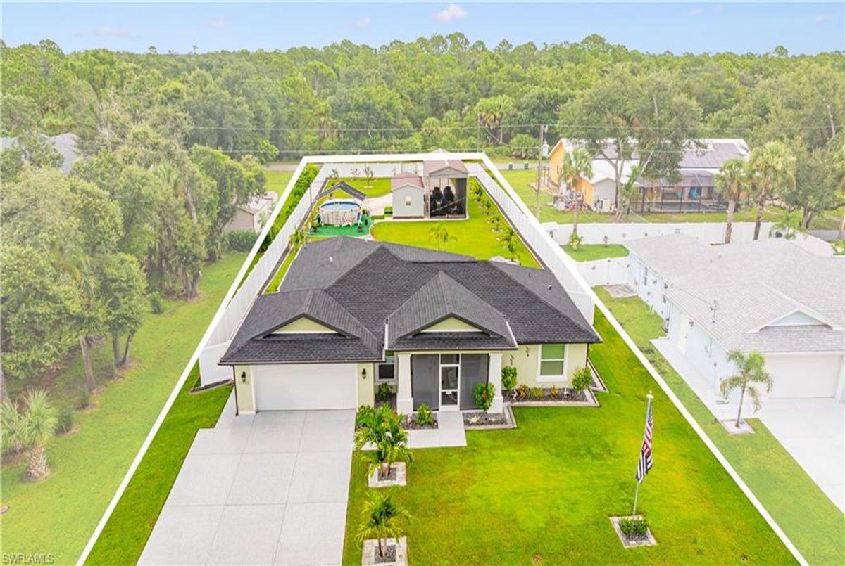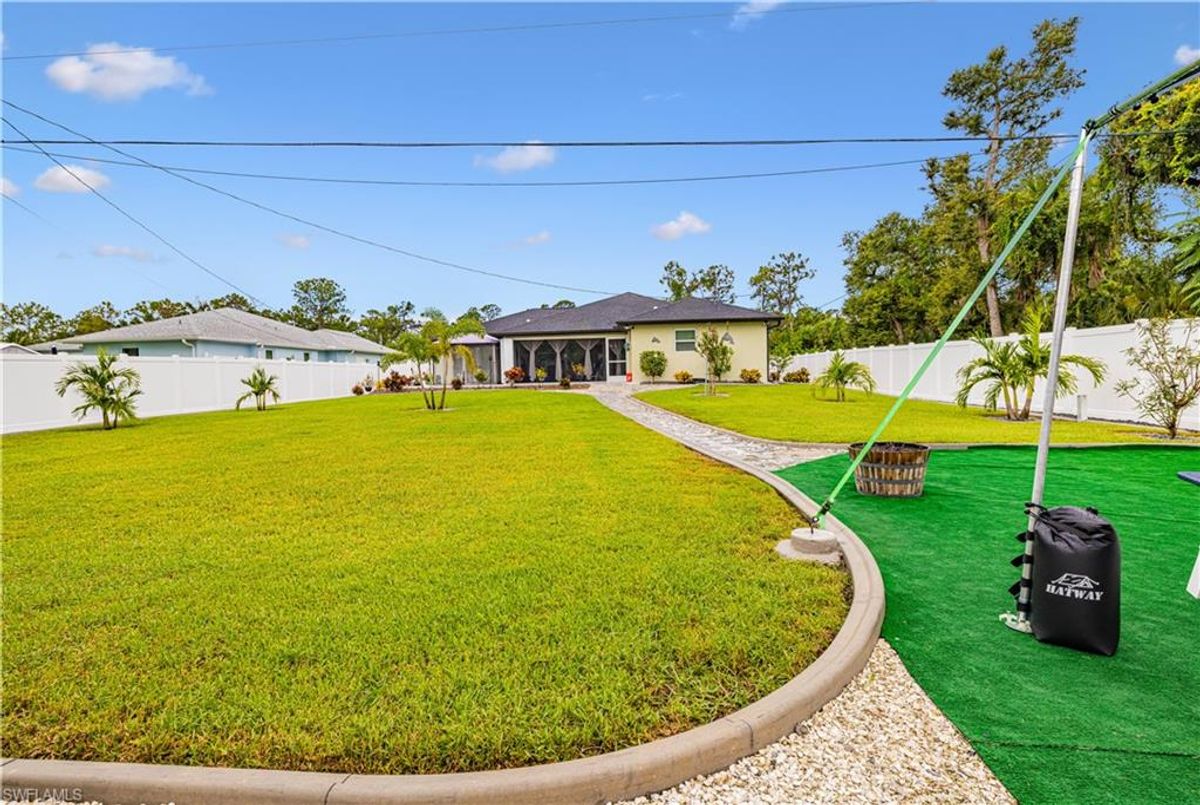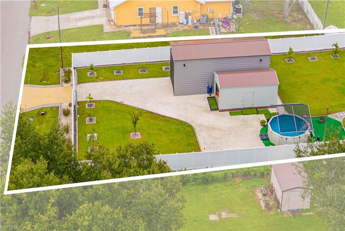 Discover this luxurious retreat on almost 1/2 acre with unmatched upgrades designed to make every day feel like a tropical getaway! Nestled on an expansive double lot is a haven of privacy and convenience boasting driveways on both the north and south ends for seamless access. A $3,600 aluminum cantilever slide gate, elegantly wrapped in pristine white vinyl encircles the majority of the property creating a secure and stunning retreat. Step into a tropical paradise where lush landscaping steals the show! Dwarf queen palms grace the front vibrant Christmas palms line the perimeter and majestic fox palms command the center of the yard crafting an unrivaled island vibe. This meticulously curated outdoor oasis is complemented by a $34,000 concrete expansion across the front and rear driveways and backyard thoughtfully preplanned for your dream in-ground pool. For now enjoy the above-ground pool complete with 50 amp electric hookups and a shaded canopy for endless summer fun. Your toys? Bring them all! A $14,000, 14ft-tall carport with a 14x40 footprint and custom screens is ready to house your RV boats wave runners or a party! A $12,000 12ft x 24ft lofted shed keeps your yard tools organized leaving the epoxy-finished garage pristine for your vehicles. Speaking of epoxy this premium finish glistens across the driveway garage front porch and rear covered lanai adding a sleek modern touch to every surface. Built for comfort and resilience this home is engineered for worry-free living. A whole-home generator hookup ensures uninterrupted power while four French drains expertly manage rainwater, directing it to a swale outside the fence. Impact-resistant windows and doors paired with $11,000 hurricane shutters on the rear lanai offer peace of mind without the hassle of moving outdoor furniture during storms. The $10,000 screened-in porches provide pest-free relaxation zones perfect for savoring morning coffee or evening sunsets. Inside elegance awaits. Luxury vinyl flooring and sophisticated tray ceilings set the tone while the gourmet kitchen dazzles with quartz countertops a water purification system a pot filler at the stove and a cleverly integrated base cabinet microwave. The spacious primary suite is a retreat of its own featuring a massive walk-in closet a luxurious en-suite bathroom and direct rear exterior access for seamless indoor-outdoor living. Stay connected with fiber optic cable for ultra-reliable internet and breathe easy with an air purification system integrated into the AC. Located just minutes from schools and conveniently near highways 41 and 776 this property blends tranquility with accessibility. Plus with no flood policy required you can enjoy worry free ownership. This isn’t just a home it’s a lifestyle overflowing in premium upgrades that elevate every moment. Dont miss your chance to own this unparalleled Port Charlotte gem—schedule your private tour today and experience the ultimate in luxury functionality and tropical allure! ...
