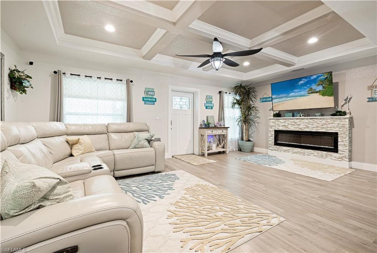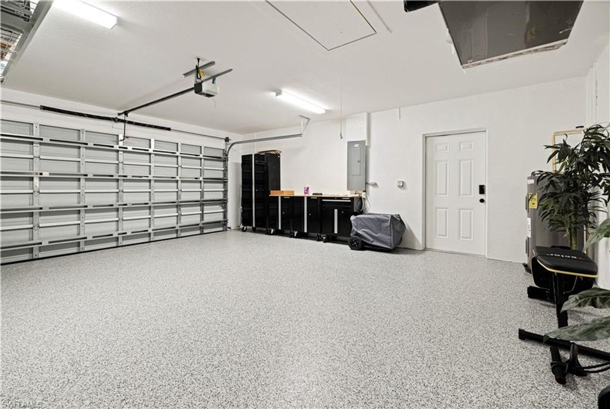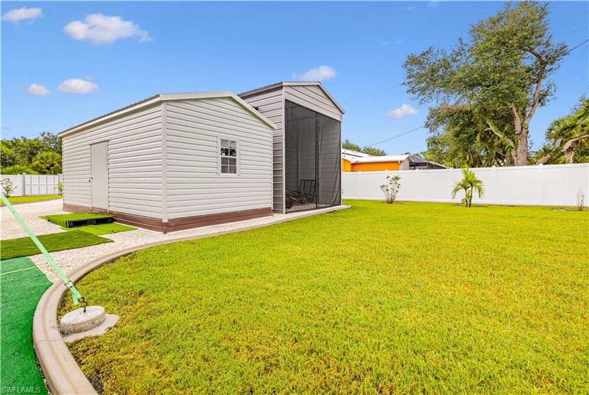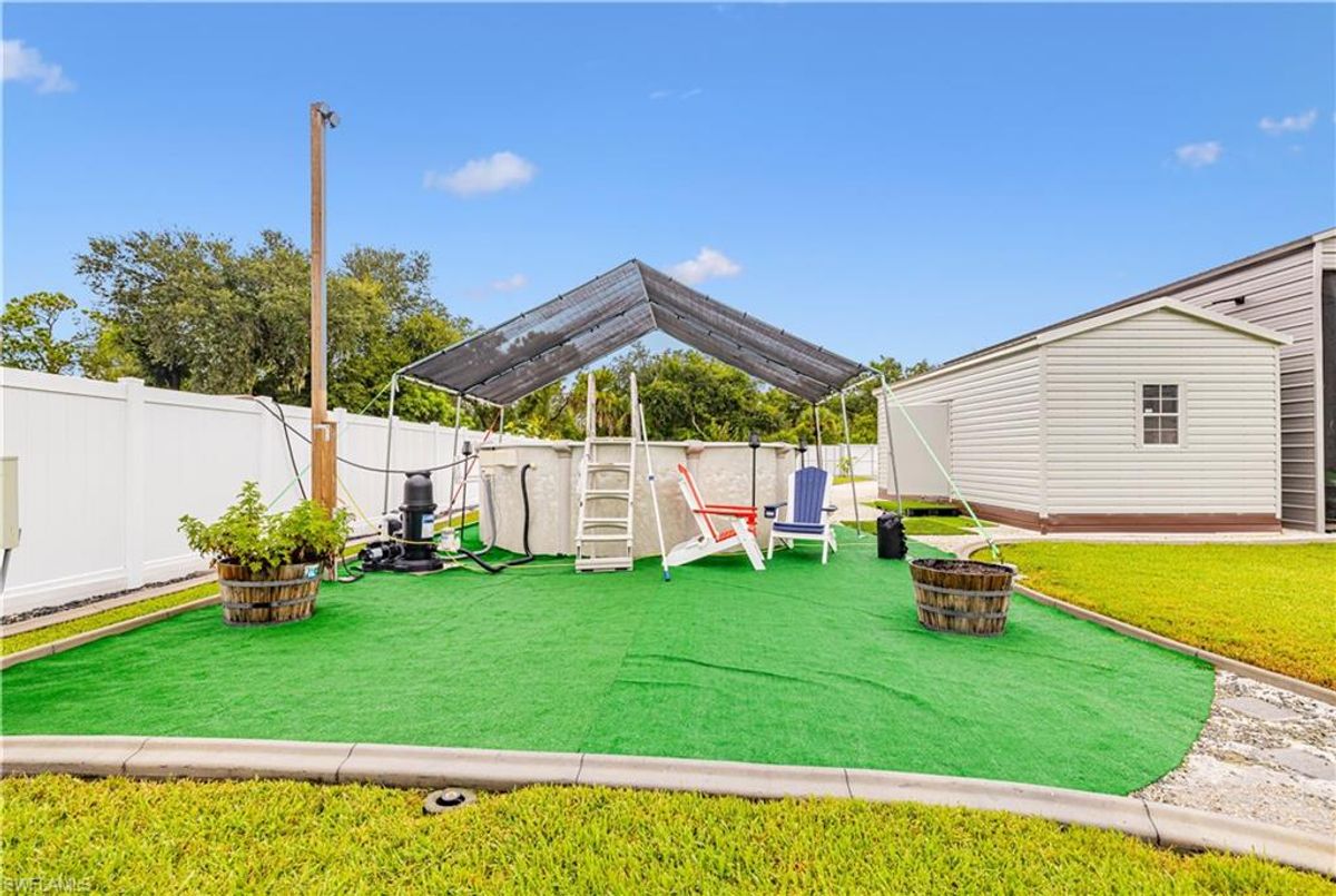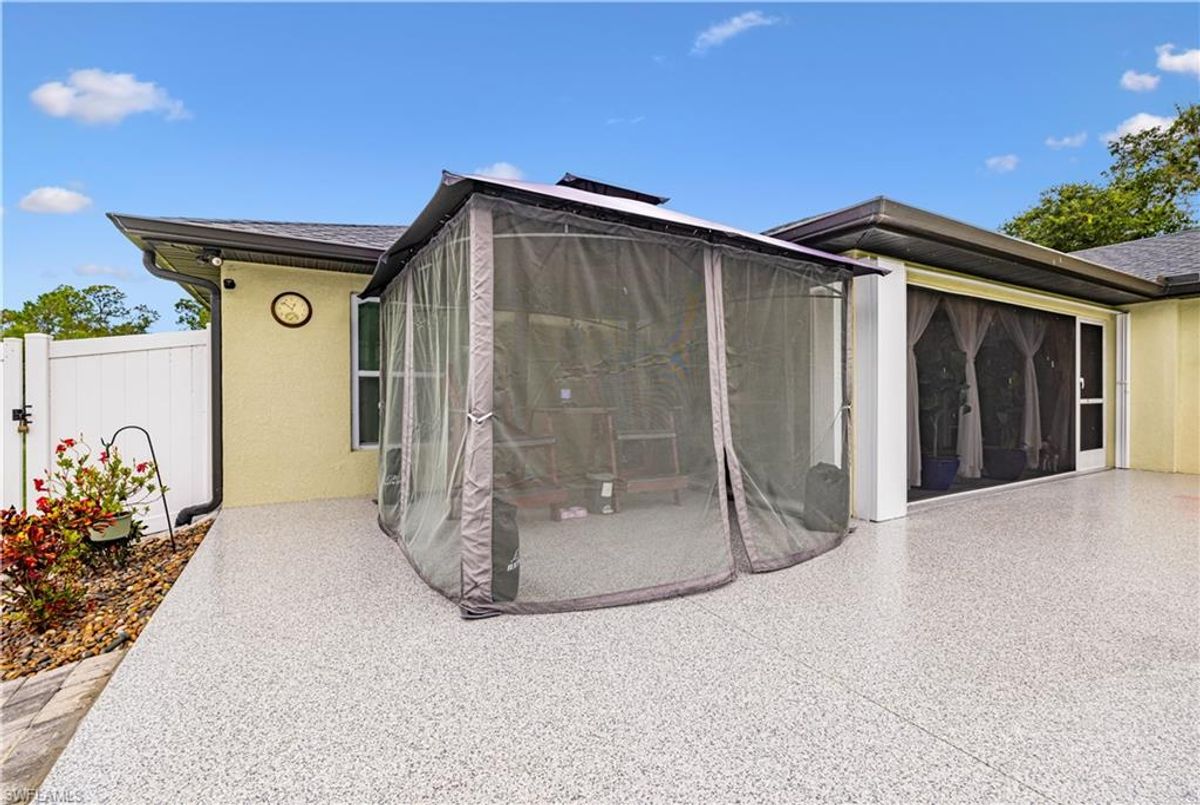 Discover this luxurious retreat on almost 1/2 acre with unmatched upgrades designed to make every day feel like a tropical getaway! Nestled on an expansive double lot is a haven of privacy and convenience boasting driveways on both the north and south ends for seamless access. A $3,600 aluminum cantilever slide gate, elegantly wrapped in pristine white vinyl encircles the majority of the property creating a secure and stunning retreat. Step into a tropical paradise where lush landscaping steals the show! Dwarf queen palms grace the front vibrant Christmas palms line the perimeter and majestic fox palms command the center of the yard crafting an unrivaled island vibe. This meticulously curated outdoor oasis is complemented by a $34,000 concrete expansion across the front and rear driveways and backyard thoughtfully preplanned for your dream in-ground pool. For now enjoy the above-ground pool complete with 50 amp electric hookups and a shaded canopy for endless summer fun. Your toys? Bring them all! A $14,000, 14ft-tall carport with a 14x40 footprint and custom screens is ready to house your RV boats wave runners or a party! A $12,000 12ft x 24ft lofted shed keeps your yard tools organized leaving the epoxy-finished garage pristine for your vehicles. Speaking of epoxy this premium finish glistens across the driveway garage front porch and rear covered lanai adding a sleek modern touch to every surface. Built for comfort and resilience this home is engineered for worry-free living. A whole-home generator hookup ensures uninterrupted power while four French drains expertly manage rainwater, directing it to a swale outside the fence. Impact-resistant windows and doors paired with $11,000 hurricane shutters on the rear lanai offer peace of mind without the hassle of moving outdoor furniture during storms. The $10,000 screened-in porches provide pest-free relaxation zones perfect for savoring morning coffee or evening sunsets. Inside elegance awaits. Luxury vinyl flooring and sophisticated tray ceilings set the tone while the gourmet kitchen dazzles with quartz countertops a water purification system a pot filler at the stove and a cleverly integrated base cabinet microwave. The spacious primary suite is a retreat of its own featuring a massive walk-in closet a luxurious en-suite bathroom and direct rear exterior access for seamless indoor-outdoor living. Stay connected with fiber optic cable for ultra-reliable internet and breathe easy with an air purification system integrated into the AC. Located just minutes from schools and conveniently near highways 41 and 776 this property blends tranquility with accessibility. Plus with no flood policy required you can enjoy worry free ownership. This isn’t just a home it’s a lifestyle overflowing in premium upgrades that elevate every moment. Dont miss your chance to own this unparalleled Port Charlotte gem—schedule your private tour today and experience the ultimate in luxury functionality and tropical allure! ...