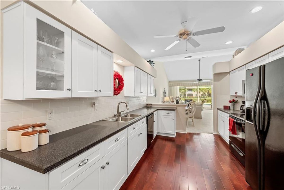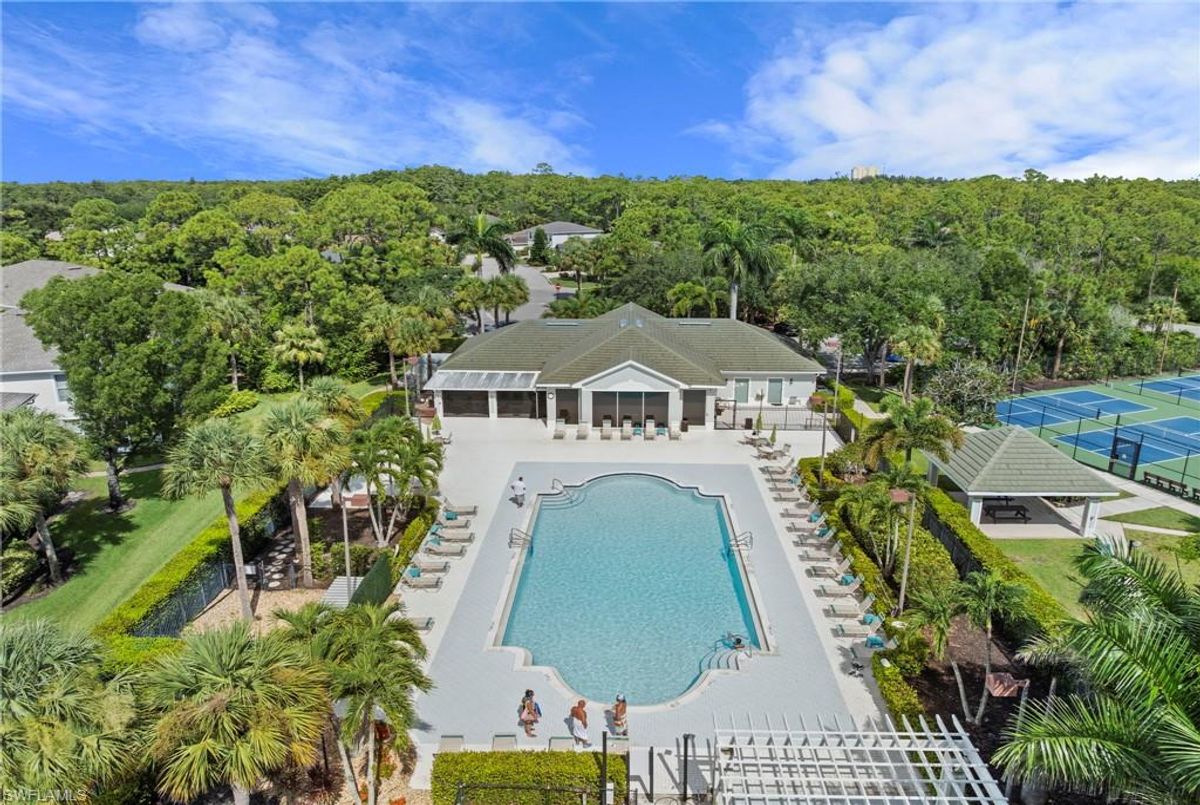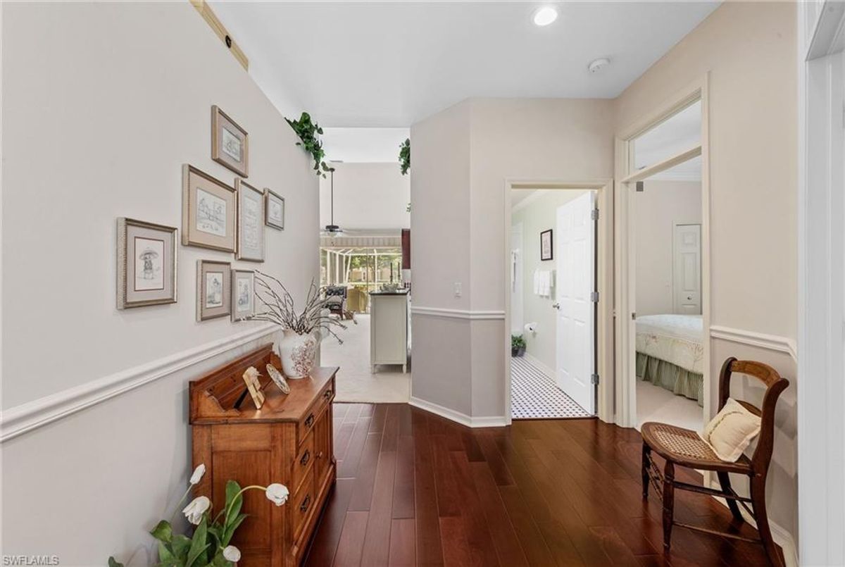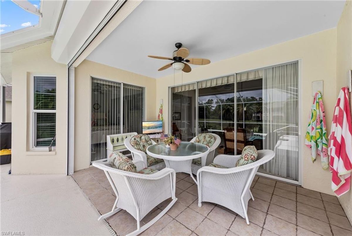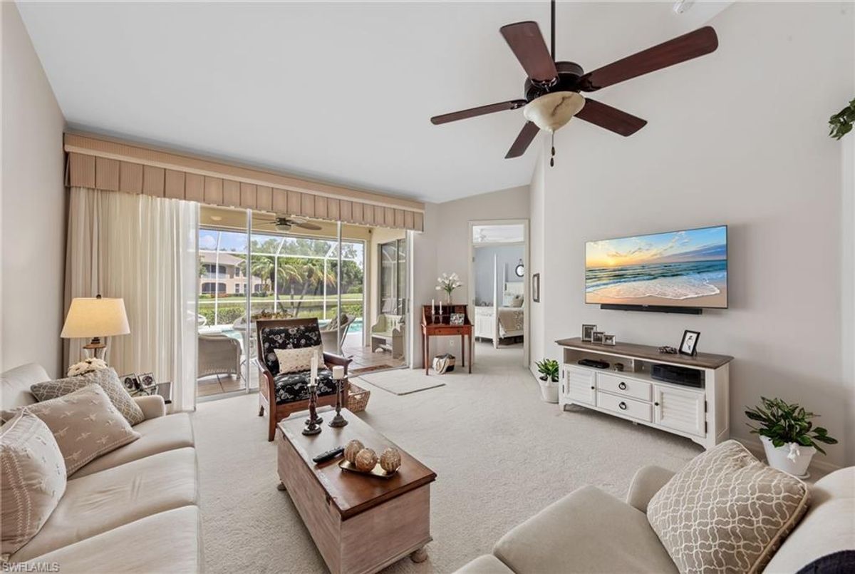 Welcome to this immaculately maintained lakefront pool home and light-filled villa, with 2 bedrooms & Den, 2 baths and 2 car garage. Perfectly positioned to capture serene lake views with an open, airy floor plan that instantly feels like home. From the moment you step into the spacious Great Room, you’ll notice the plush carpeting, soaring vaulted ceilings, and an abundance of natural light enhanced by fresh white paint—creating a clean canvas ready for your personal touch. Beautiful Mahogany wood flooring in both the entry and kitchen. The updated kitchen is a chef’s delight, featuring sleek stainless steel appliances, elegant countertops, and two separate dining areas—ideal for both entertaining and casual meals. The generous primary suite serves as a private retreat, complete with a luxurious spa like ensuite bathroom offering dual sinks, a walk-in shower with custom tile, and a separate stand alone soaking tub for the ultimate relaxation experience. A versatile den provides the perfect space for a home office, guest room, or cozy reading nook. Step outside to your private screened-in lanai with pool, where you can enjoy peaceful lake views and gentle Florida breezes. For added comfort and peace of mind, the lanai includes a hurricane-rated, remote-operated shade. A/C was replaced in 2022, water heater 2024. New roofs were just installed and exteriors painted this year! Hurricane windows on the rear of the home and side bathroom, other openings have metal shutters. The home is even nicer in person than the pictures show! Located in the highly sought-after Marsh Landing community, residents enjoy access to exceptional amenities including a heated pool and spa, tennis courts, four pickleball courts, basketball, bocce ball, a fitness center, and a welcoming clubhouse. Just across the street from Coconut Point Mall, you're minutes from top-tier shopping, dining, and entertainment, as well as RSW International Airport and the stunning Gulf beaches. Don’t miss this opportunity to live the Southwest Florida lifestyle you’ve been dreaming of! ...